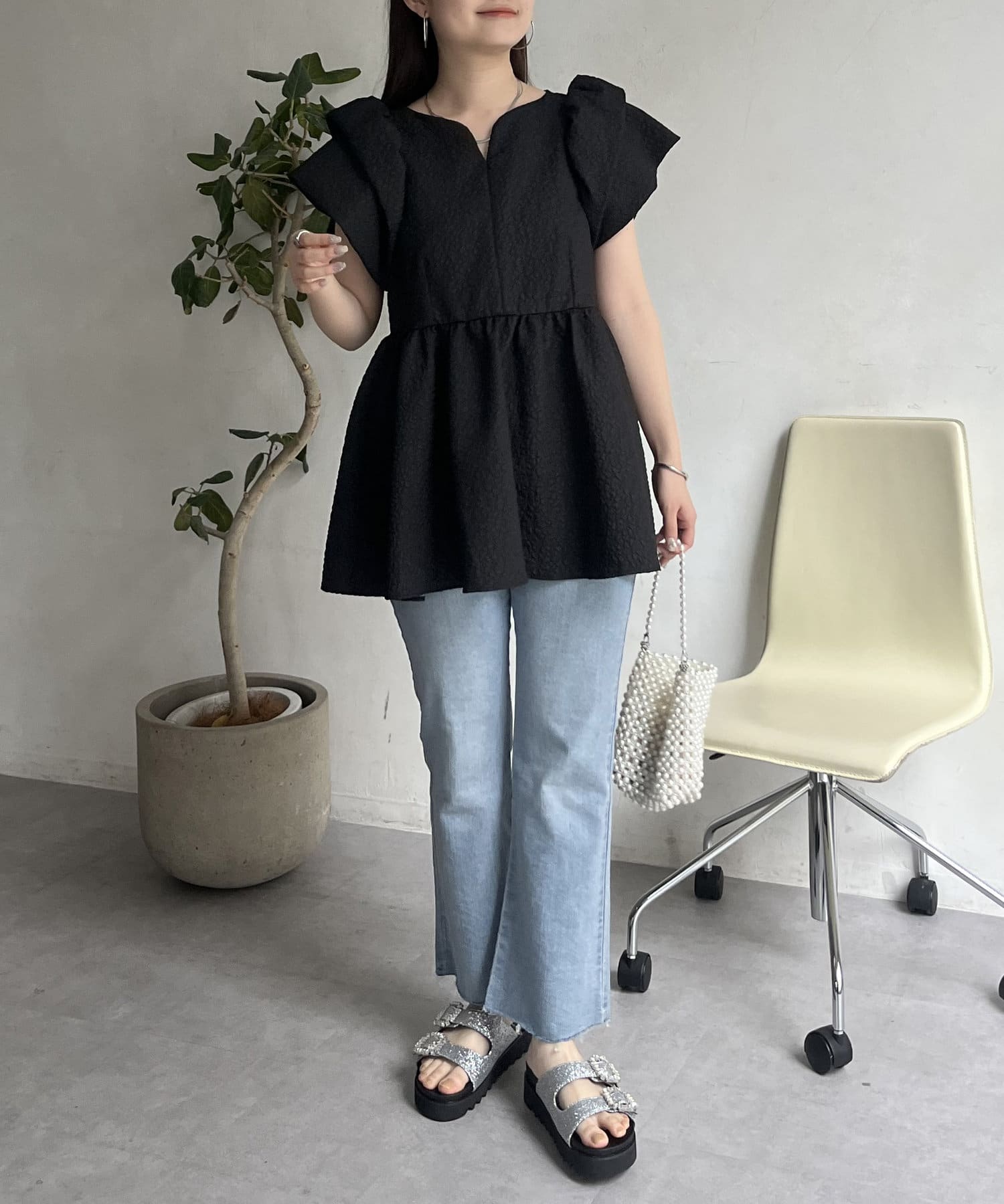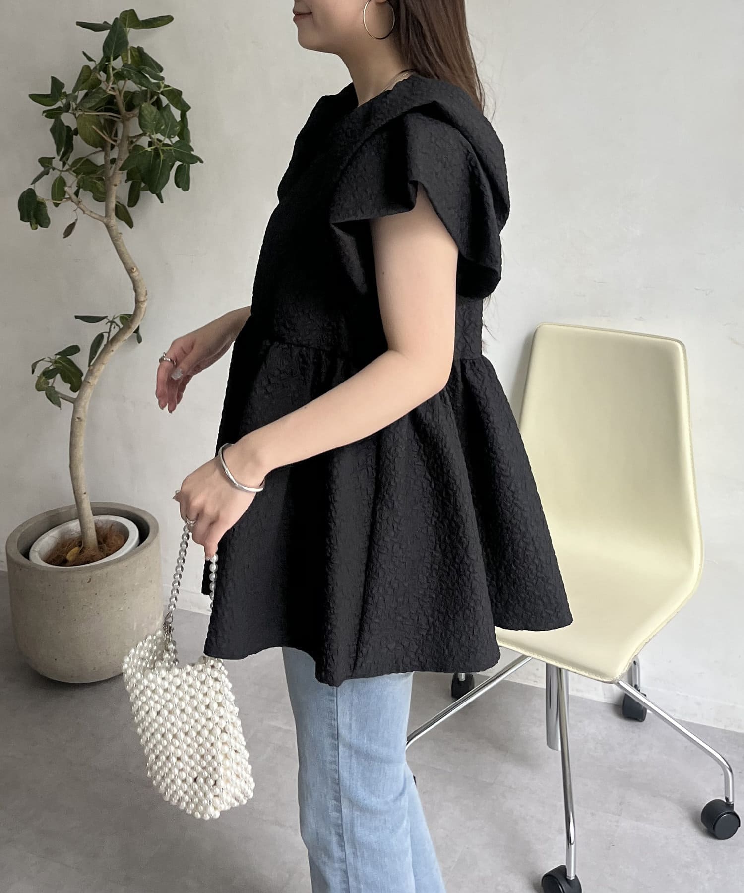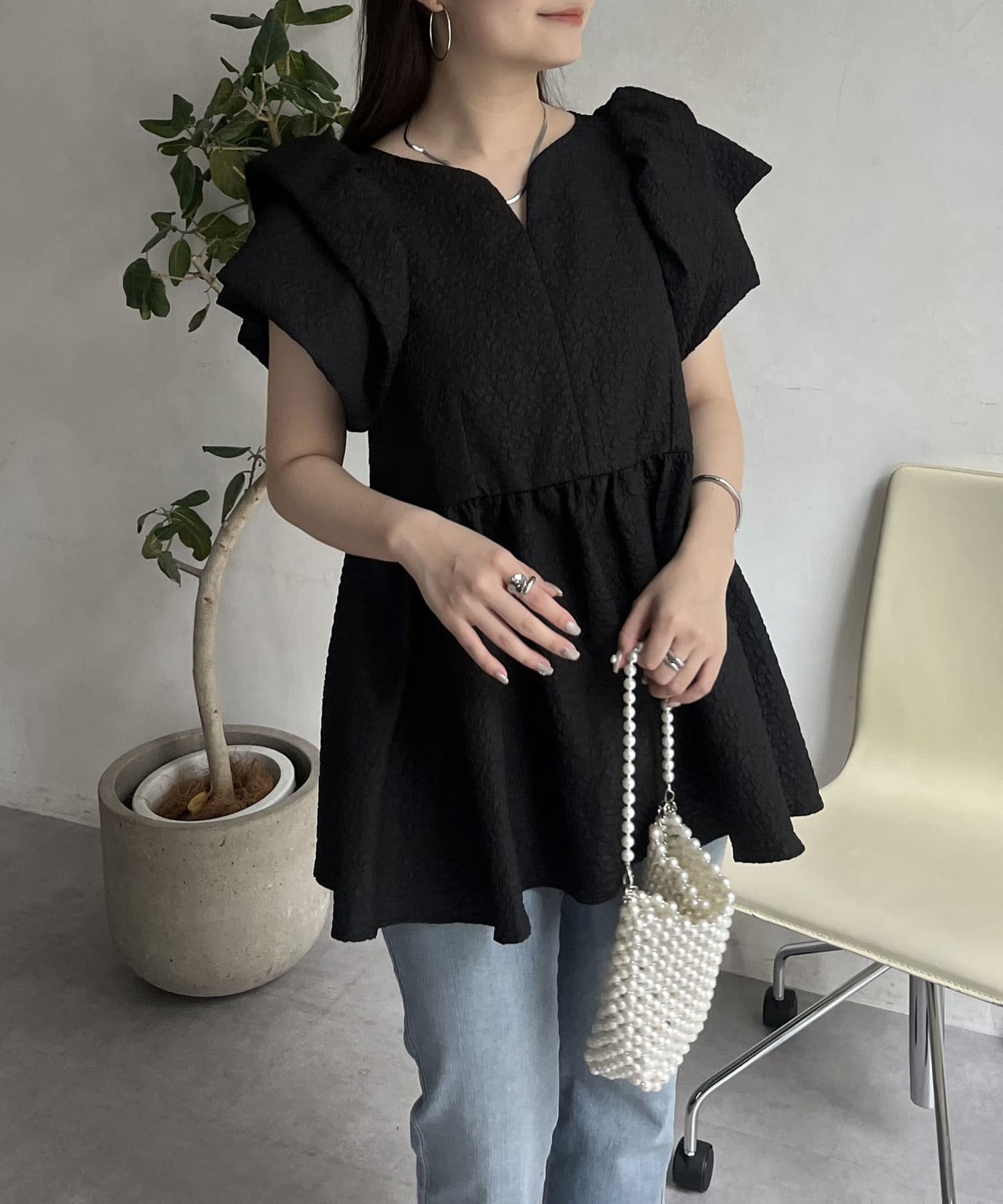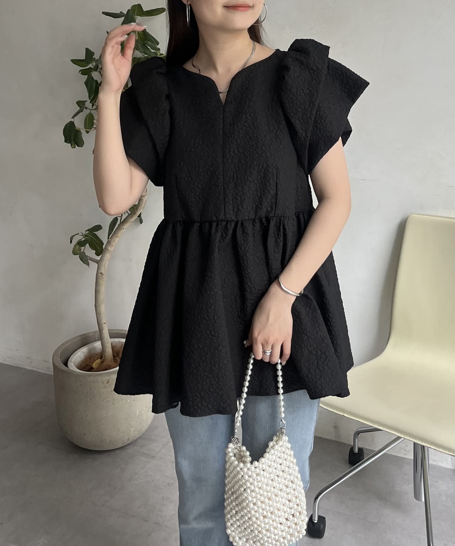 ボリューム感と細部まで施されたデザインが高見えするブラウス