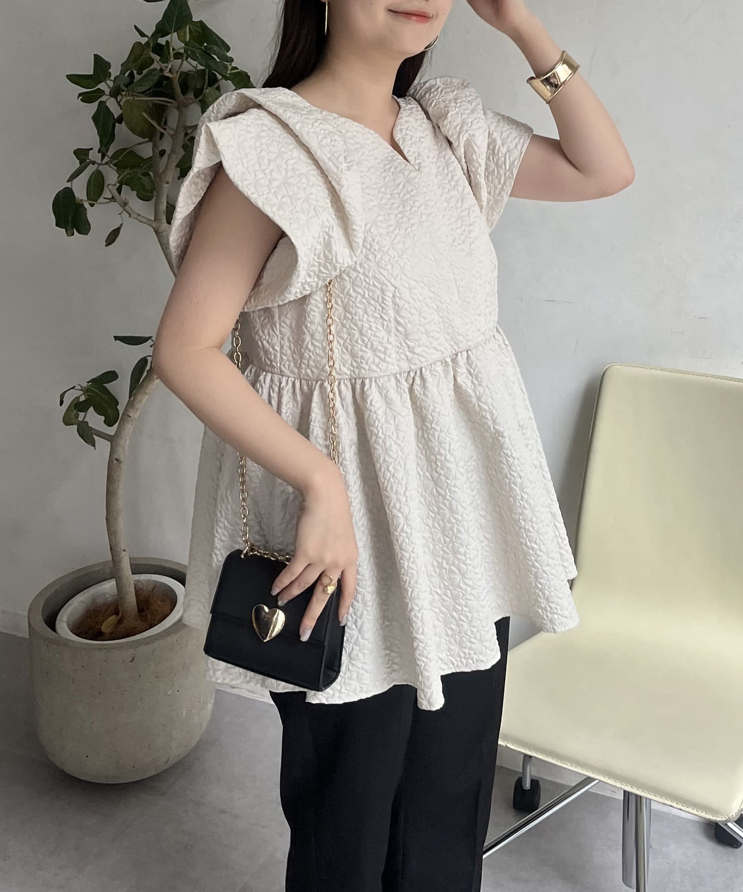 ハートネック/ペプラム/ジャガード/ブラウス/夏