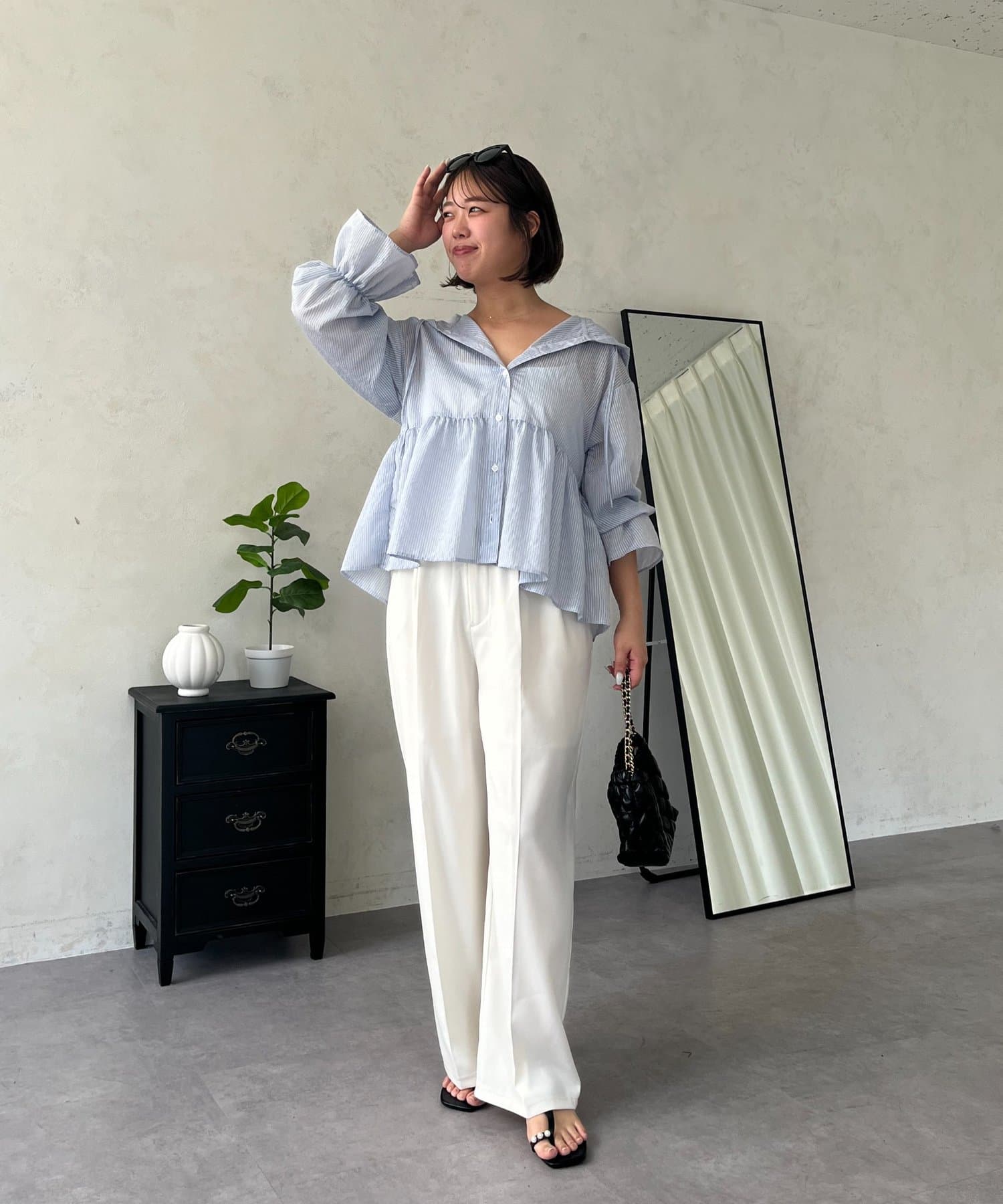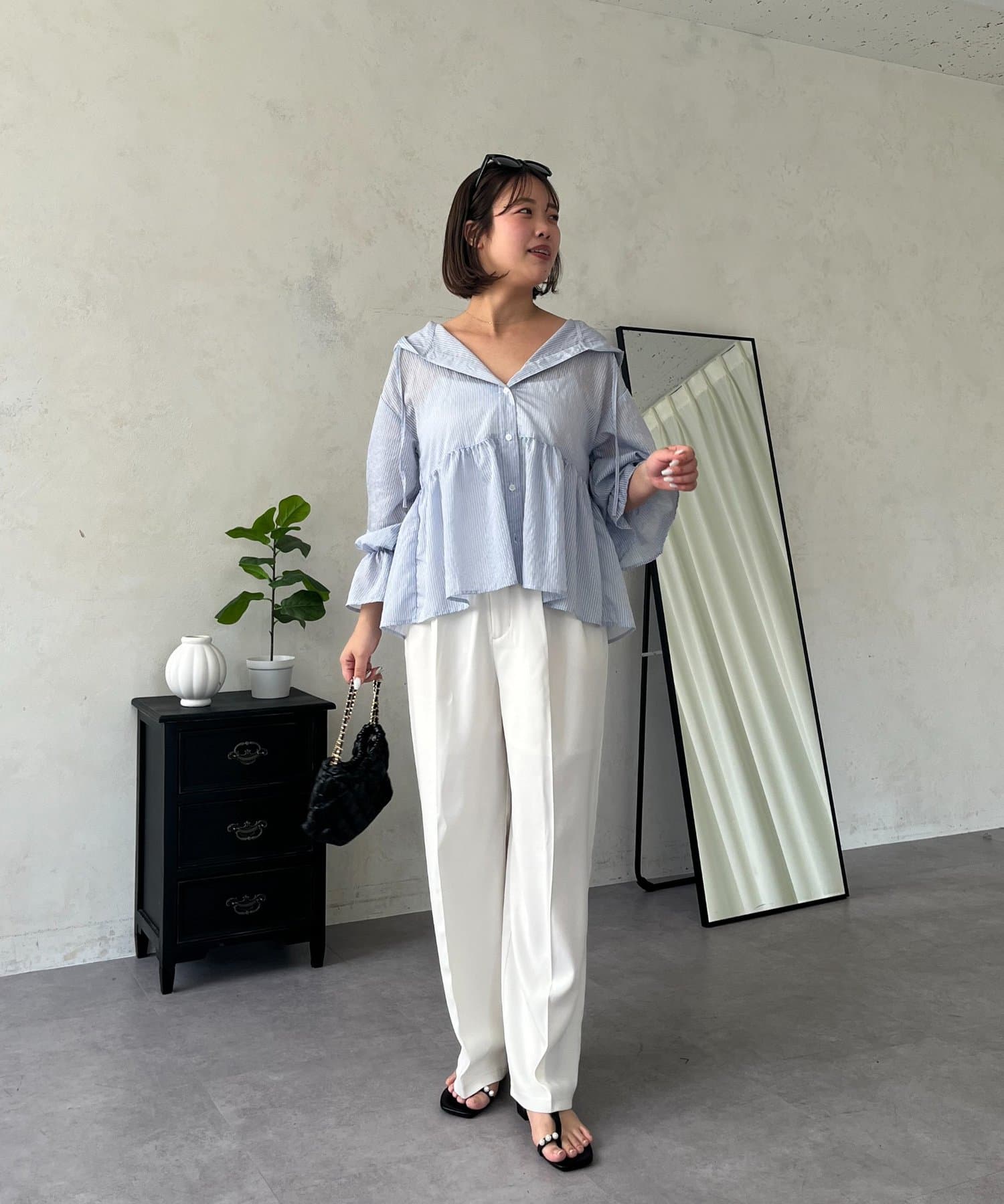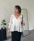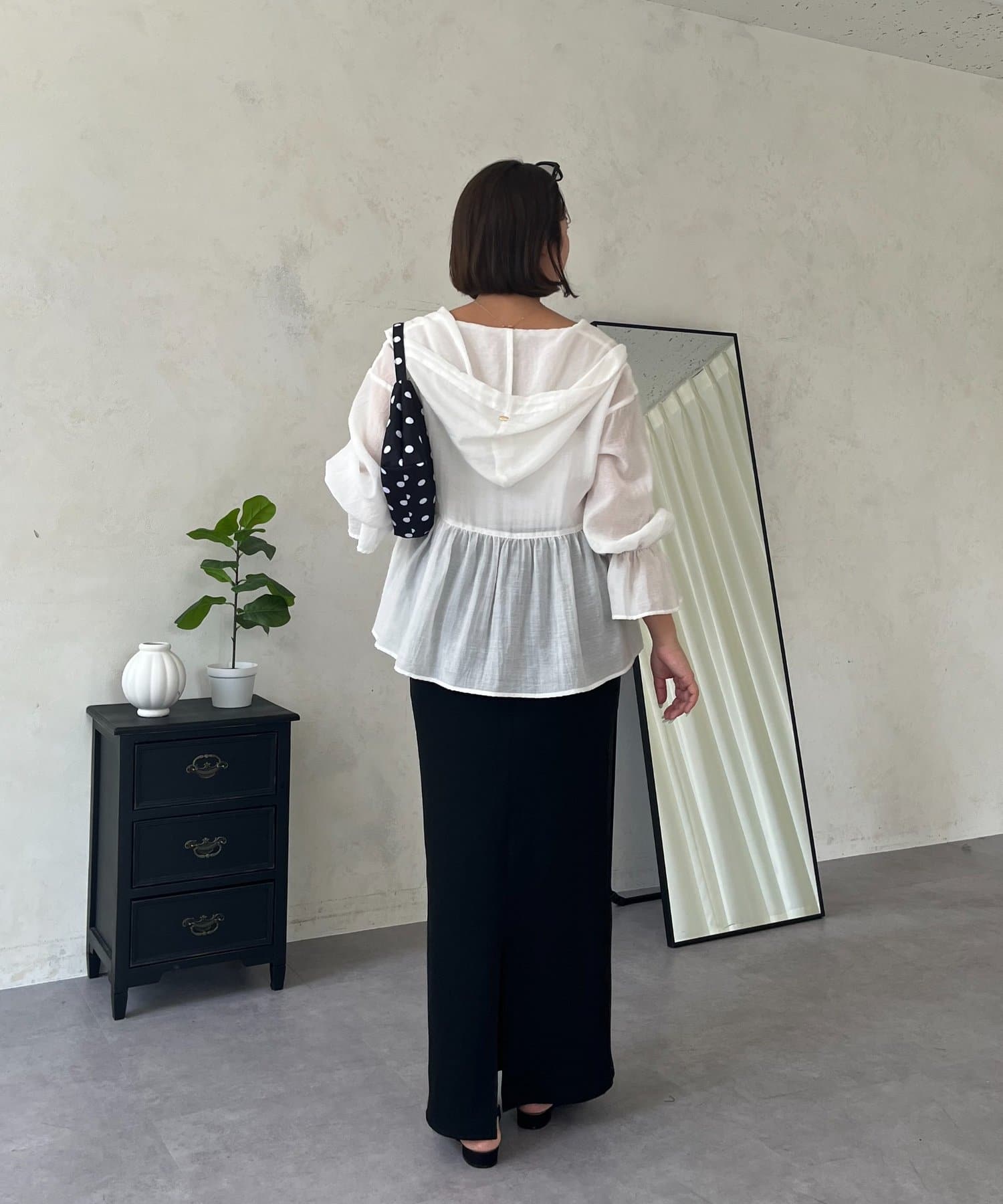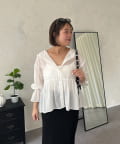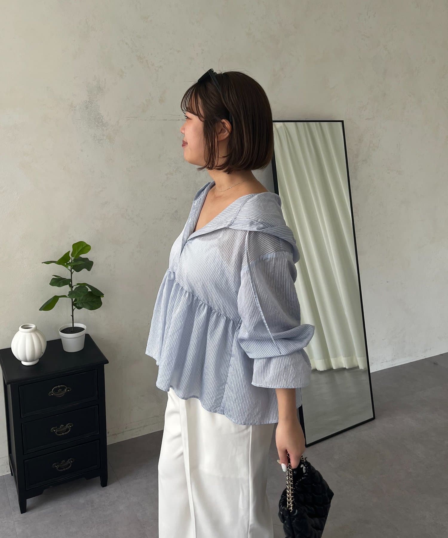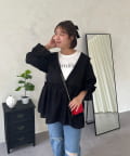 ●カジュアルすぎないように、キャンディースリーブとペプラムシルエットで