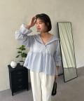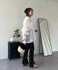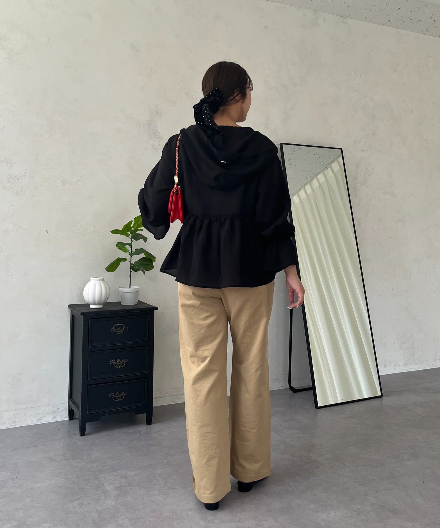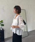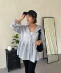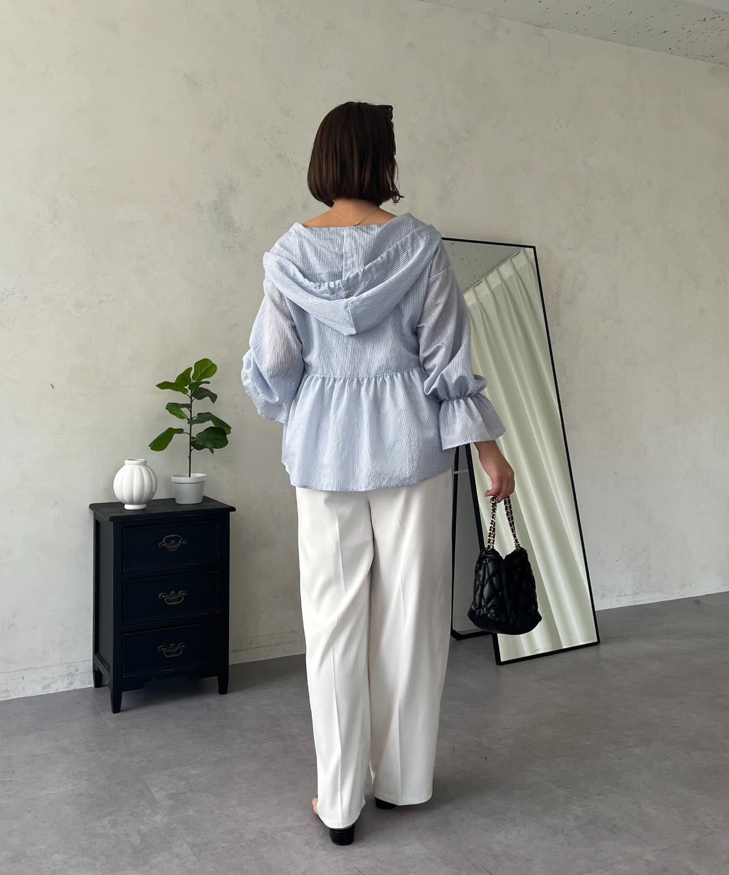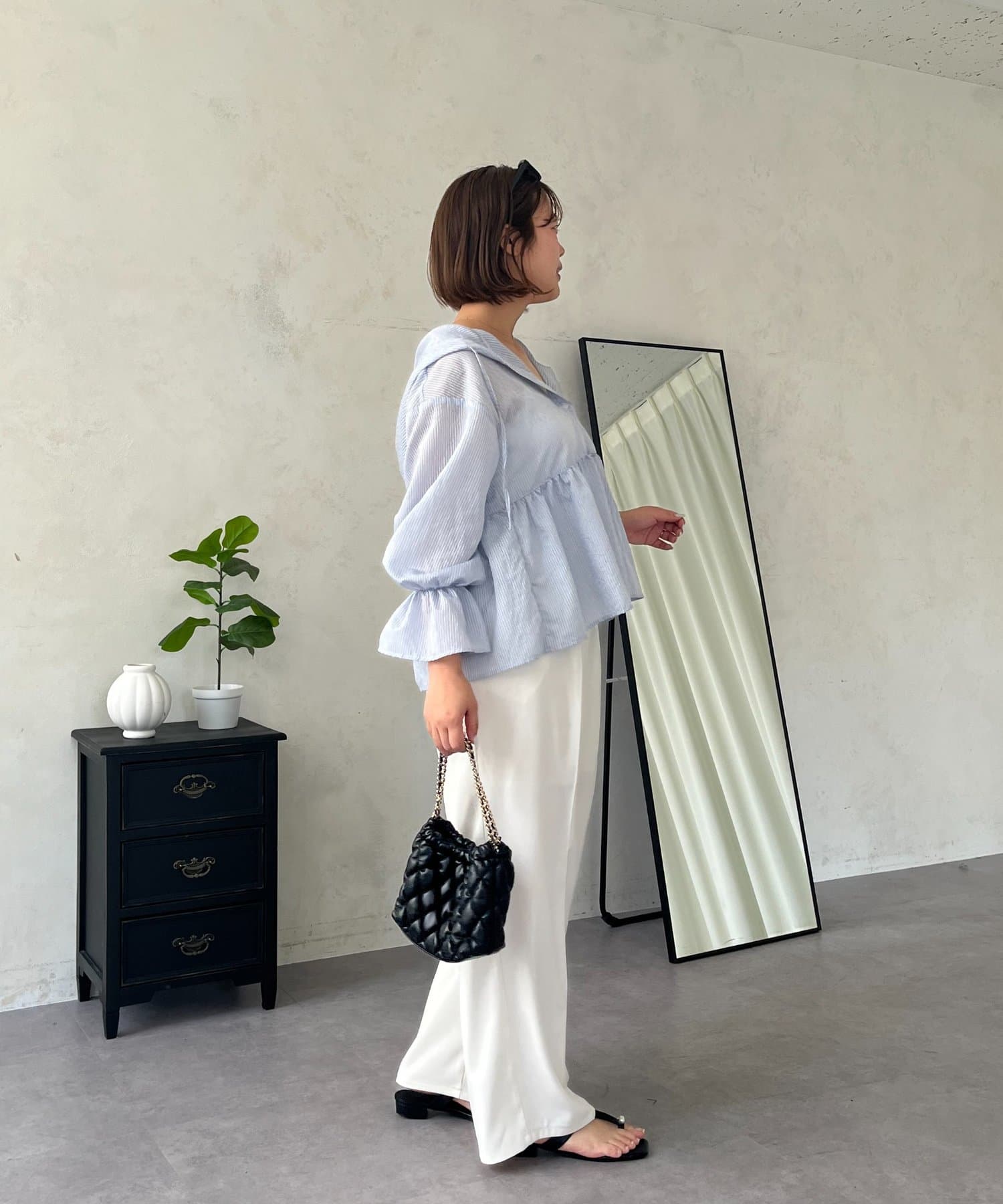 ●カジュアルすぎないように、キャンディースリーブとペプラムシルエットで