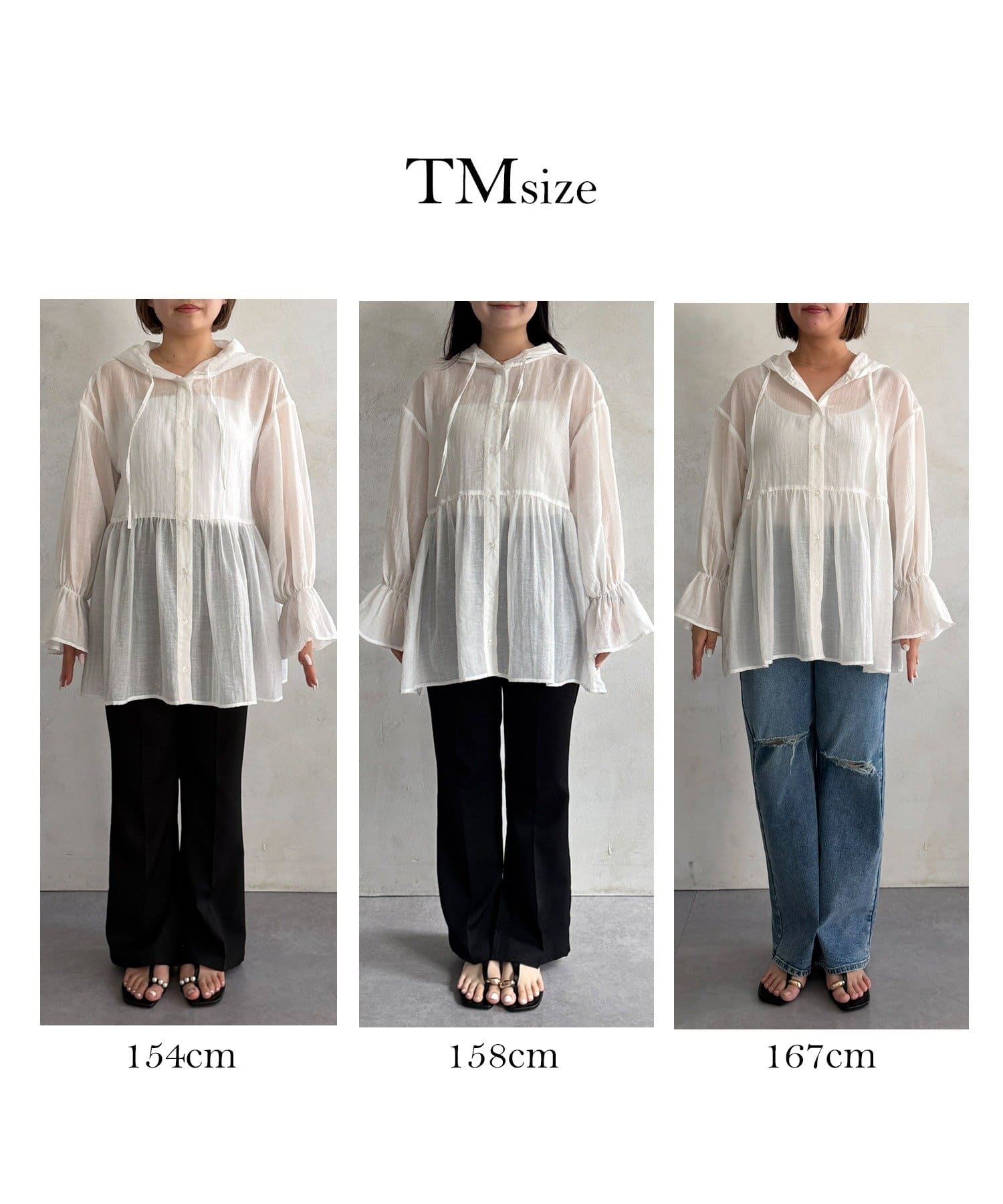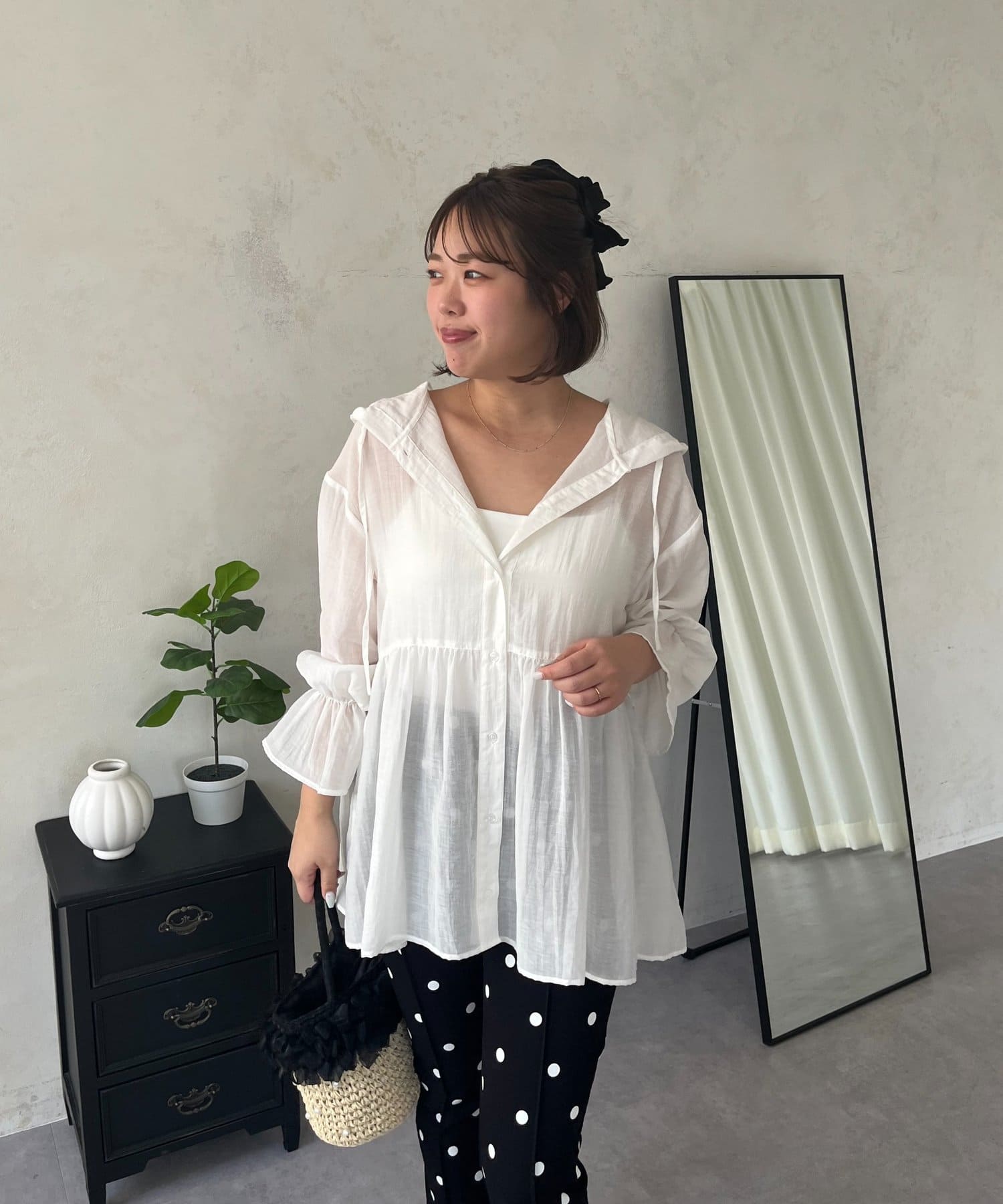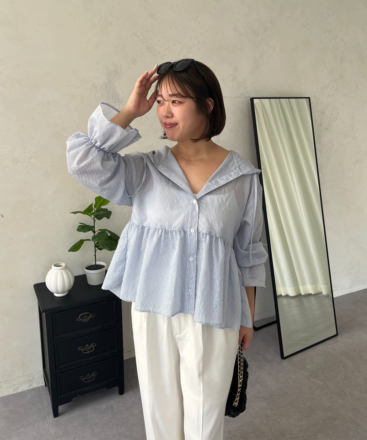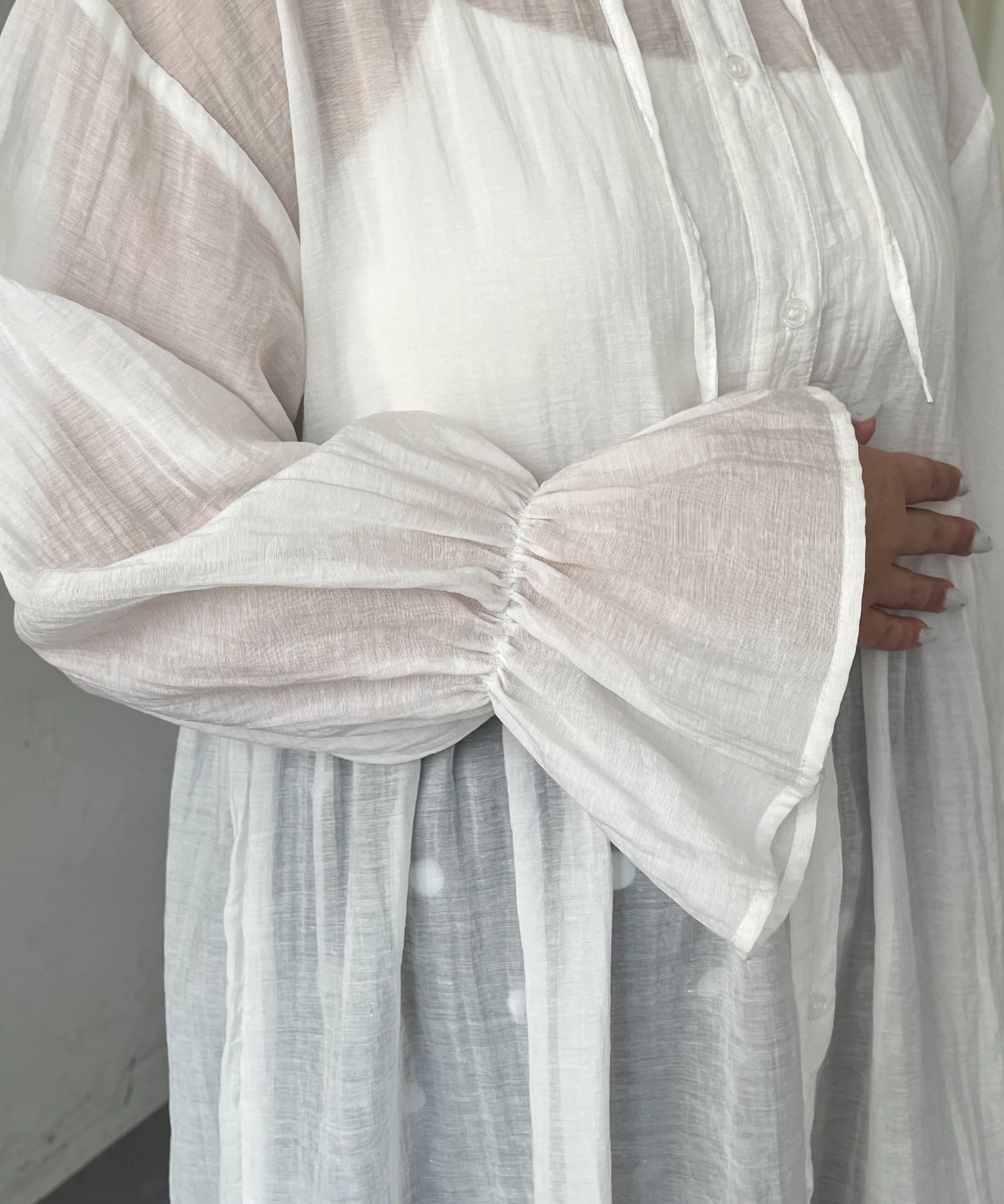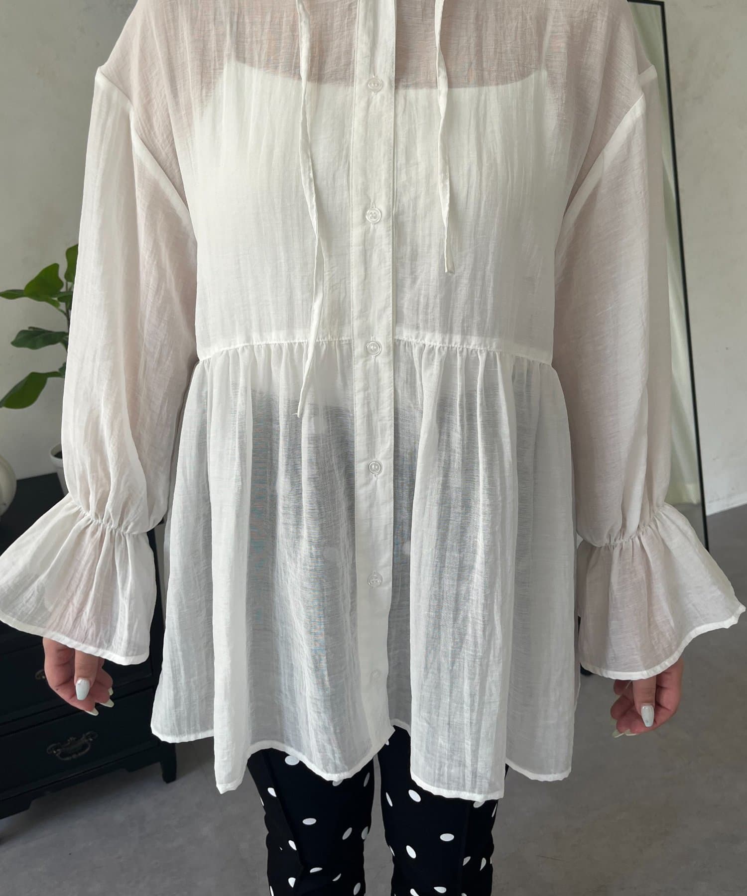 ●夏もさらっと羽織りとして使えるシアーシャツ