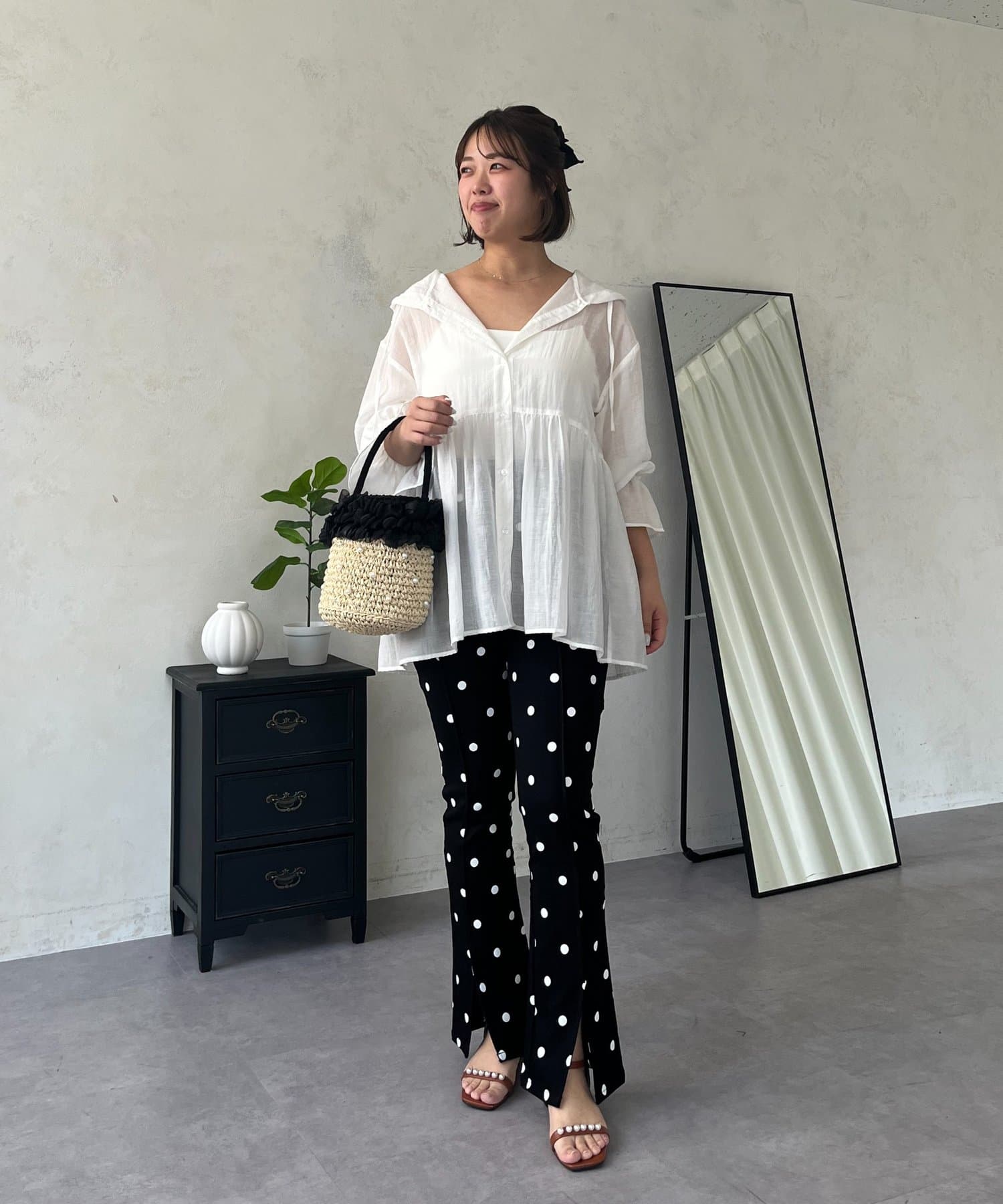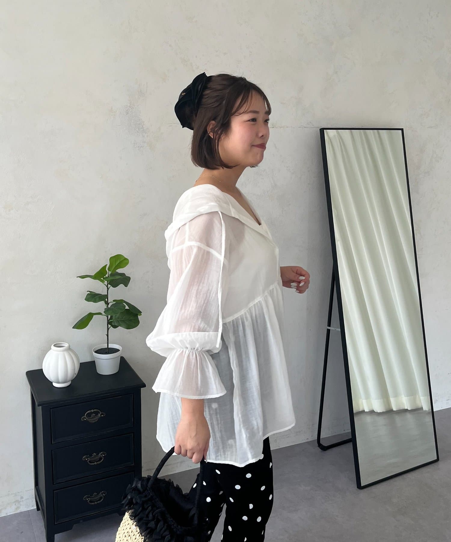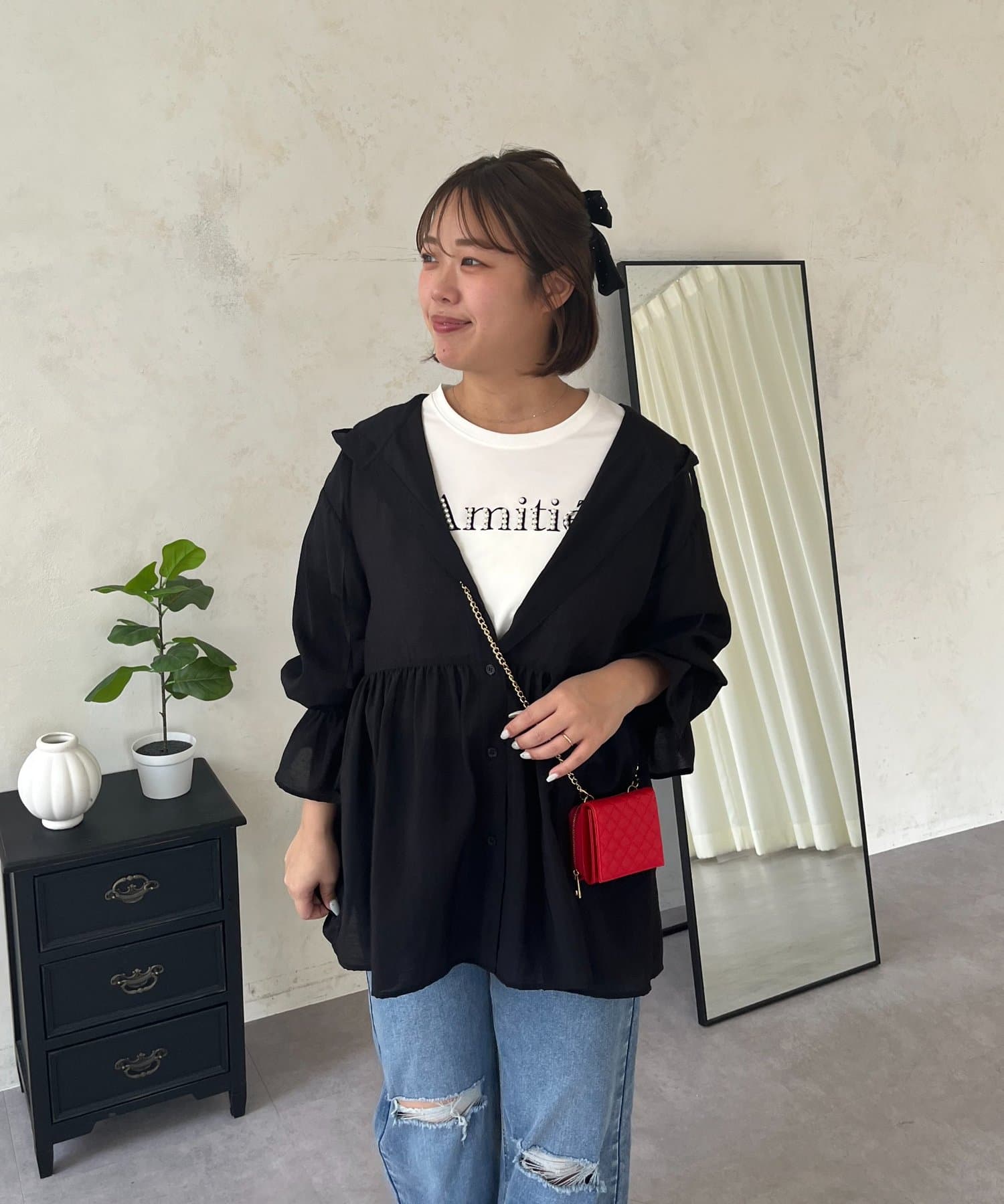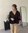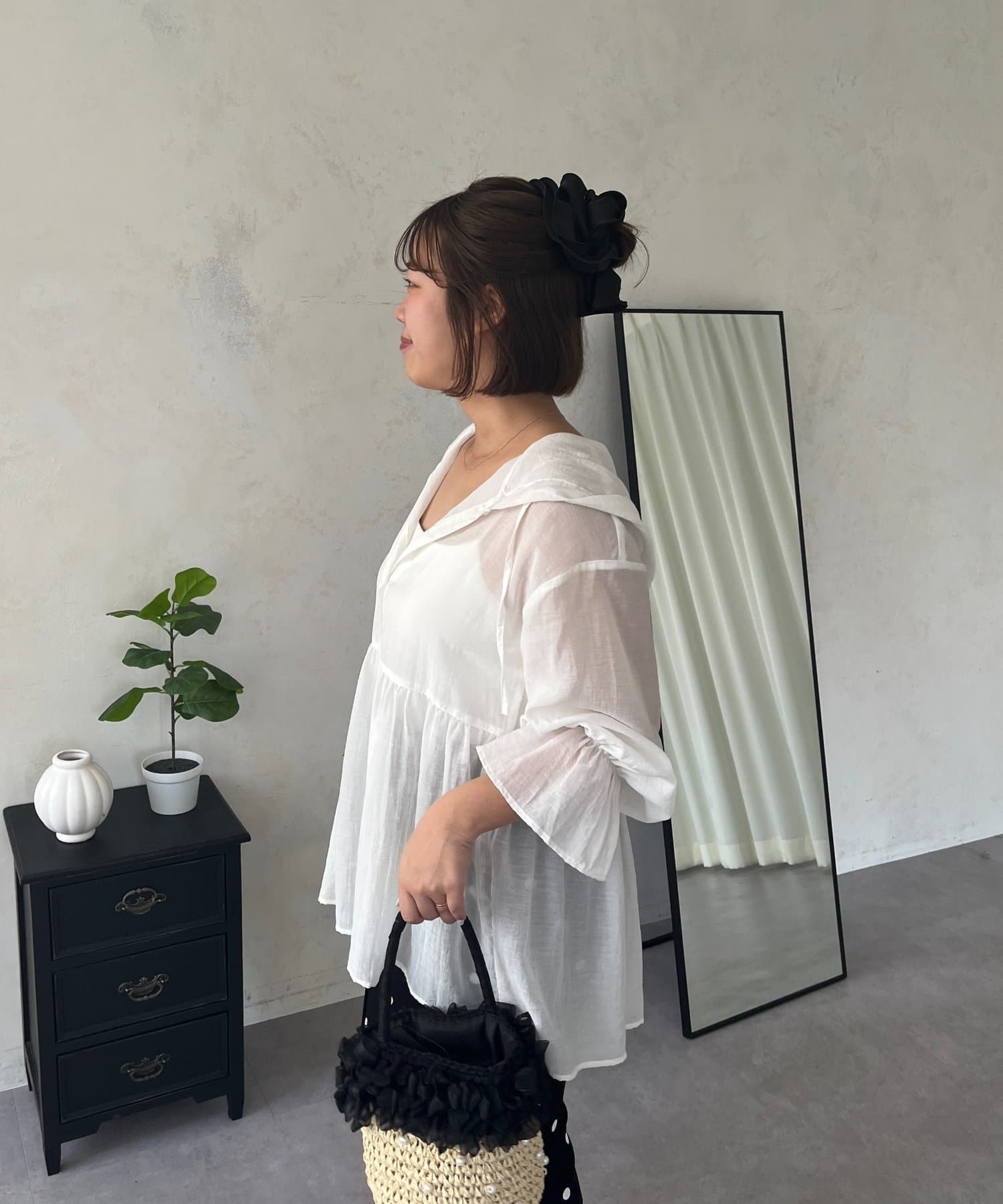●夏もさらっと羽織りとして使えるシアーシャツ