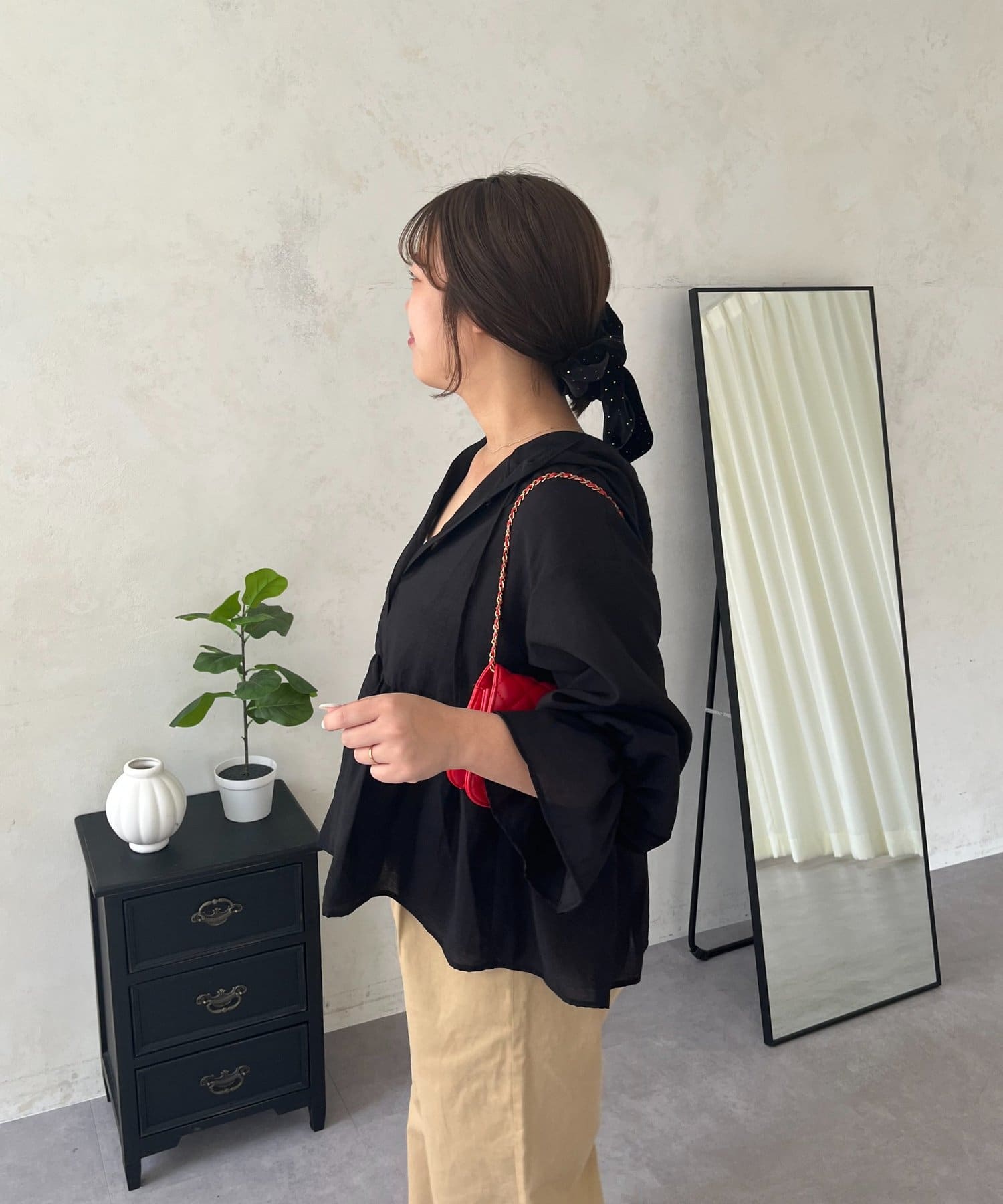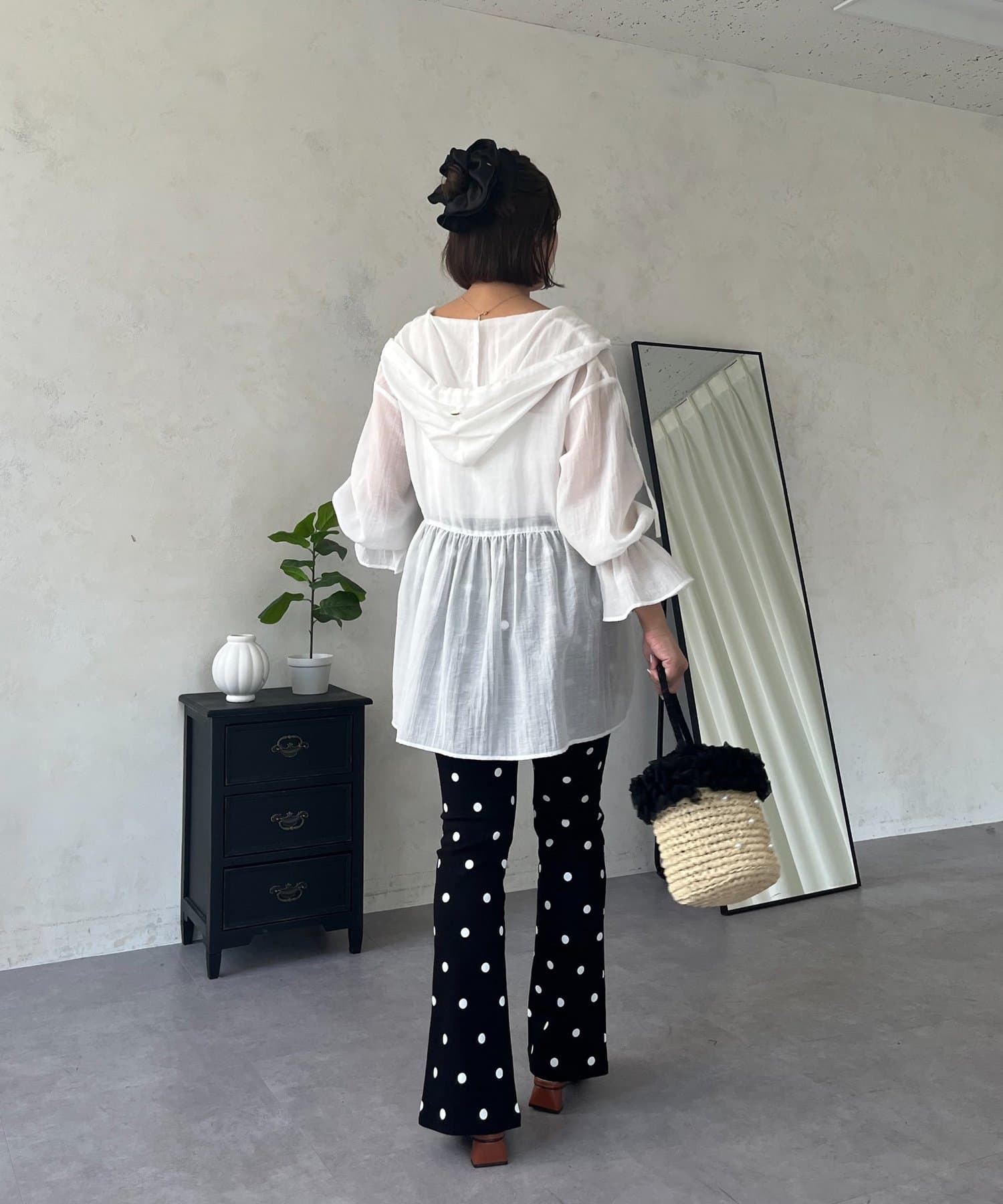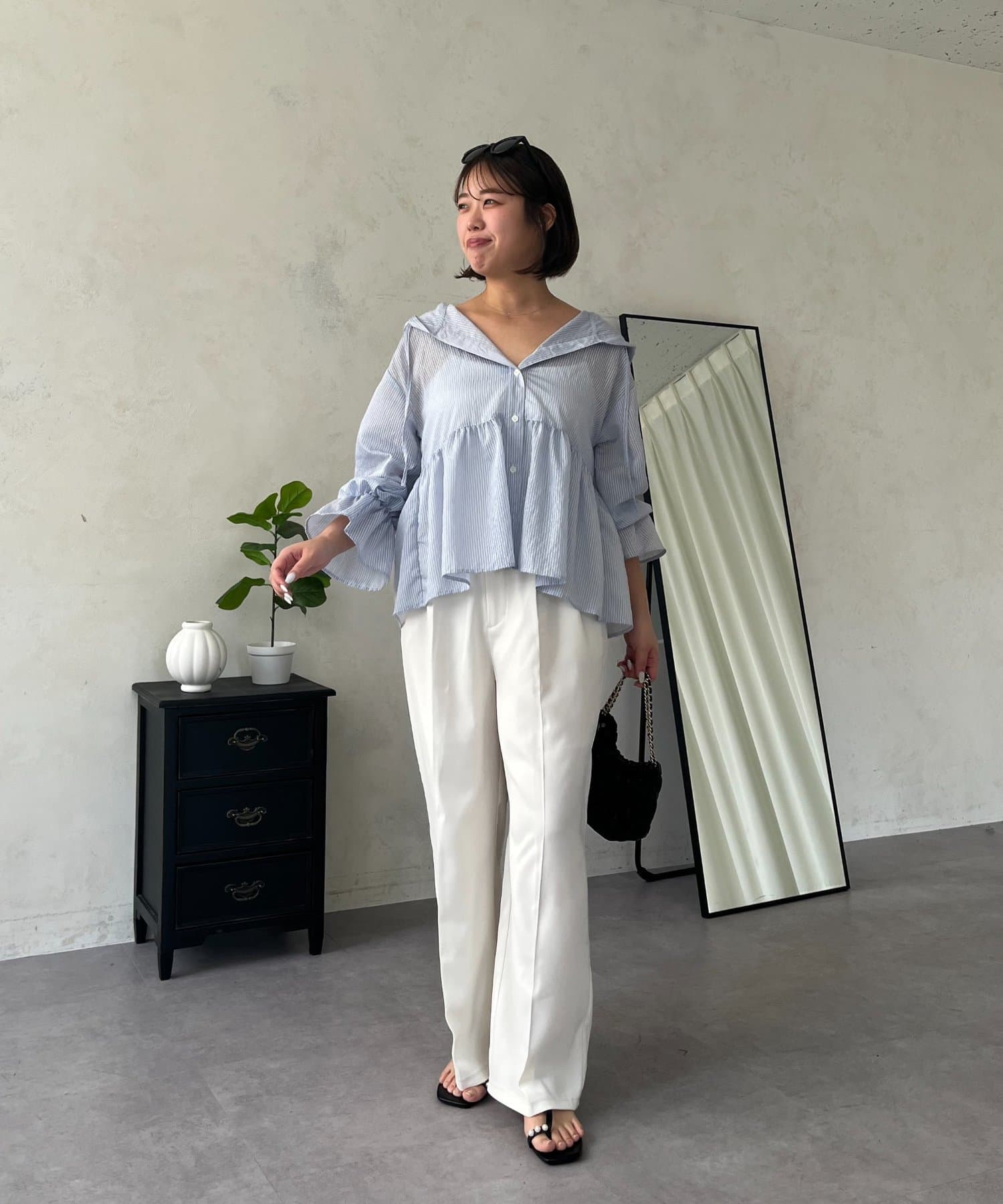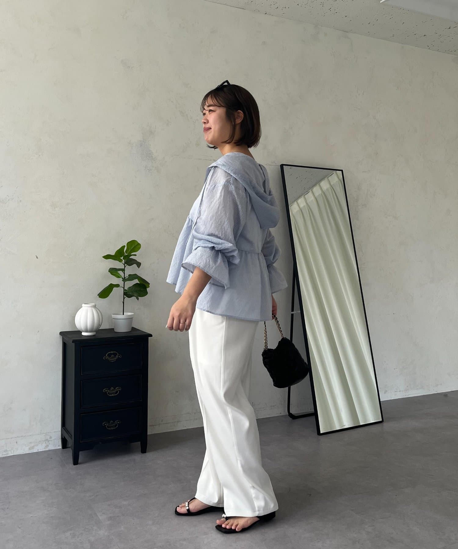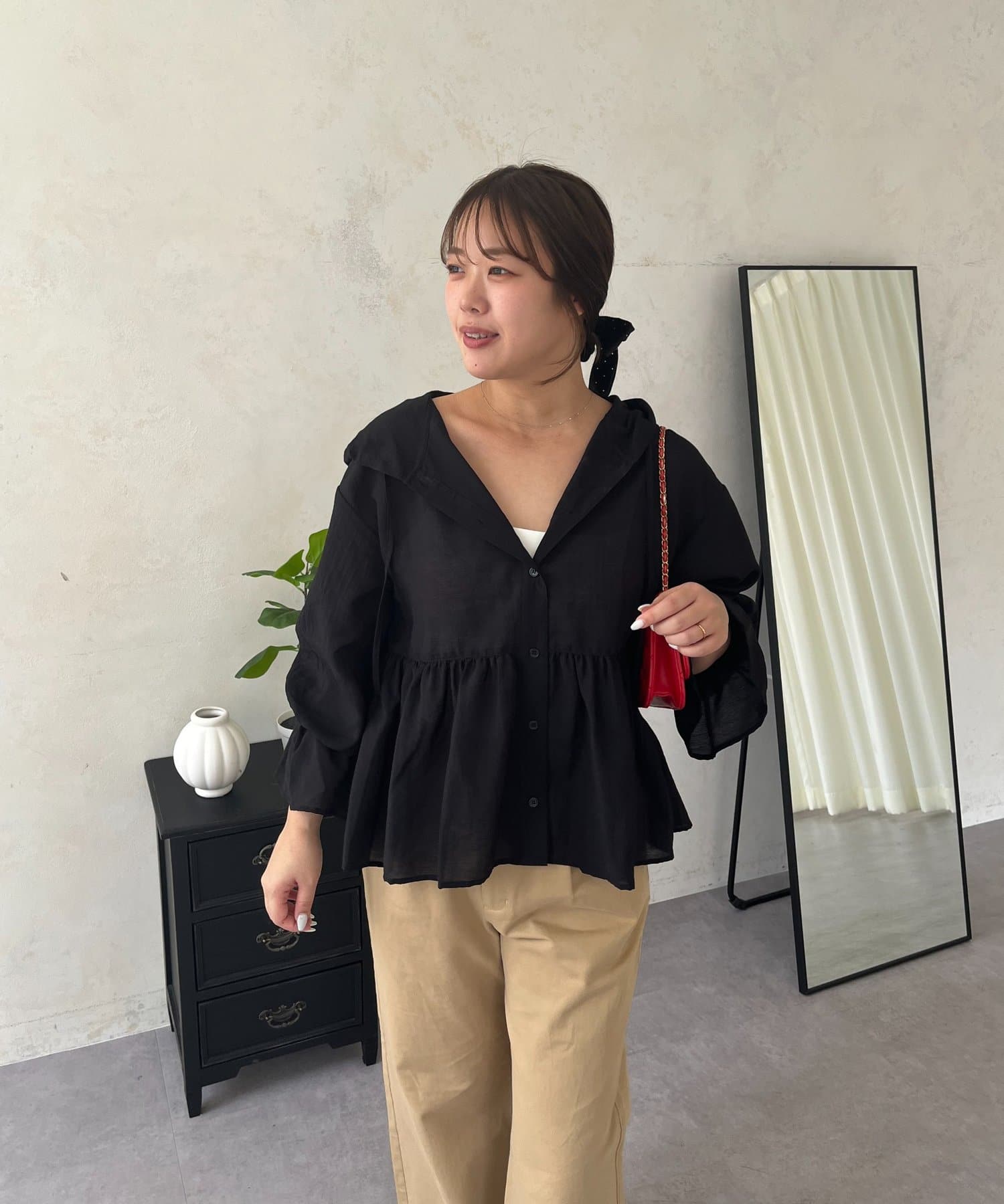 ●夏もさらっと羽織りとして使えるシアーシャツ