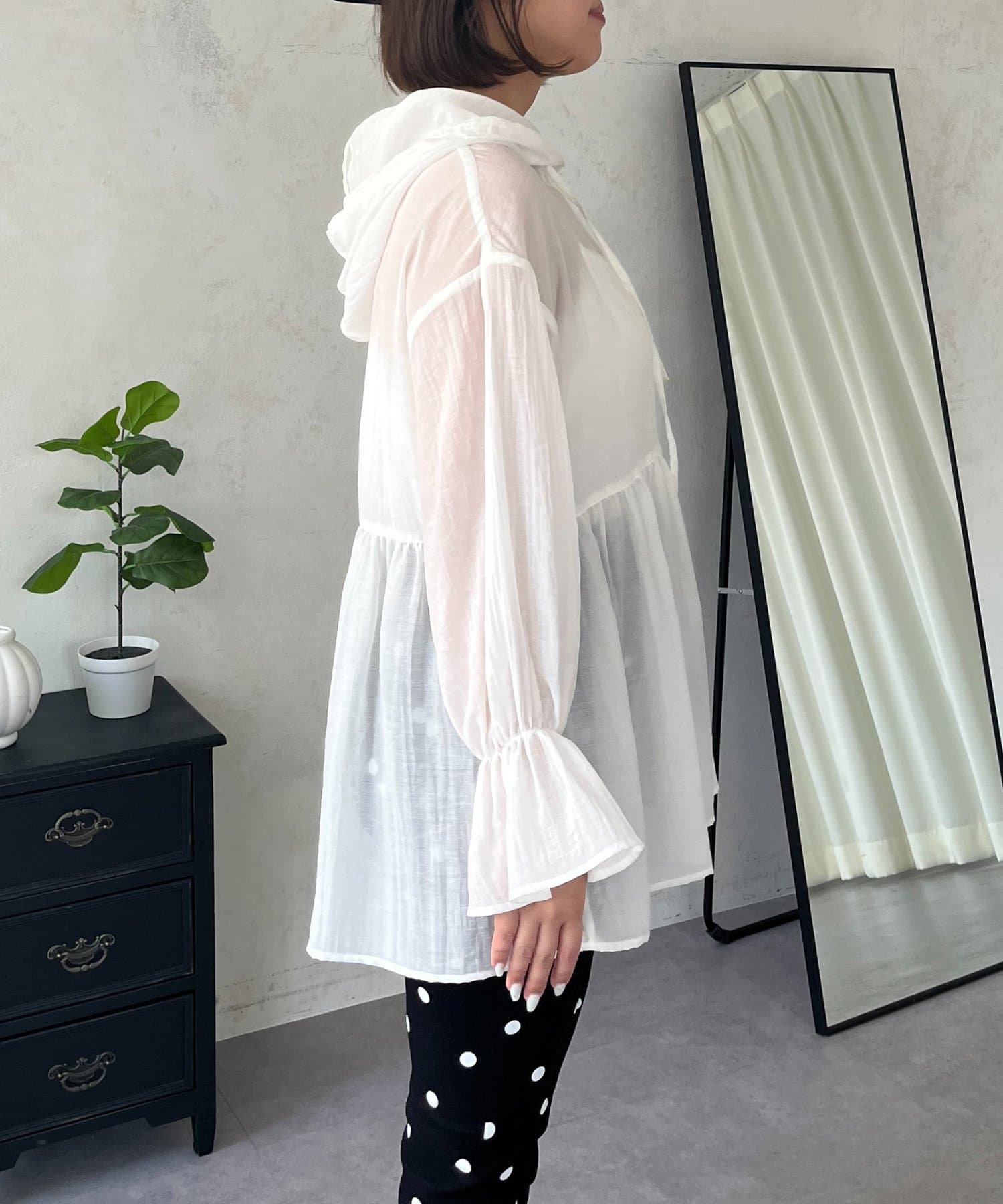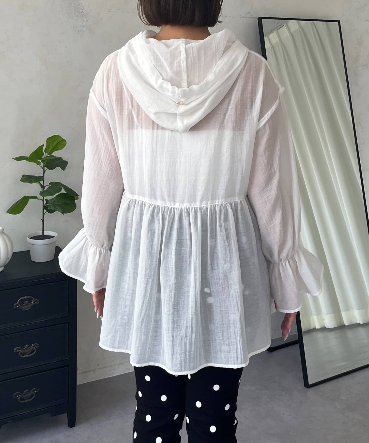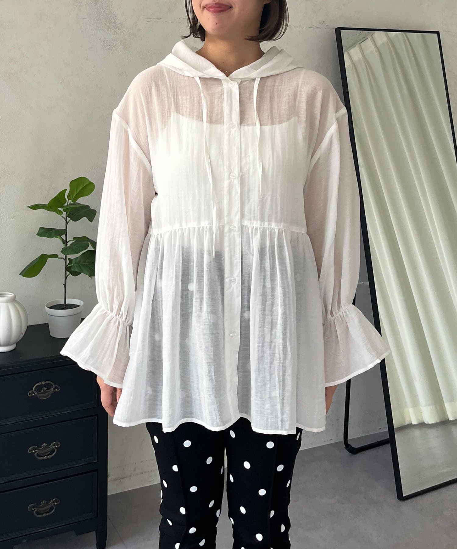 【SAPON】フードメタルチャームシアーパーカーシャツ