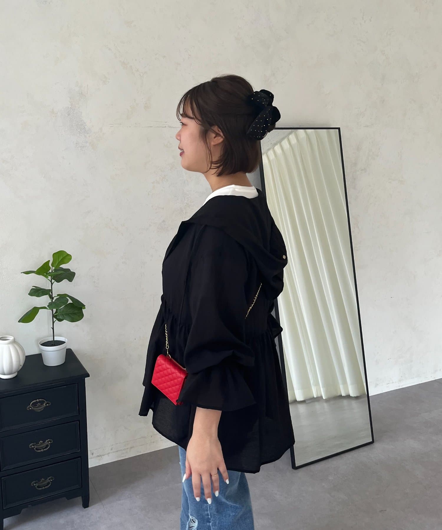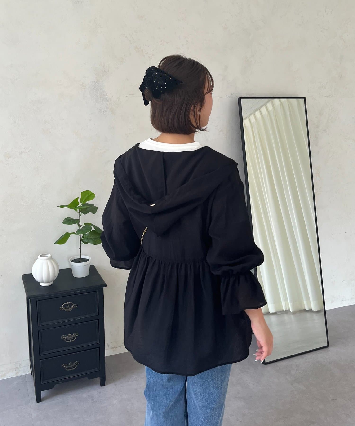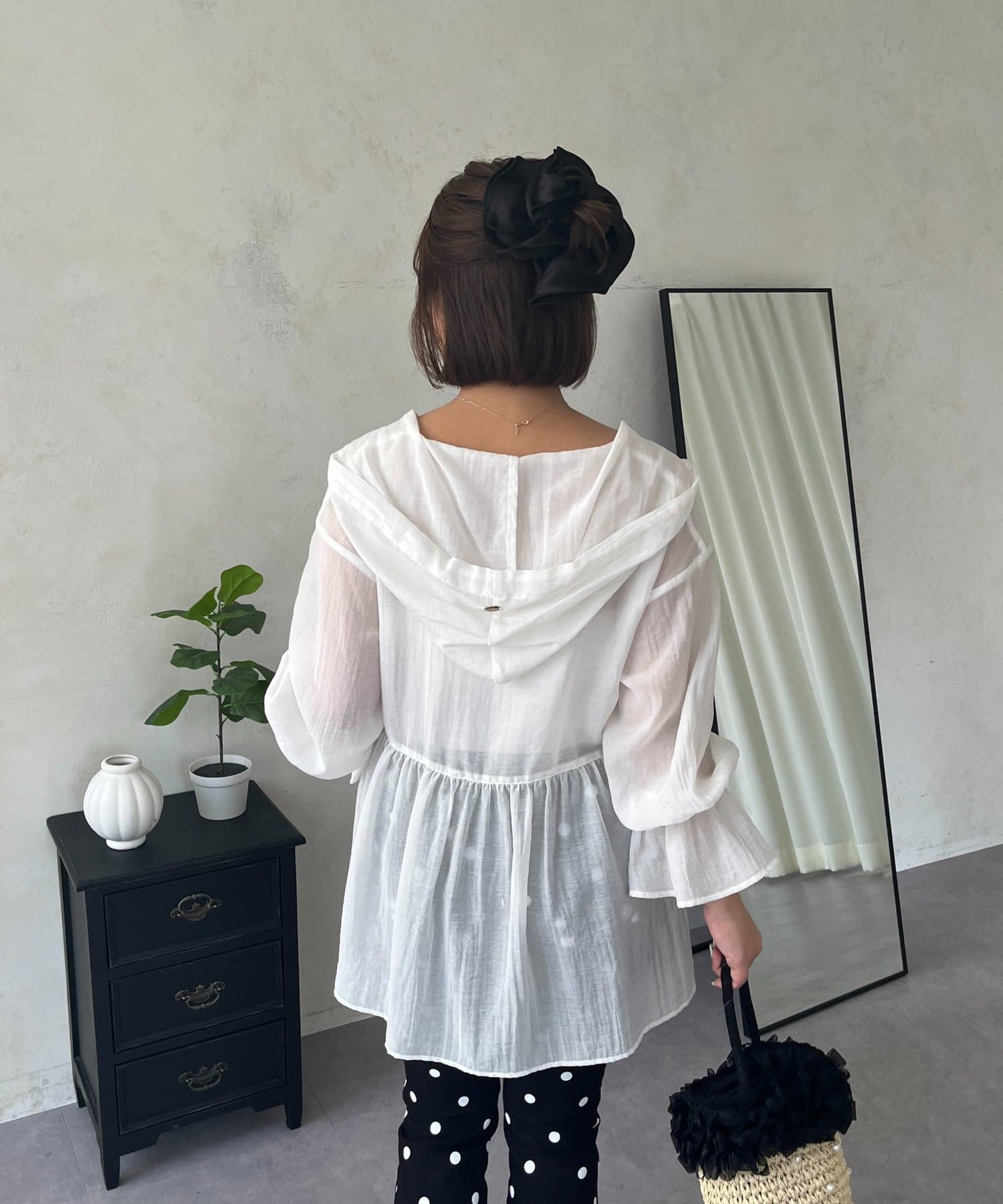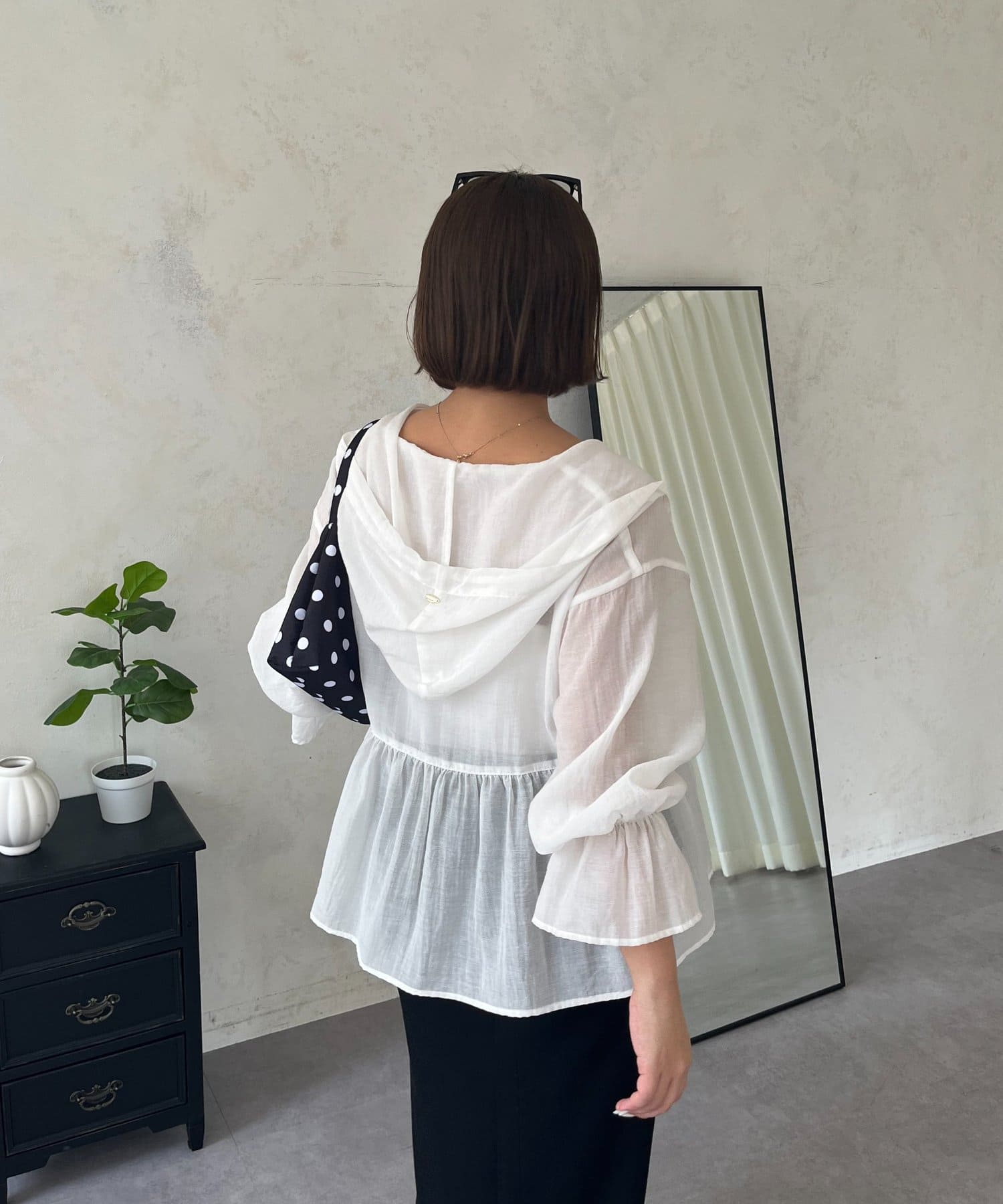 【SAPON】フードメタルチャームシアーパーカーシャツ
