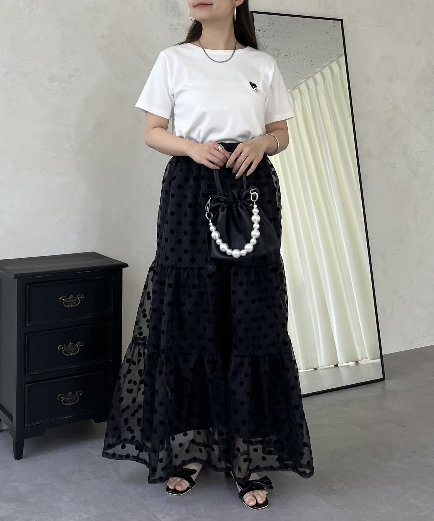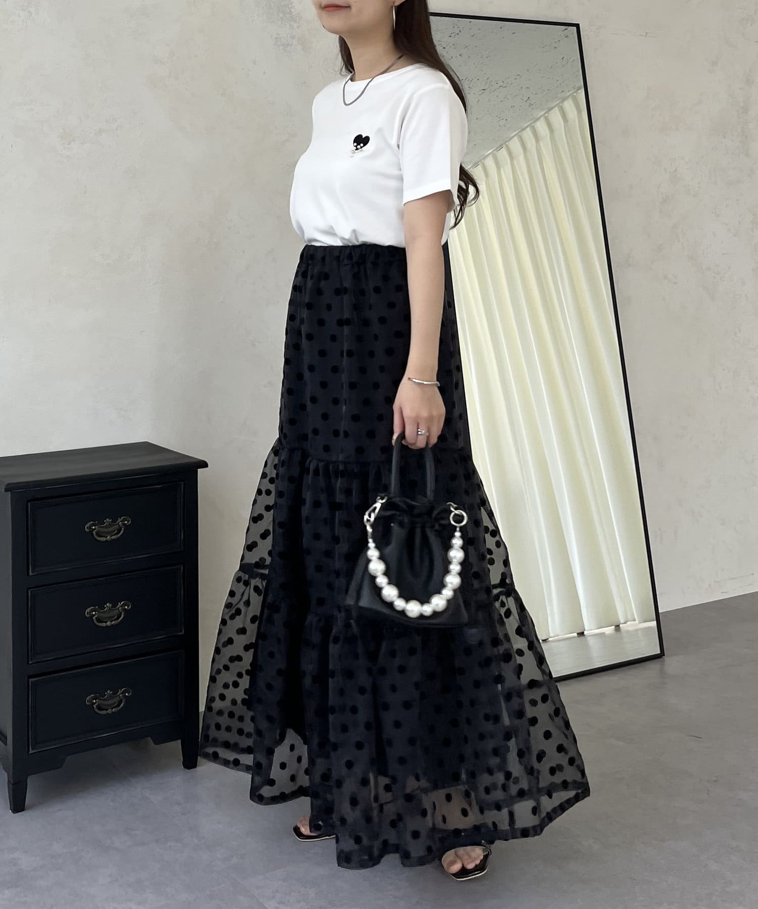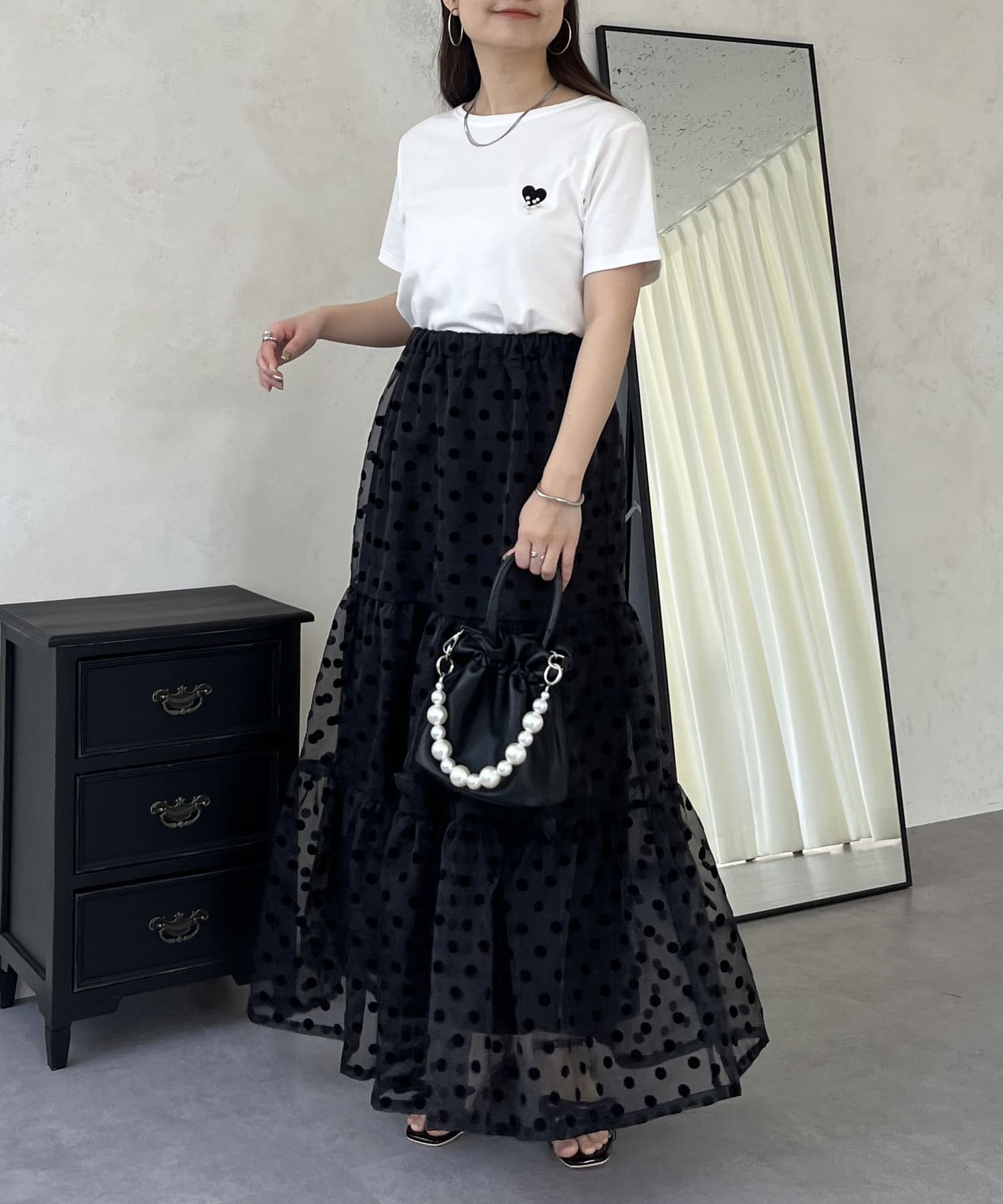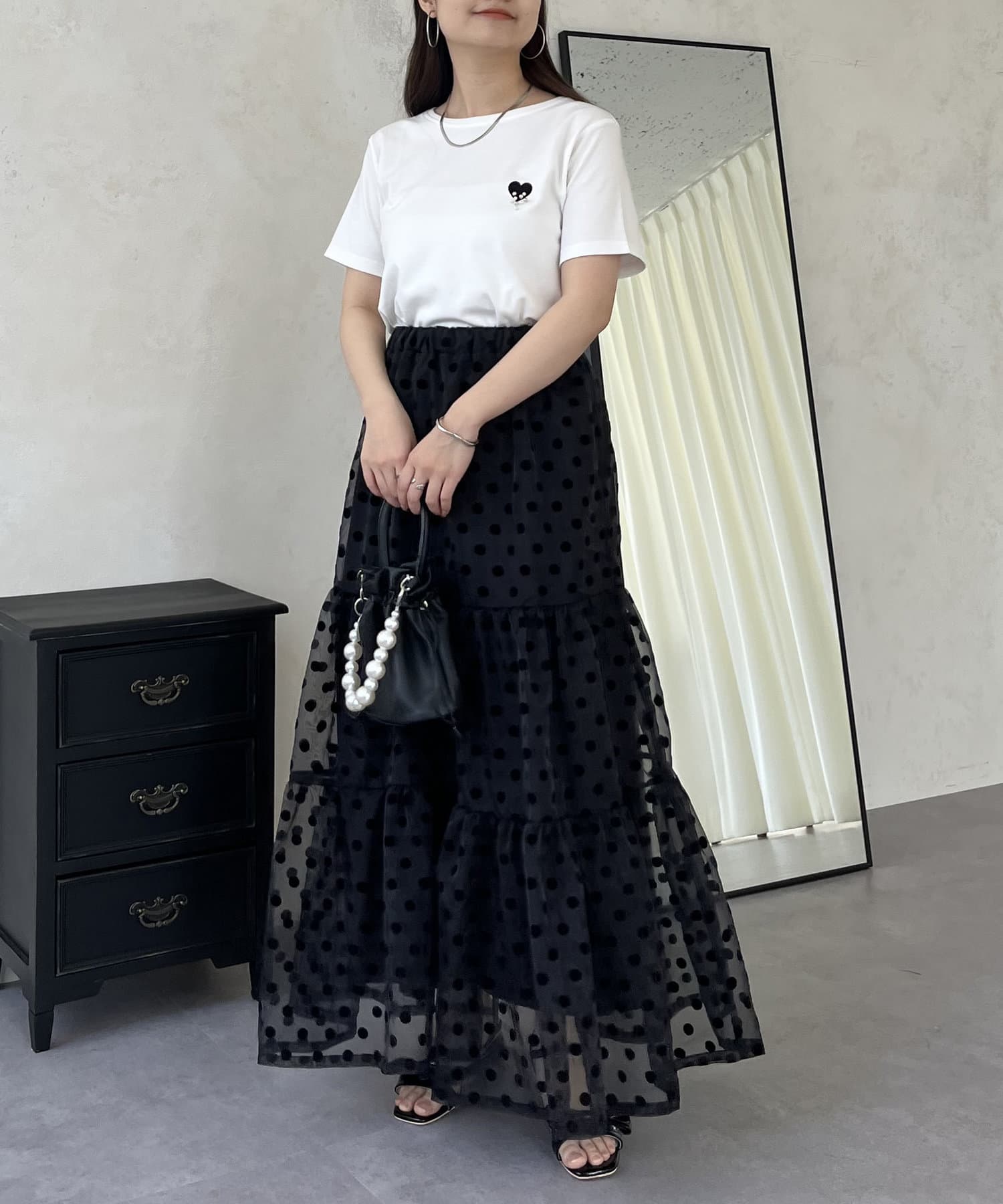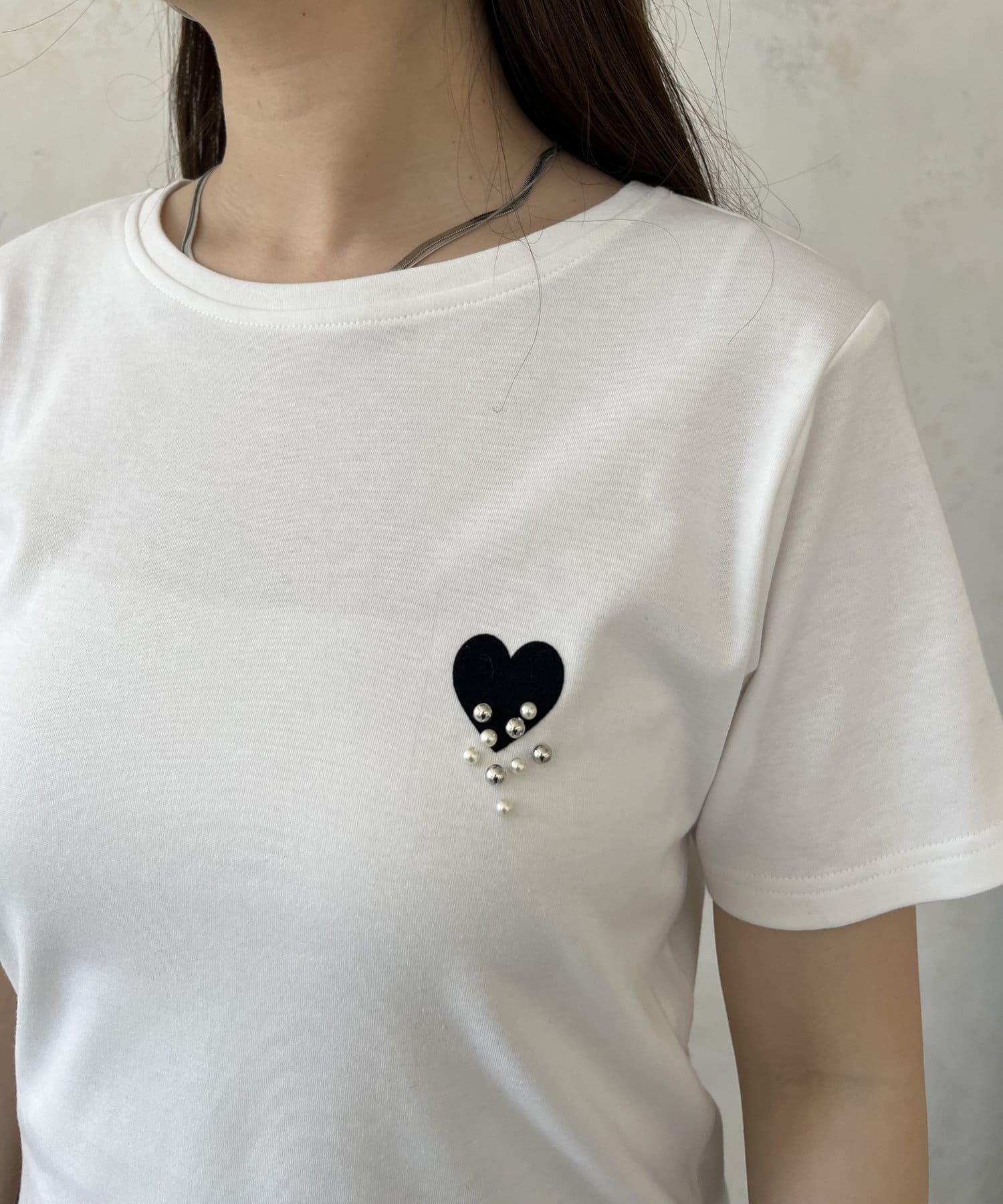 TOP > prose verse > レディース > トップス > Tシャツ/カットソー > フロッキーハートランダムパールTシャツ