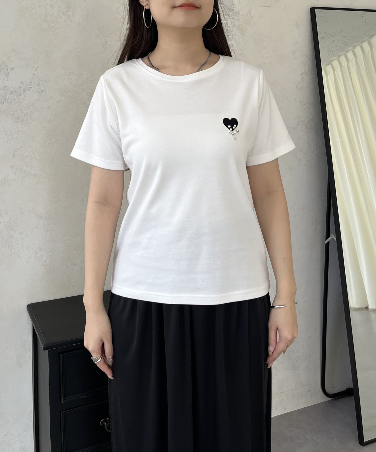 ハートがシンプルな白Tシャツのポイントになってすごくかわいいです○