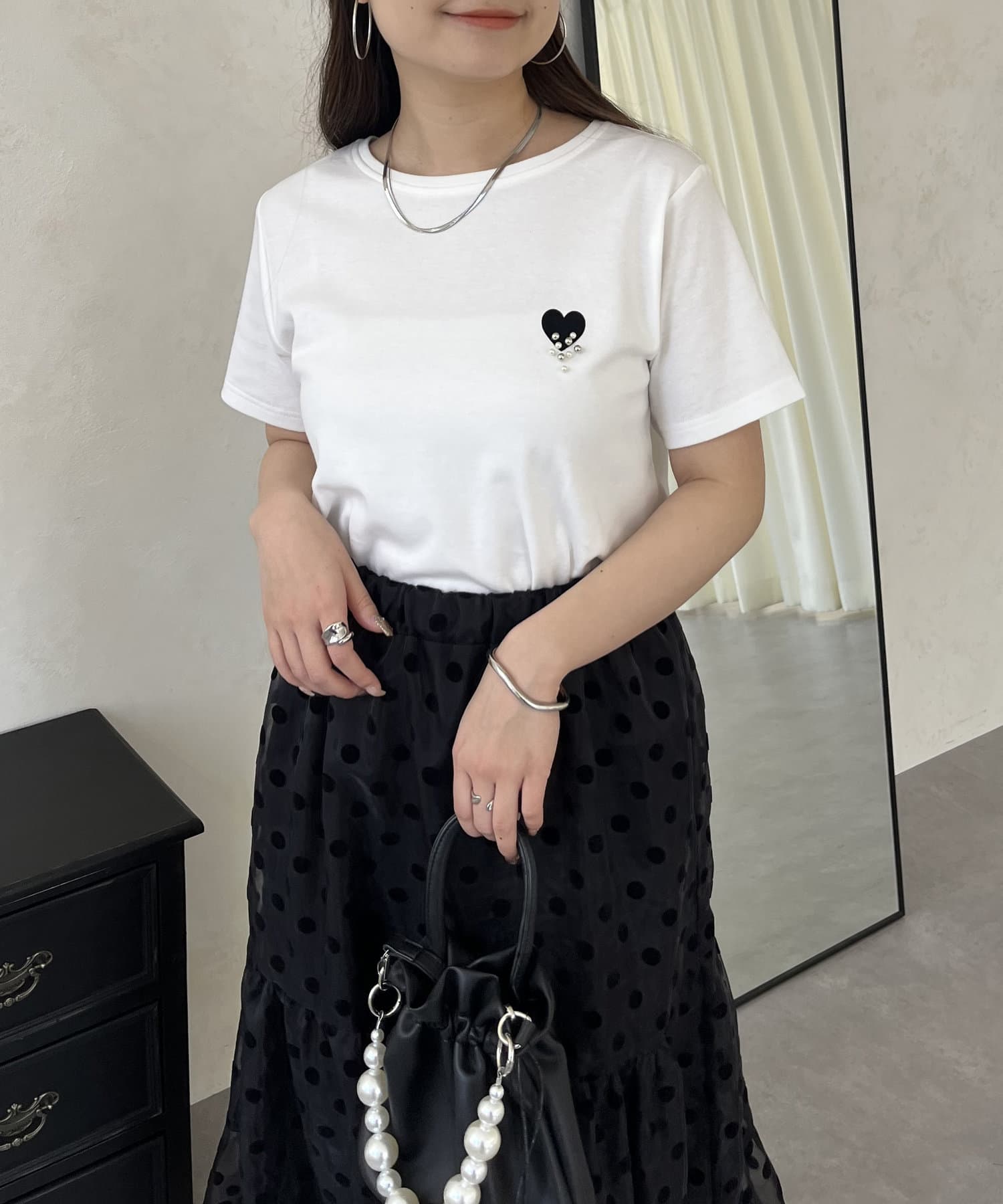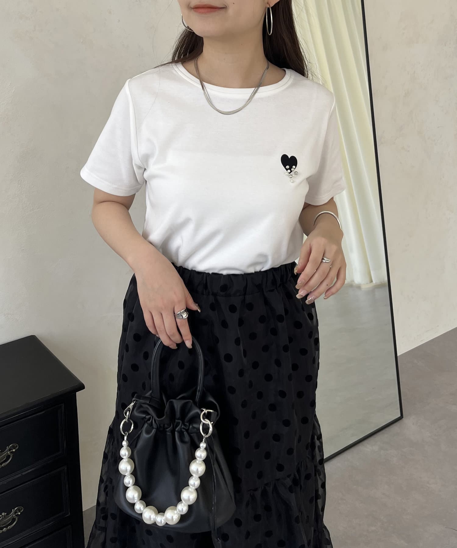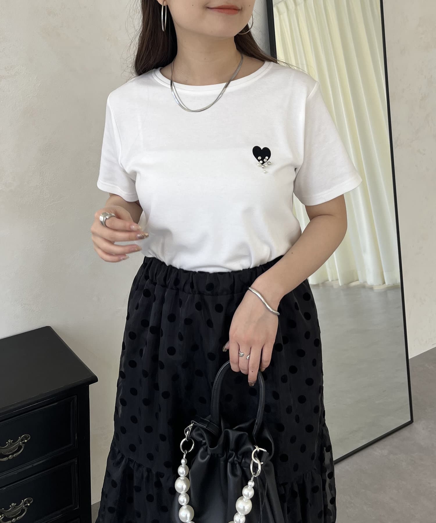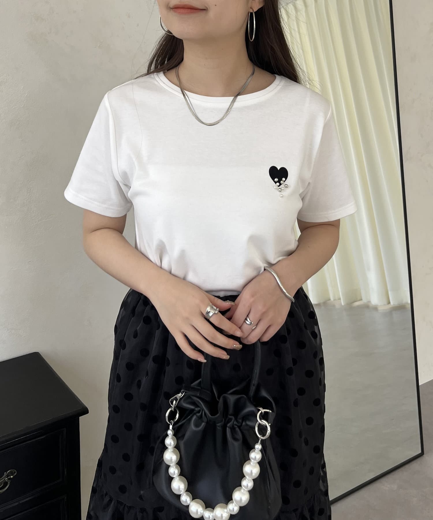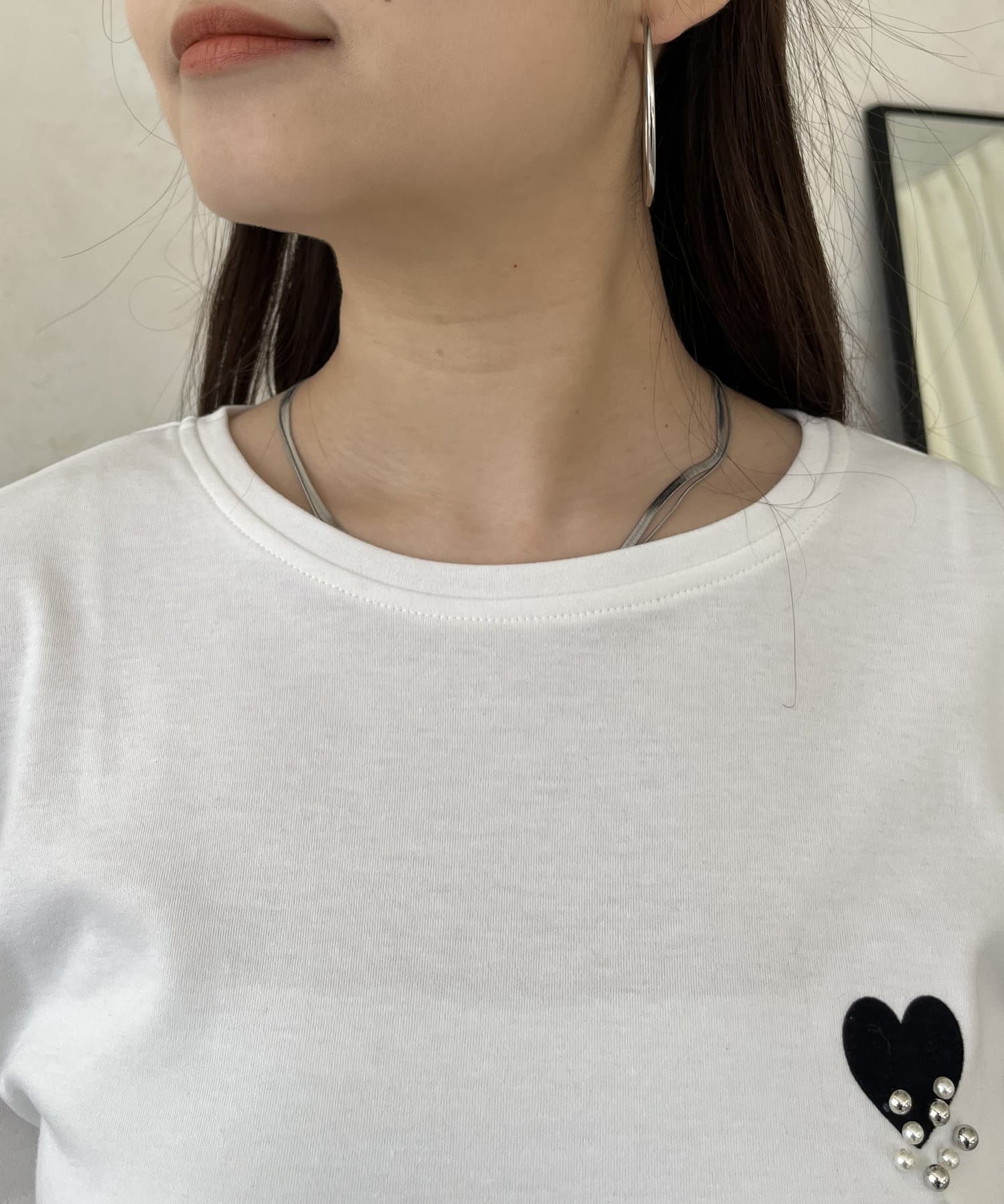 ハート/Tシャツ/パール/大人カジュアル