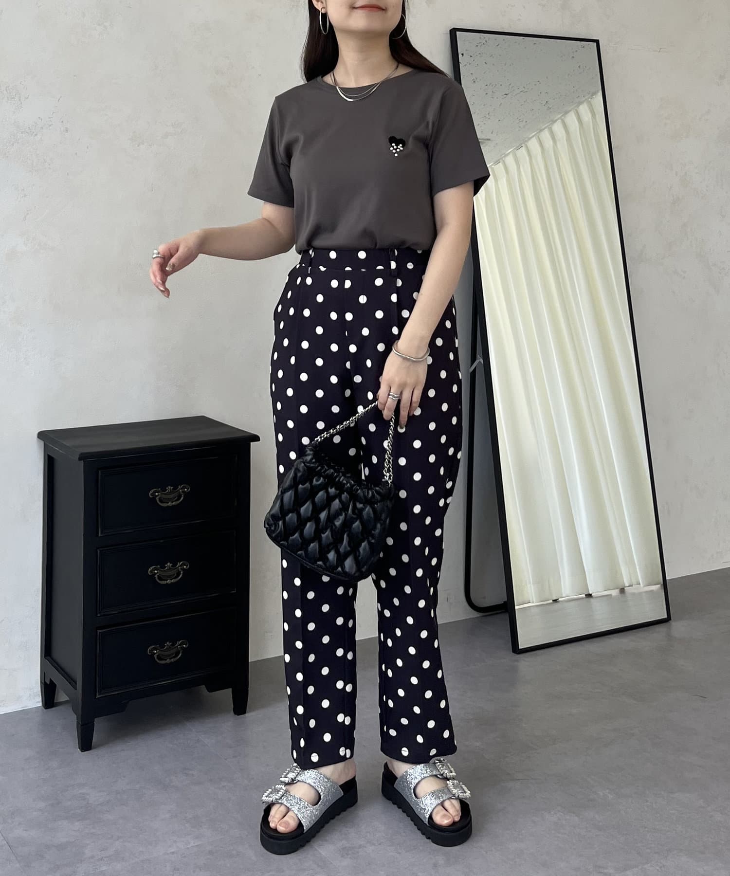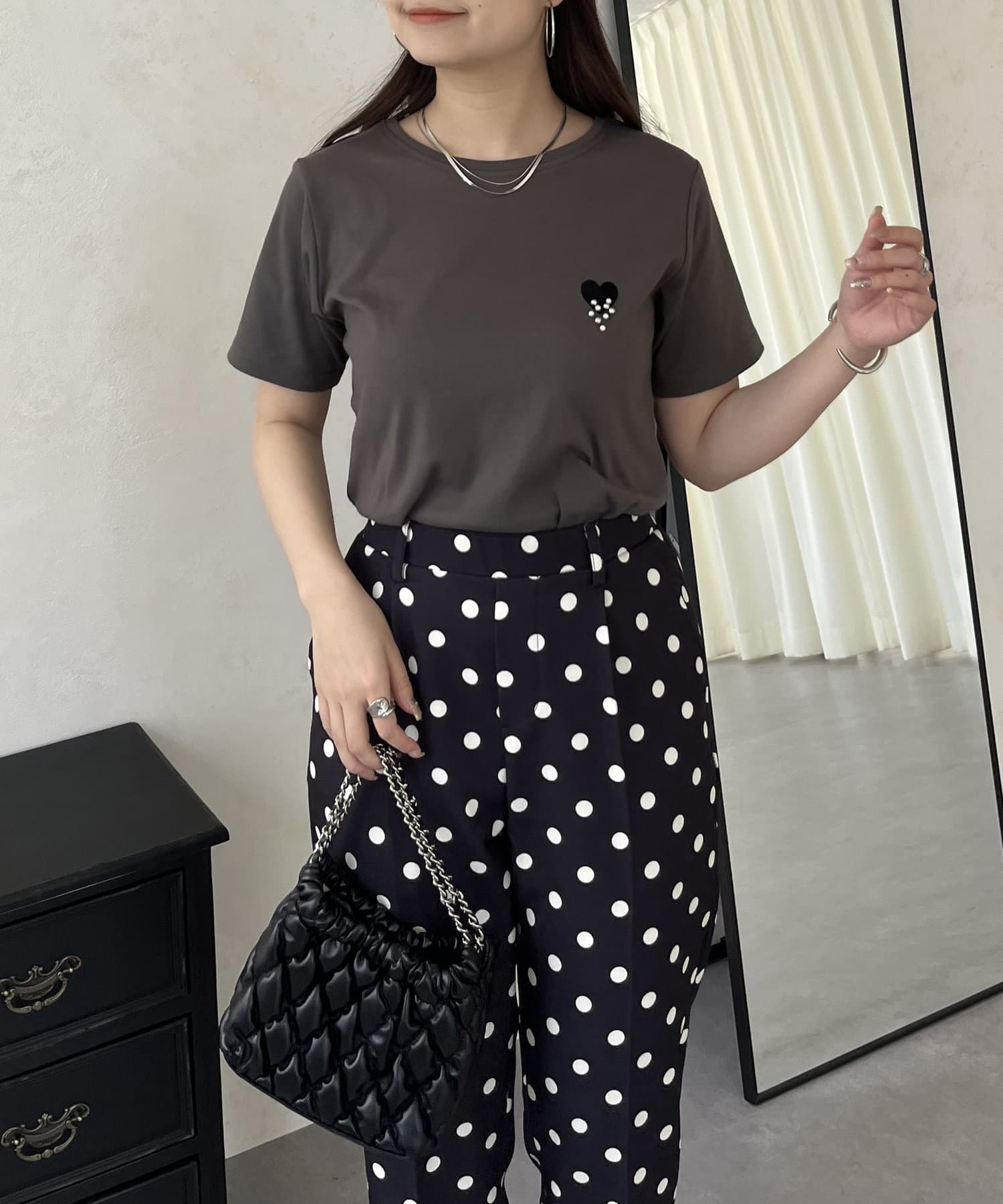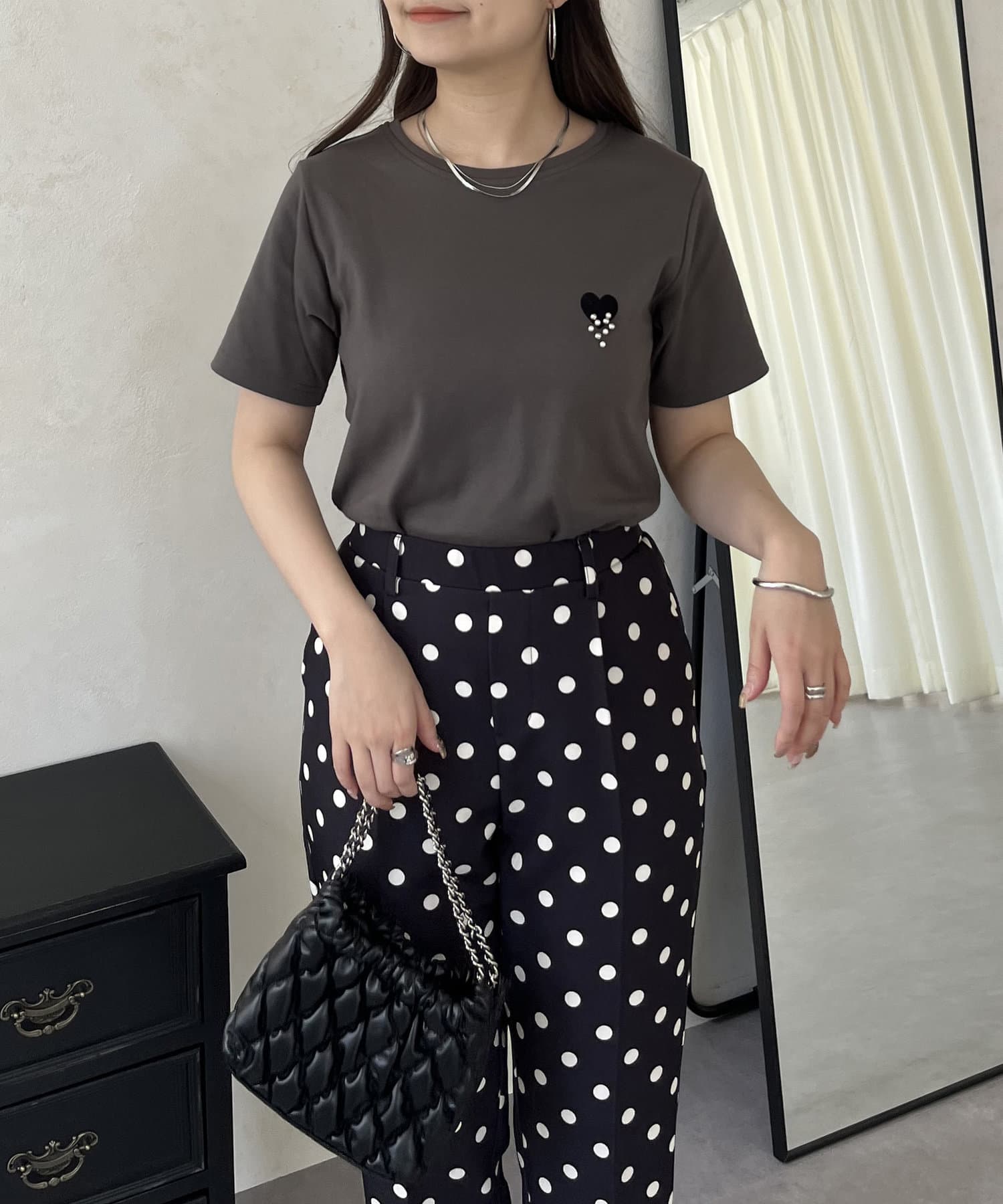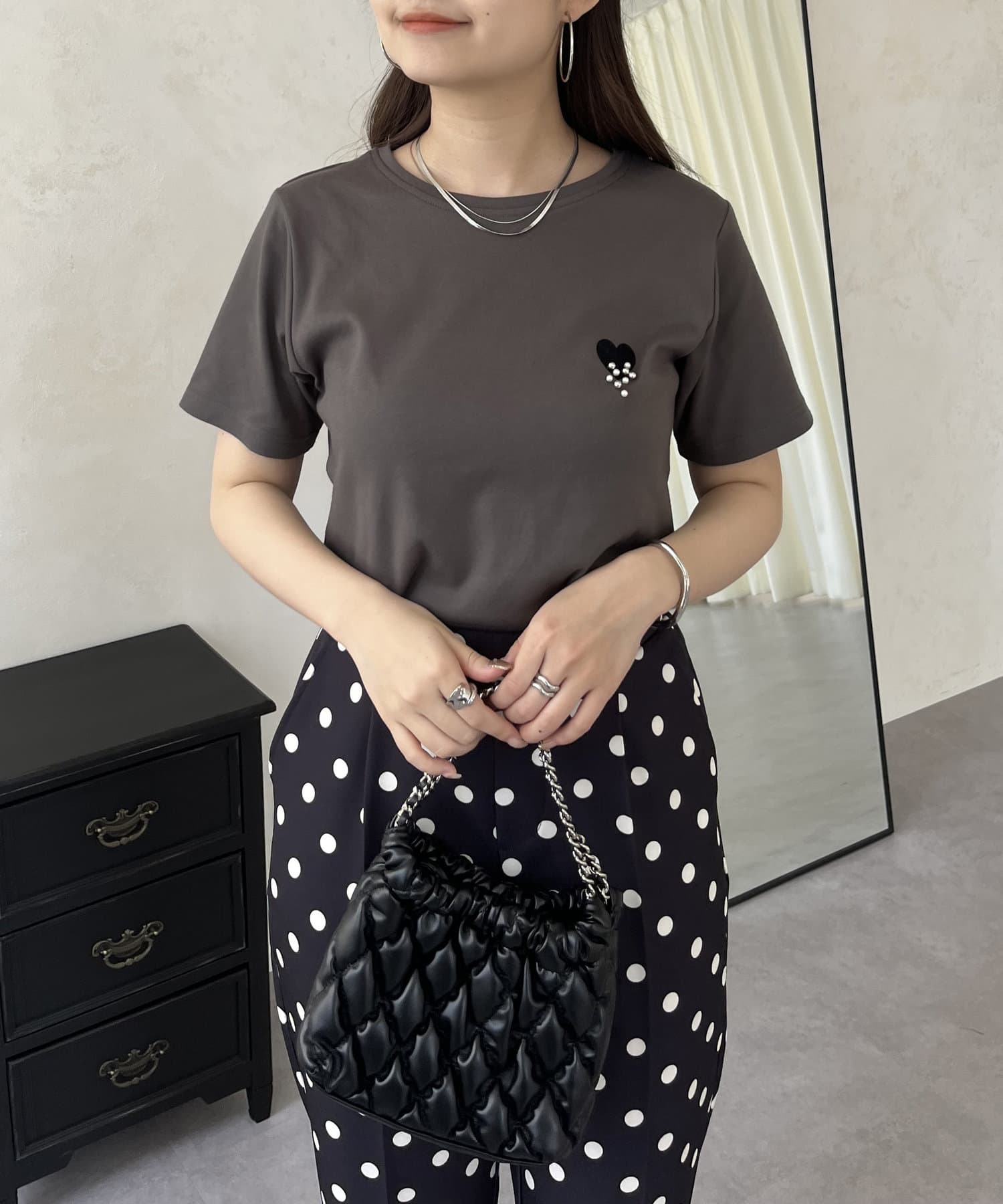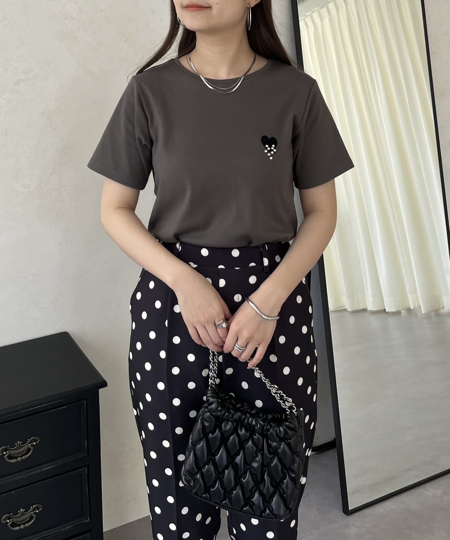 ハート/Tシャツ/パール/大人カジュアル