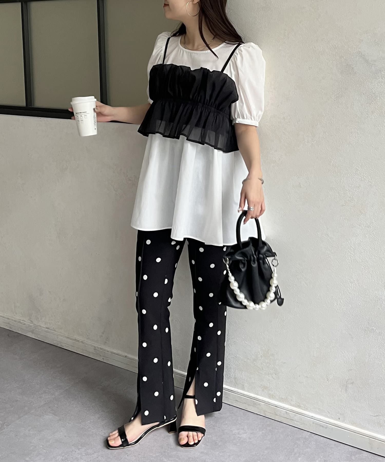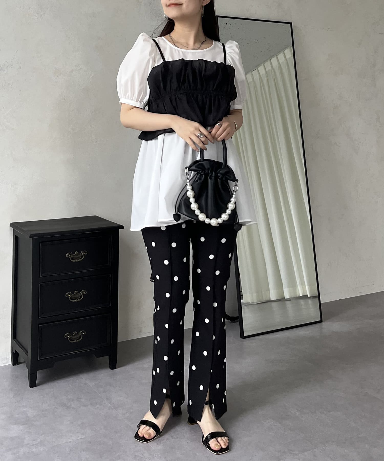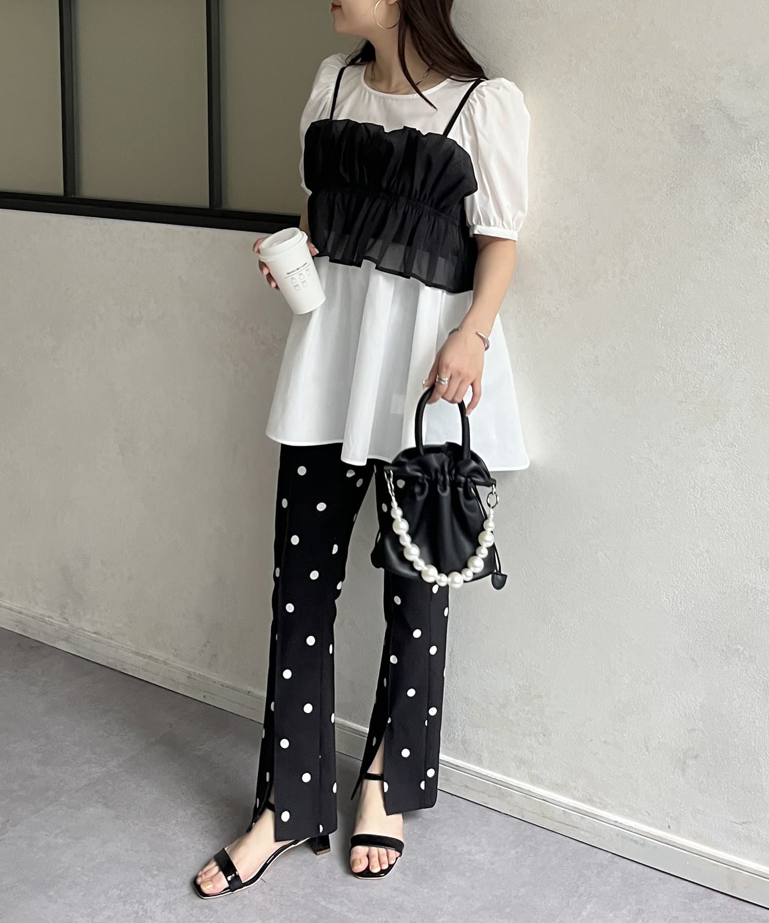 ●お持ちのTシャツやシャツにビスチェを重ねてこなれ感を演出できます