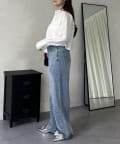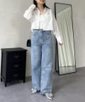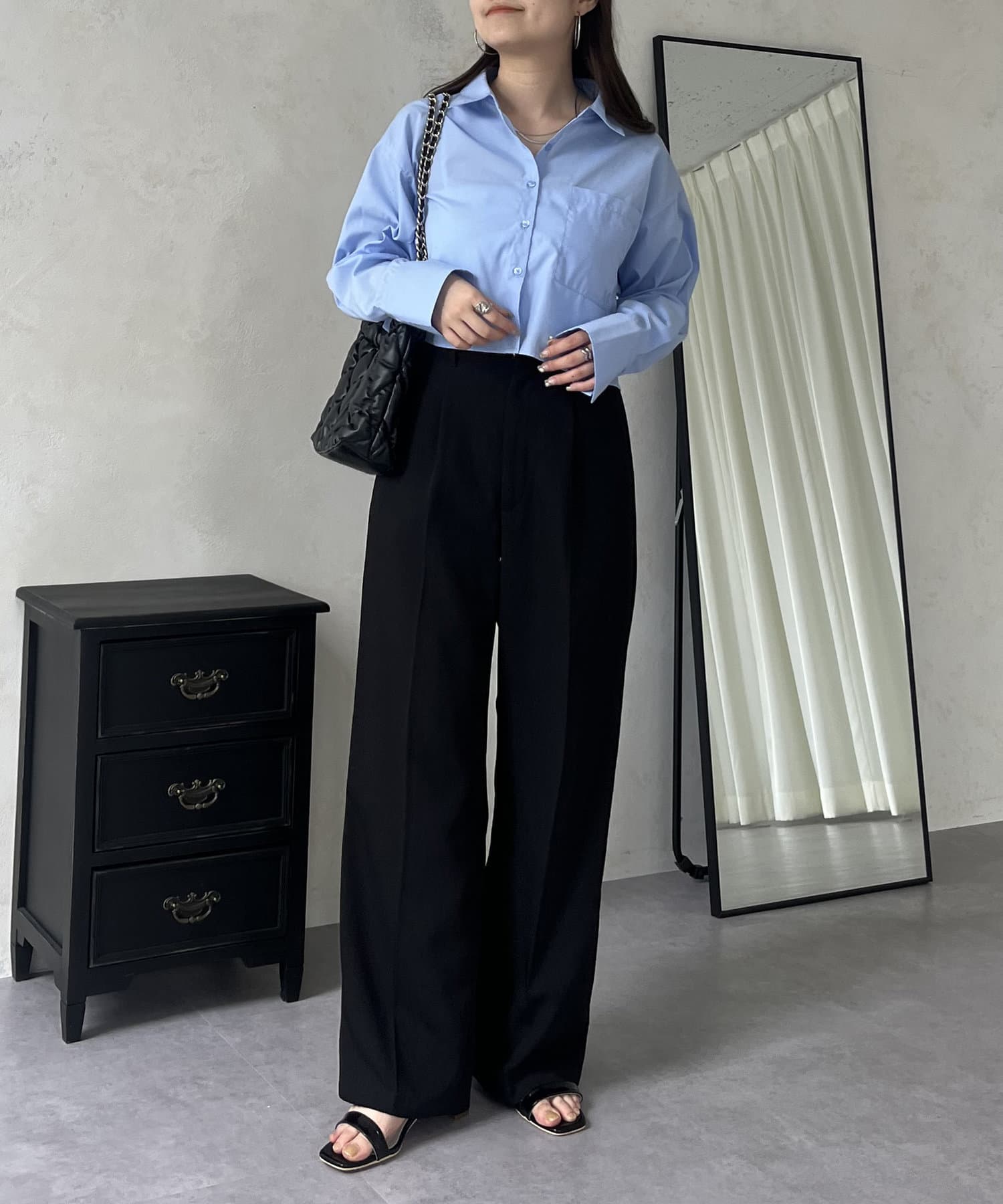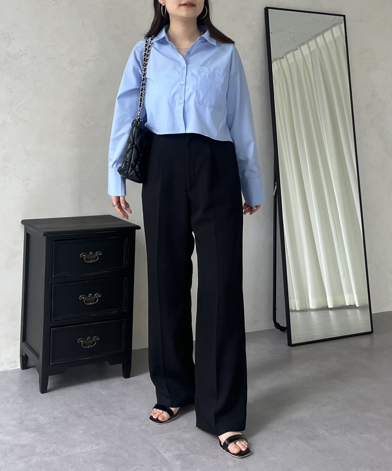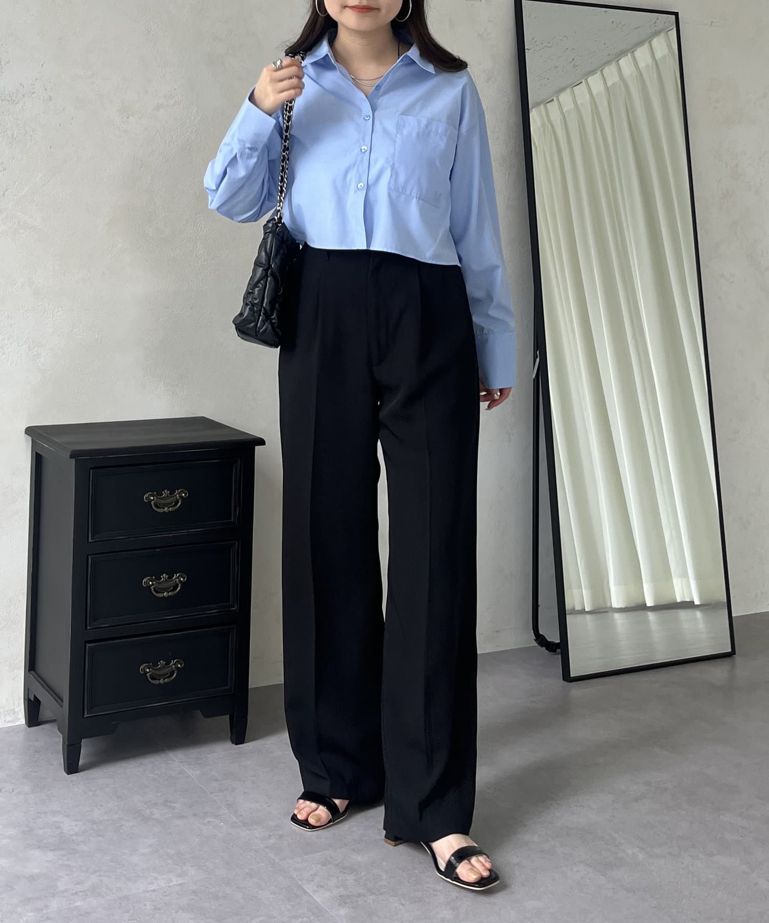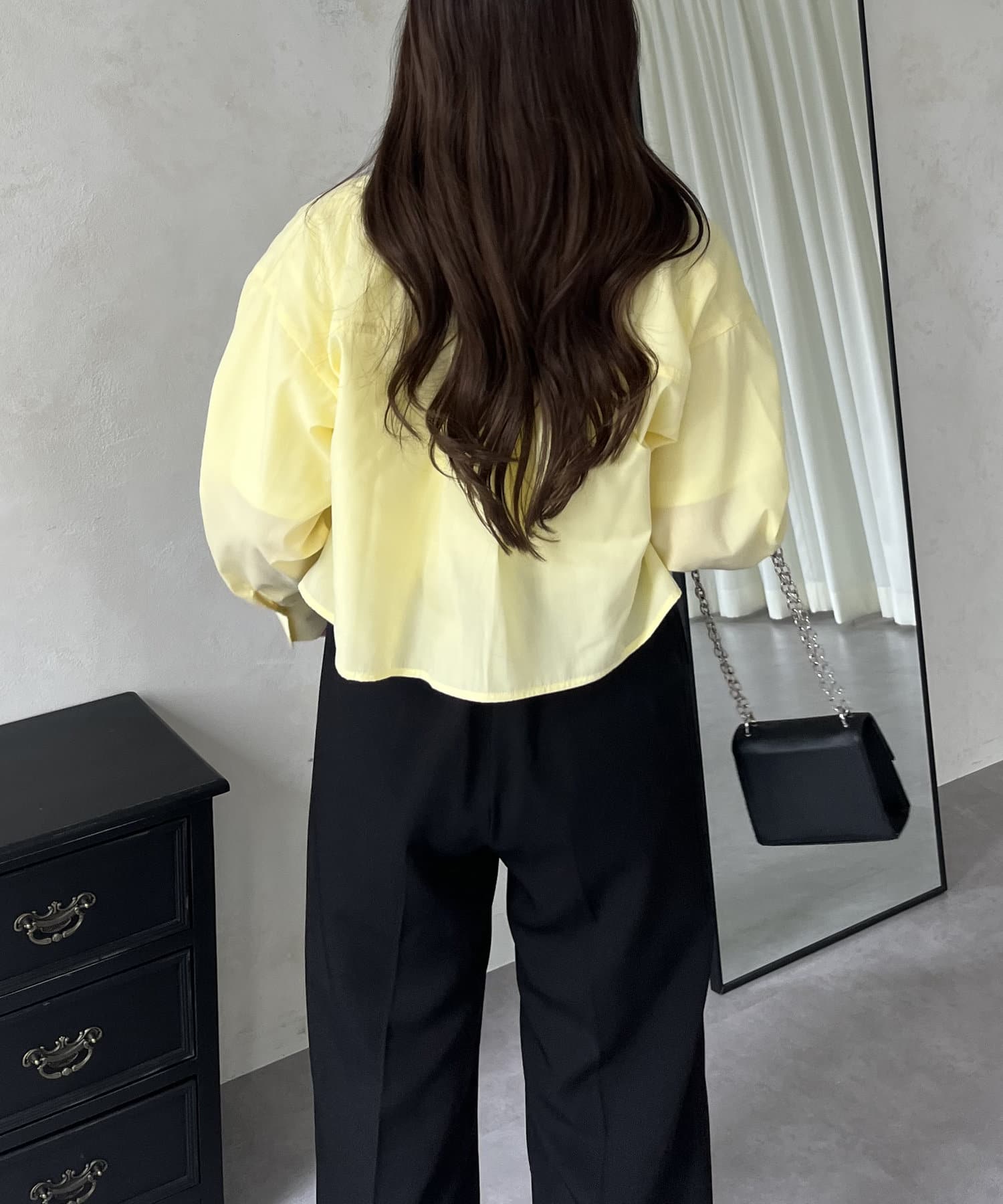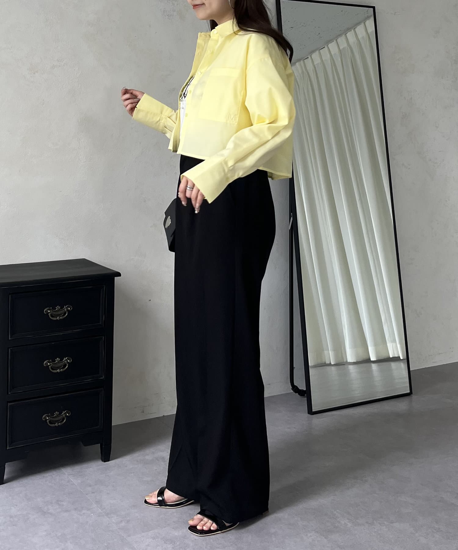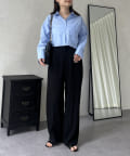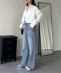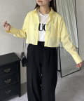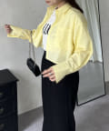 ●ショート丈なのでハイウエストボトムはもちろんボリューミーなボトムともバランス良く合わせやすいアイテムです