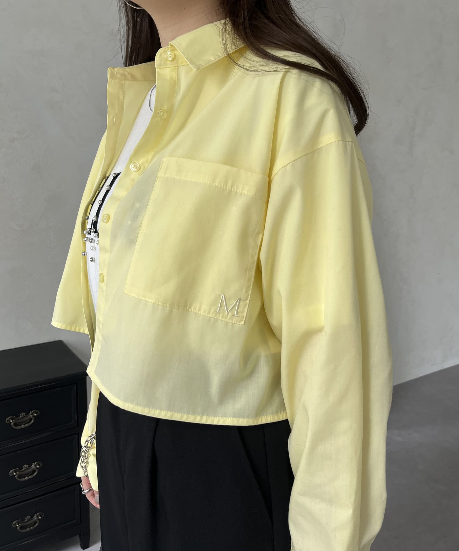 刺繍ミニロゴショート丈シャツ