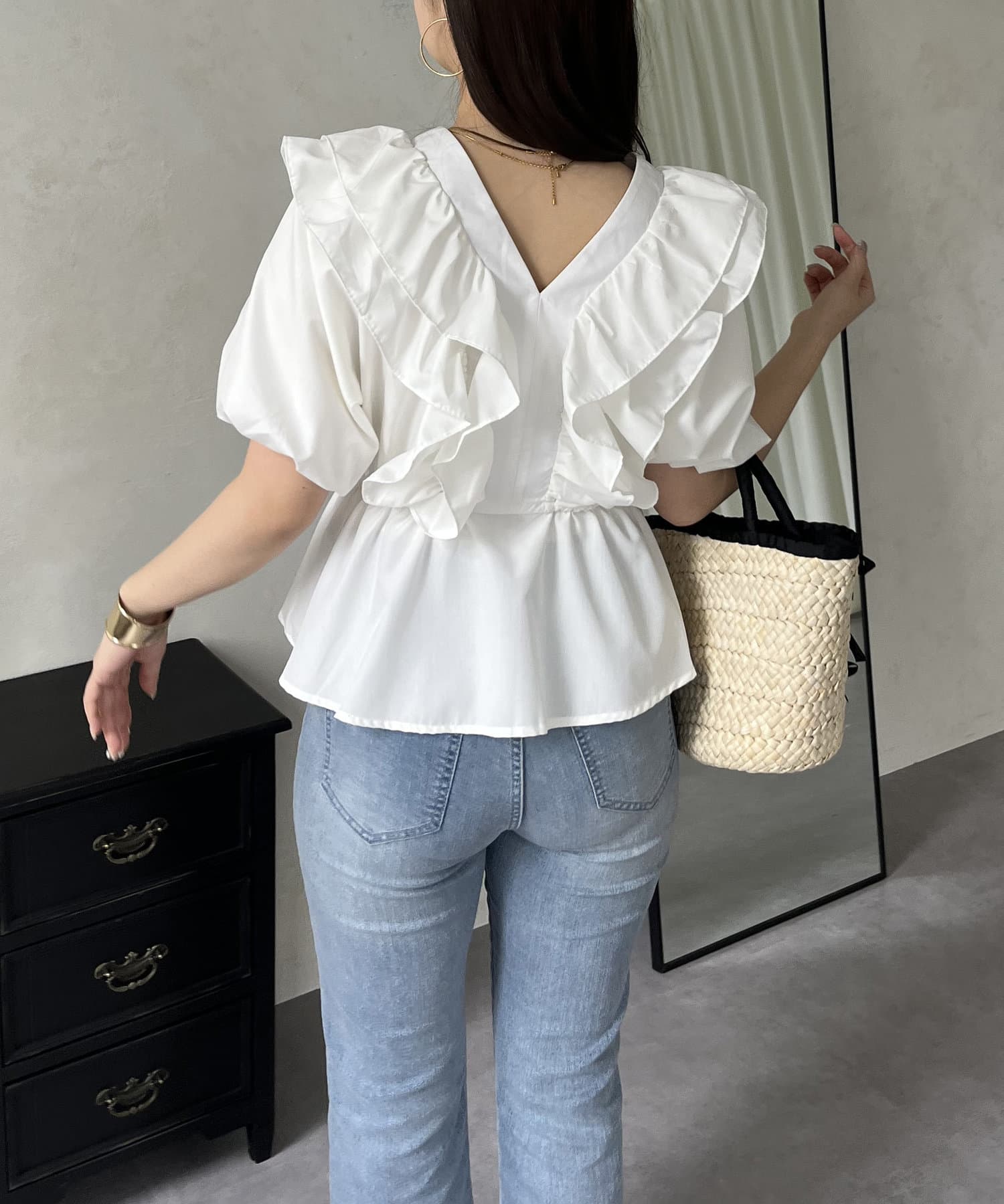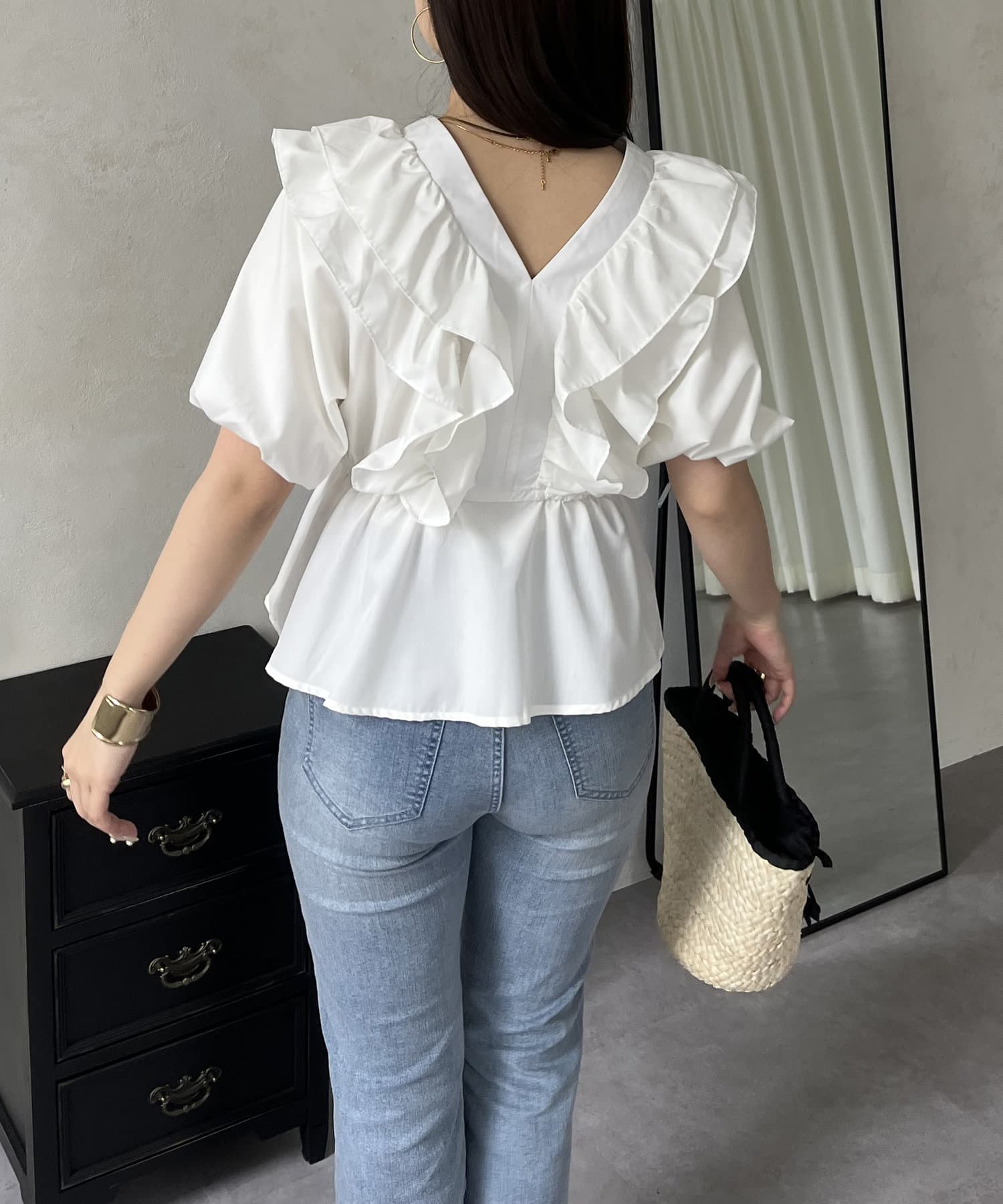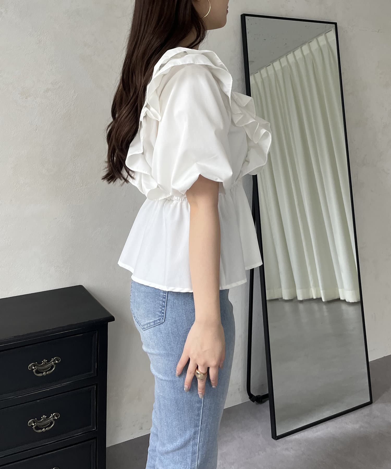 • prose verse(プロズヴェール) ダブルフリルバルーンスリーブペプラムブラウス