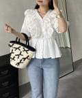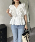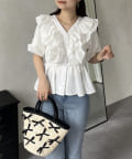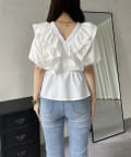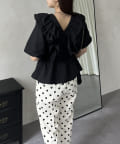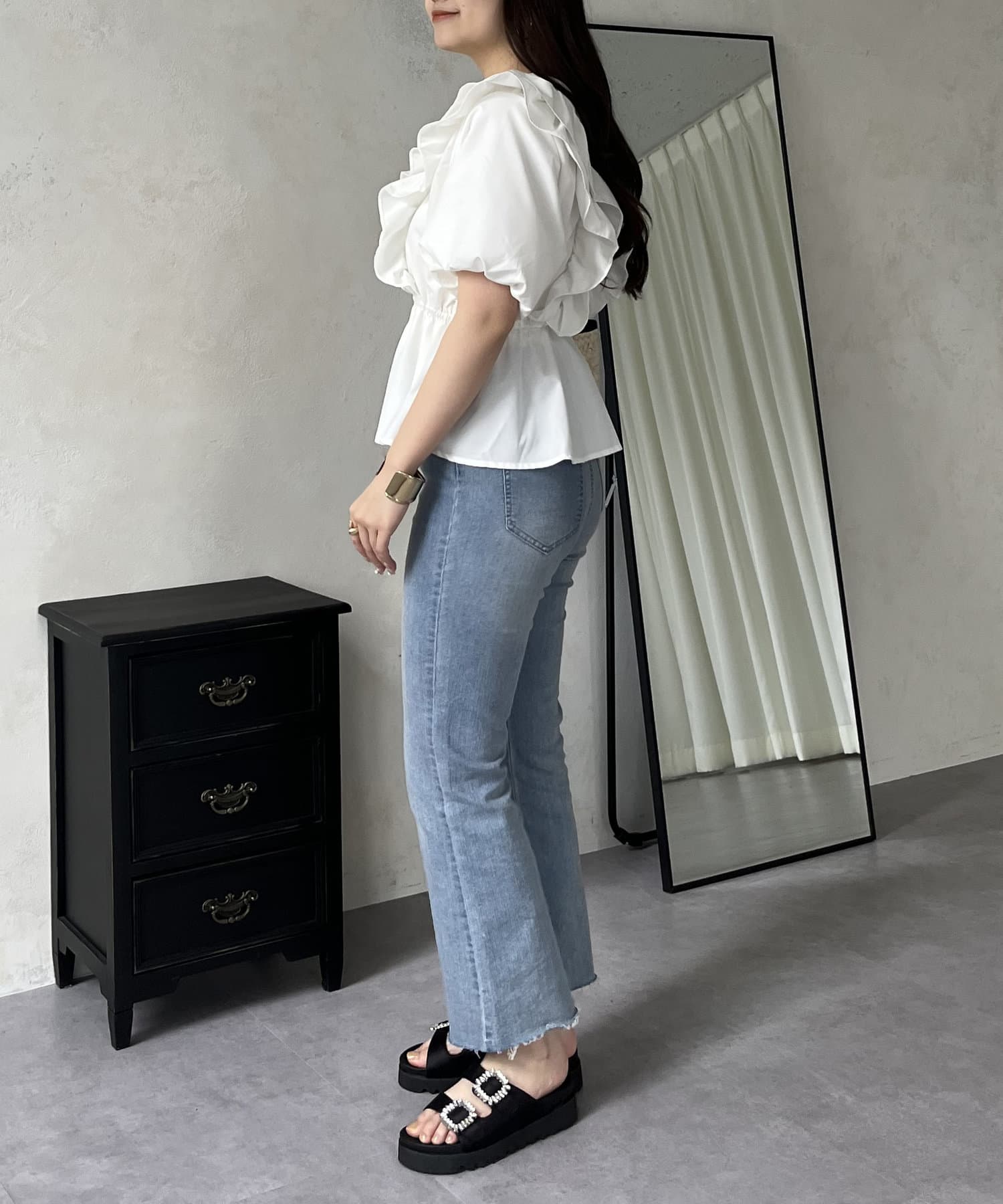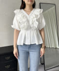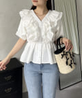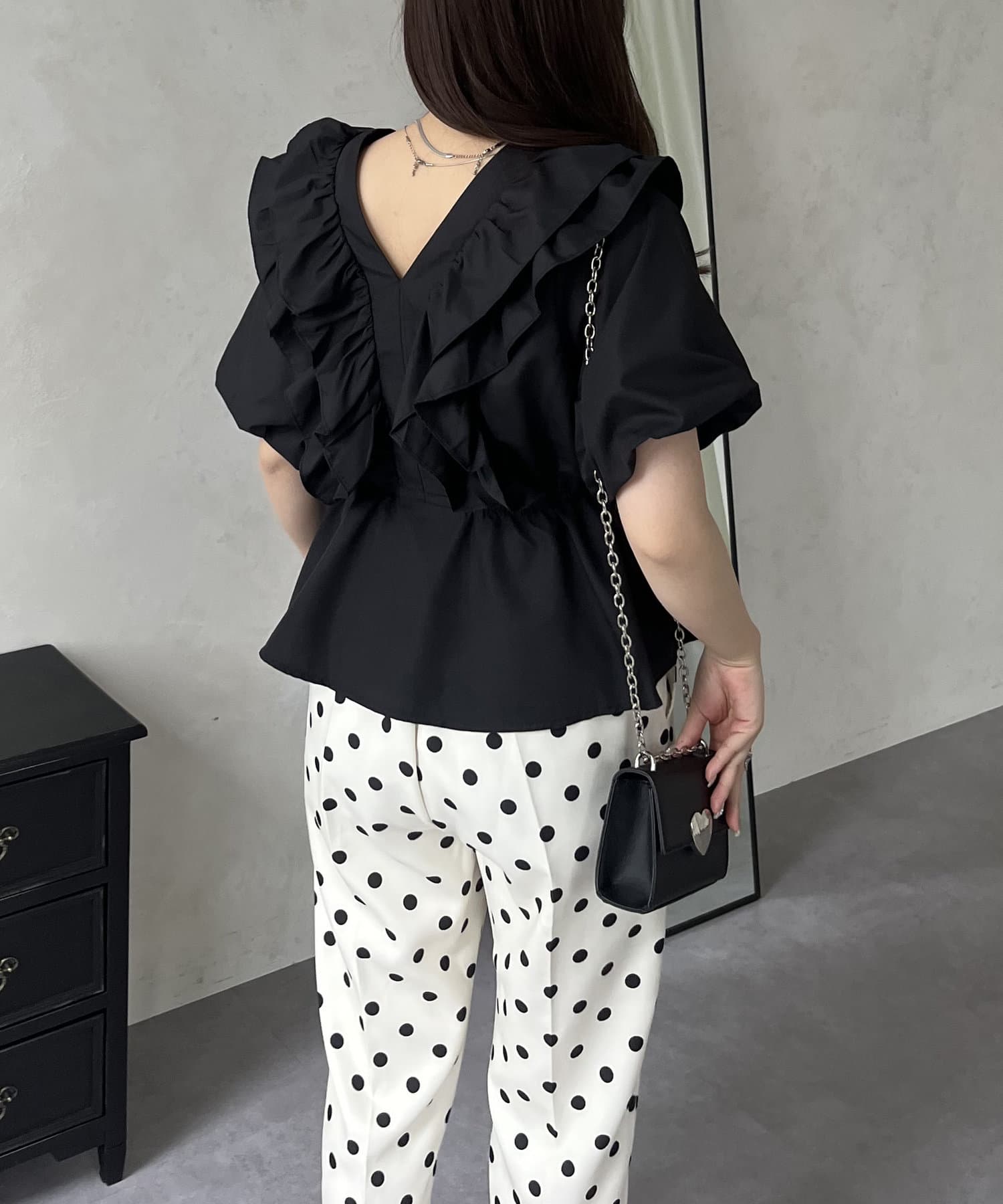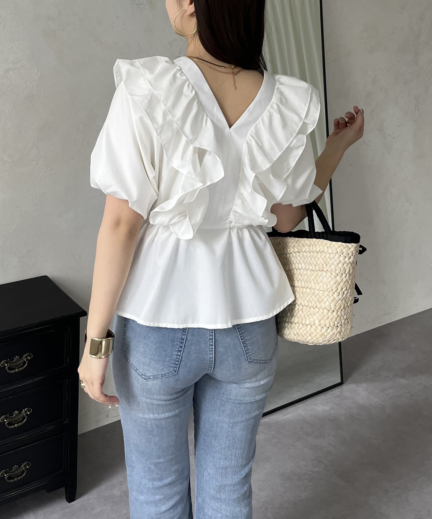 • prose verse(プロズヴェール) ダブルフリルバルーンスリーブペプラムブラウス
