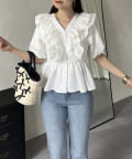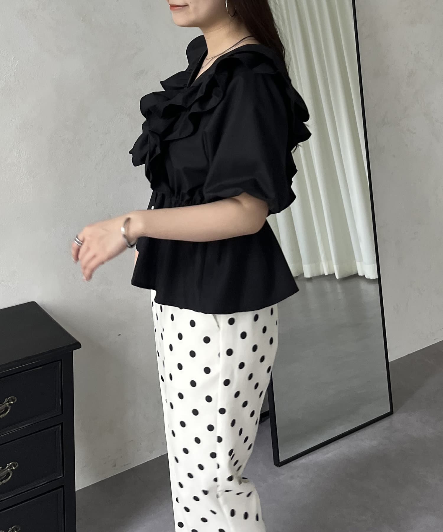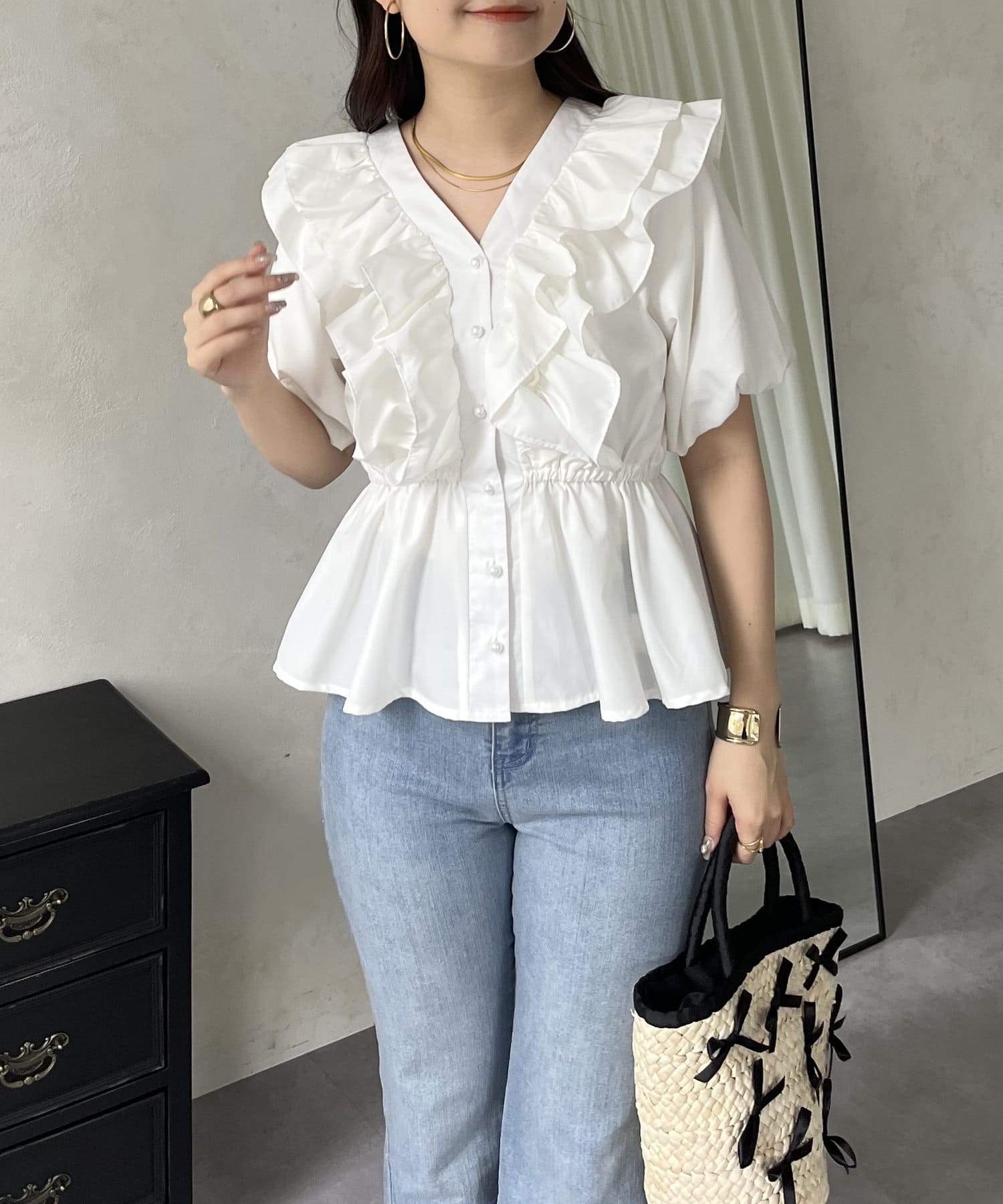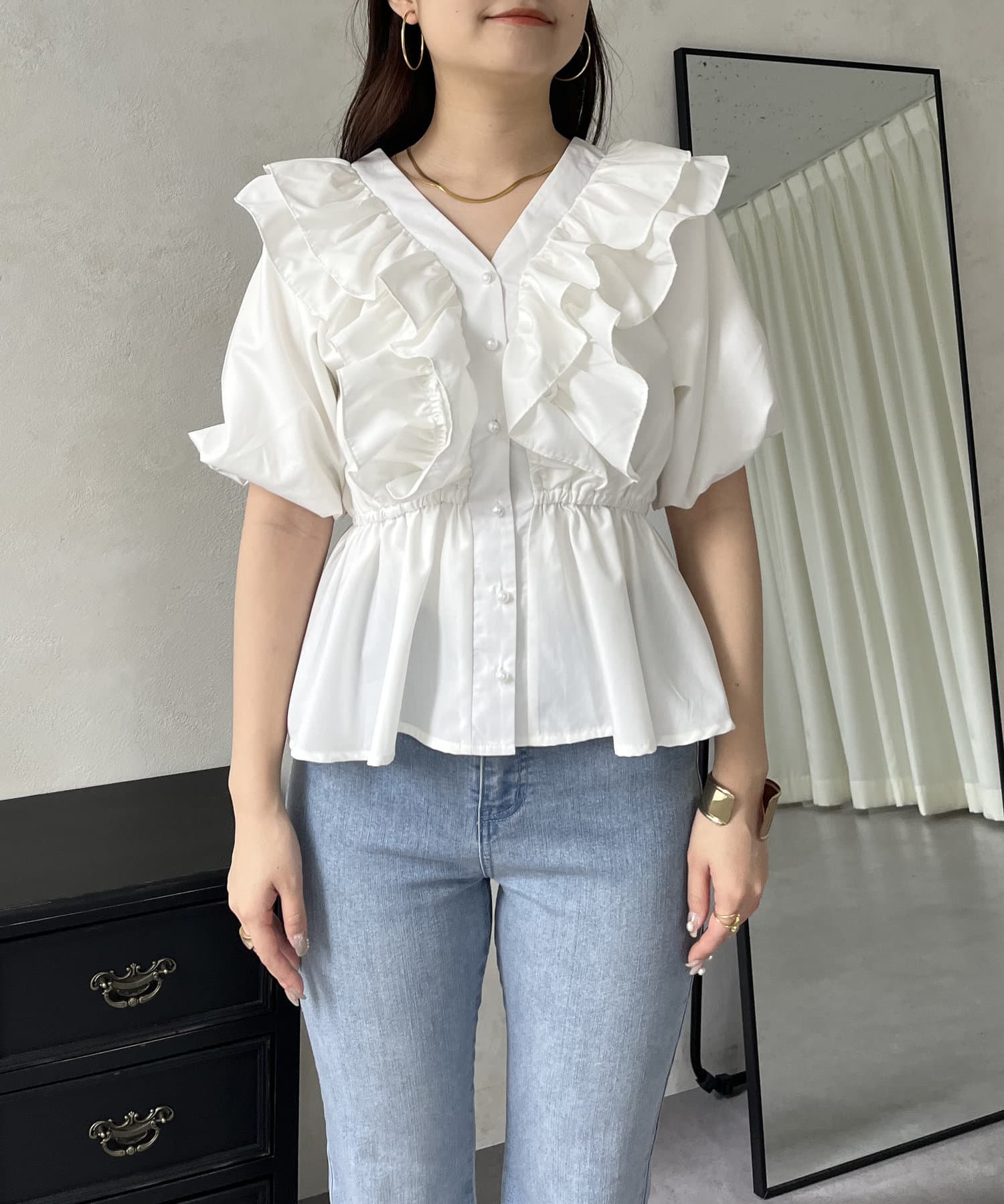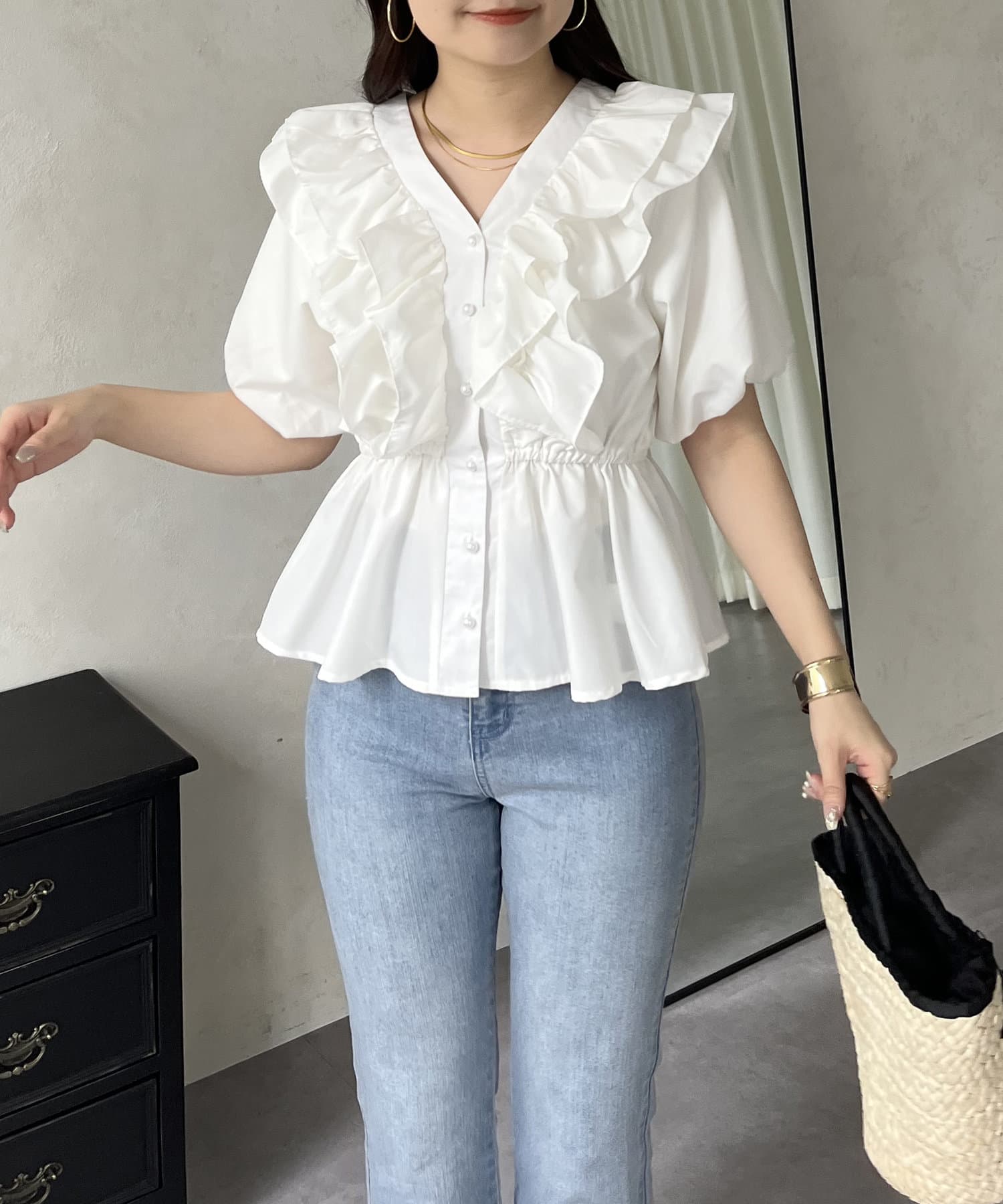 TOP > prose verse > レディース > トップス > シャツ/ブラウス(ボタン) > ダブルフリルバルーンスリーブペプラムブラウス