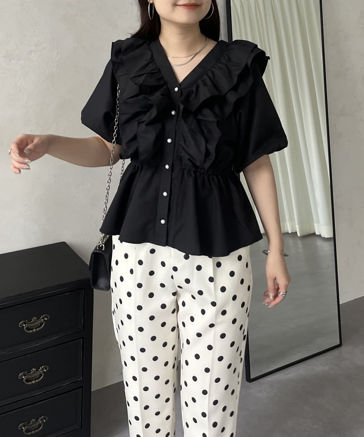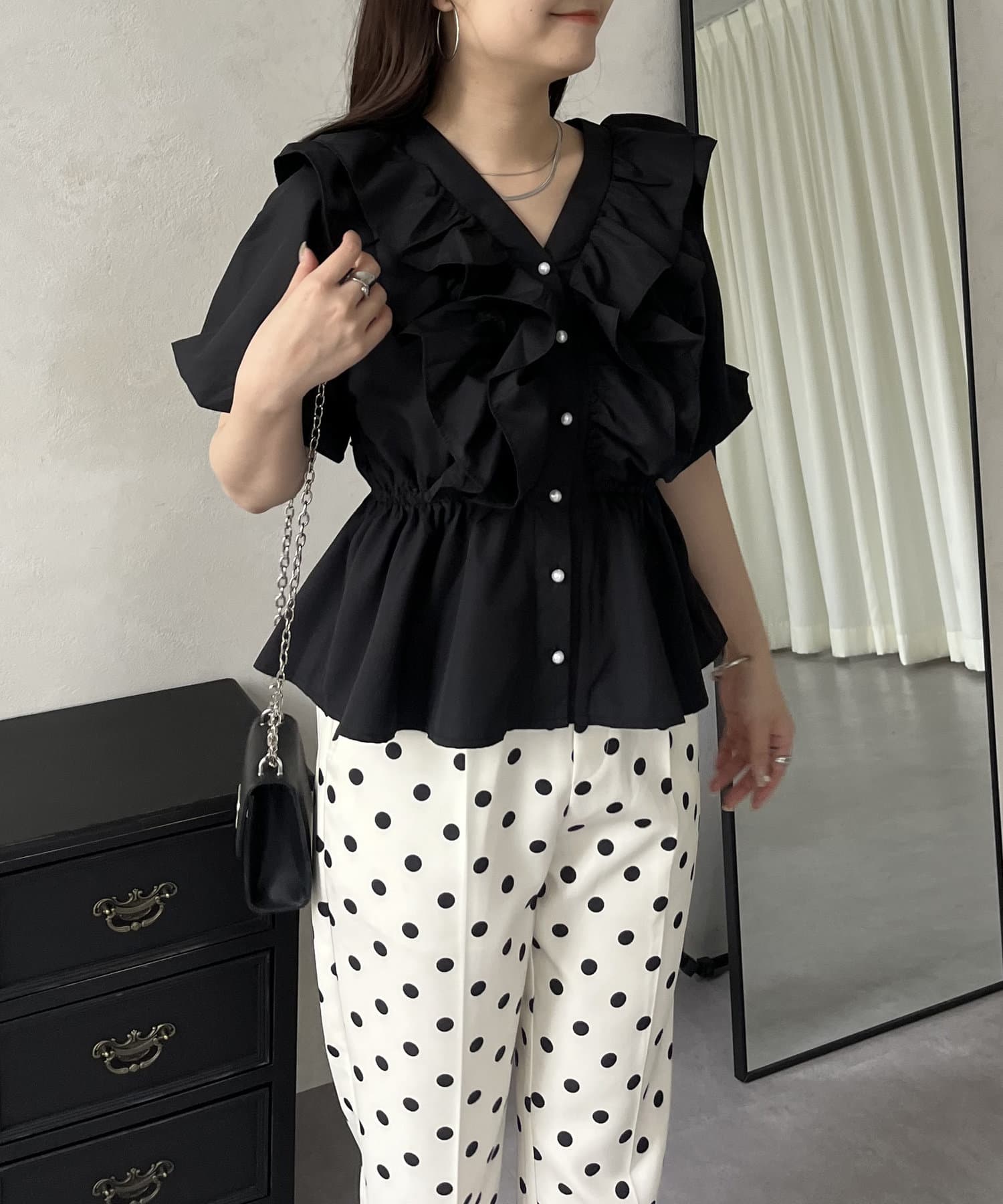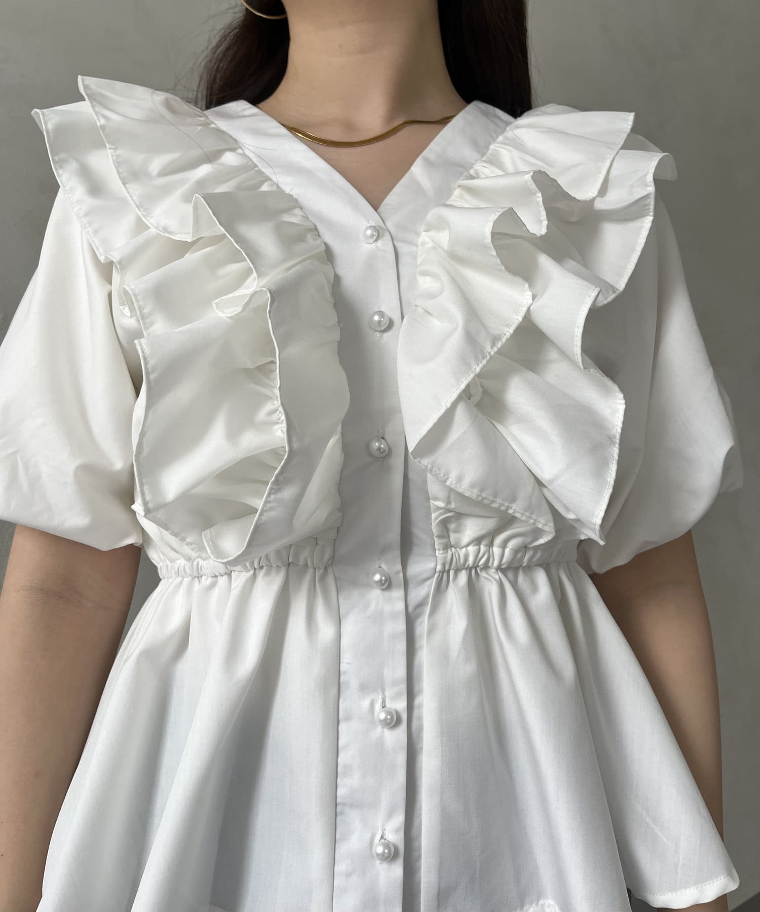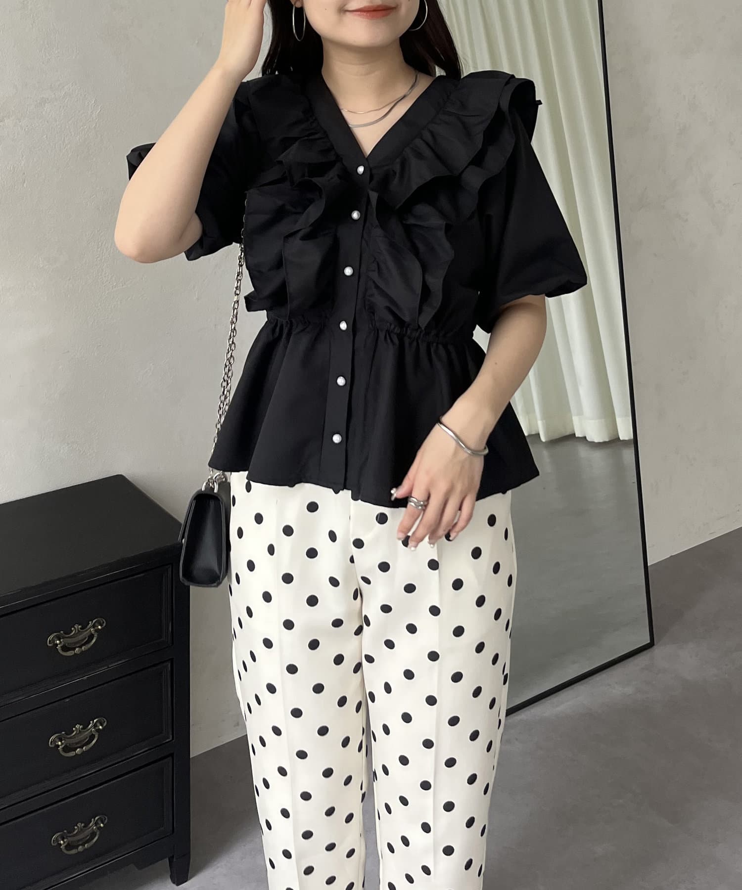 TOP > prose verse > レディース > トップス > シャツ/ブラウス(ボタン) > ダブルフリルバルーンスリーブペプラムブラウス