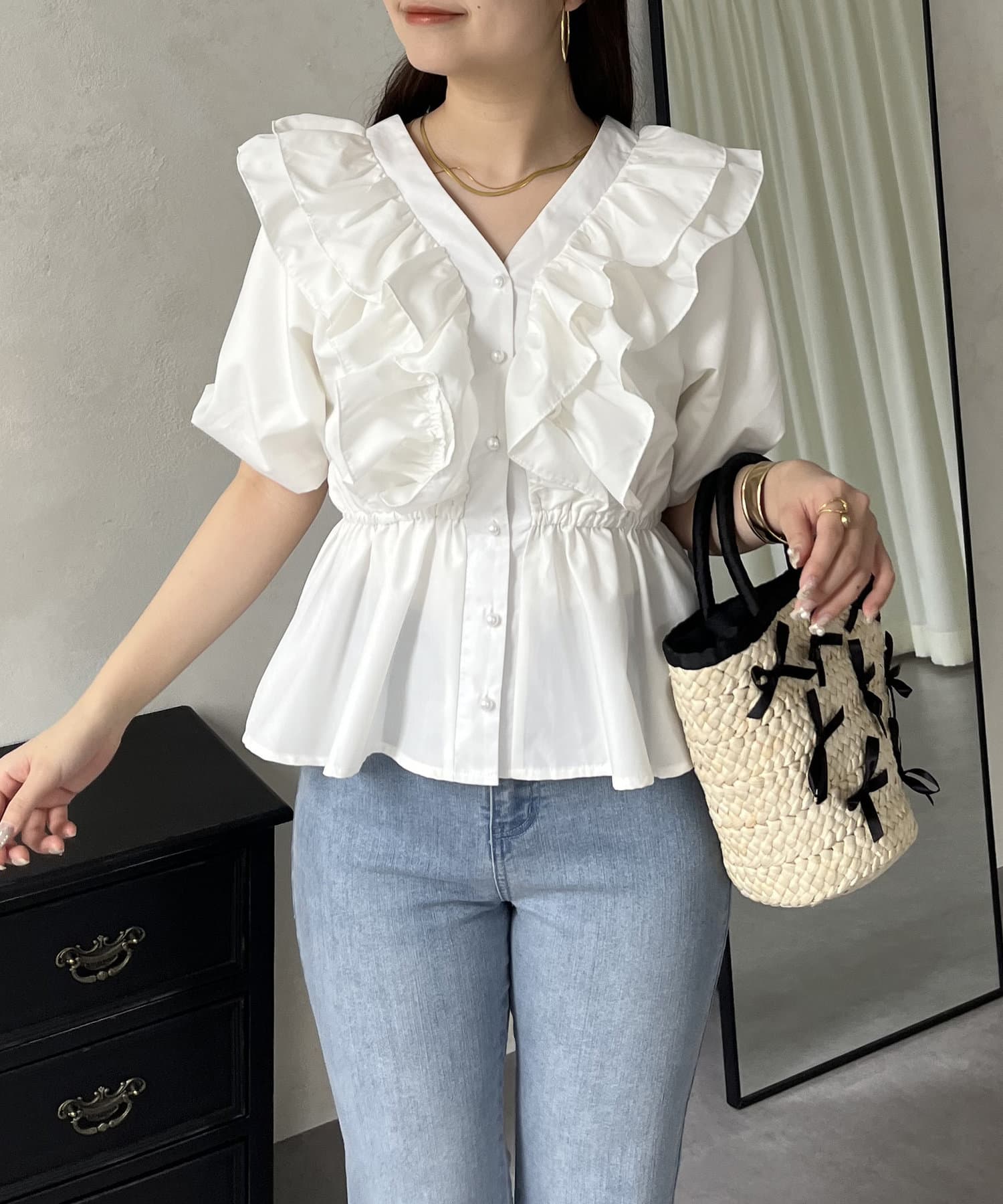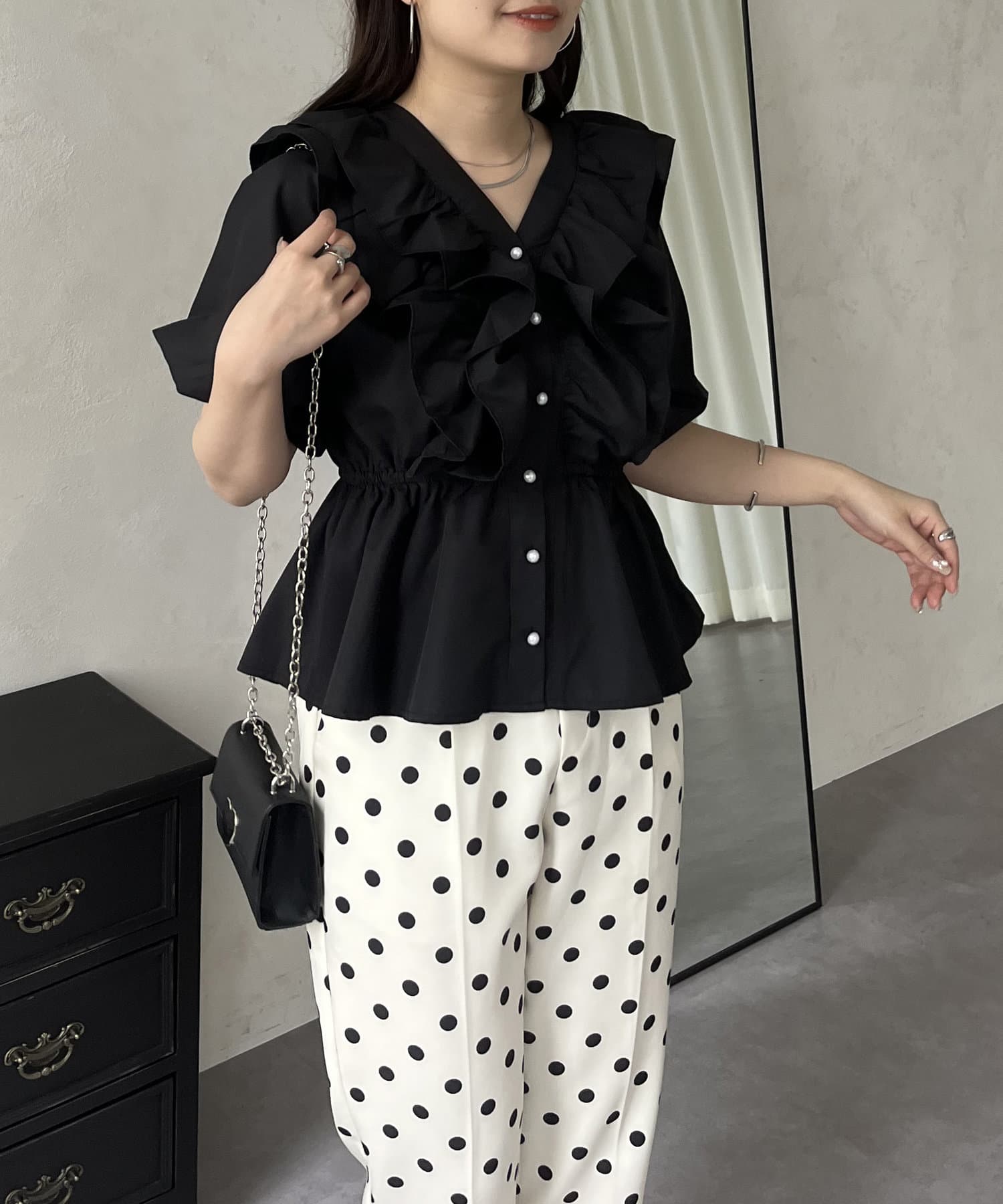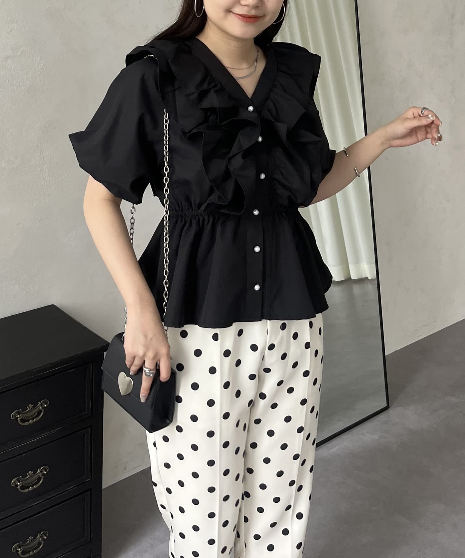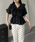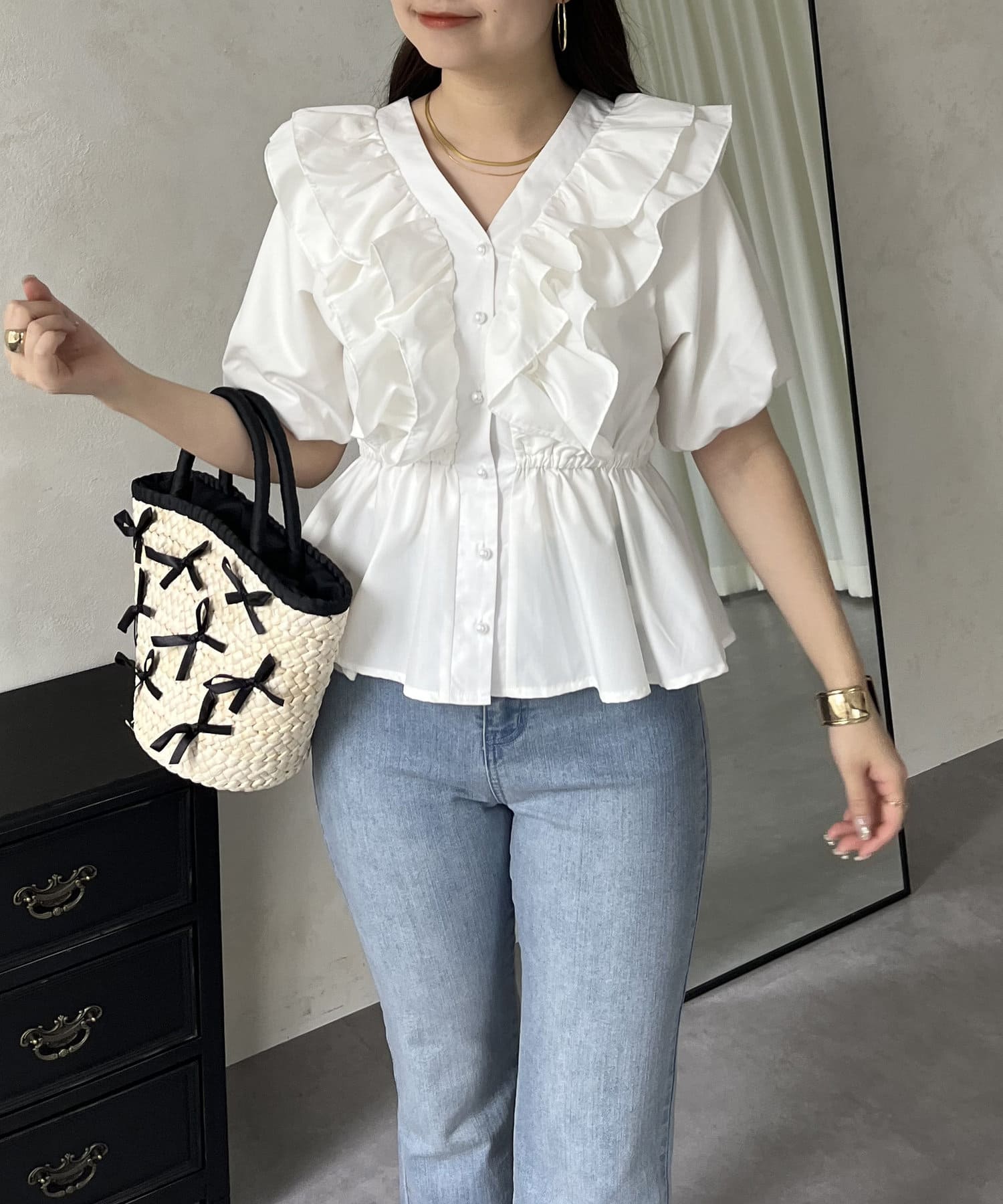 TOP > prose verse > レディース > トップス > シャツ/ブラウス(ボタン) > ダブルフリルバルーンスリーブペプラムブラウス