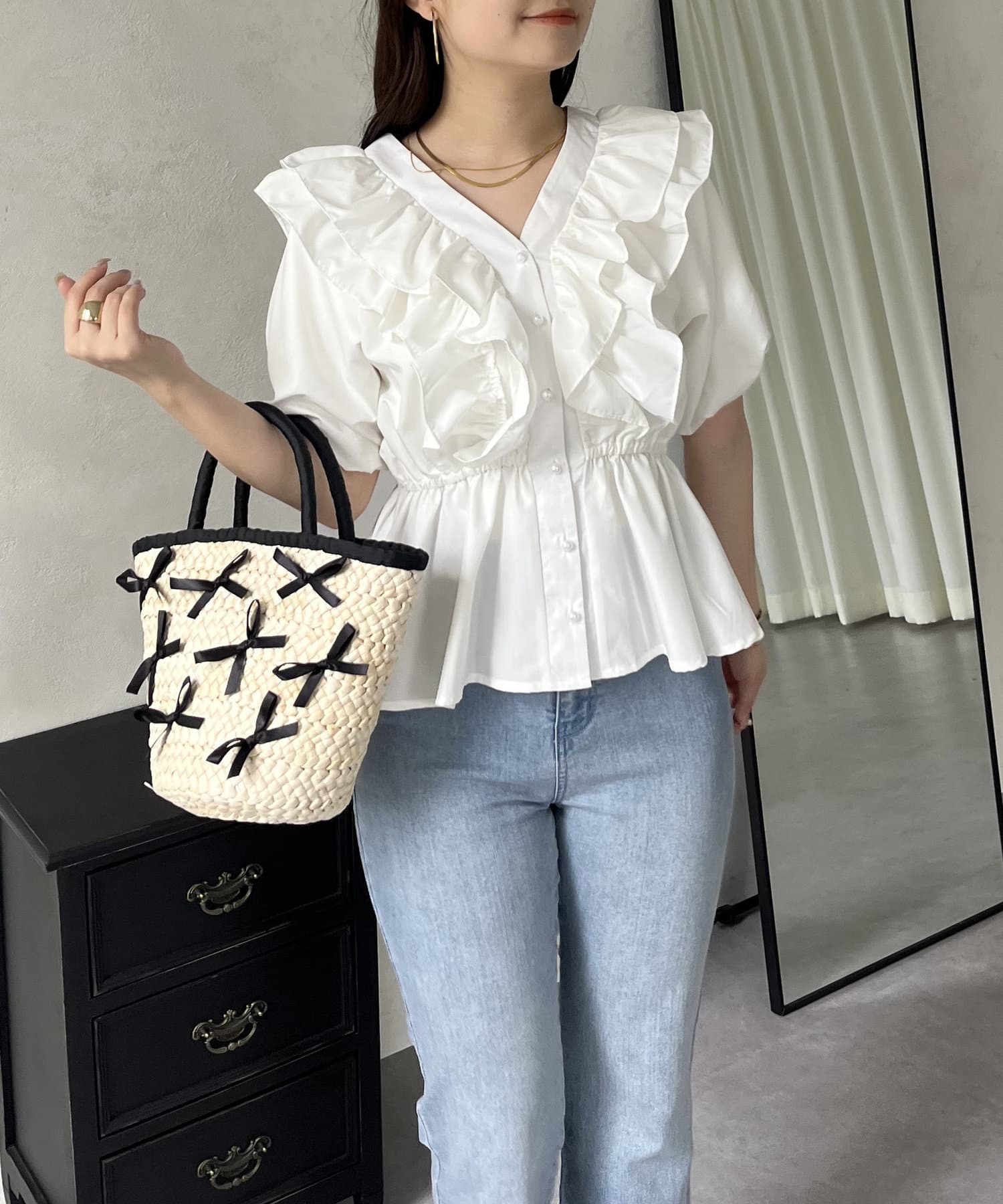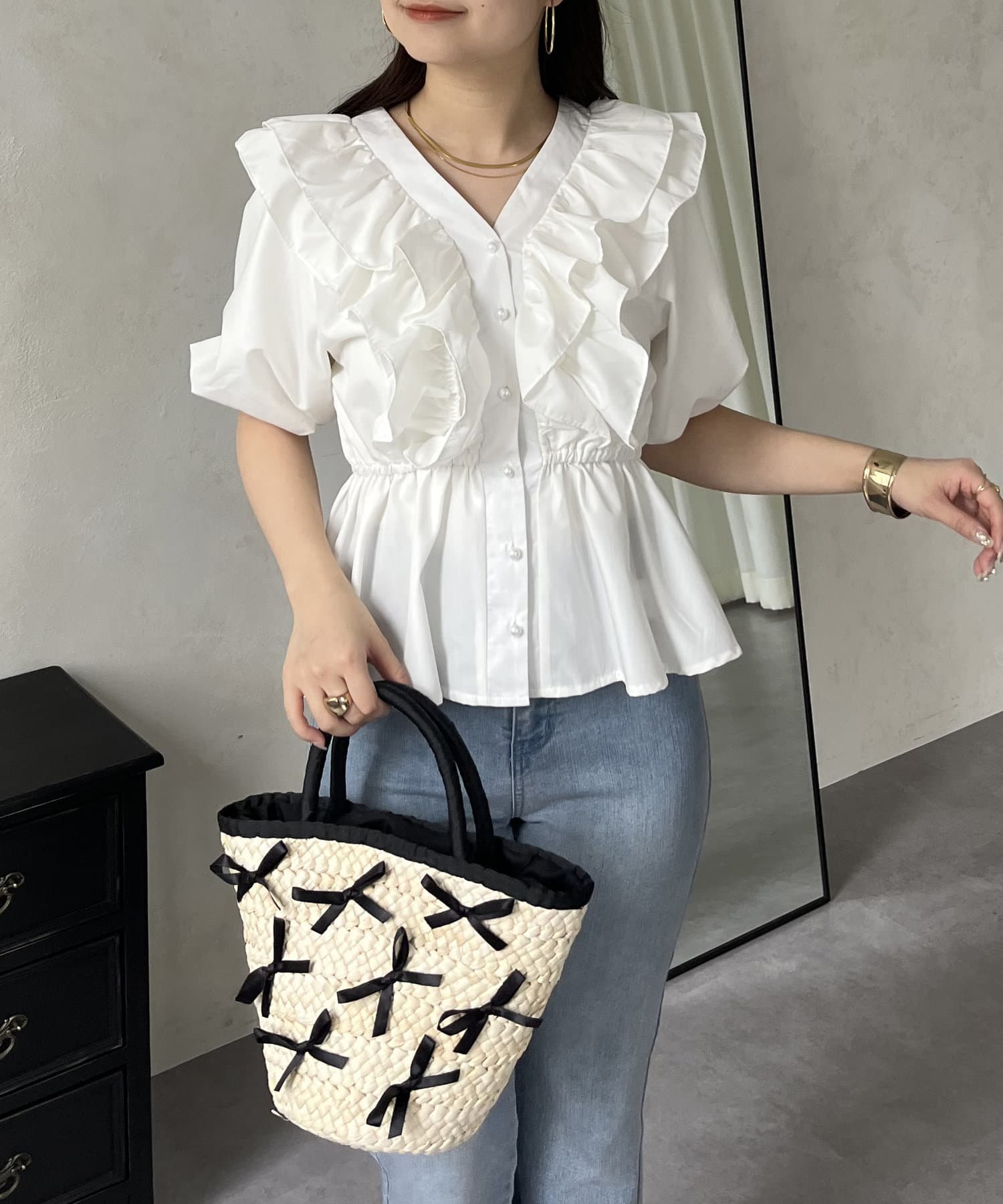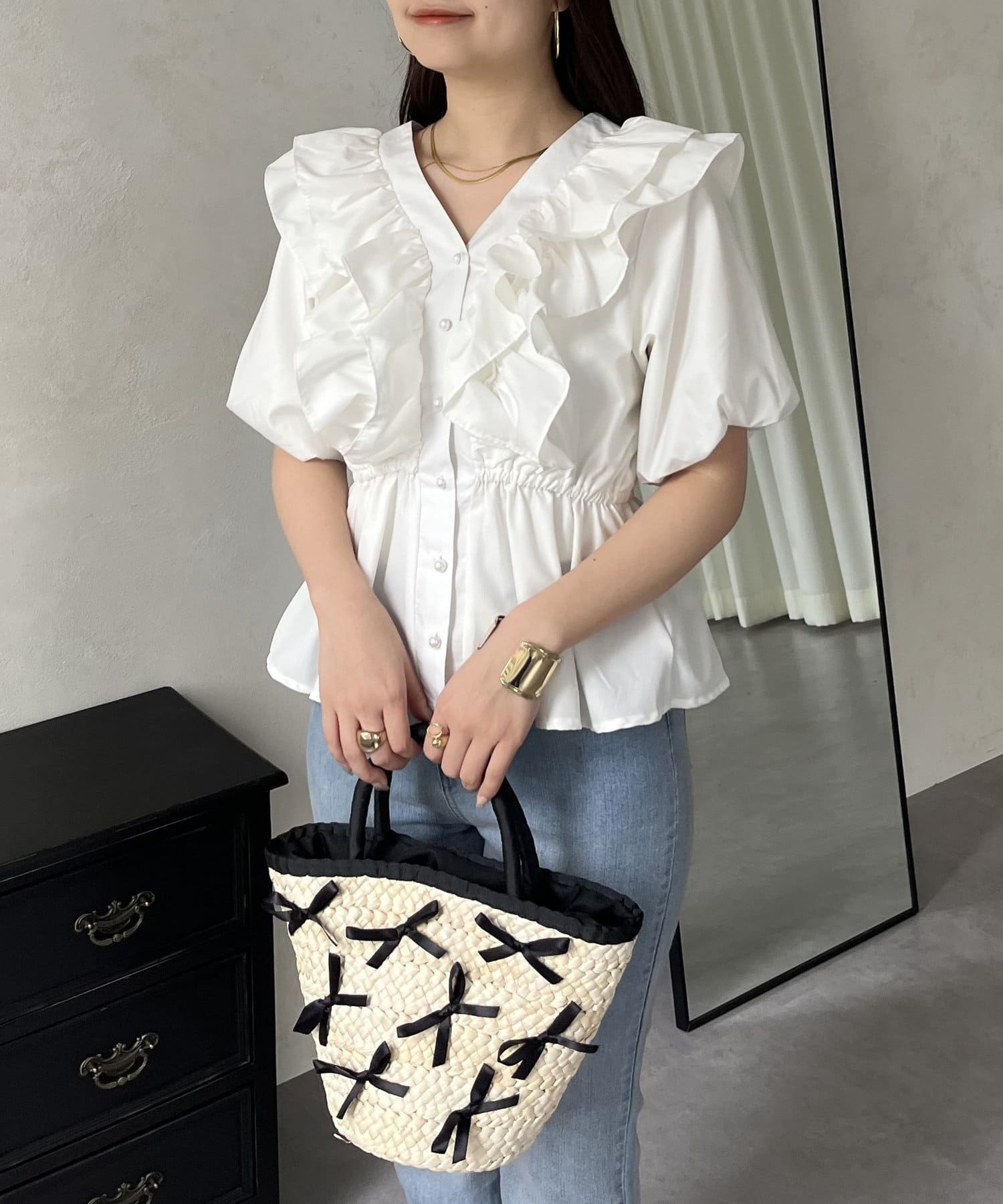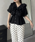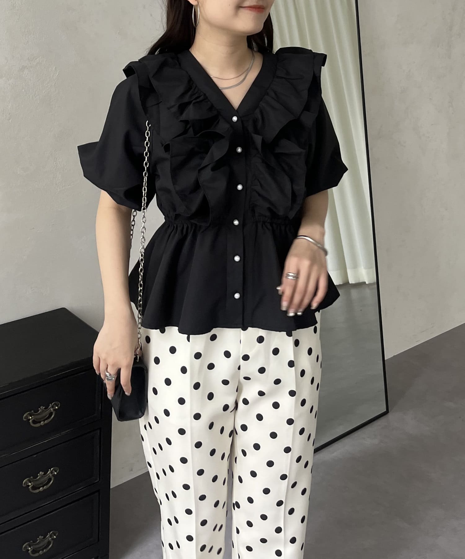TOP > prose verse > レディース > トップス > シャツ/ブラウス(ボタン) > ダブルフリルバルーンスリーブペプラムブラウス