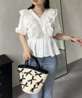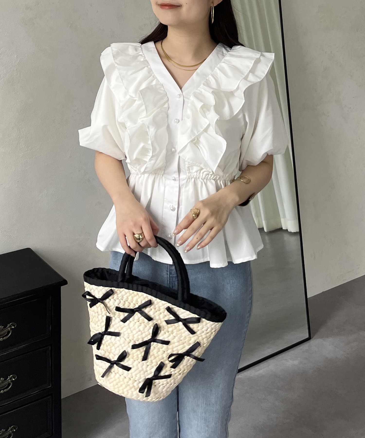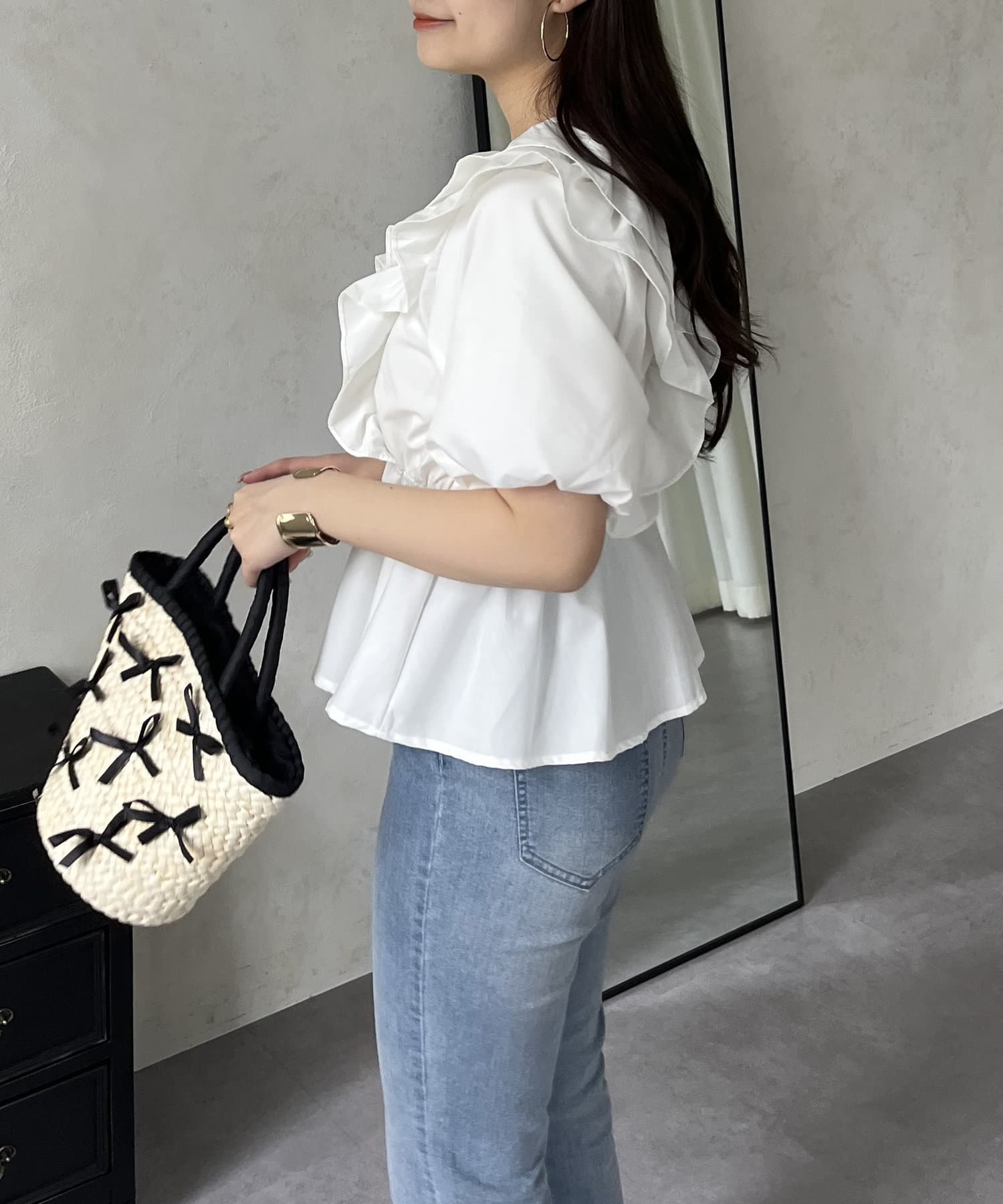 prose verse(プロズヴェール) ダブルフリルバルーンスリーブペプラムブラウス