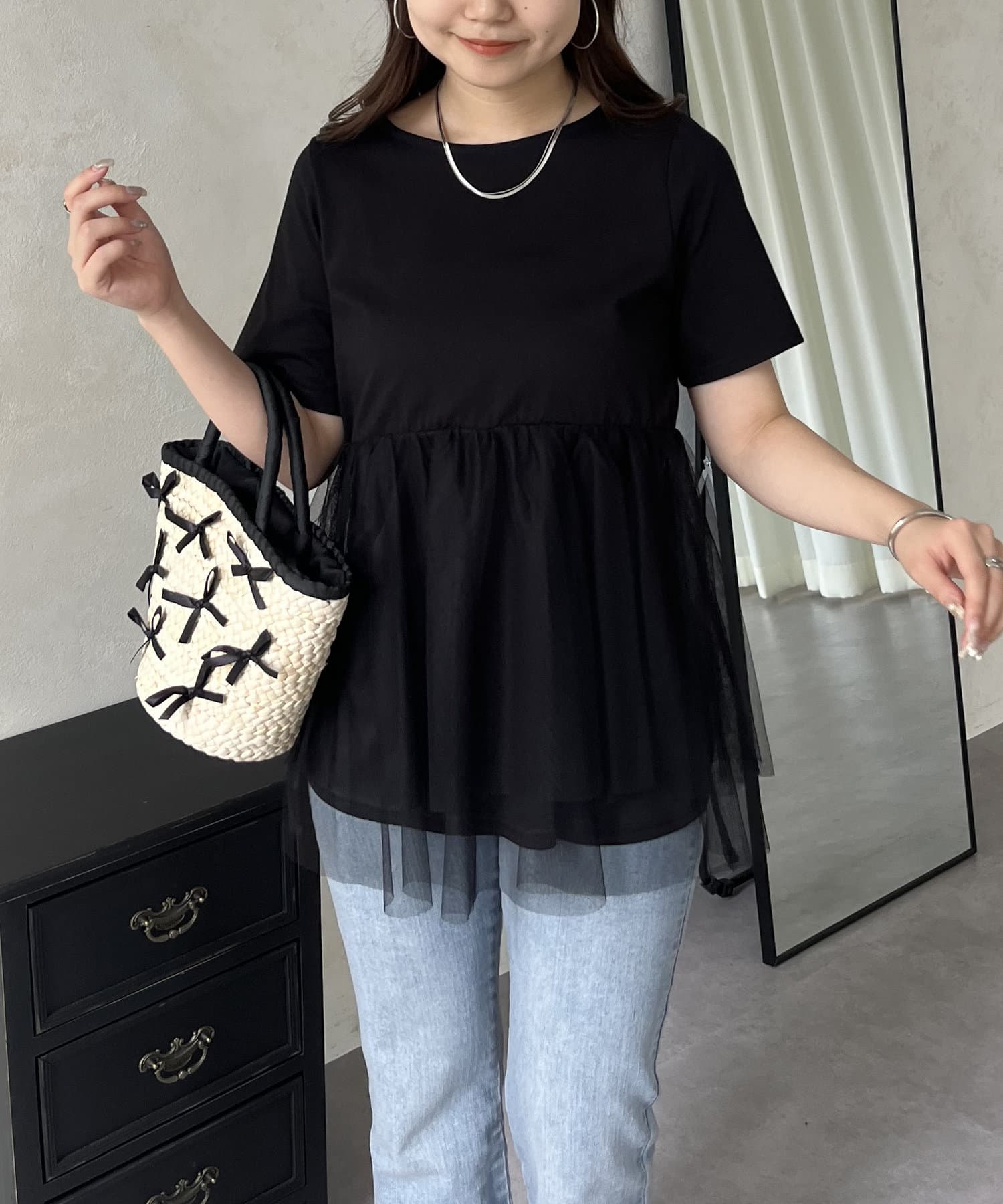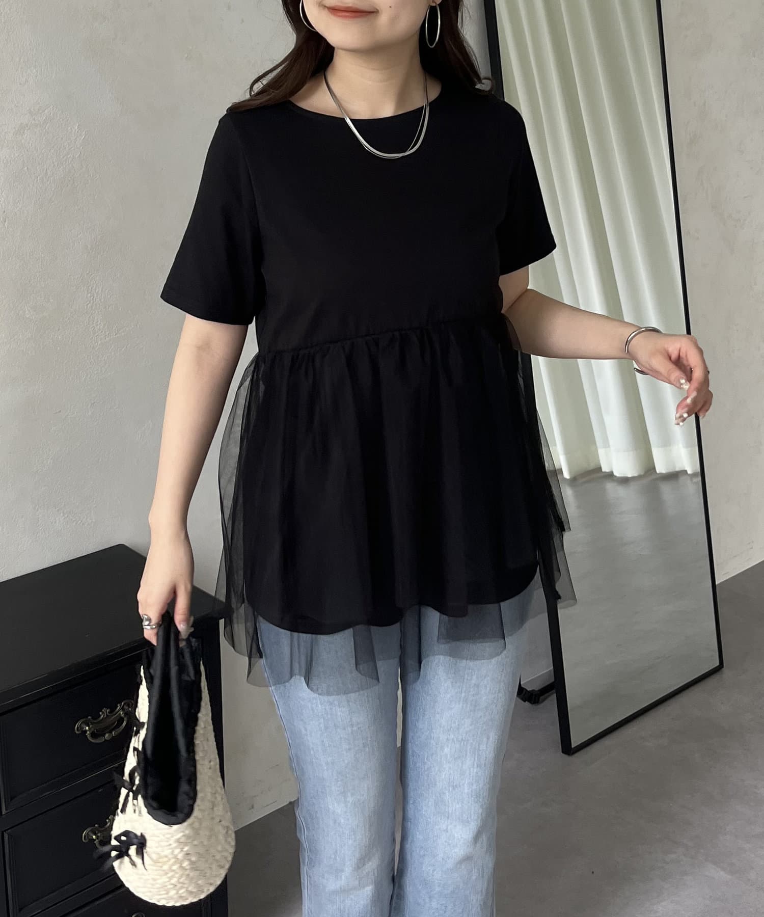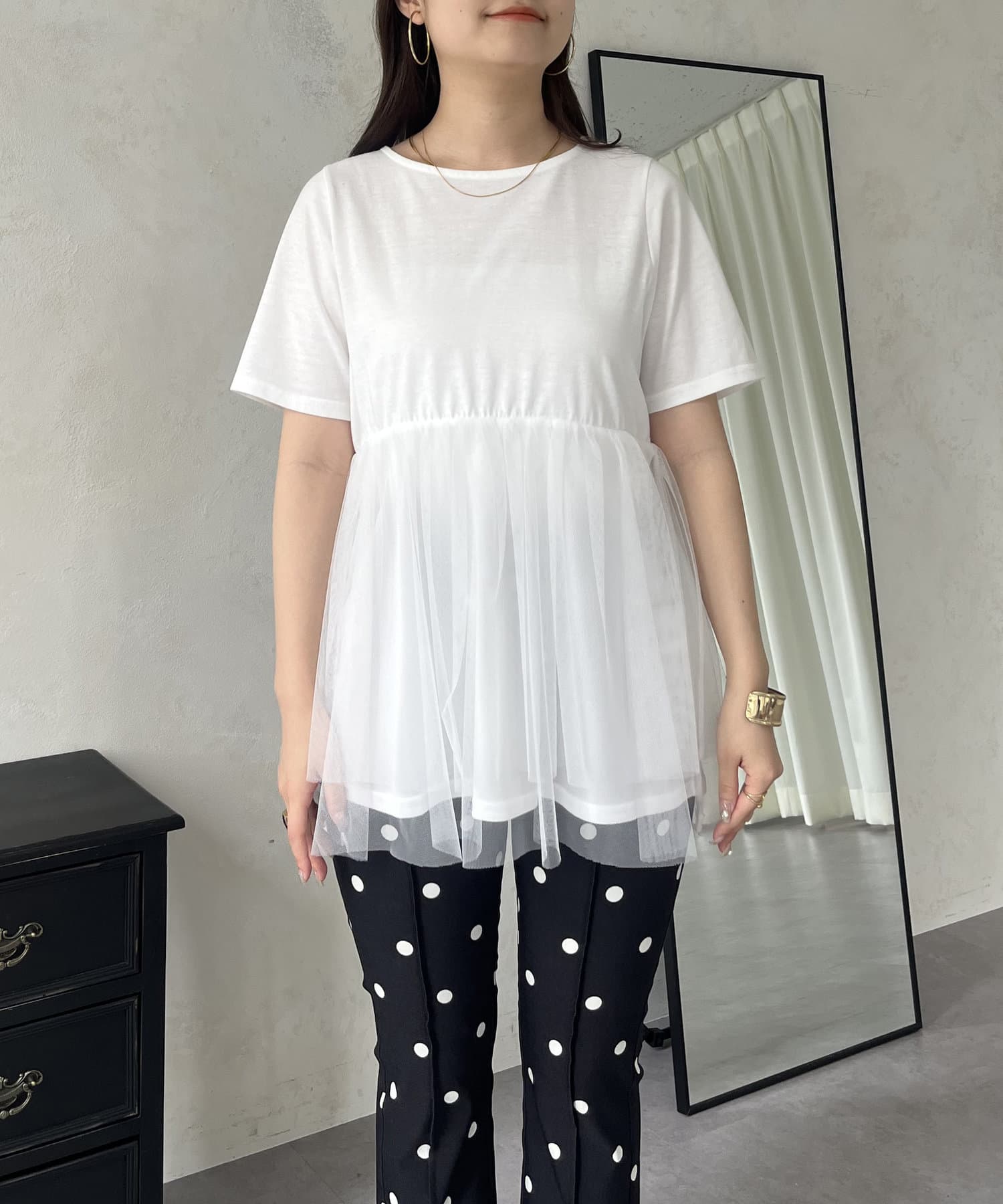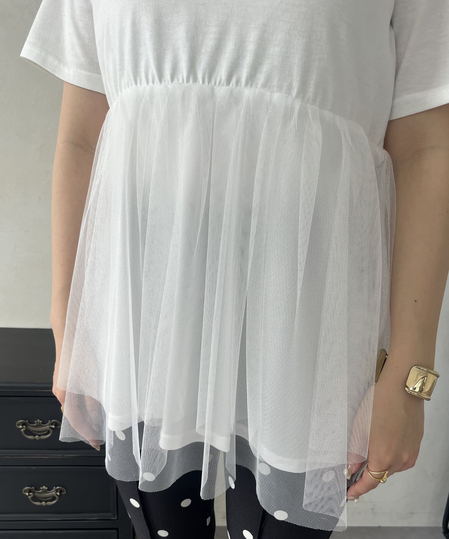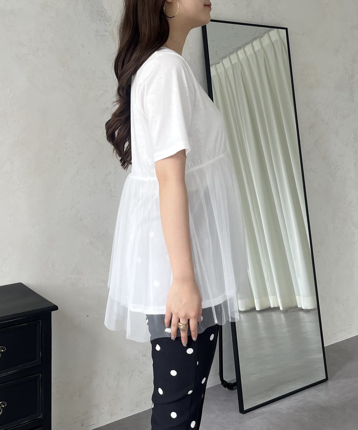チュール/レイヤード/ペプラム/Tシャツ/大人可愛い