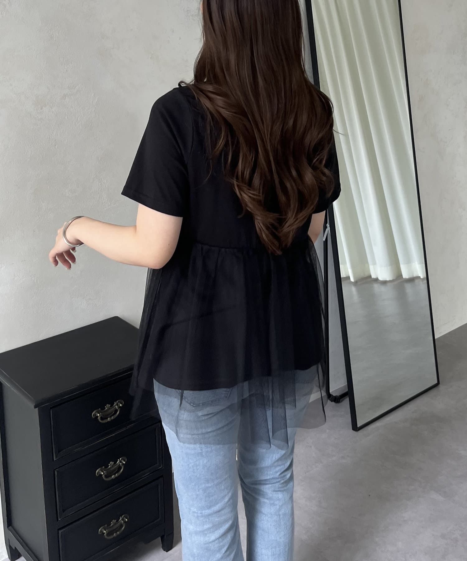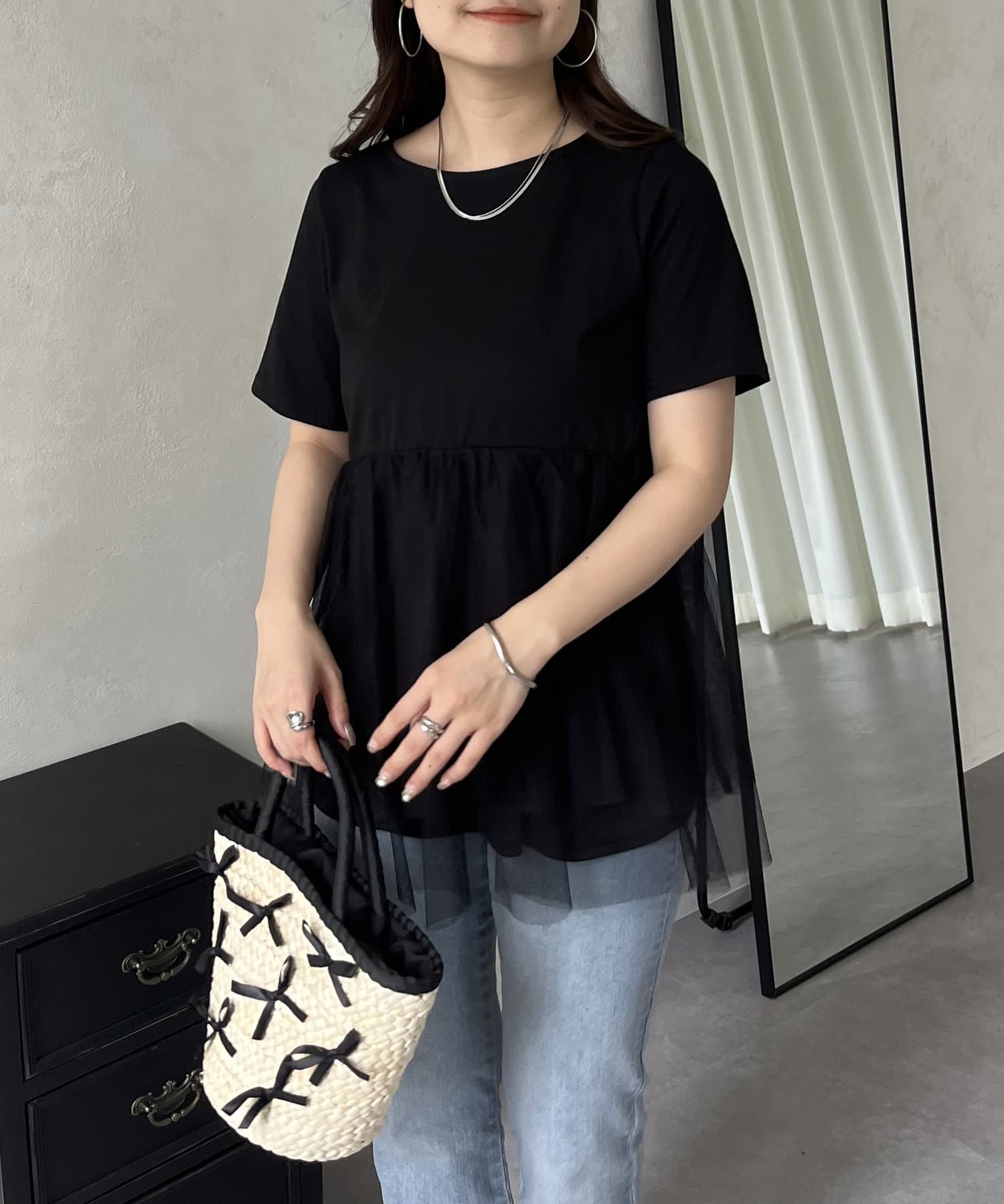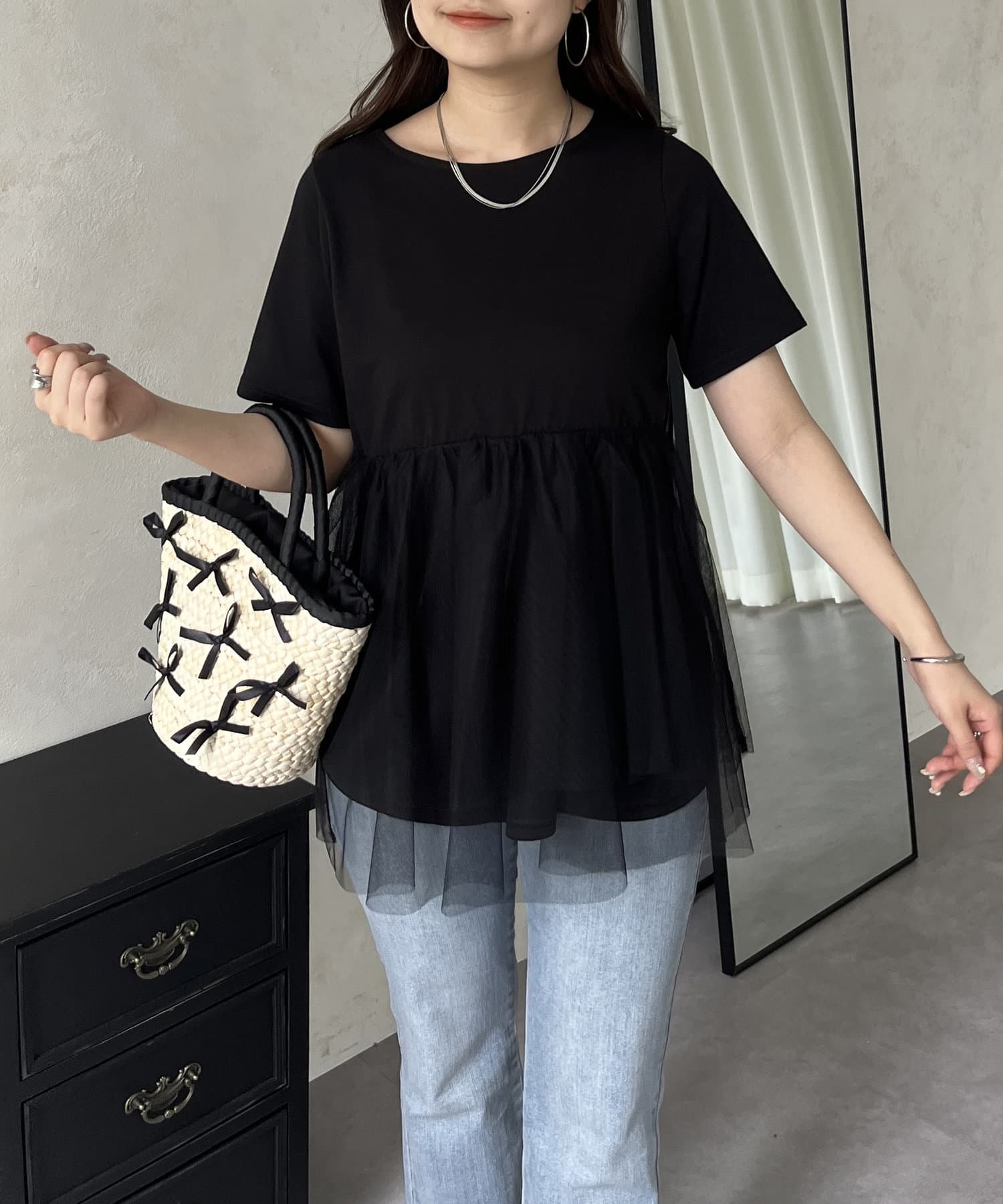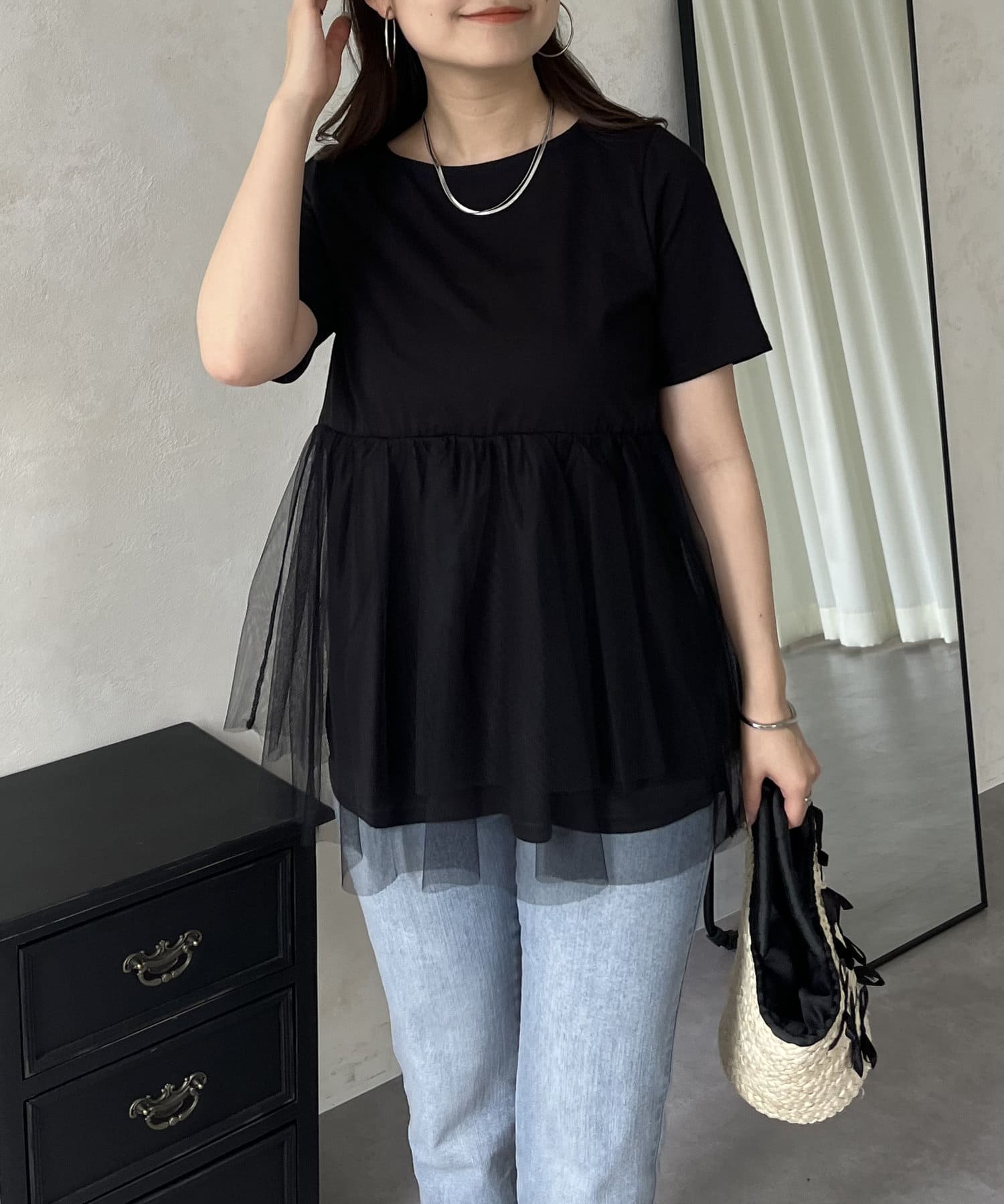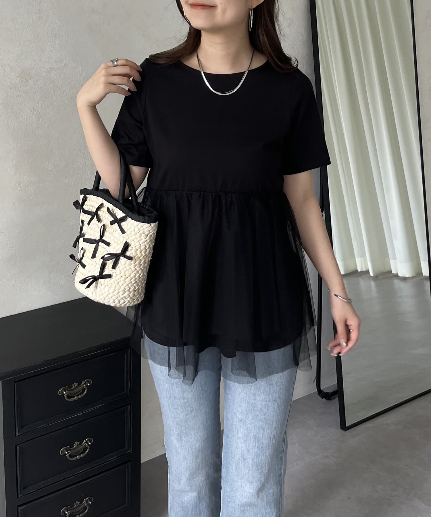 チュール/レイヤード/ペプラム/Tシャツ/大人可愛い