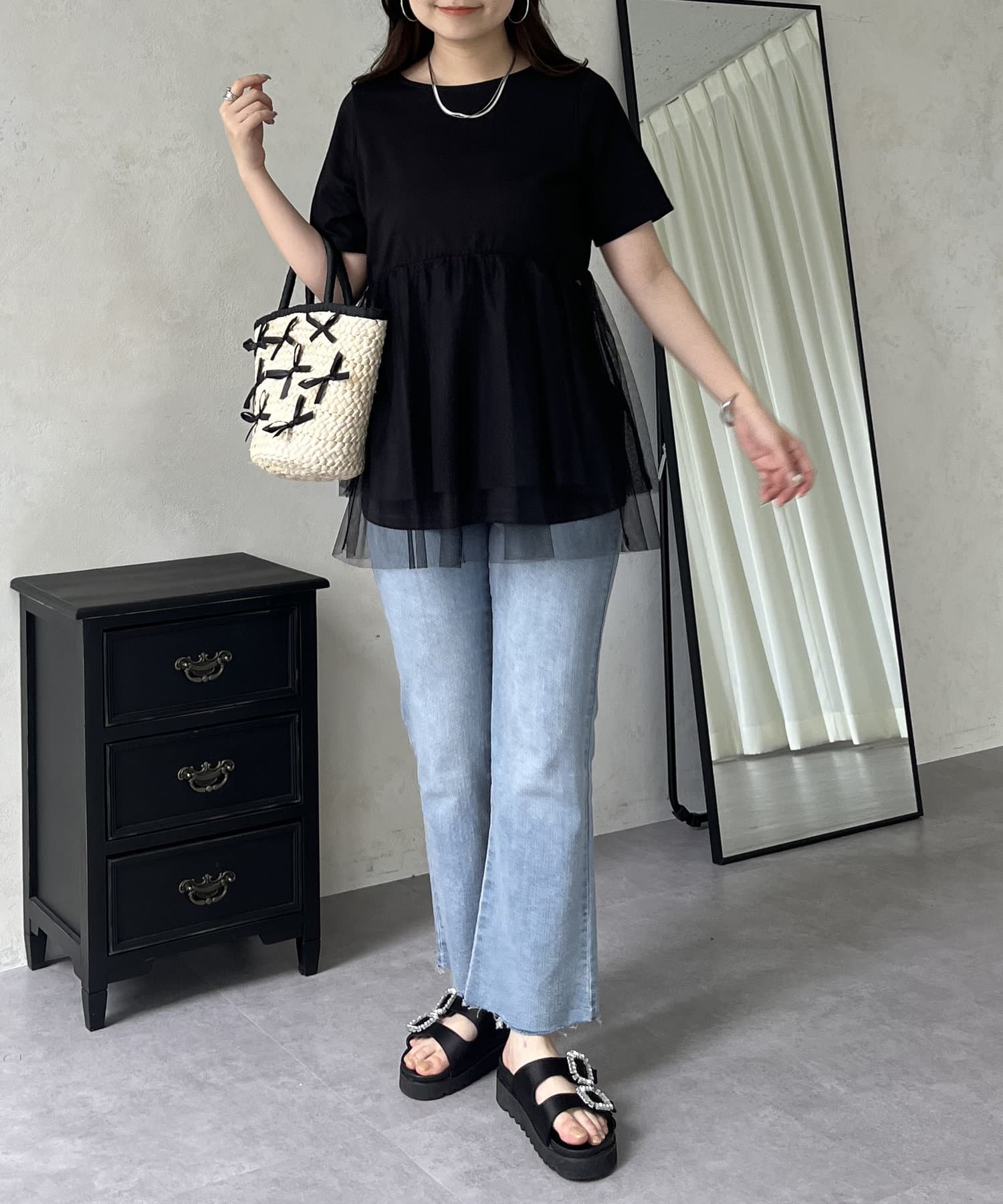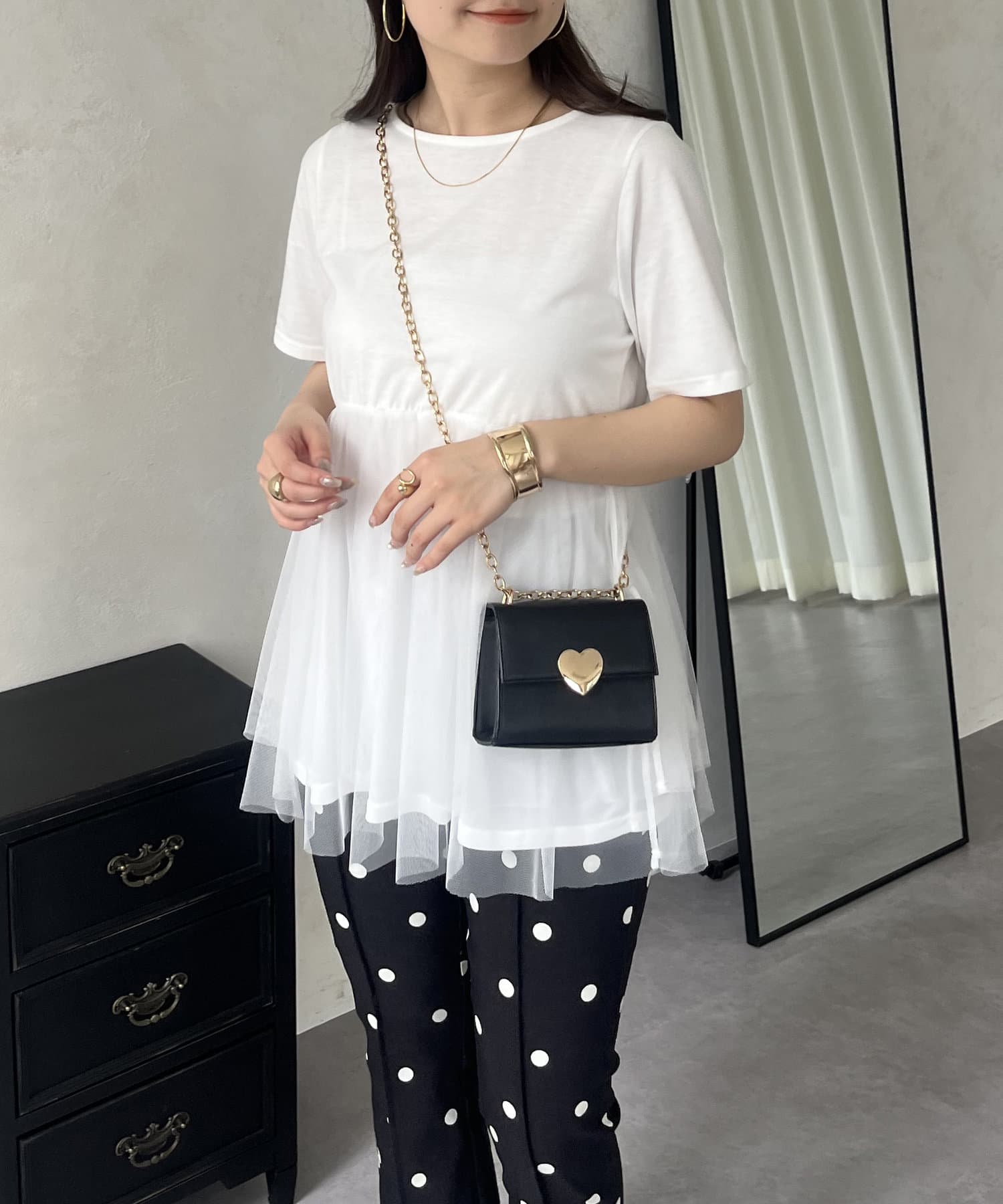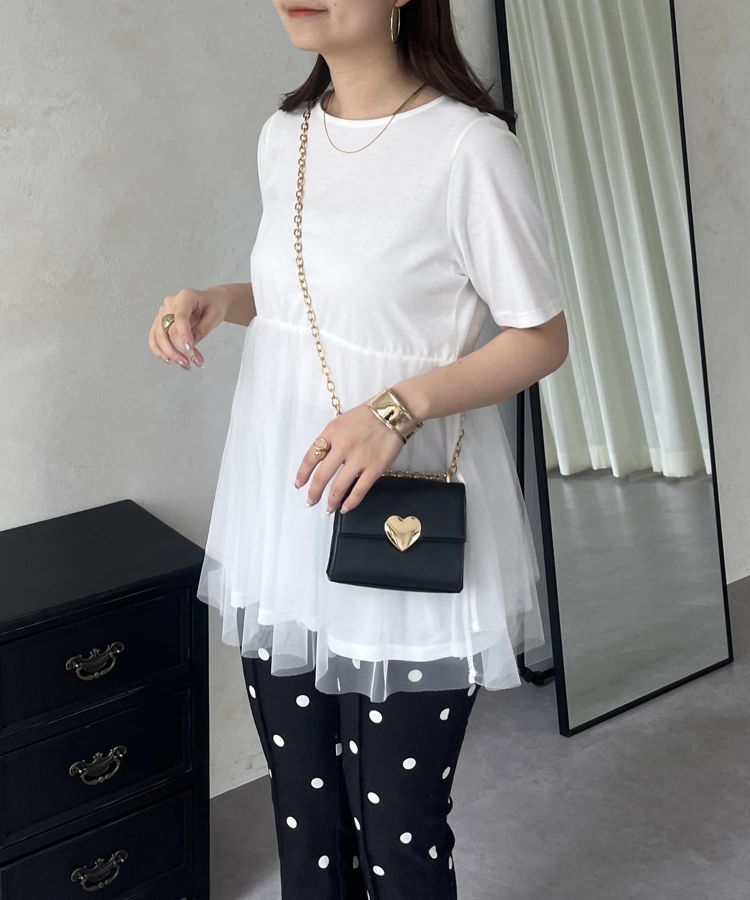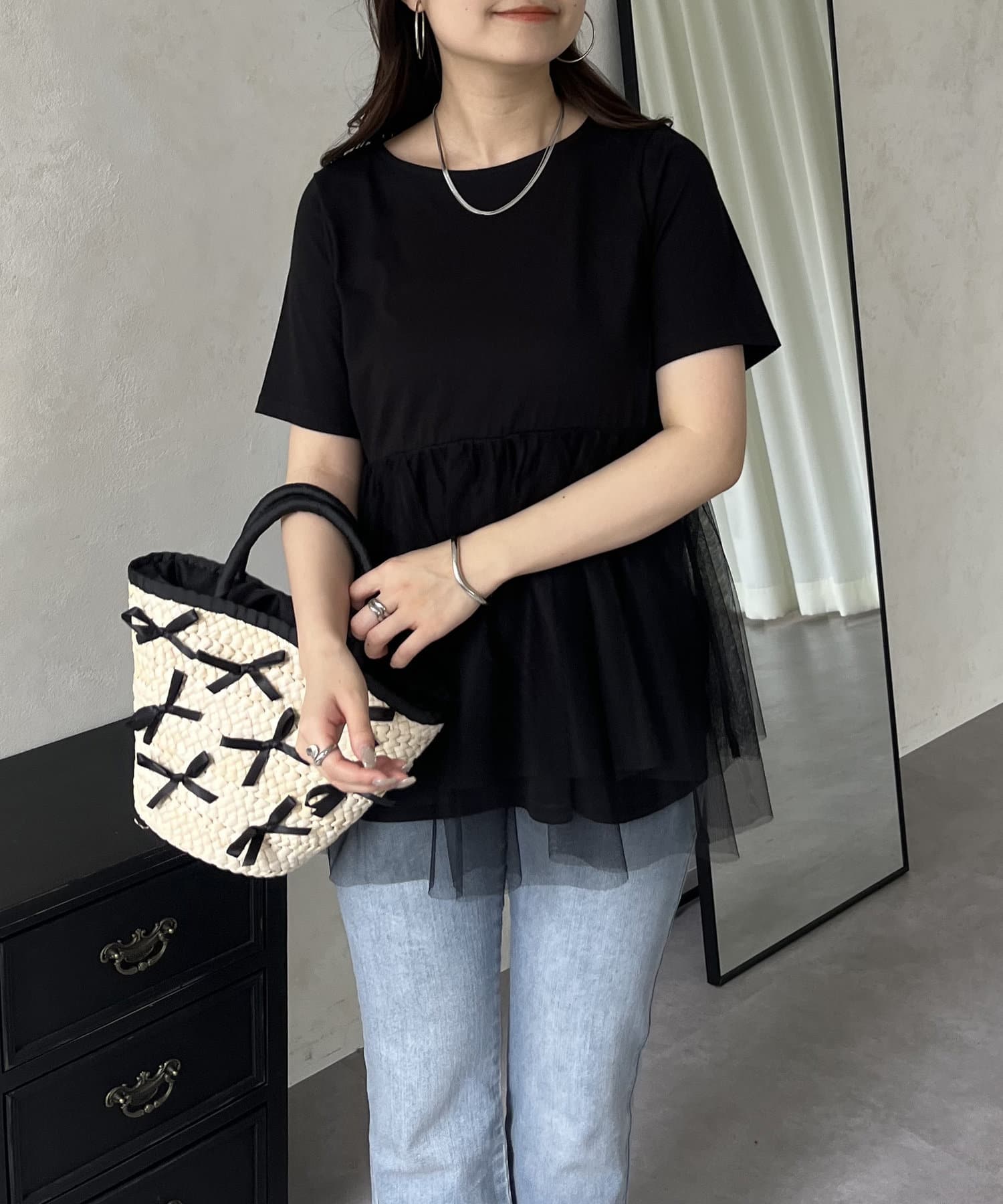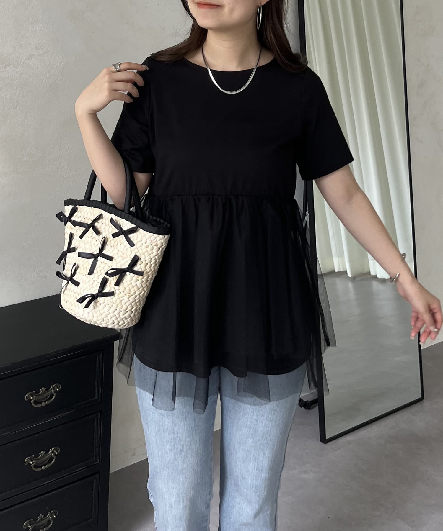 チュール/レイヤード/ペプラム/Tシャツ/大人可愛い