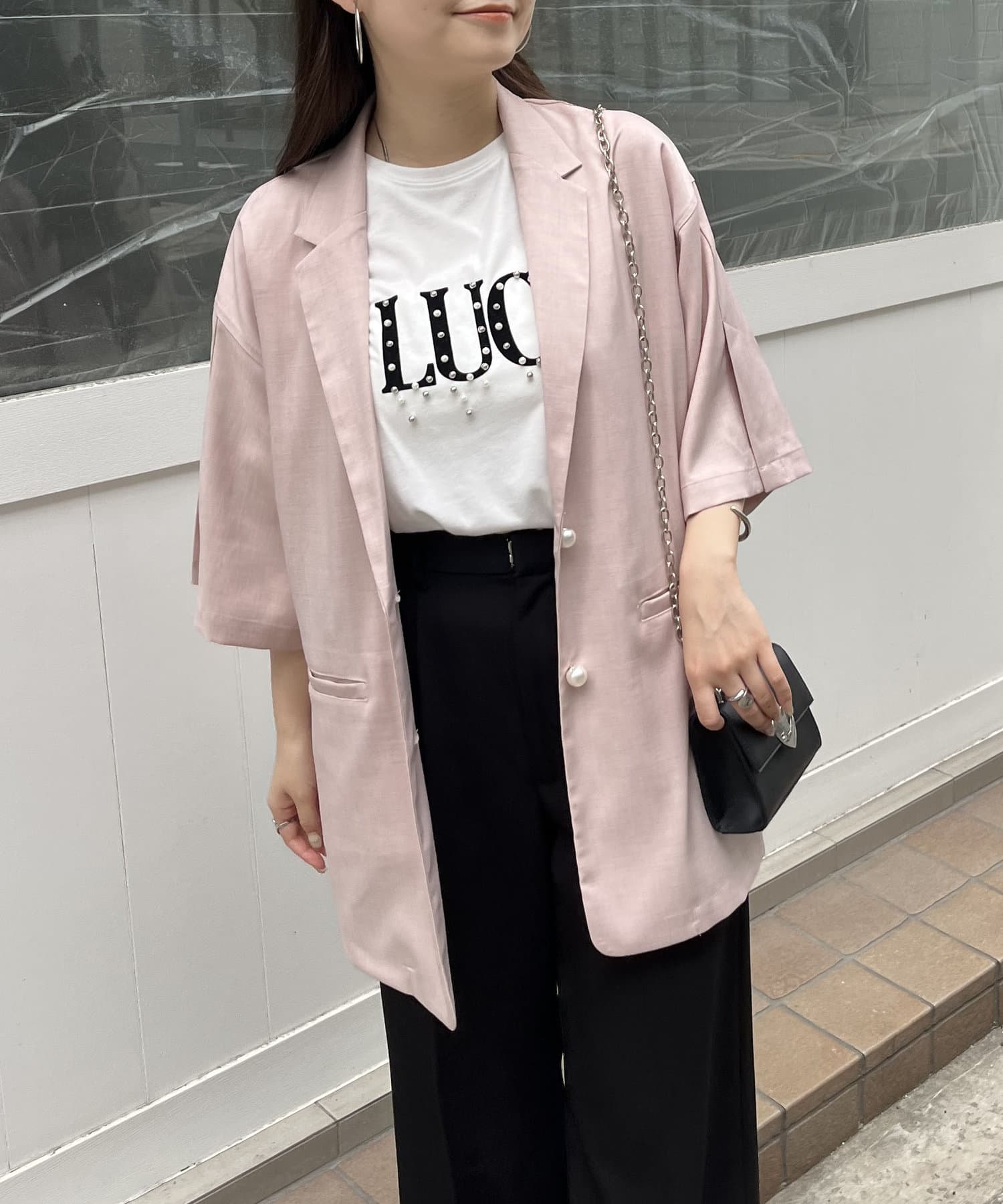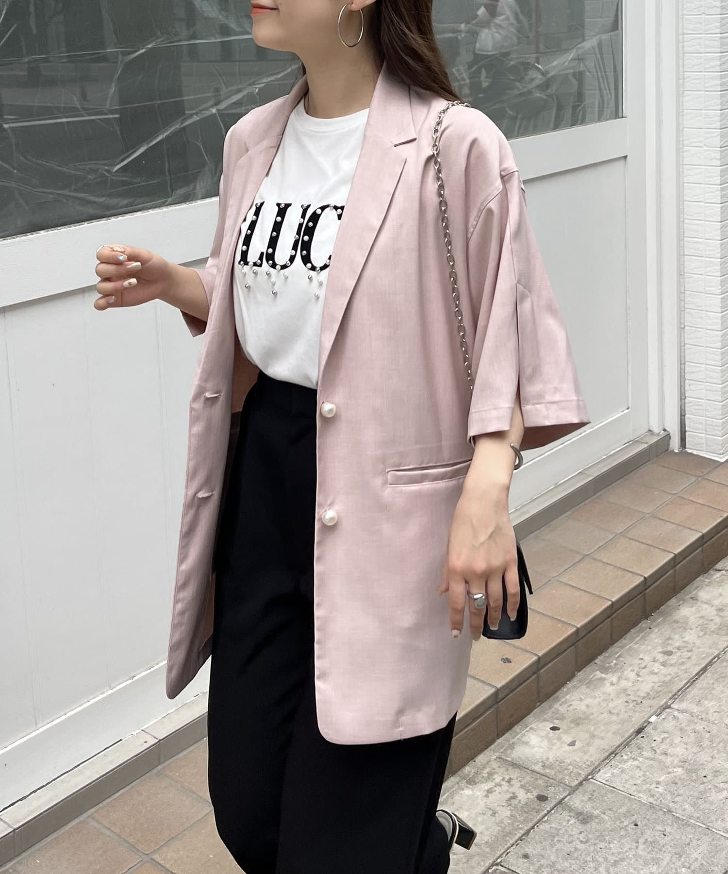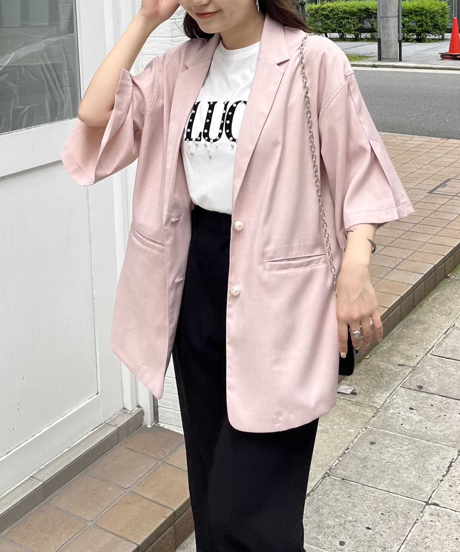 テーラードジャケット/半袖/パールボタン/夏ジャケット