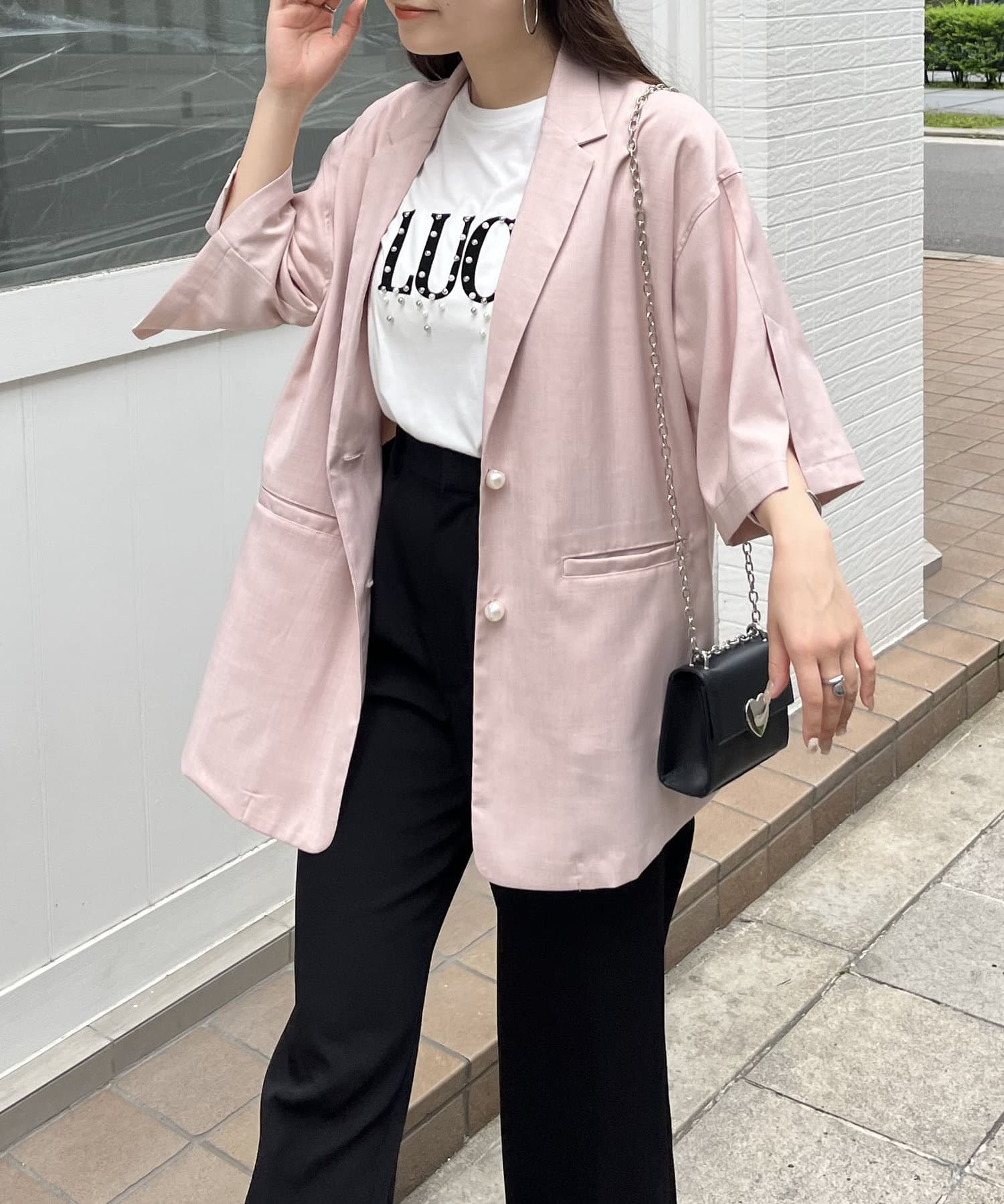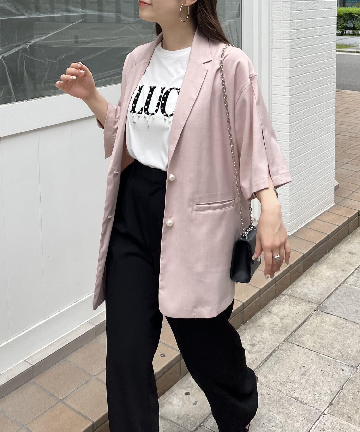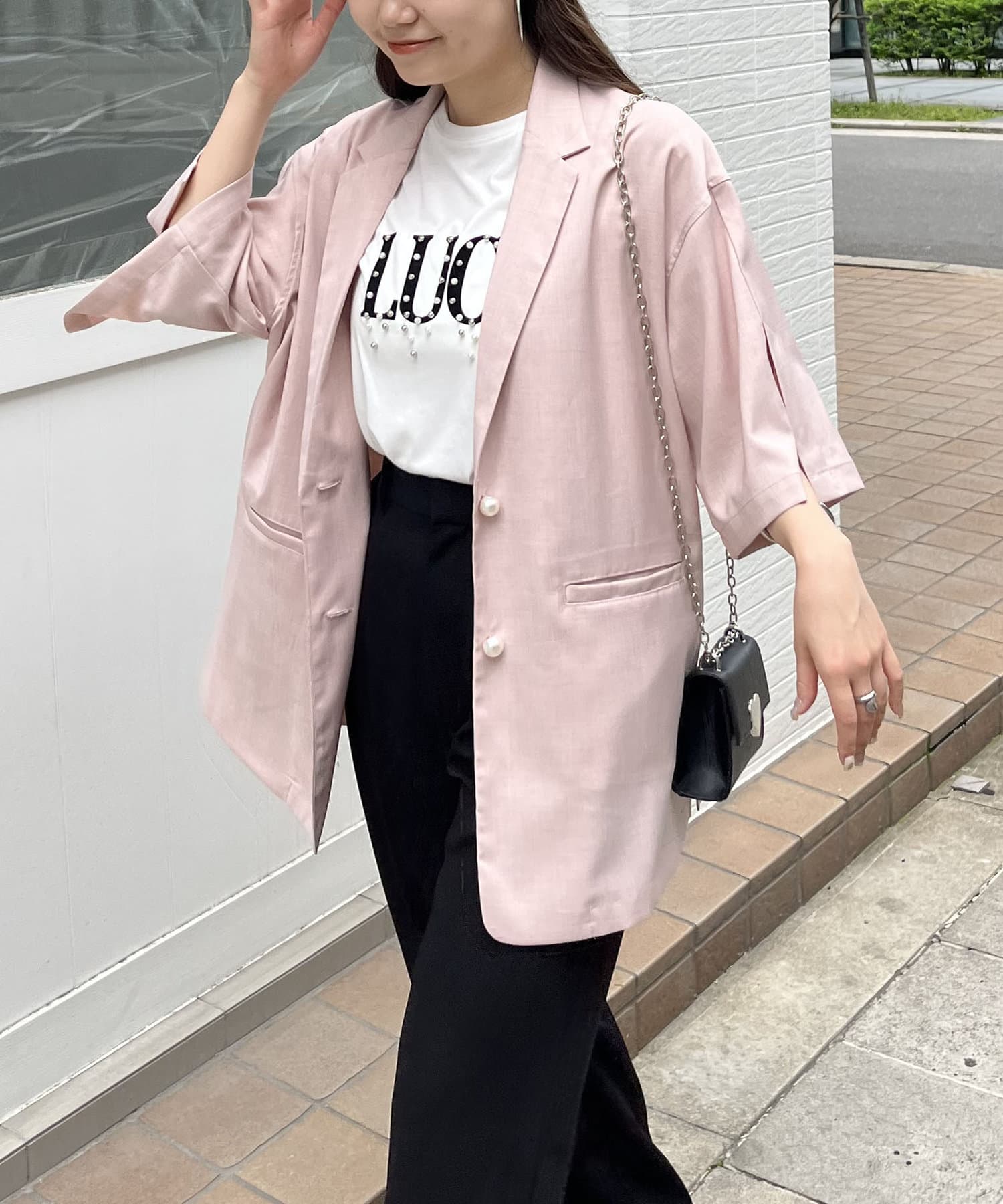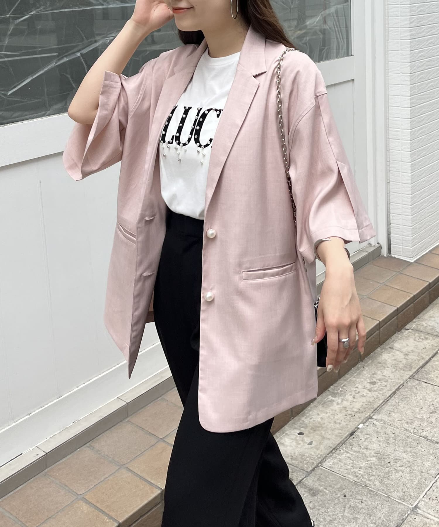 テーラードジャケット/半袖/パールボタン/夏ジャケット