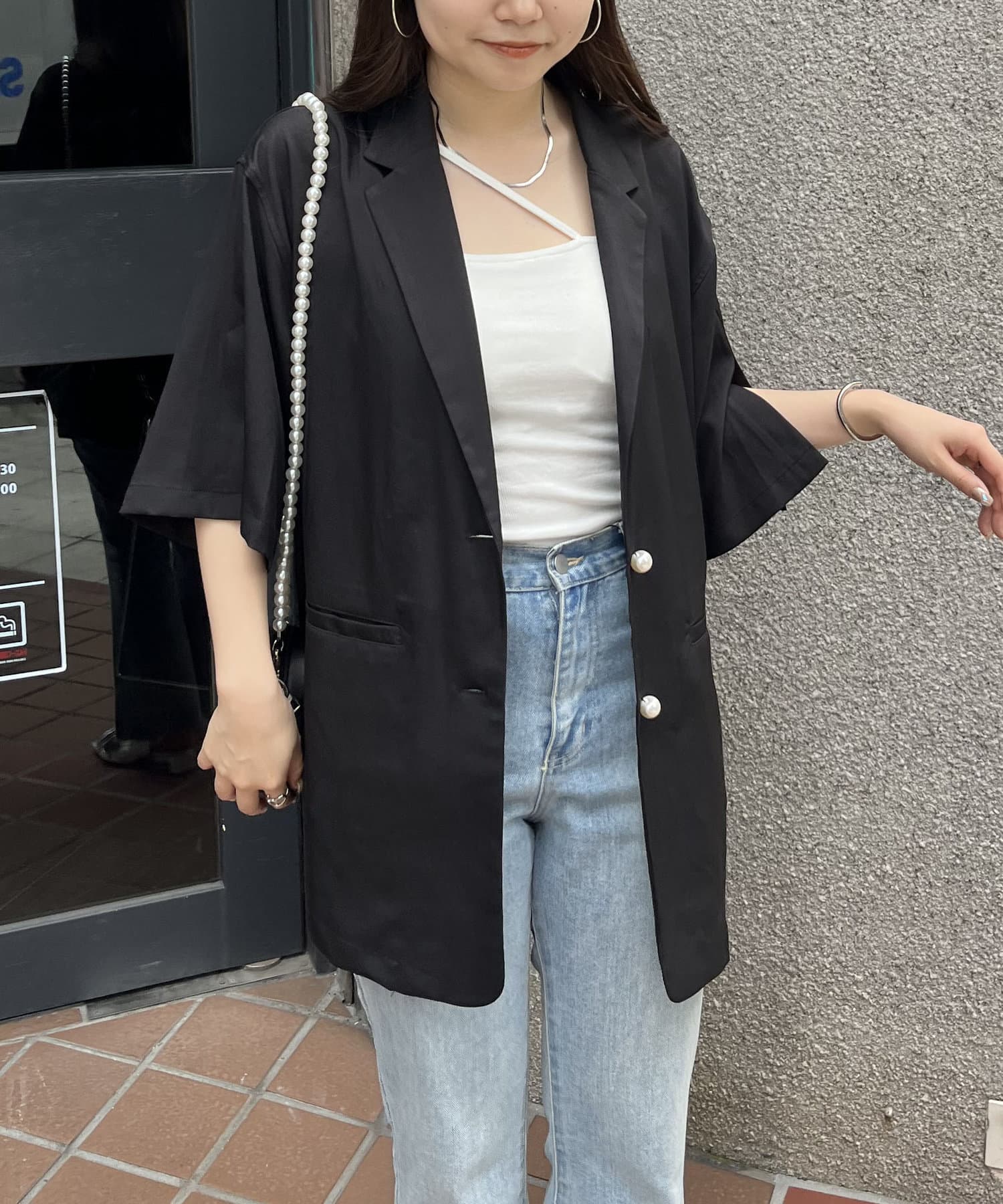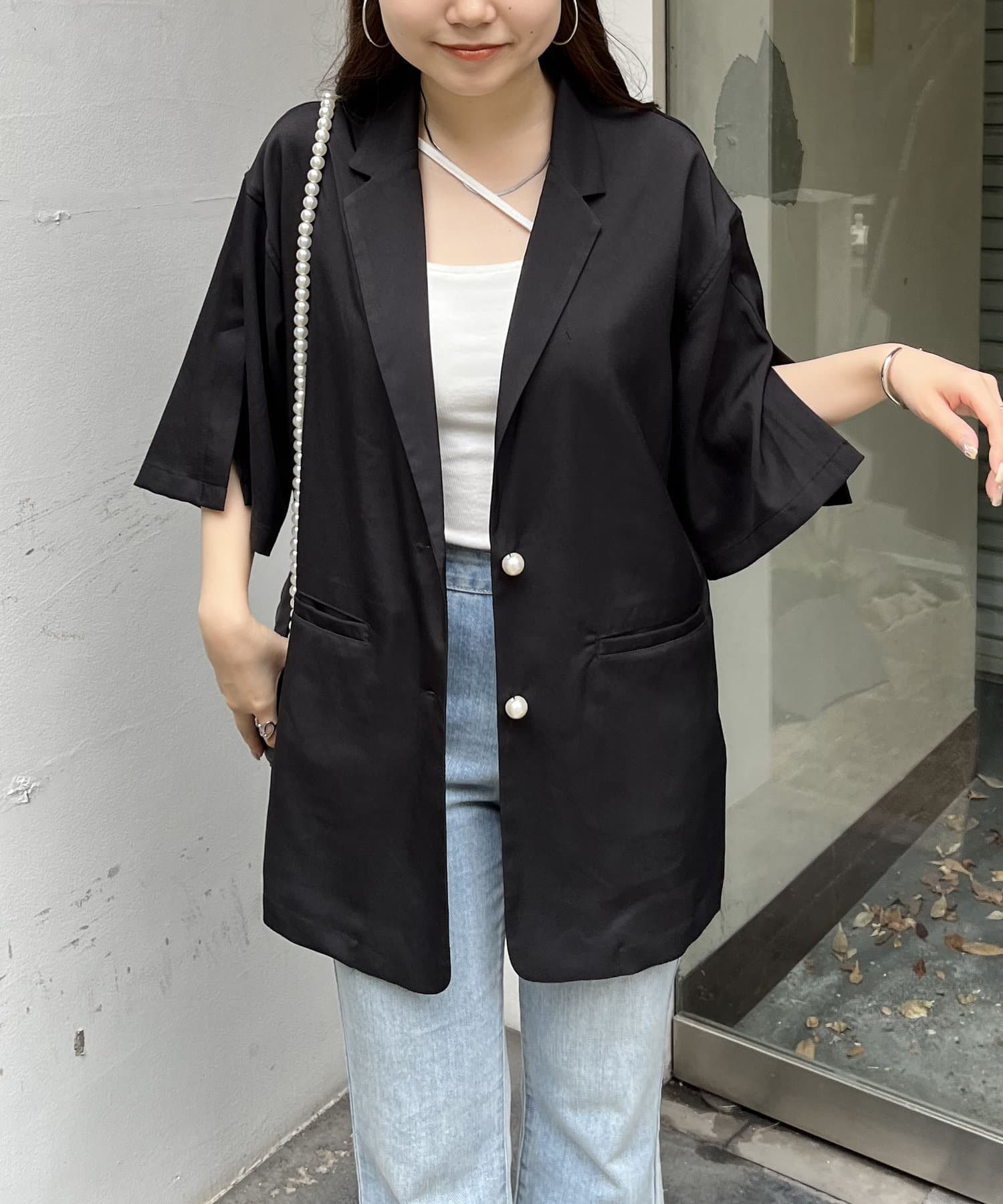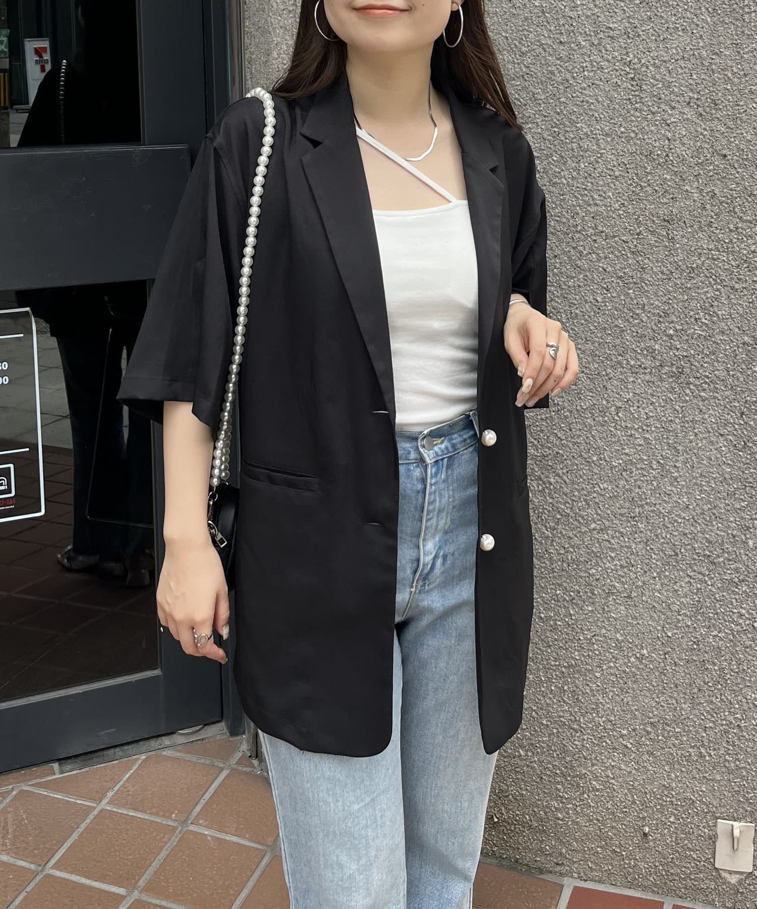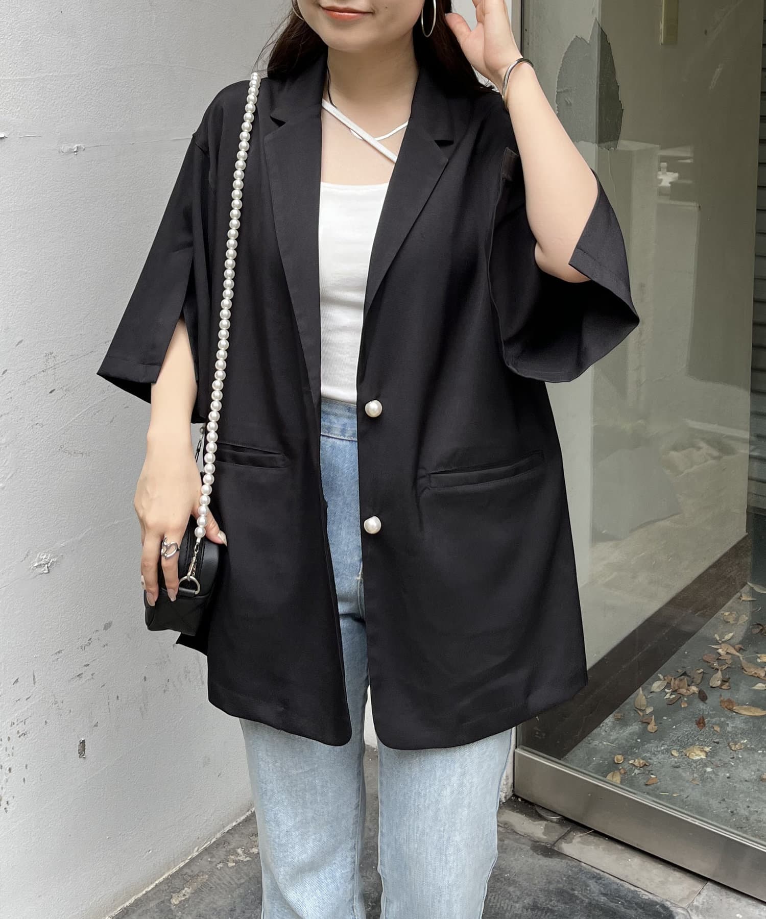 パールボタンハーフスリーブジャケット