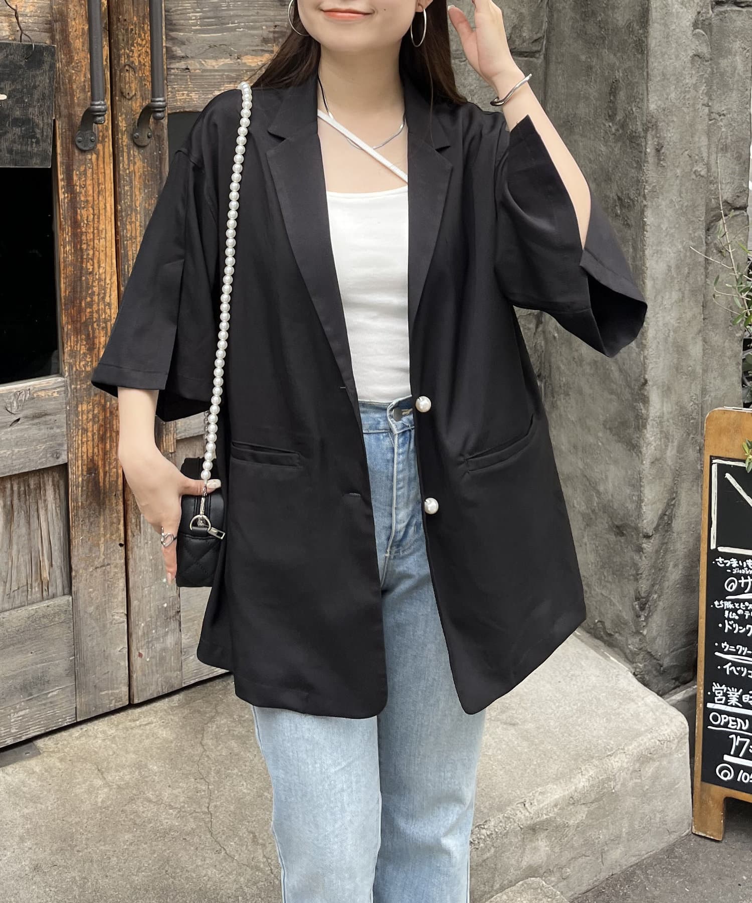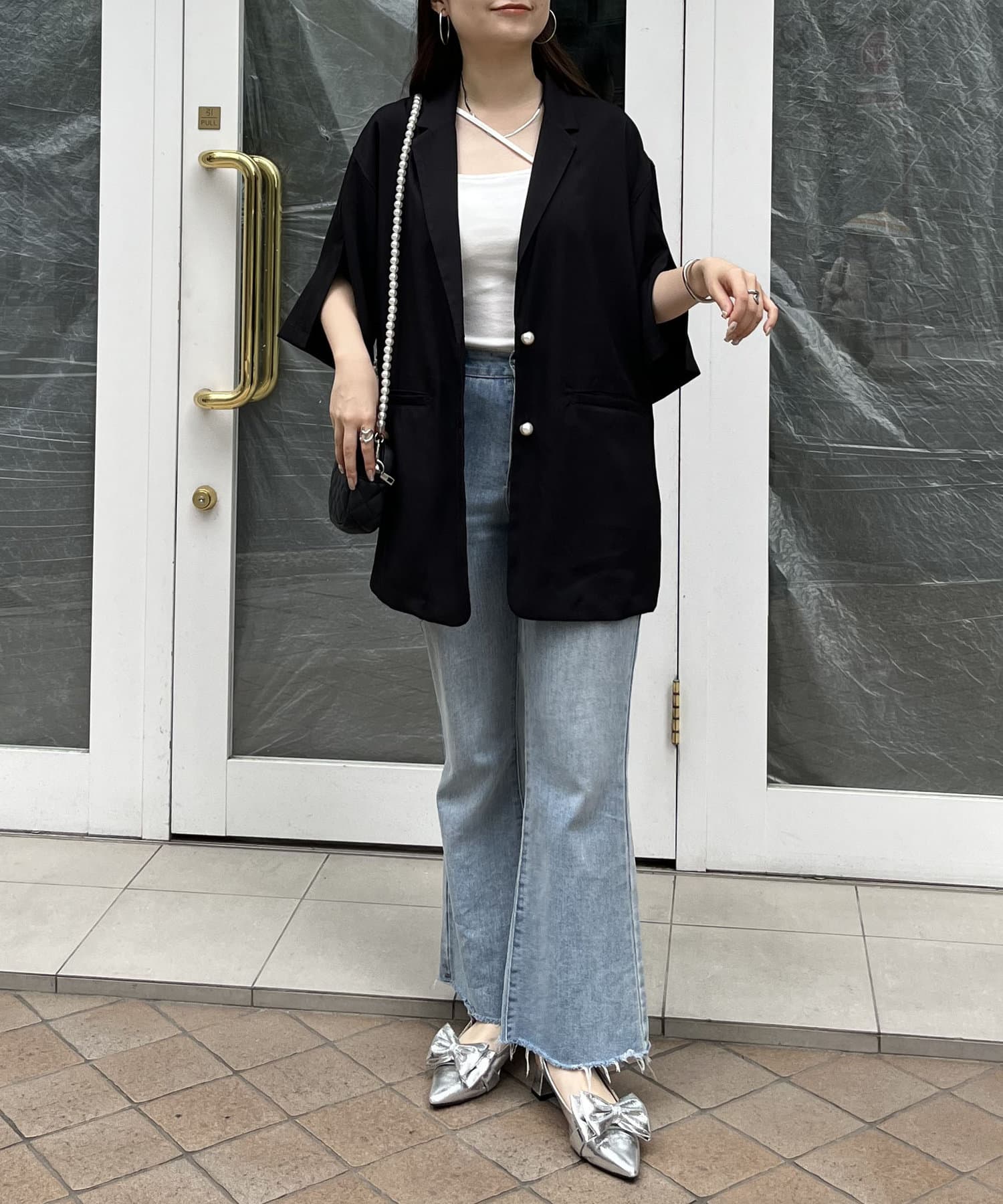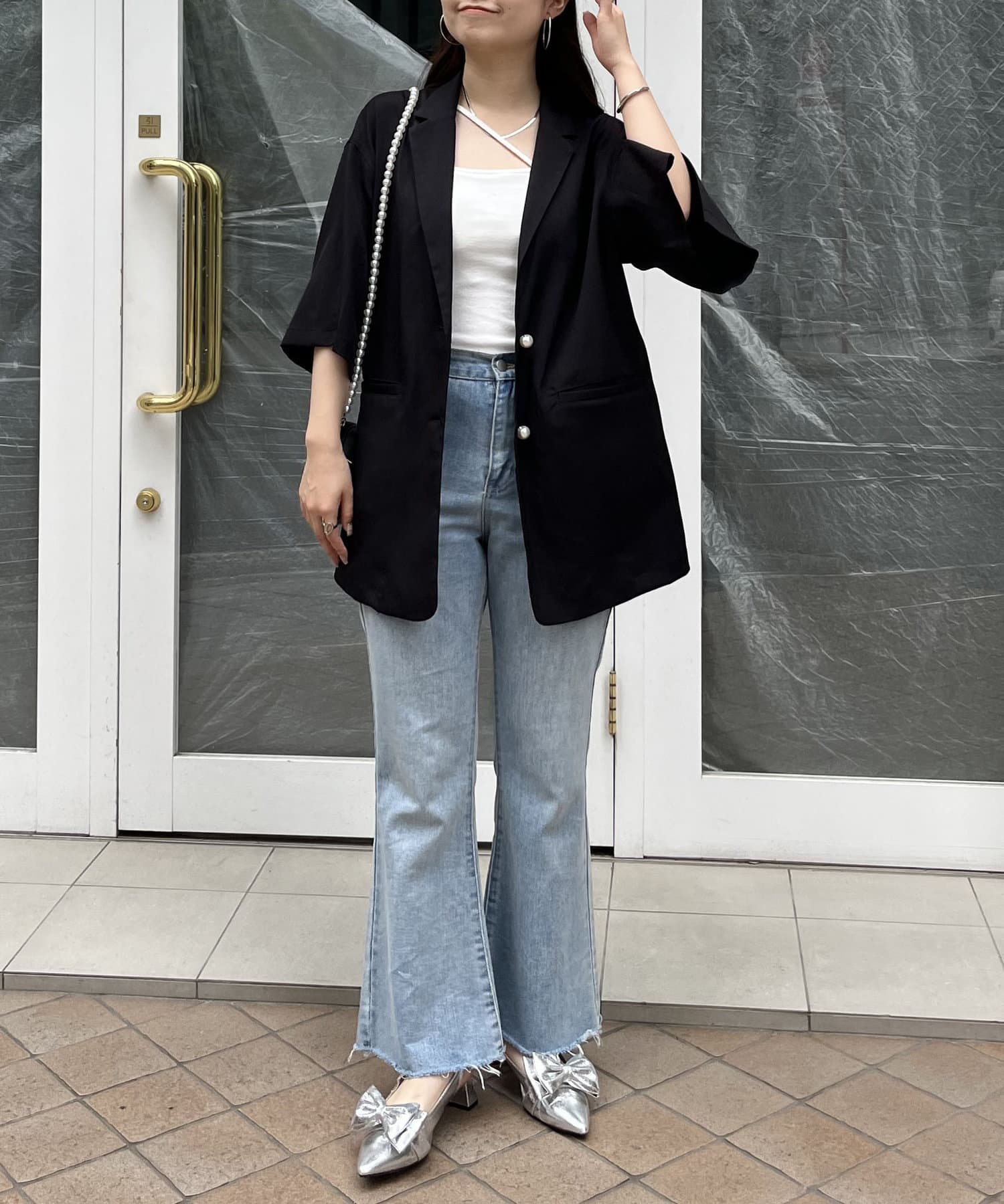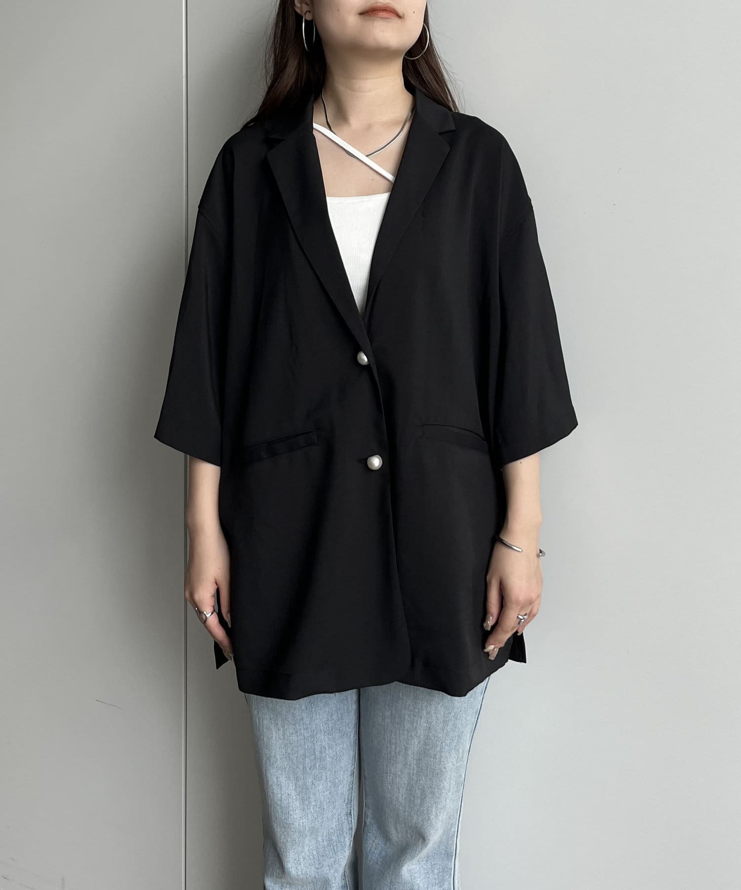 パールボタンハーフスリーブジャケット