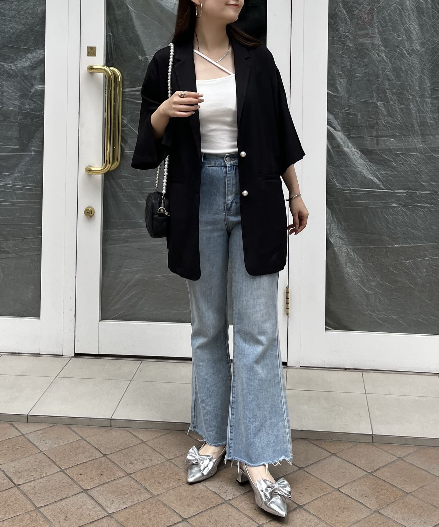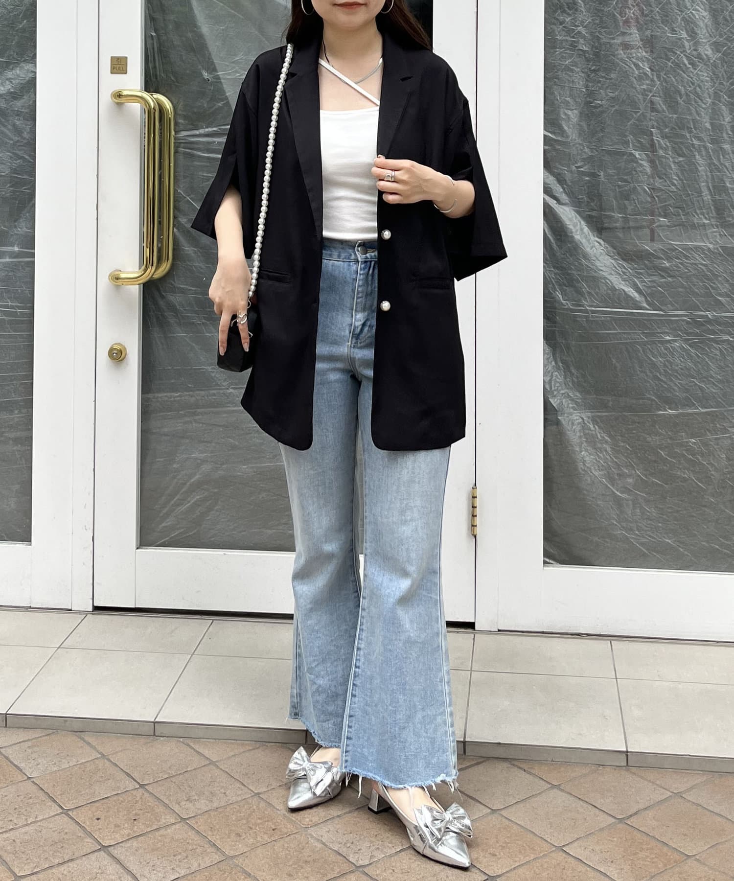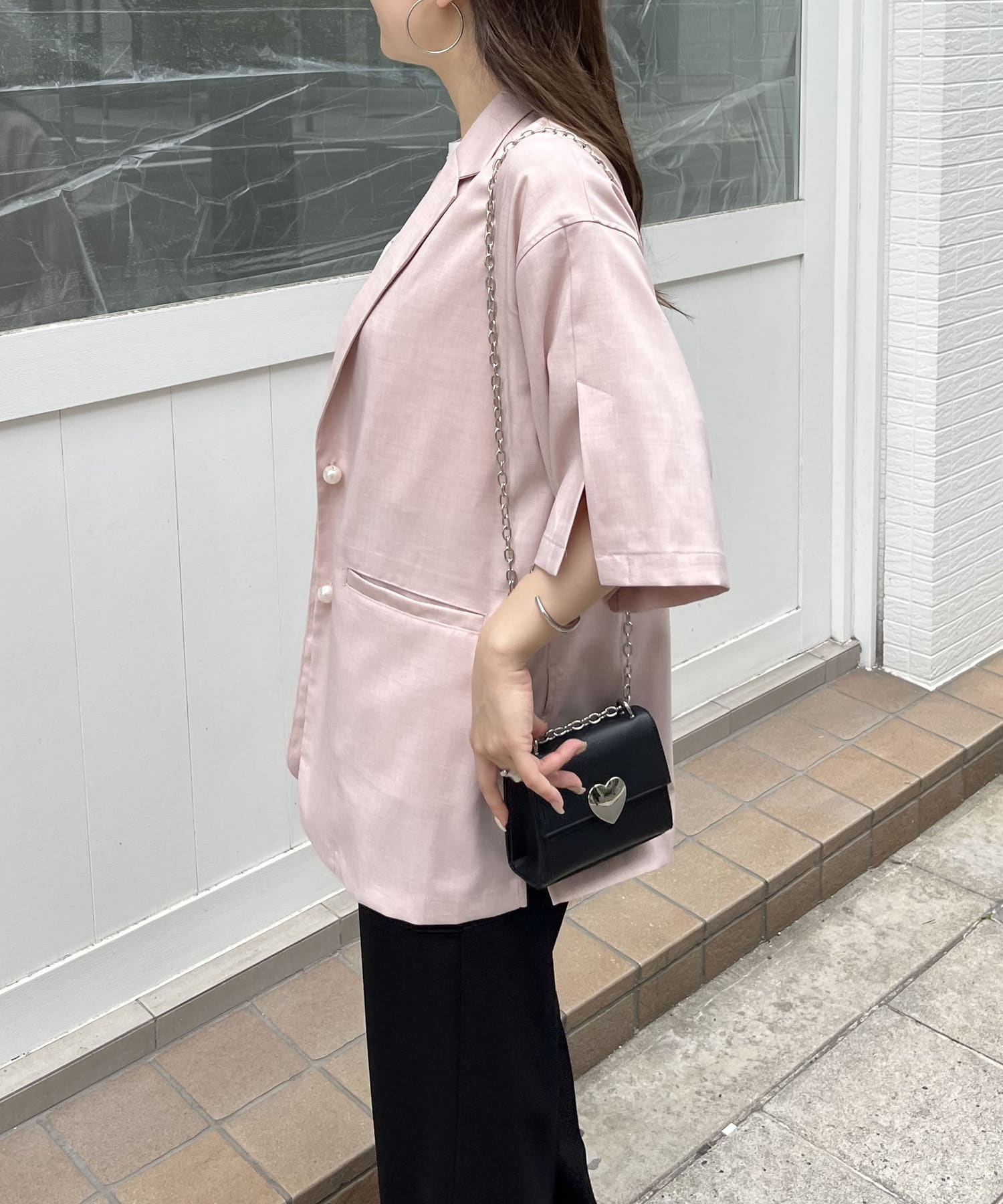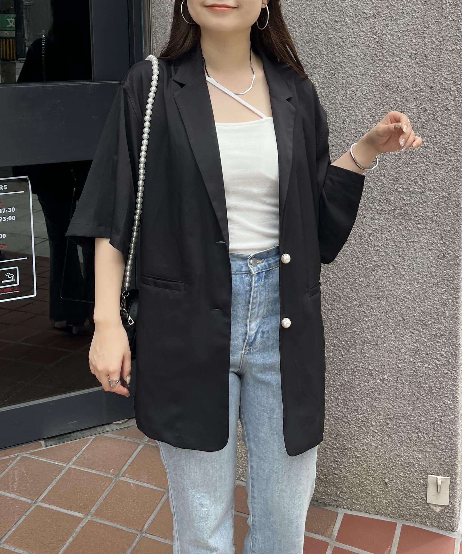 パールボタンハーフスリーブジャケット