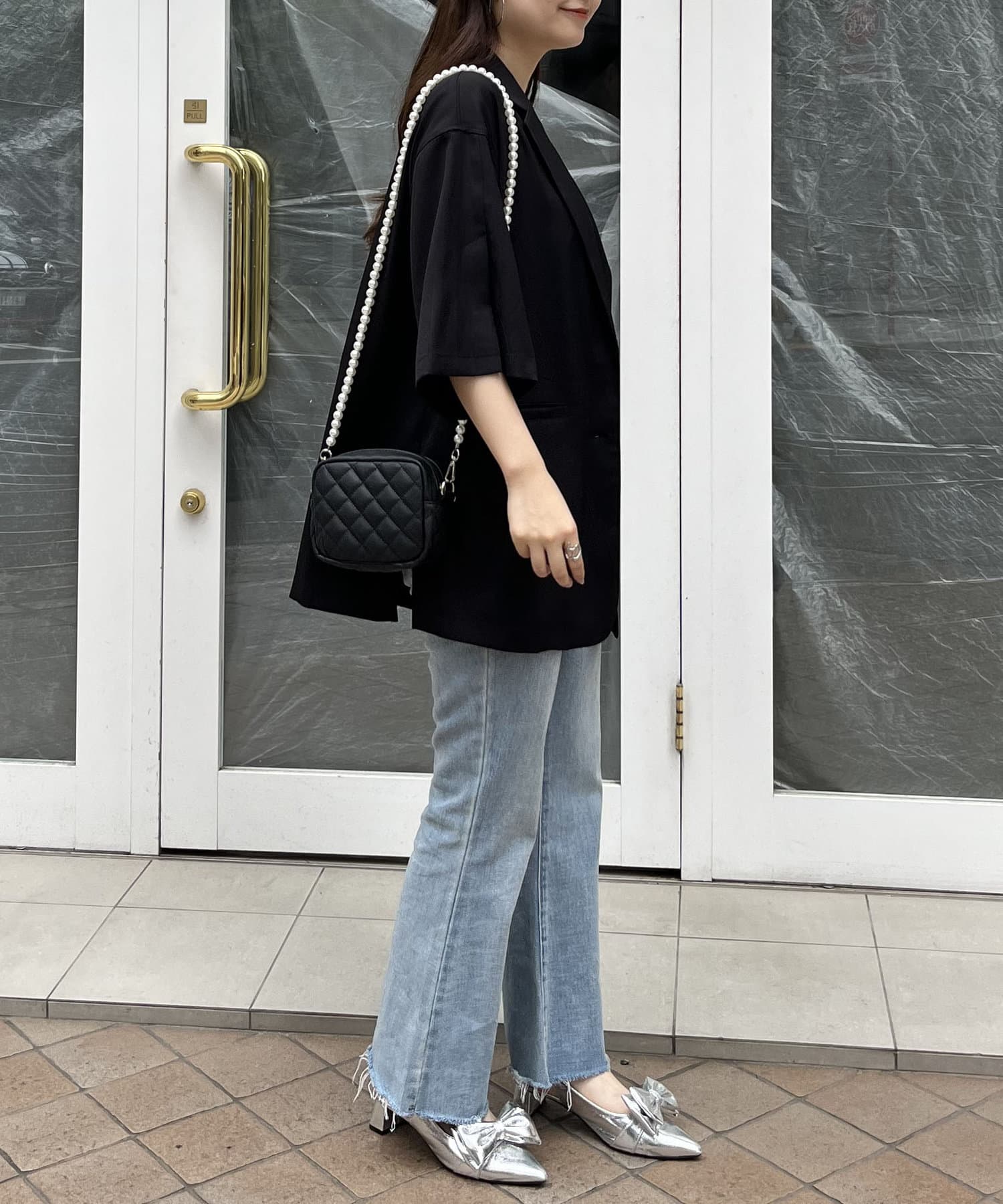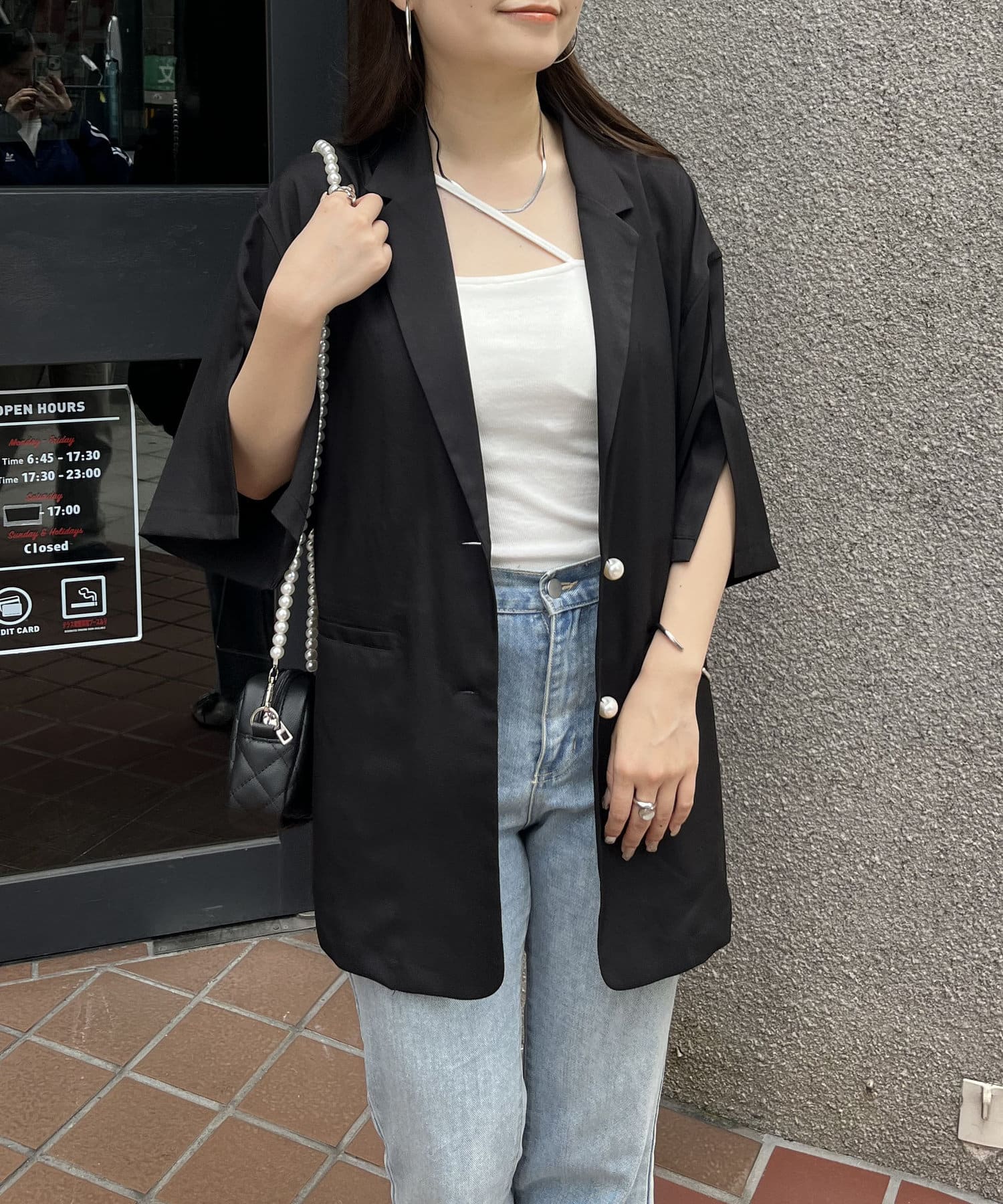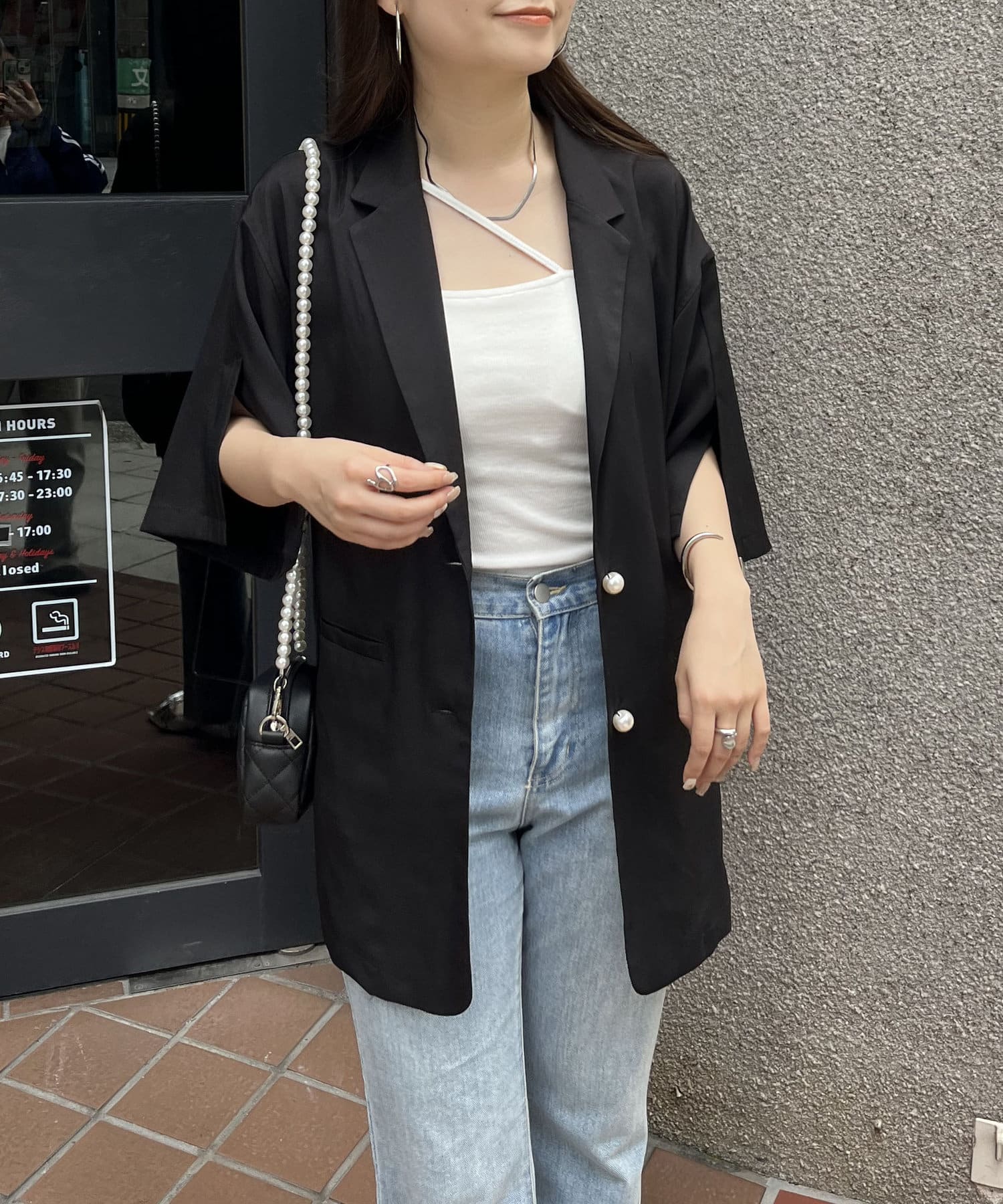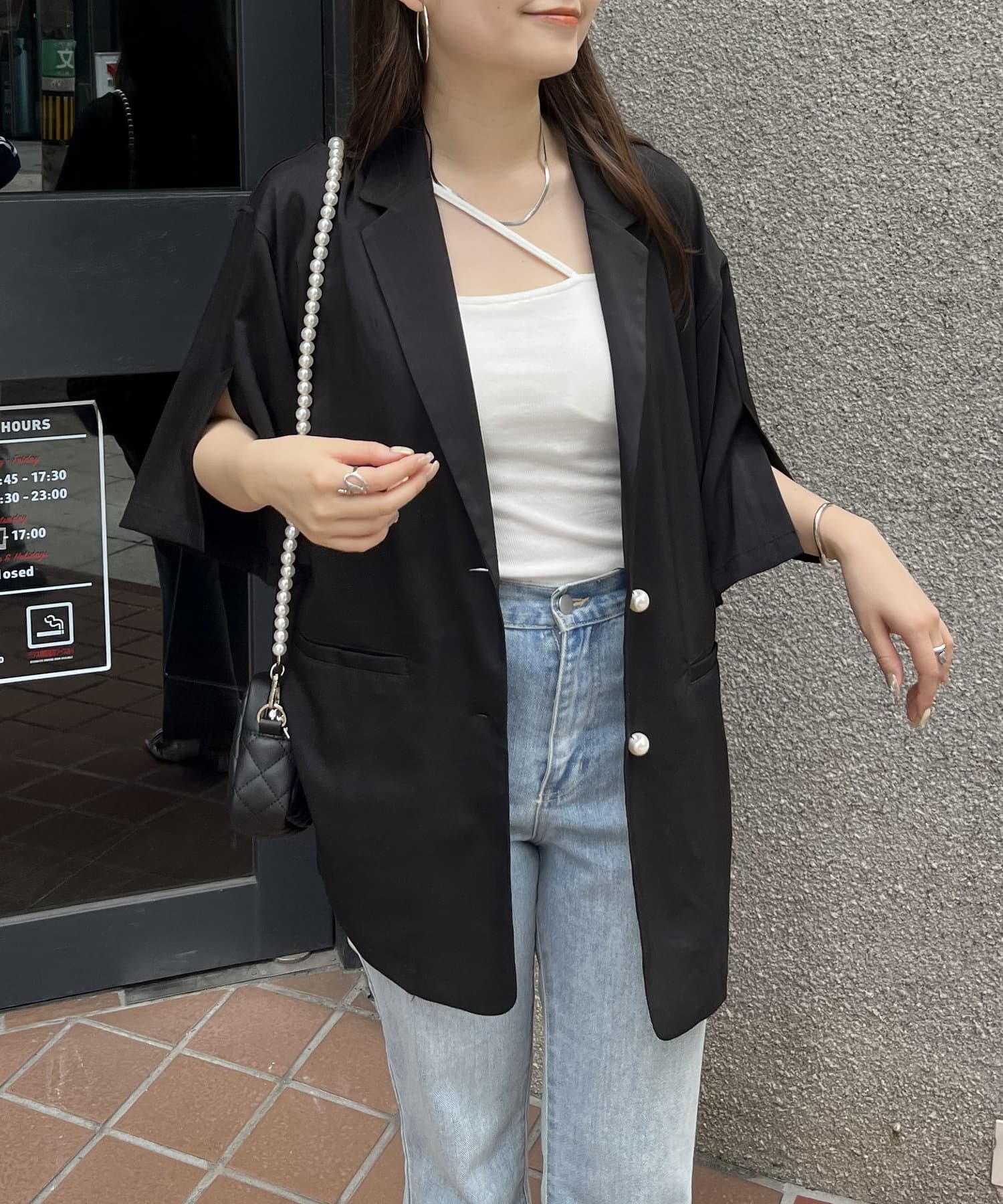 パールボタンハーフスリーブジャケット