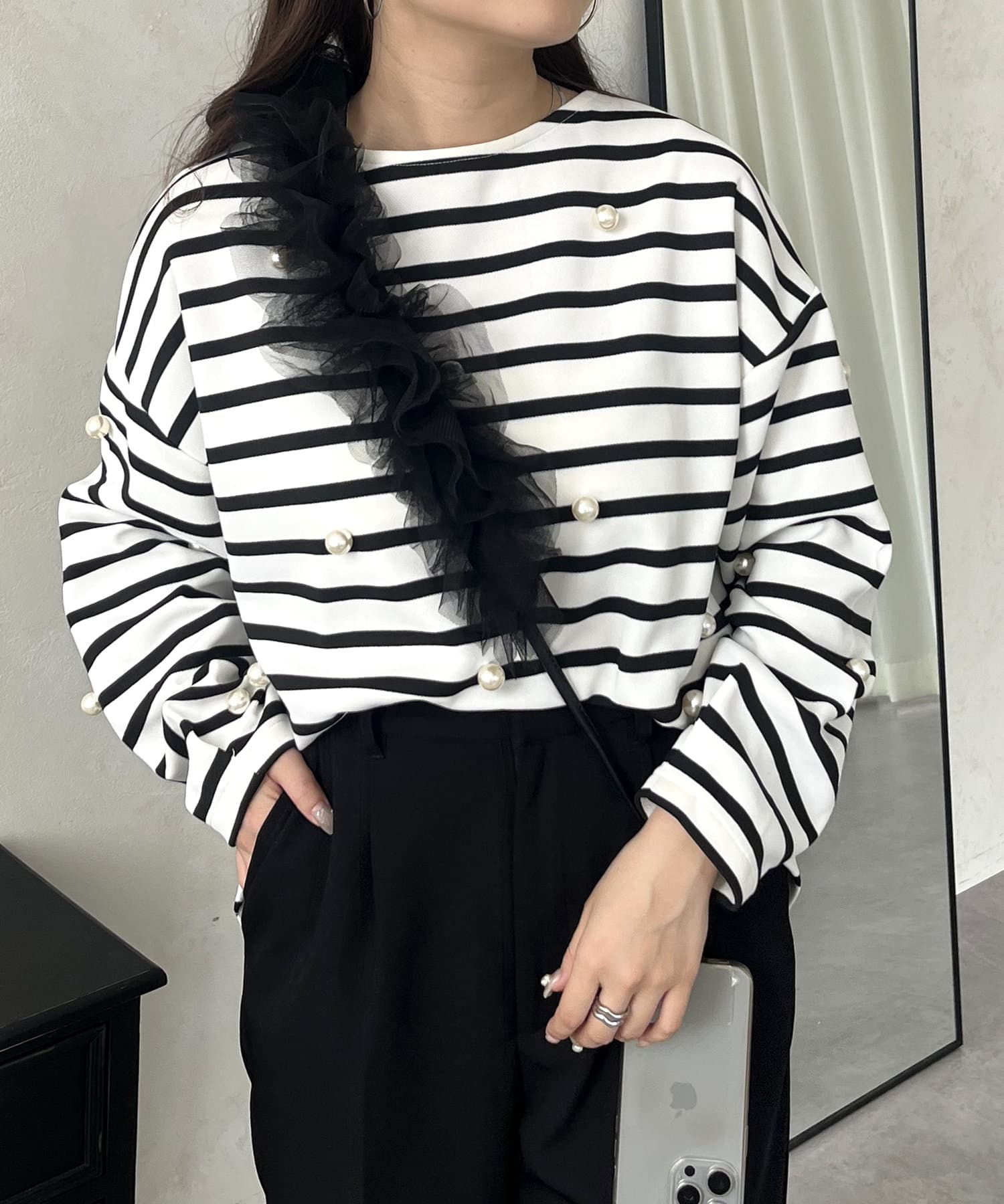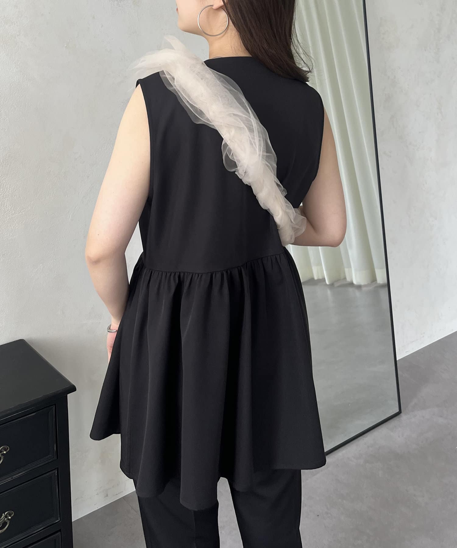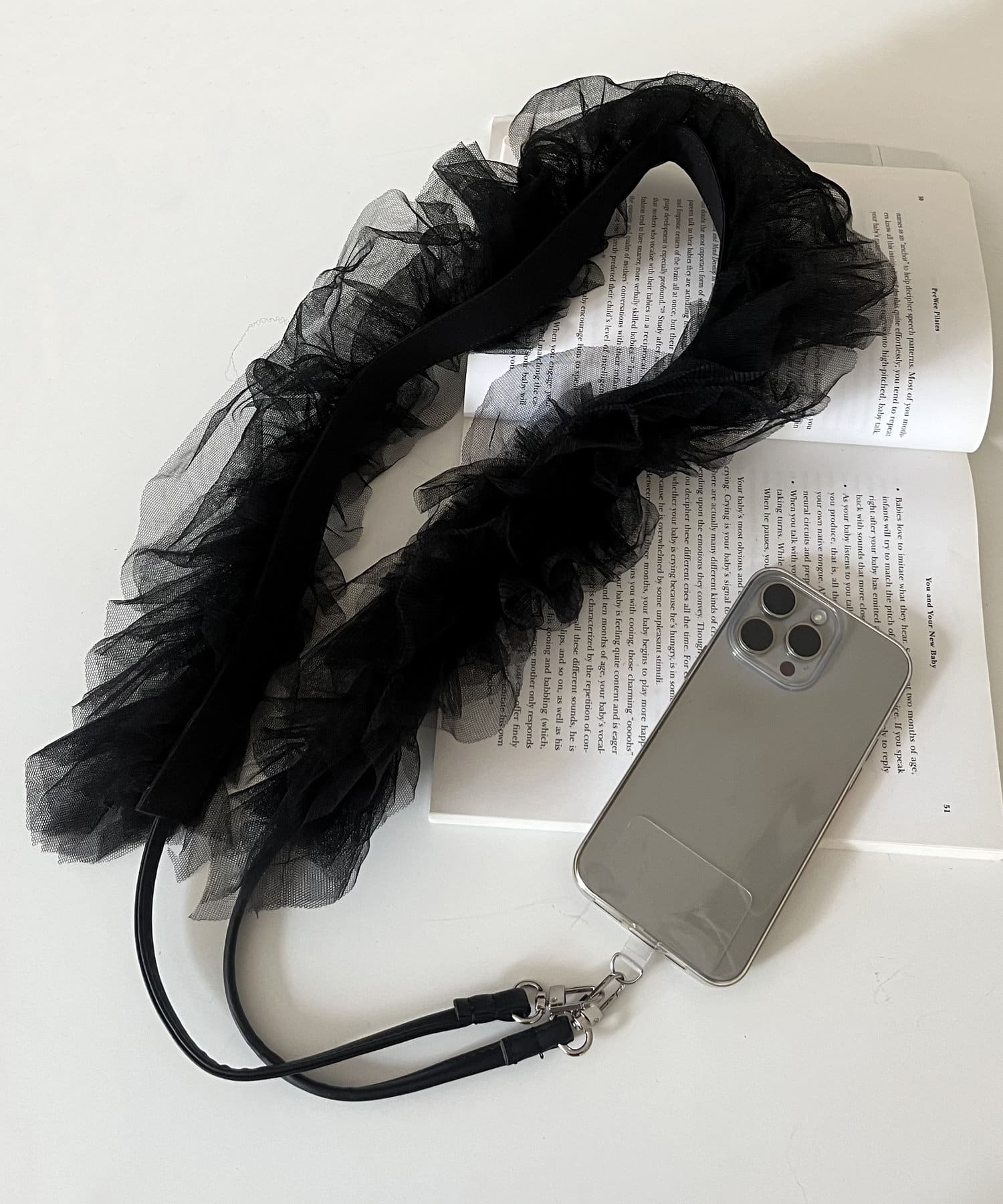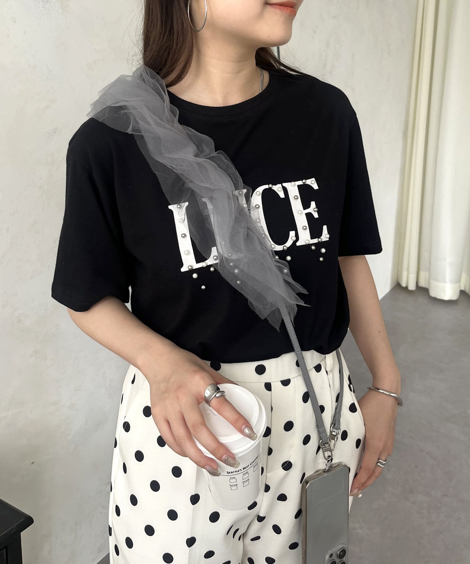 コーデの主役級に映えるチュールフリルスマホショルダー