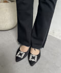 【低身長サイズ有り】ストレッチツイルフレアパンツ