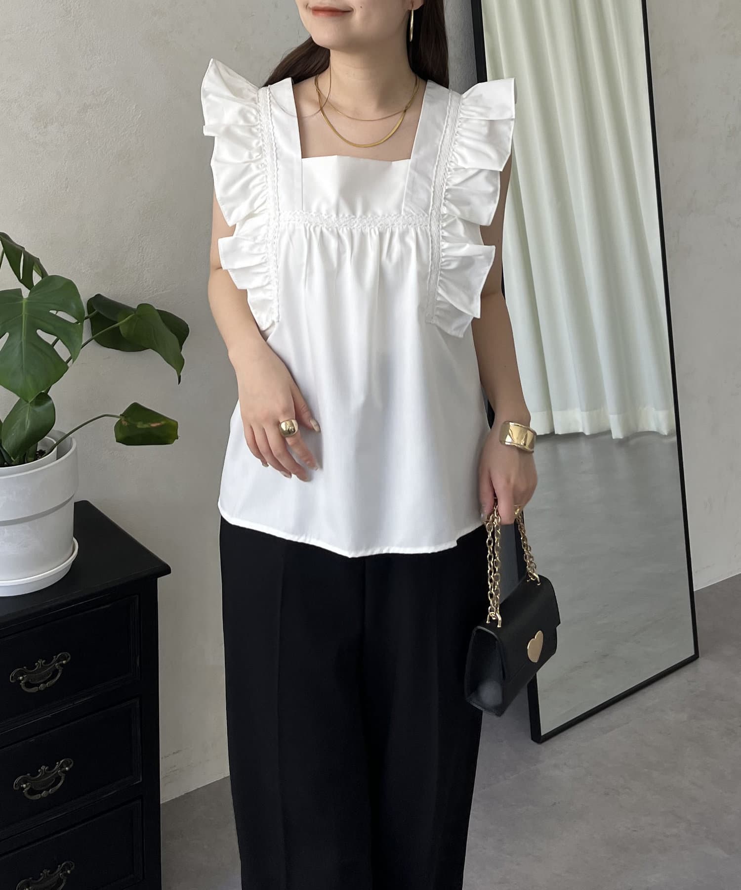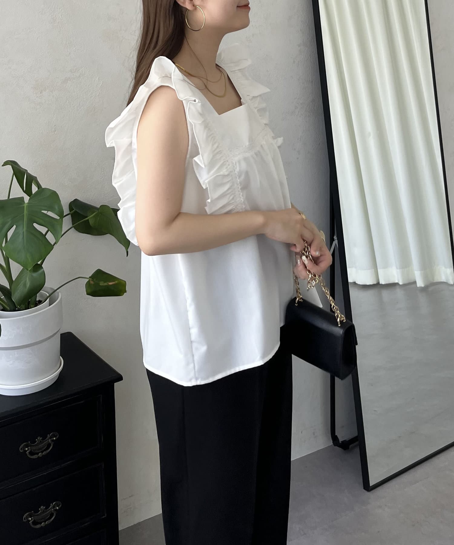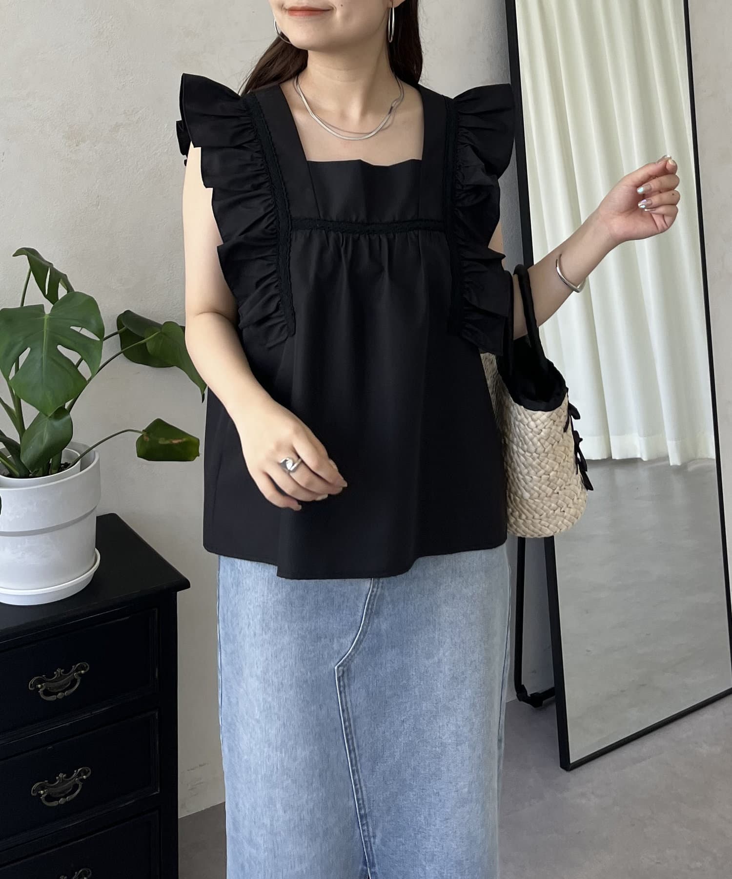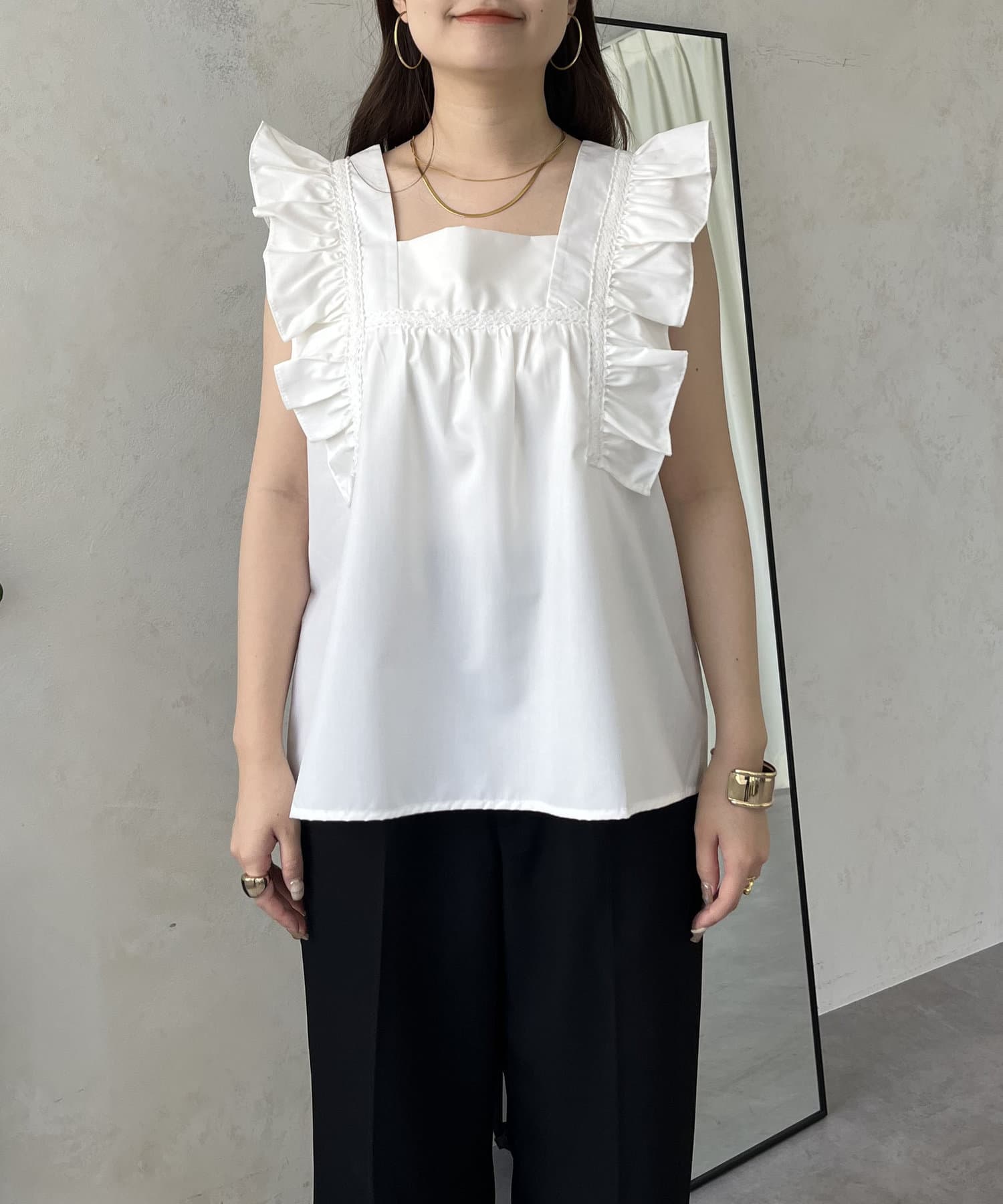 • prose verse(プロズヴェール) スクエアネックノースリーブフリルブラウス