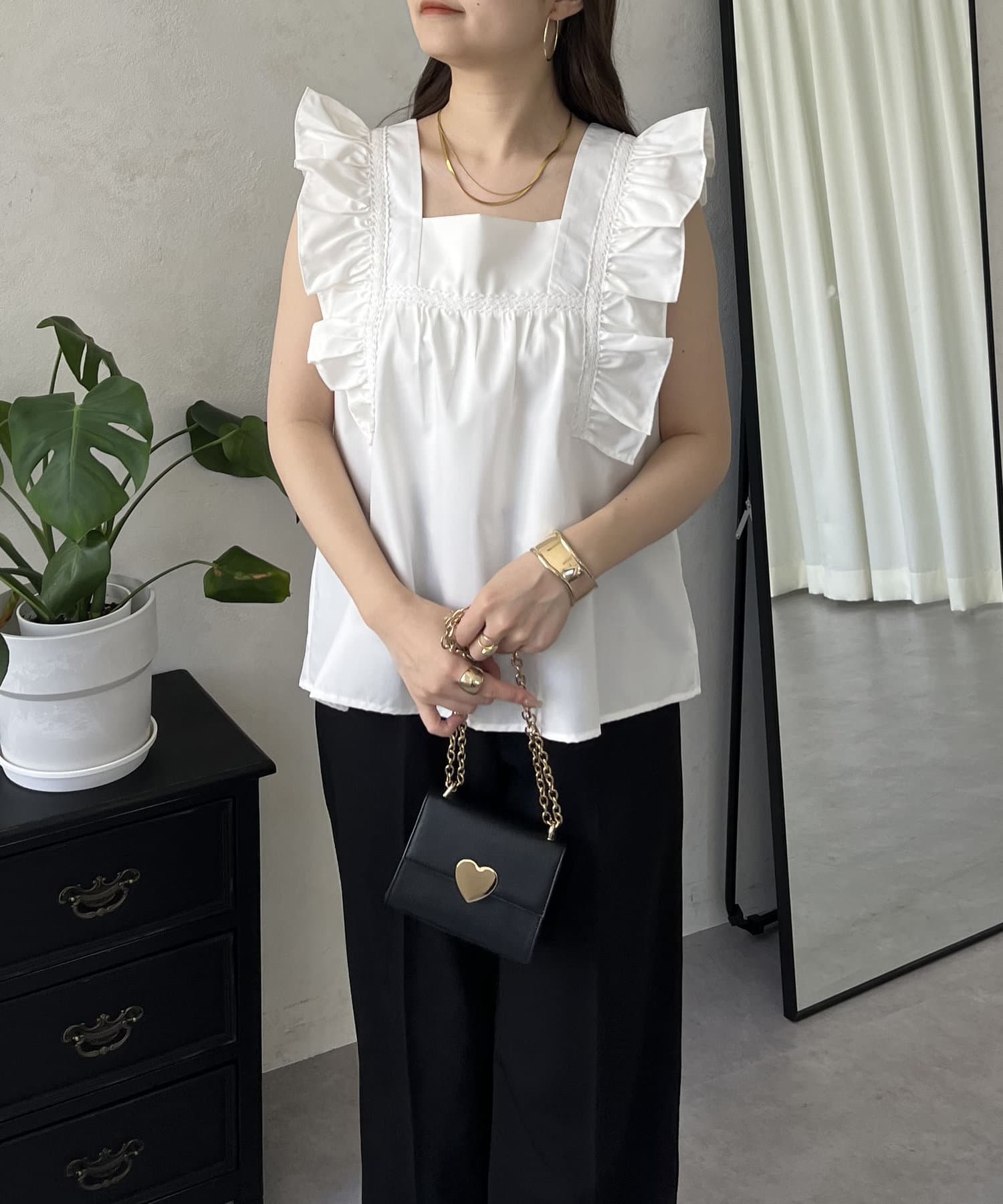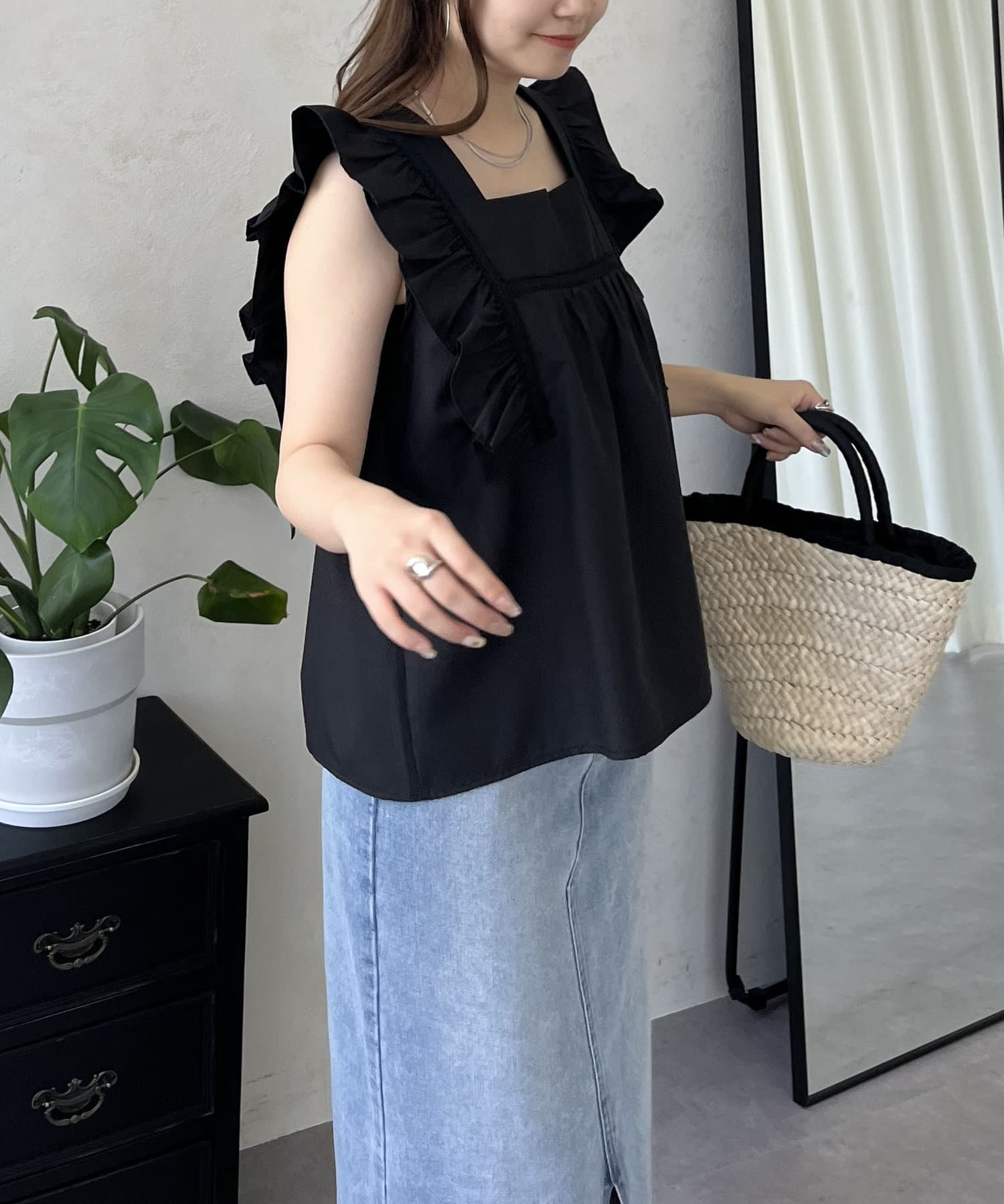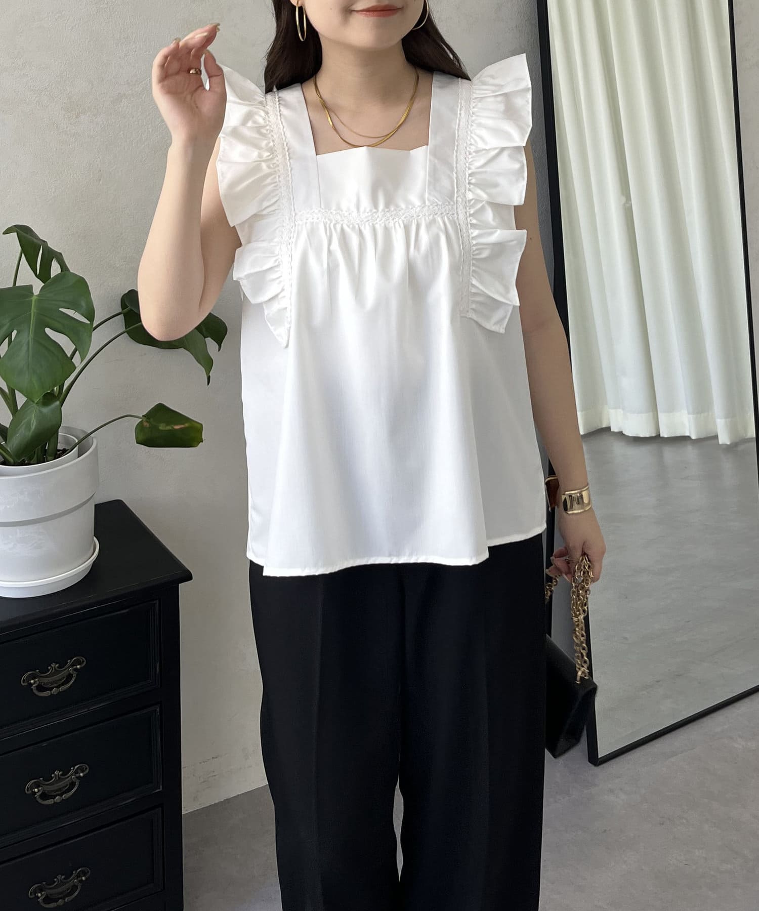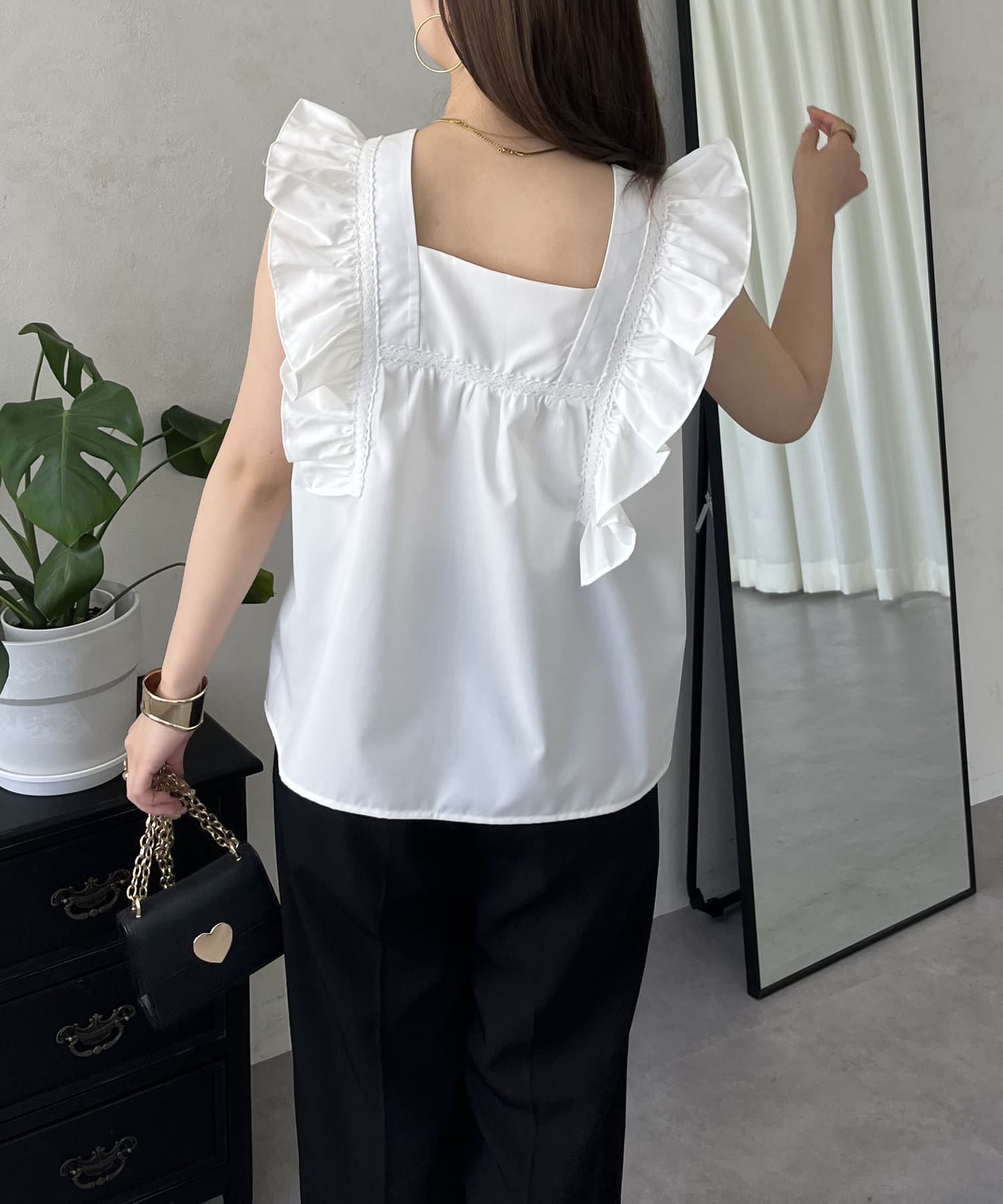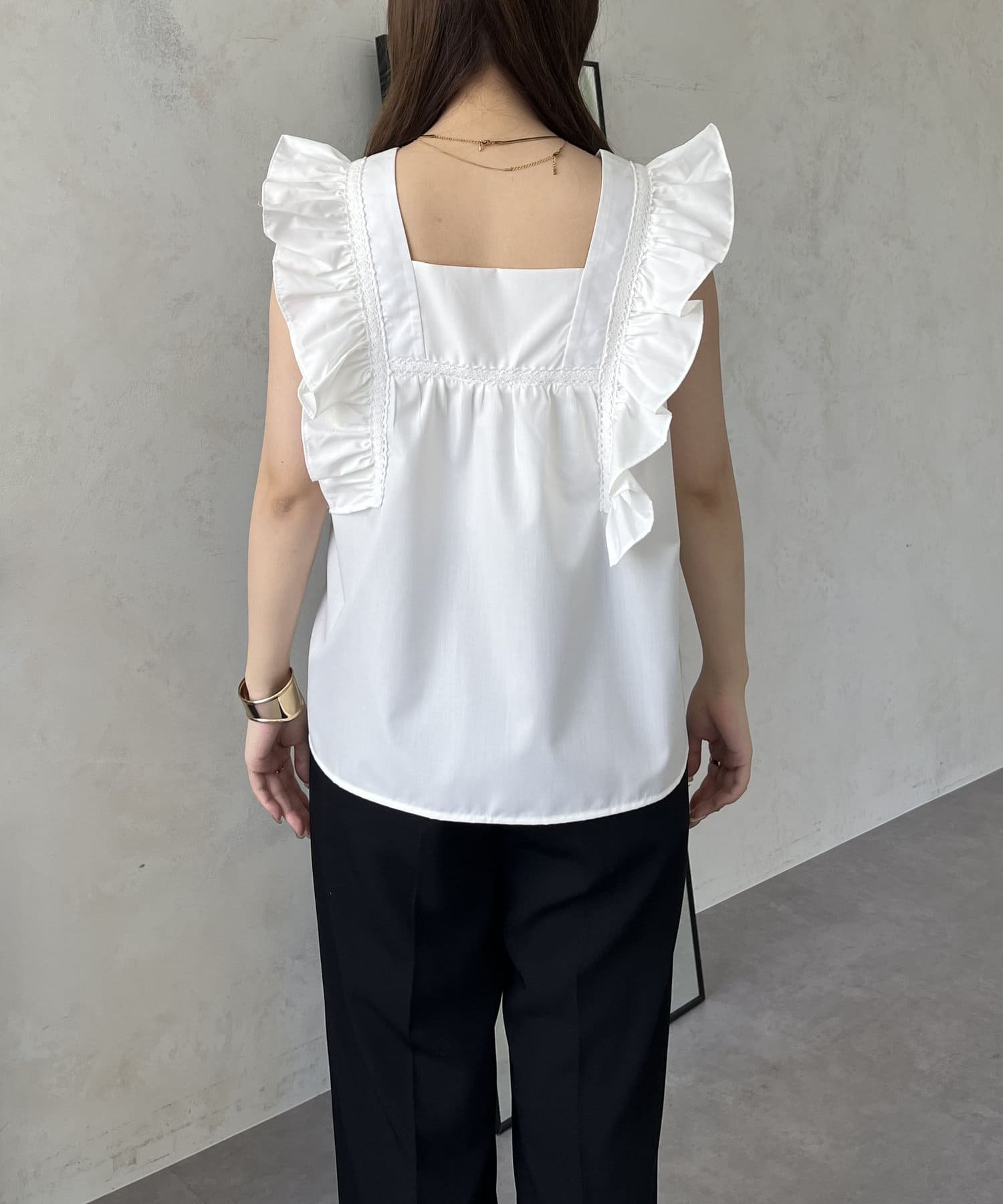 • prose verse(プロズヴェール) スクエアネックノースリーブフリルブラウス