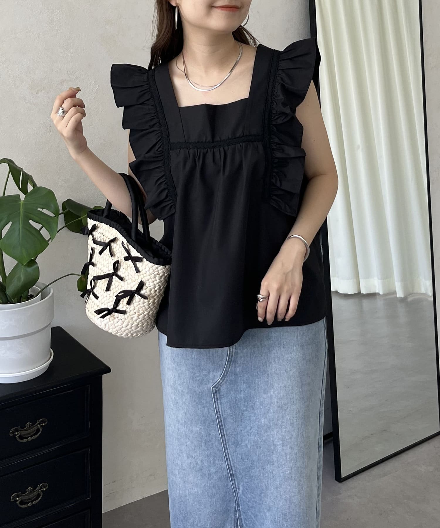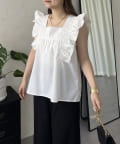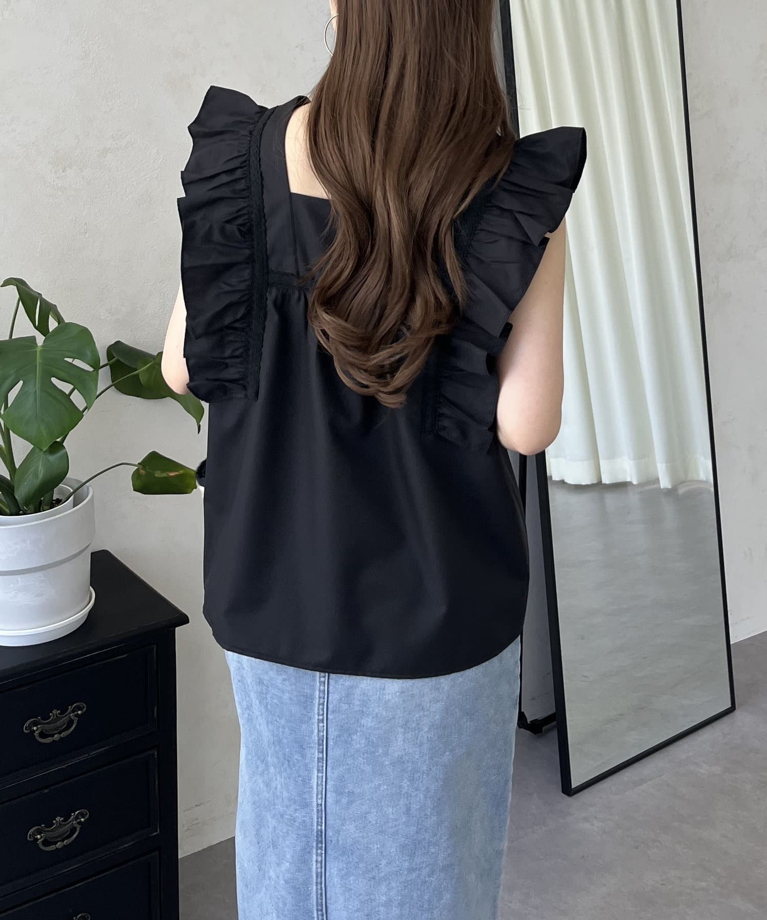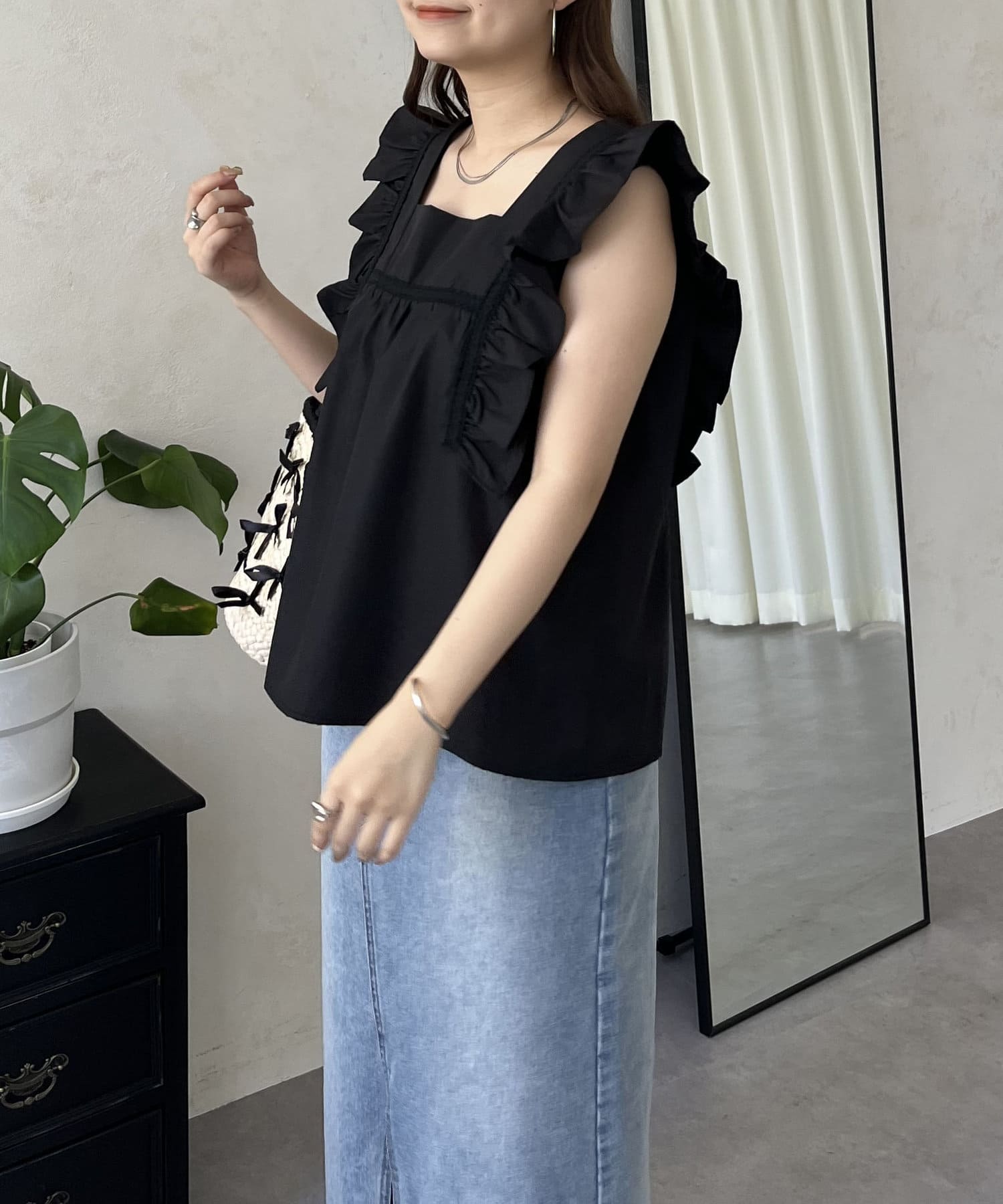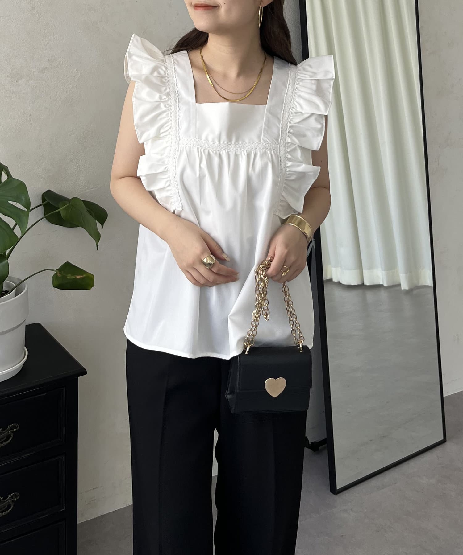 • prose verse(プロズヴェール) スクエアネックノースリーブフリルブラウス