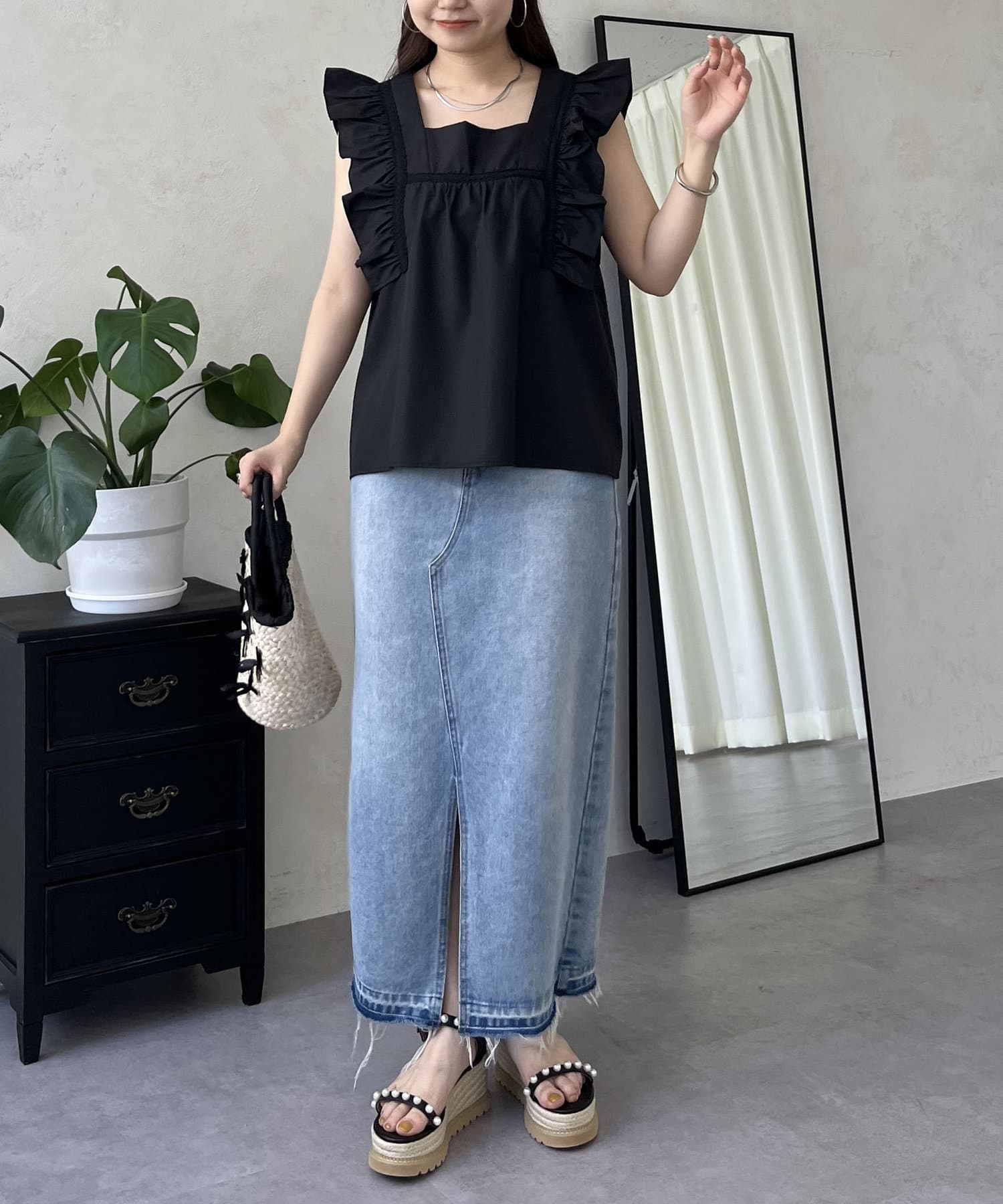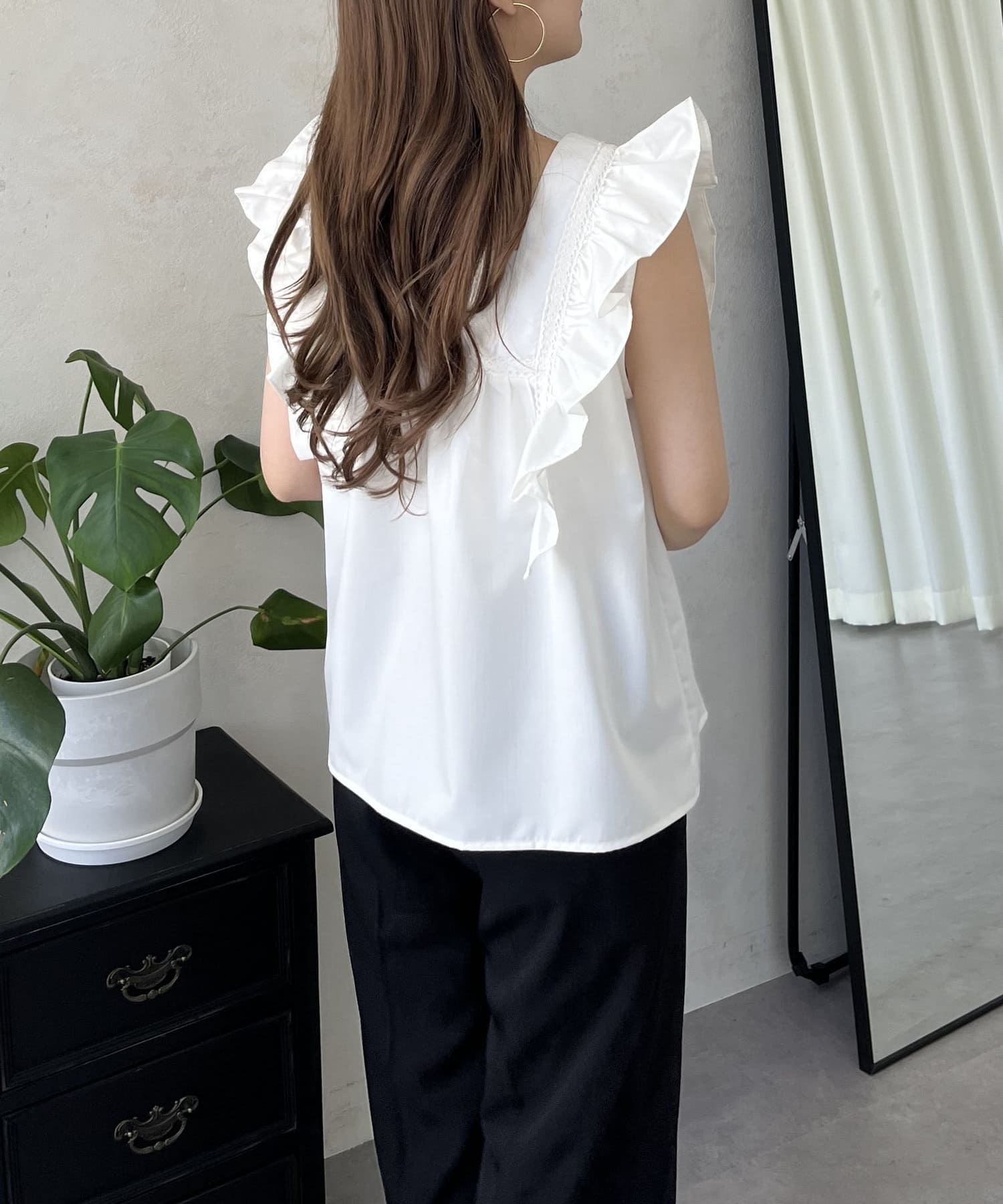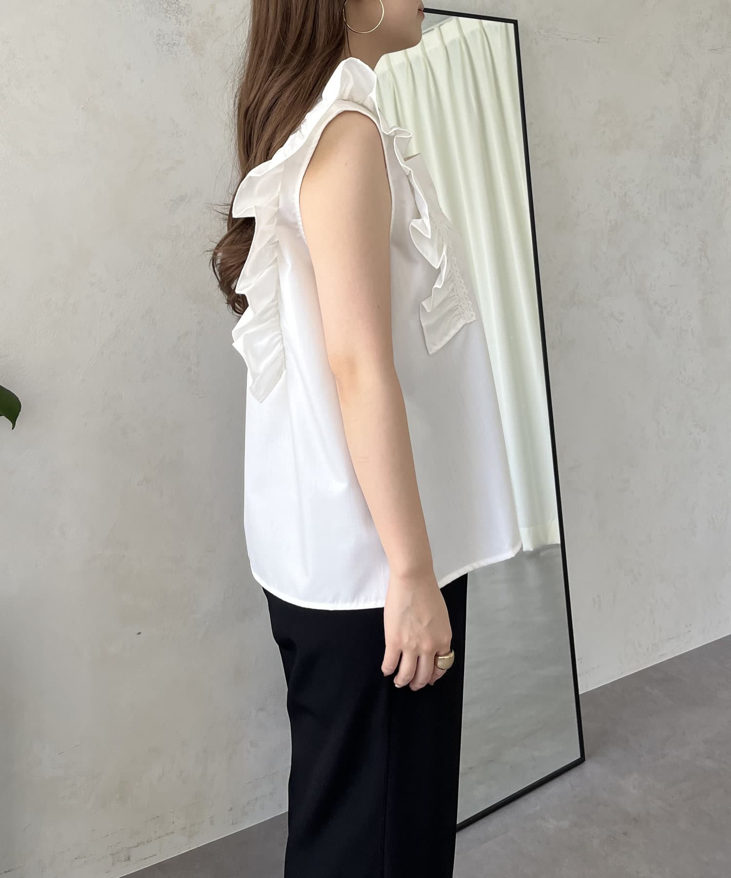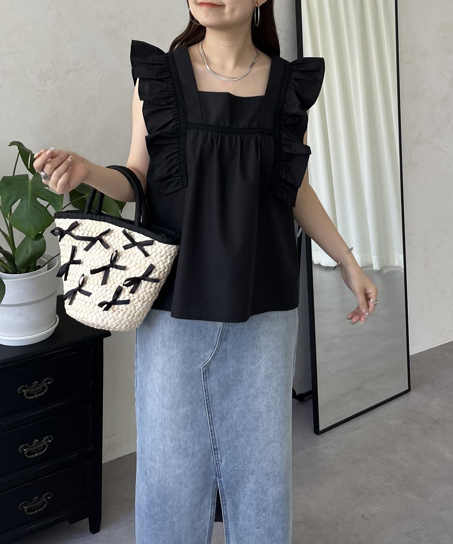 • prose verse(プロズヴェール) スクエアネックノースリーブフリルブラウス