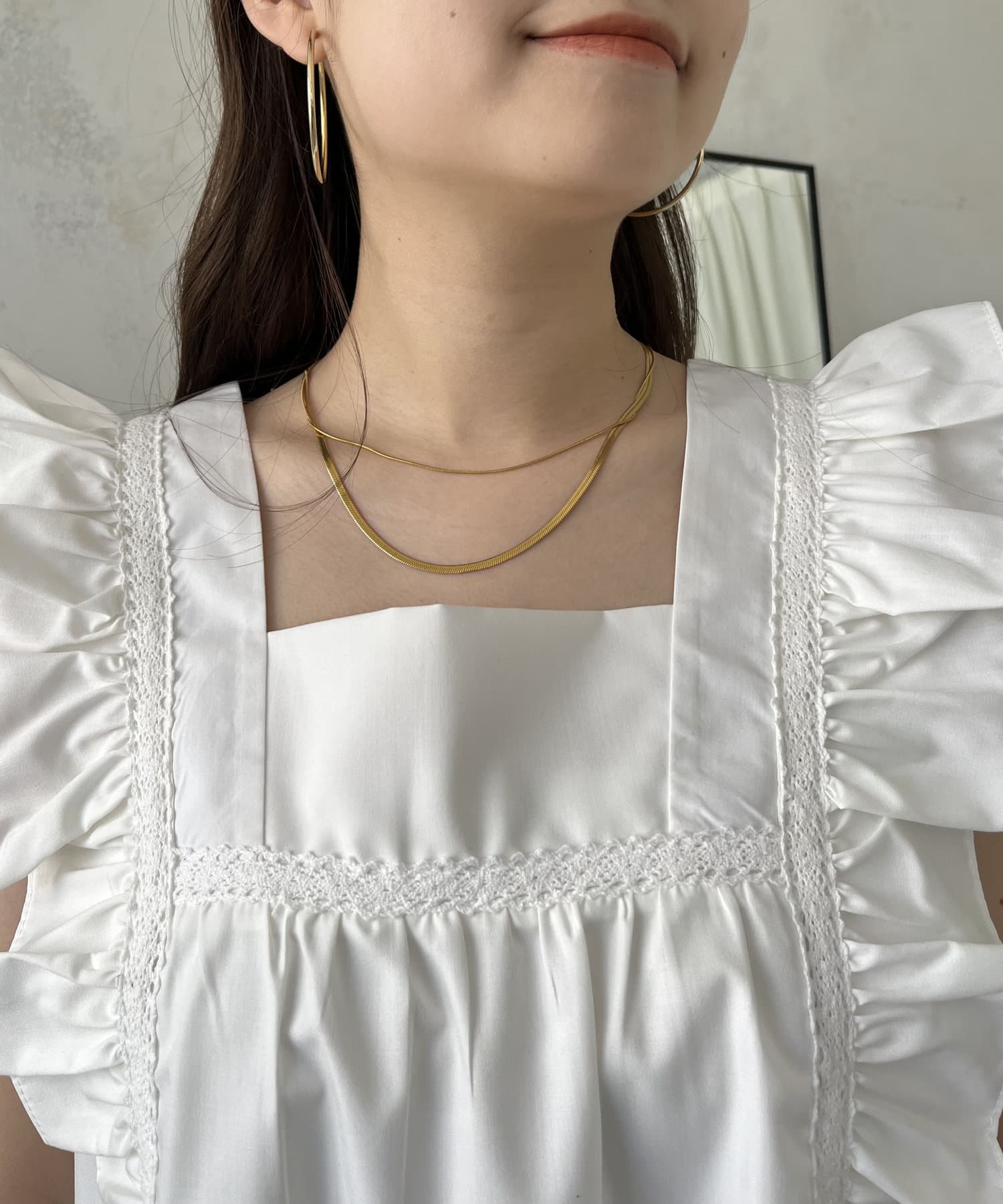 ●スクエアネックで顔回りをすっきりと見せてくれます