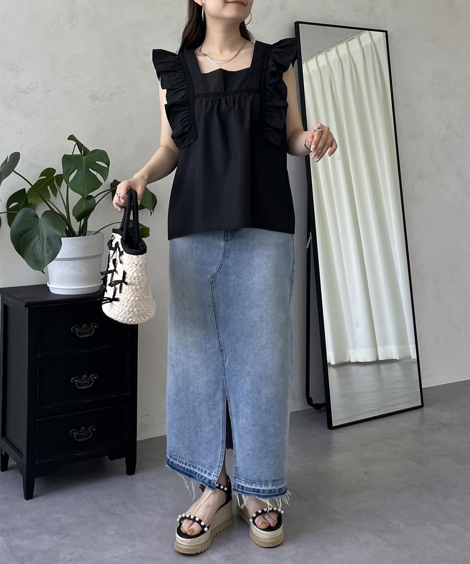 ●甘くなりがちなフリルもデニムなどを合わせればカジュアルダウンで楽しめます◎