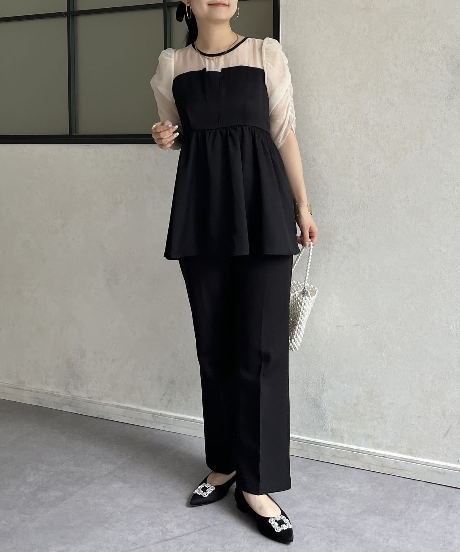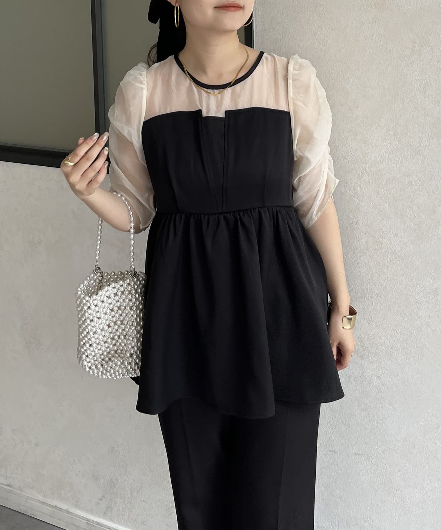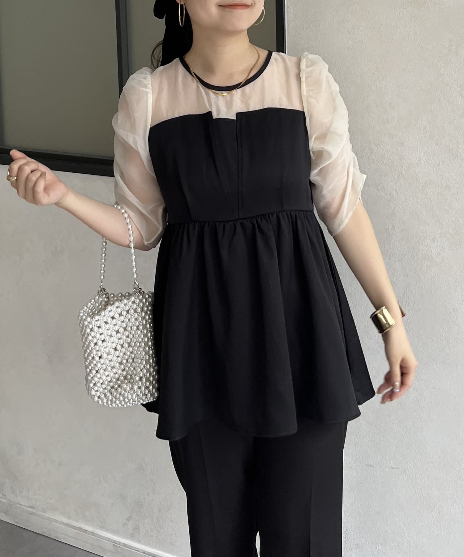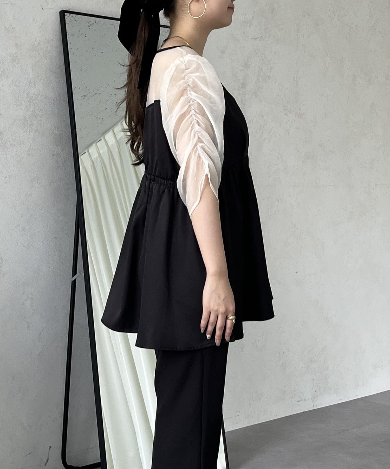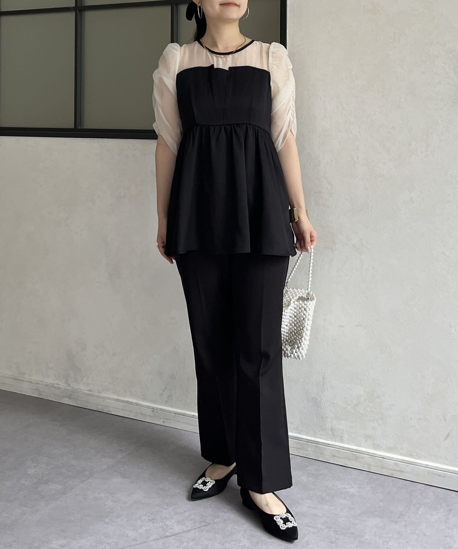 ●お持ちのきれいめボトムと合わせればこのトップス1枚でお呼ばれコーデの完成です