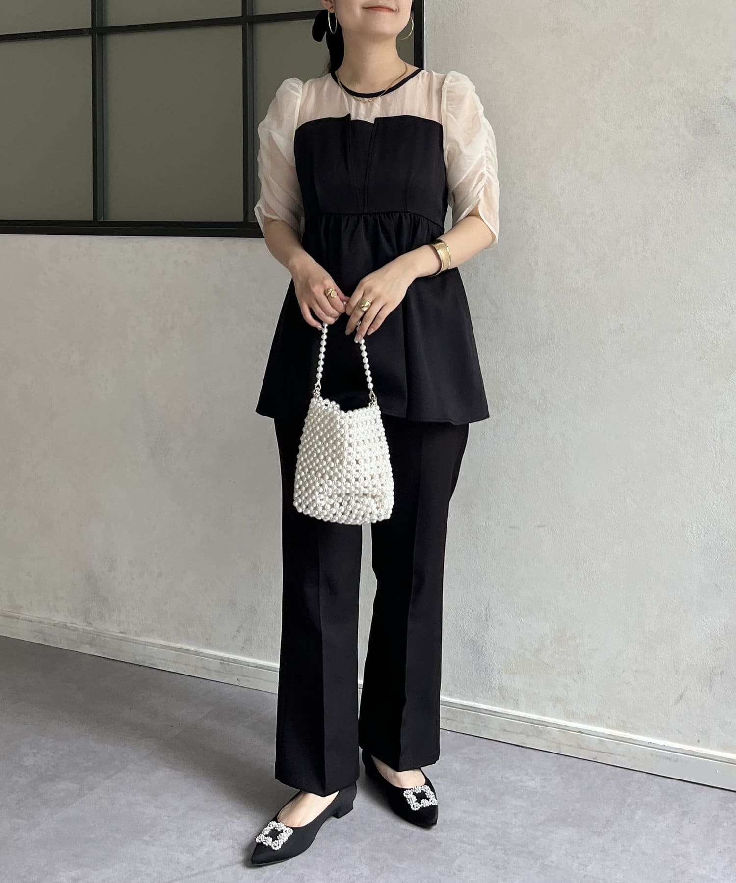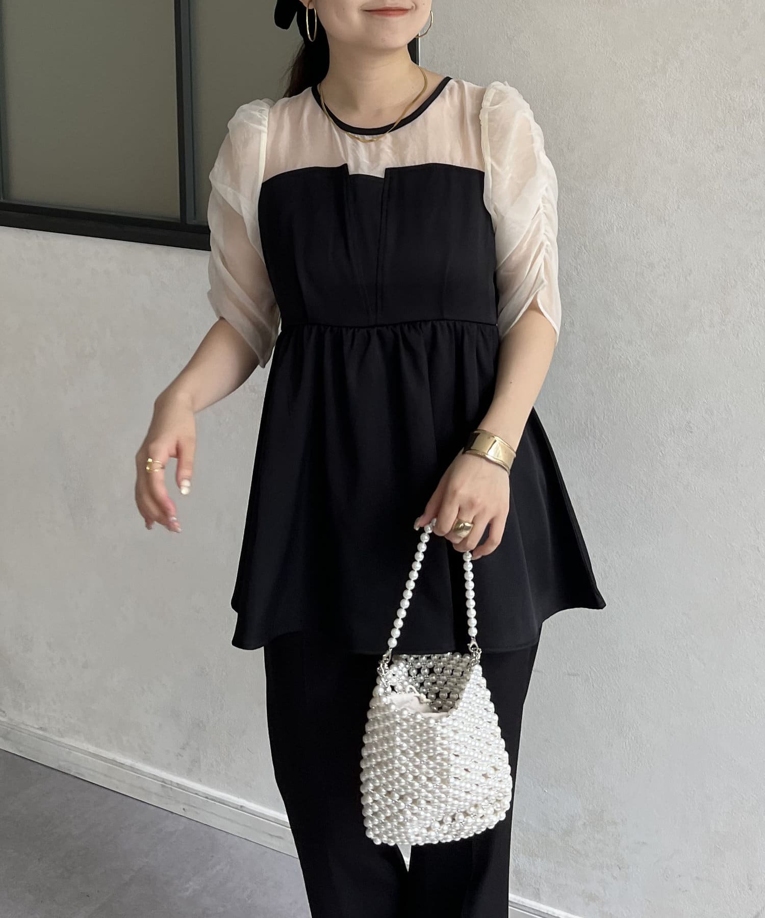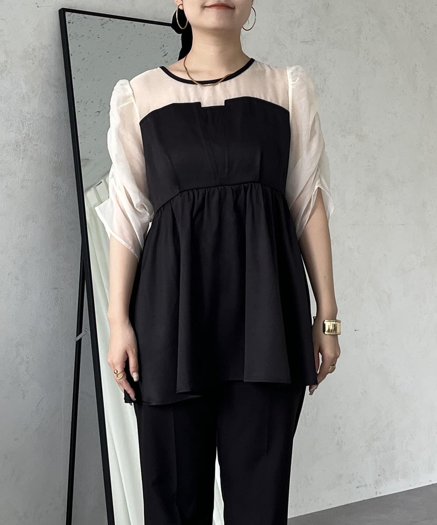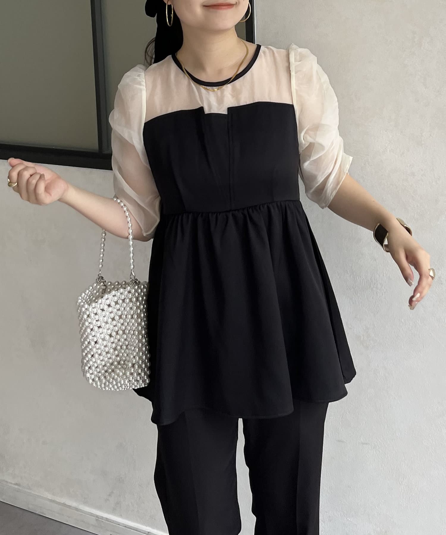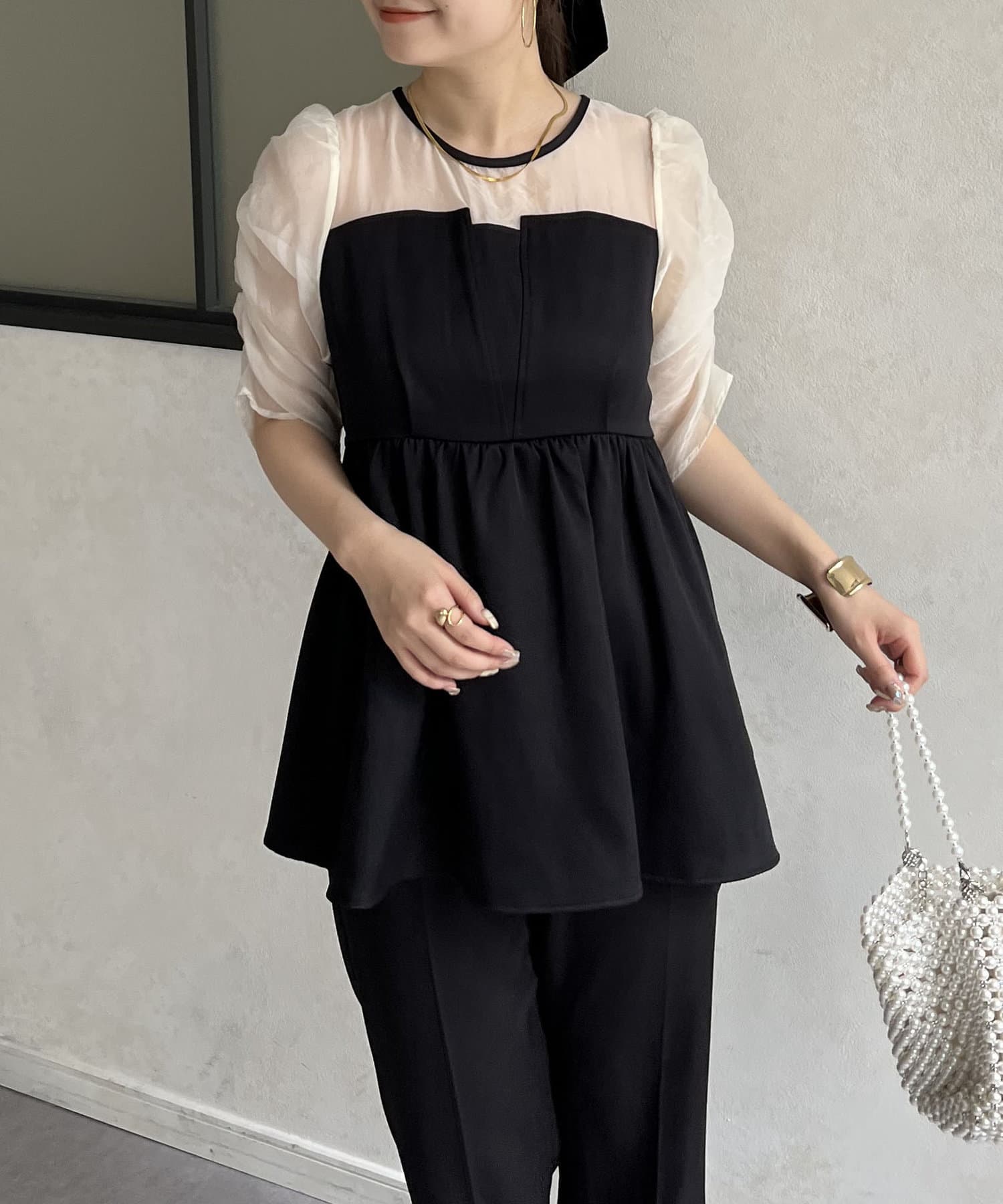 ●お持ちのきれいめボトムと合わせればこのトップス1枚でお呼ばれコーデの完成です