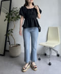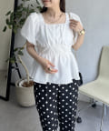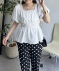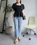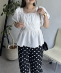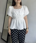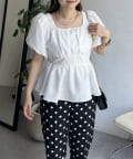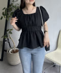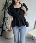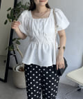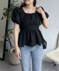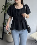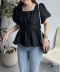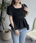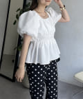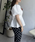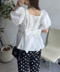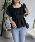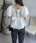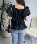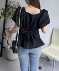 パフスリーブバックリボンペプラムブラウス