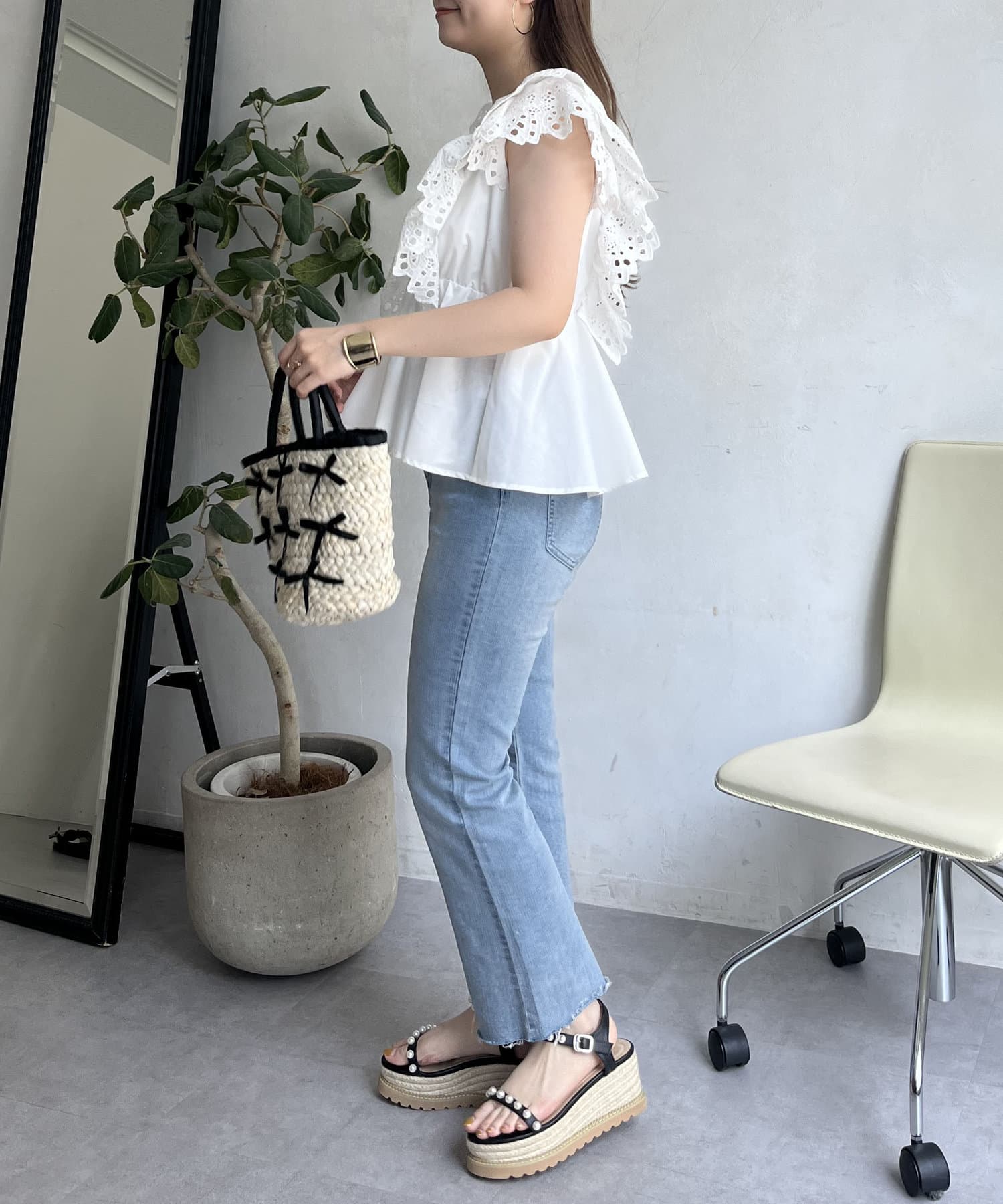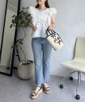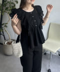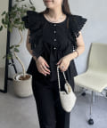 ●存在感のあるフリルが肩に施されておりコーデの主役に◎