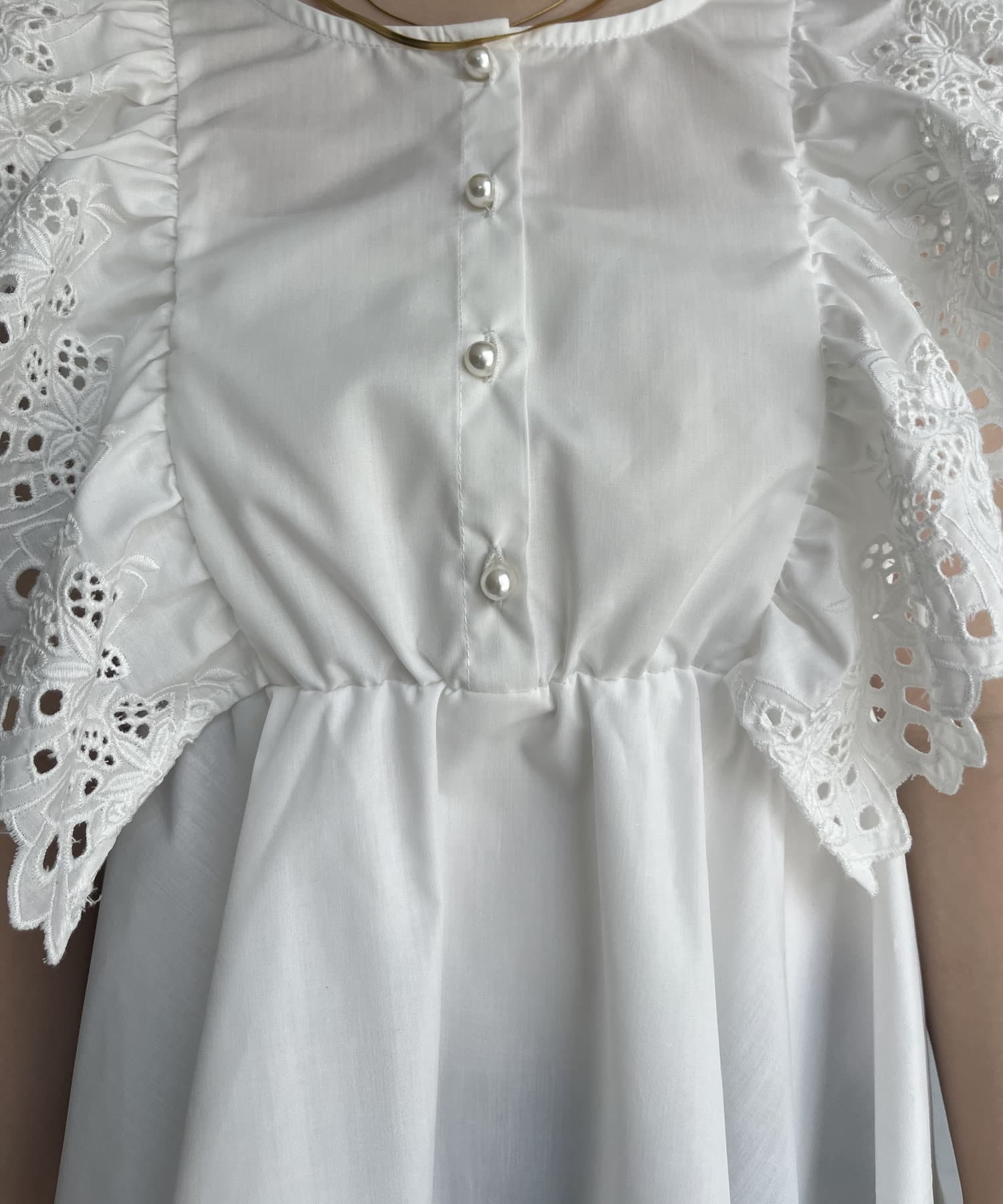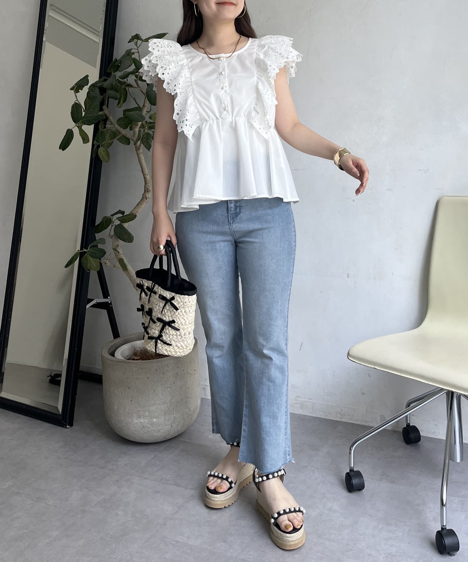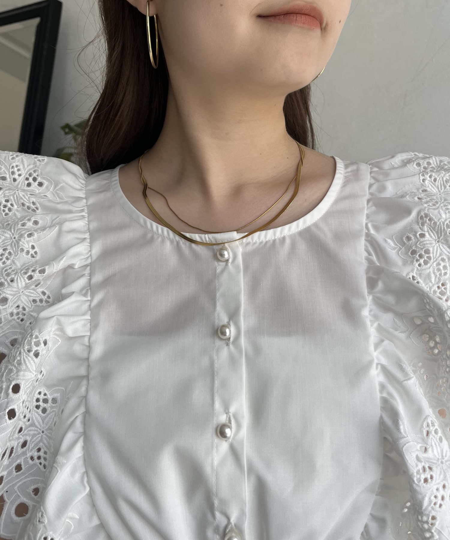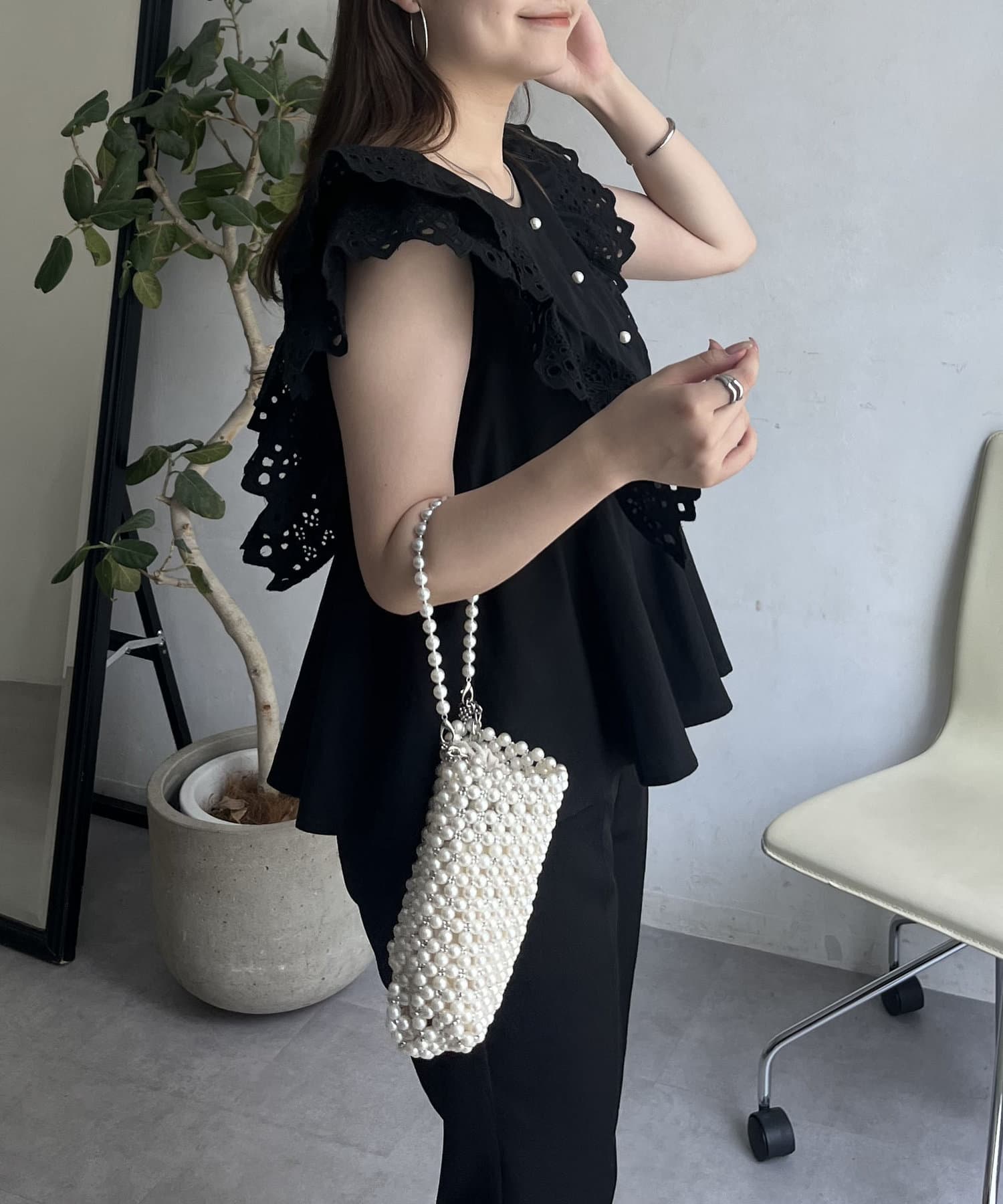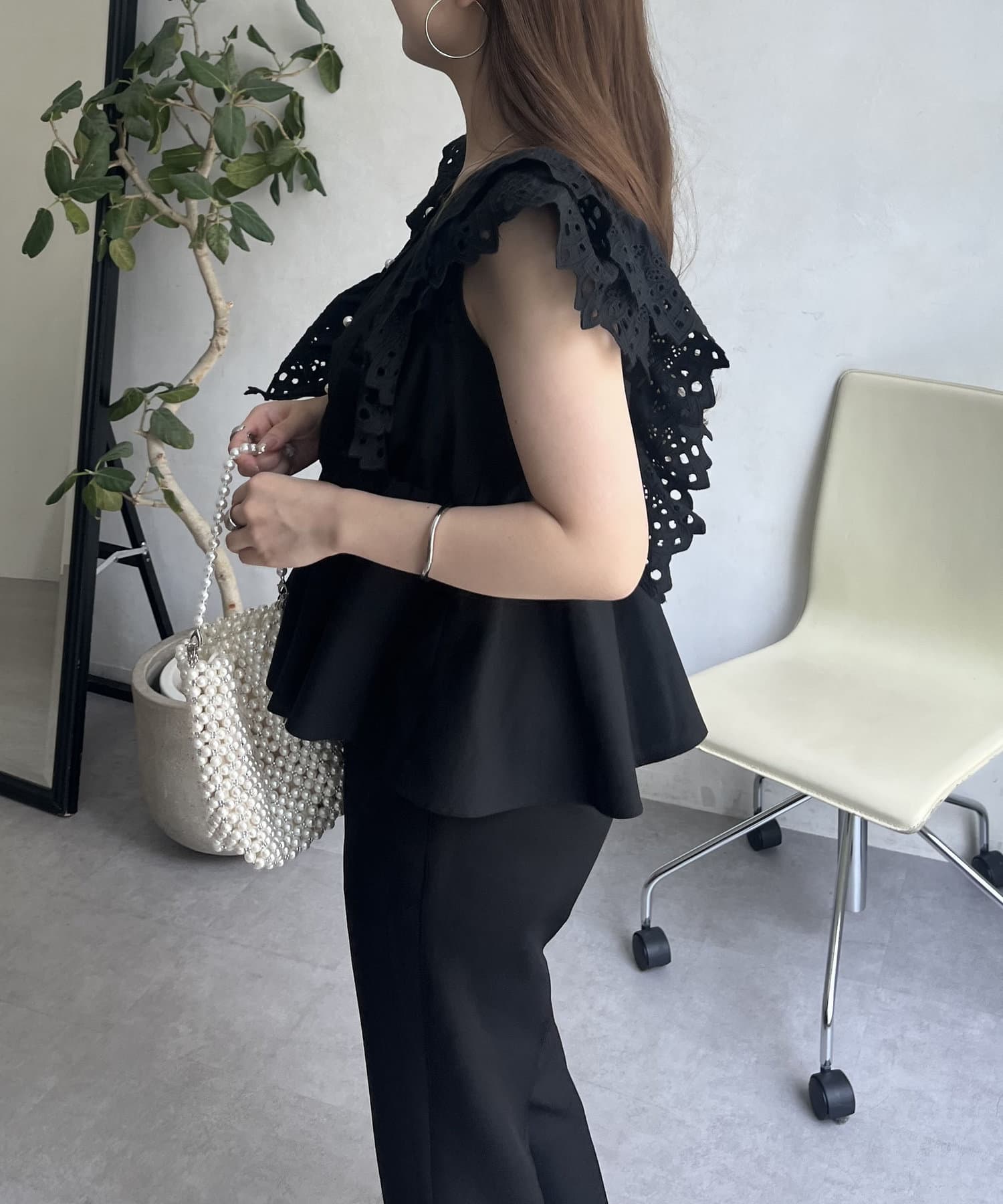 • prose verse(プロズヴェール) フリルレースパールボタンペプラムブラウス