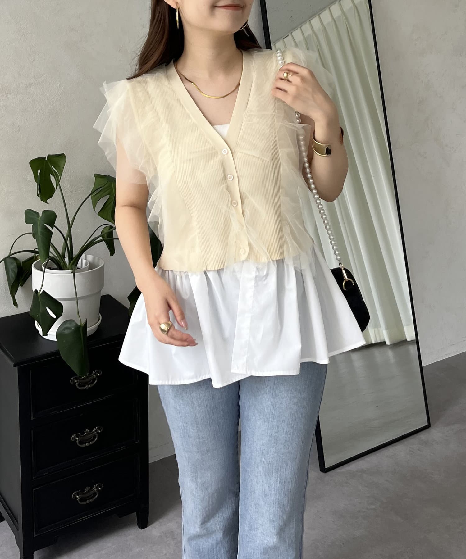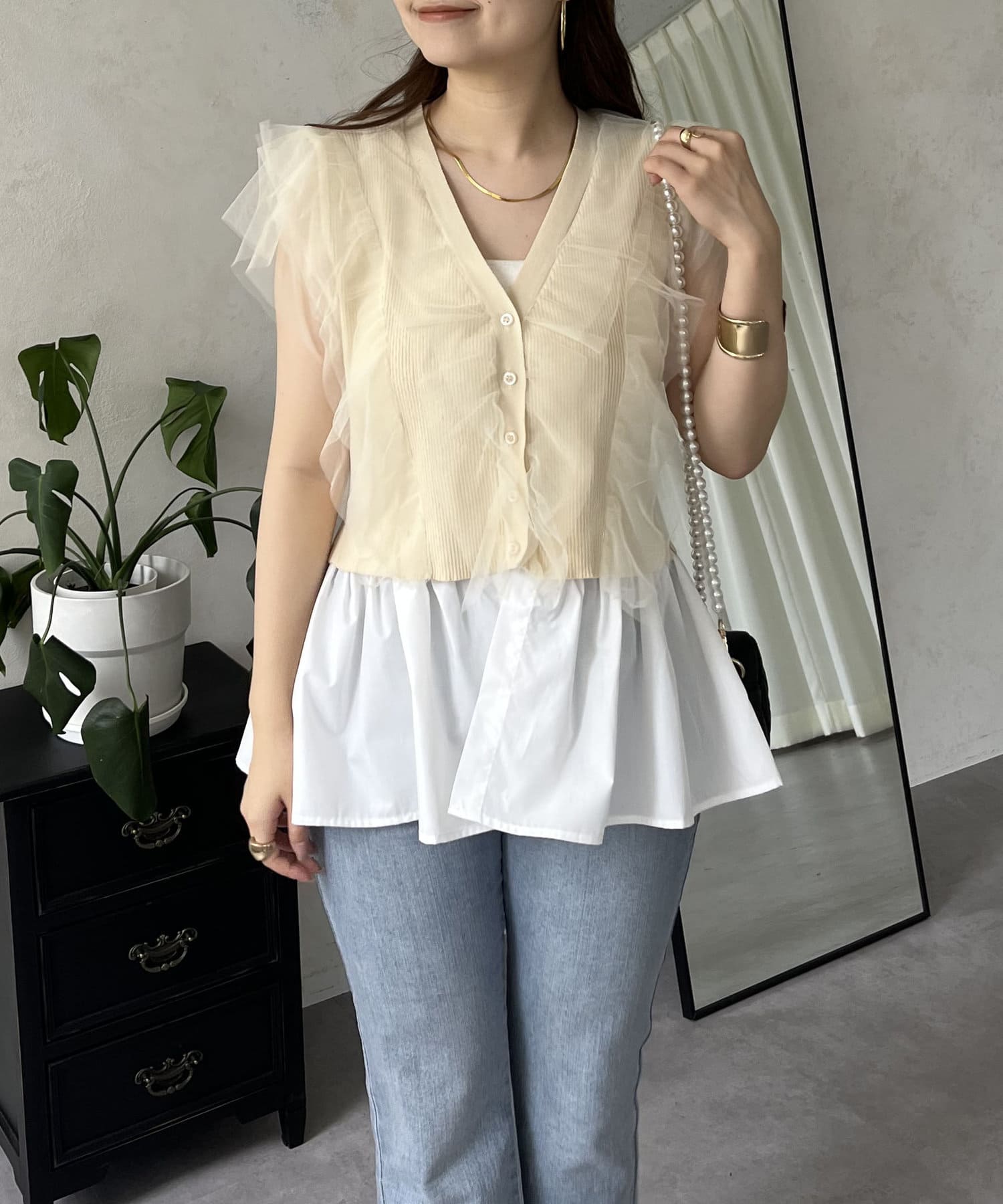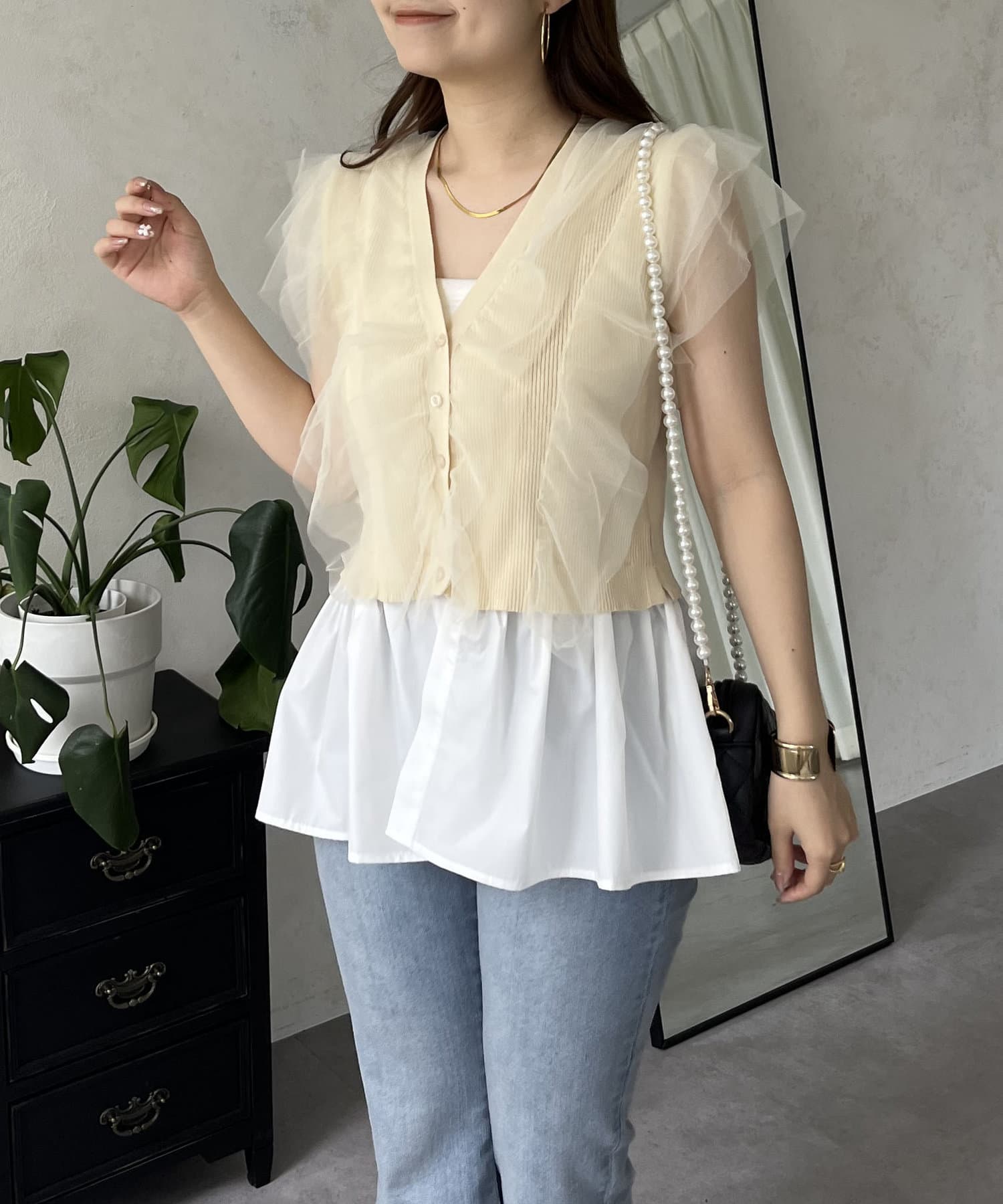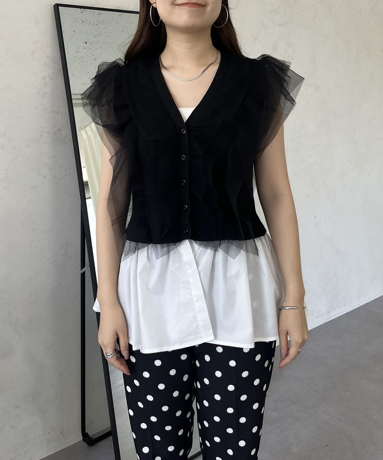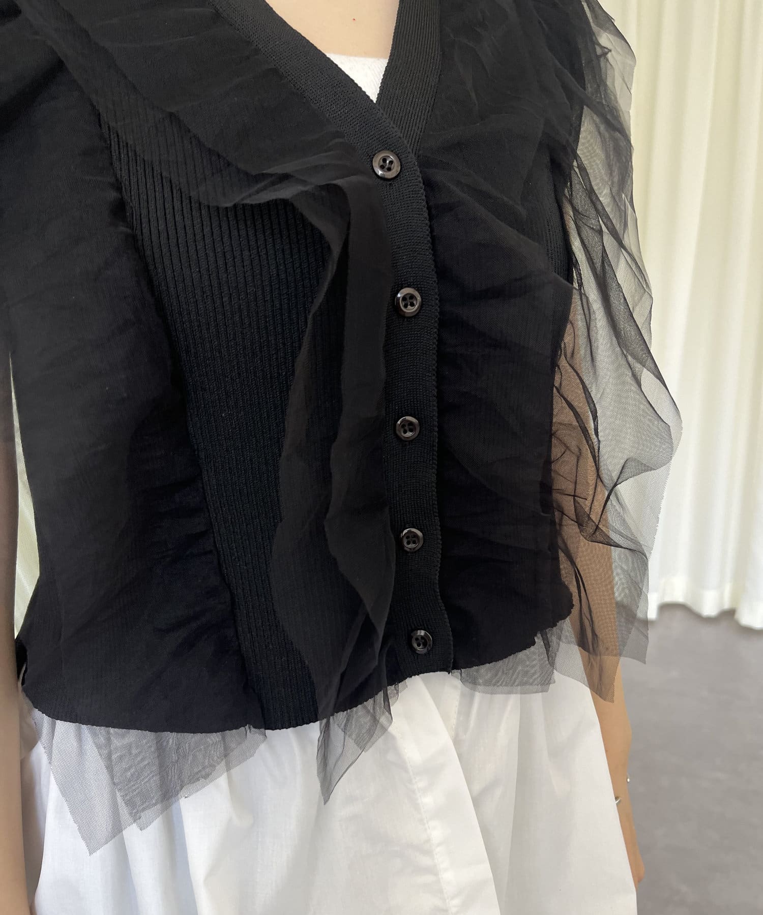 【裾取り外し可能】2wayチュールドッキングペプラムカーディガン