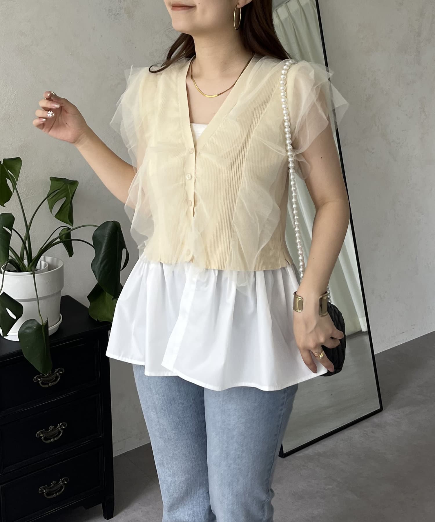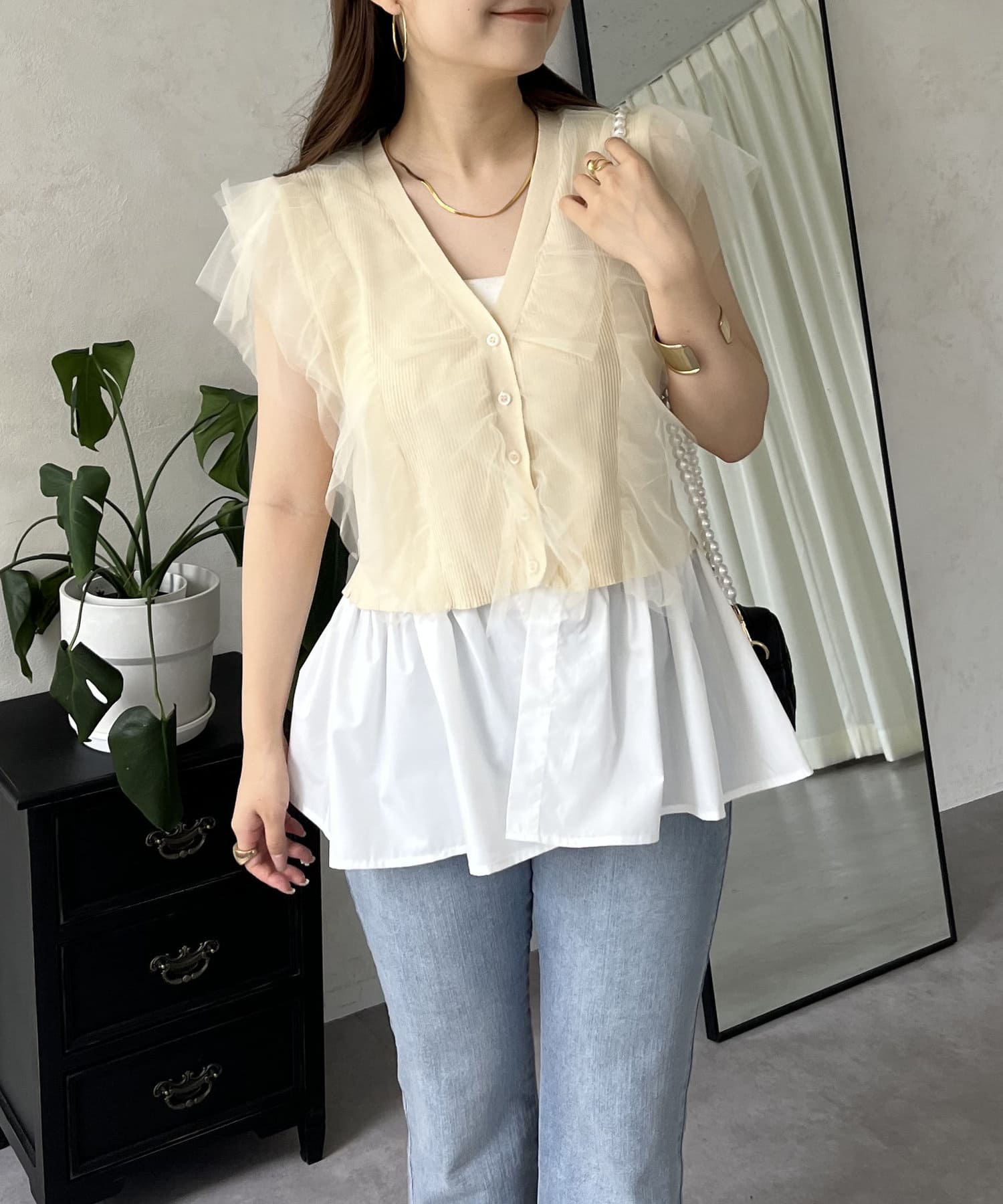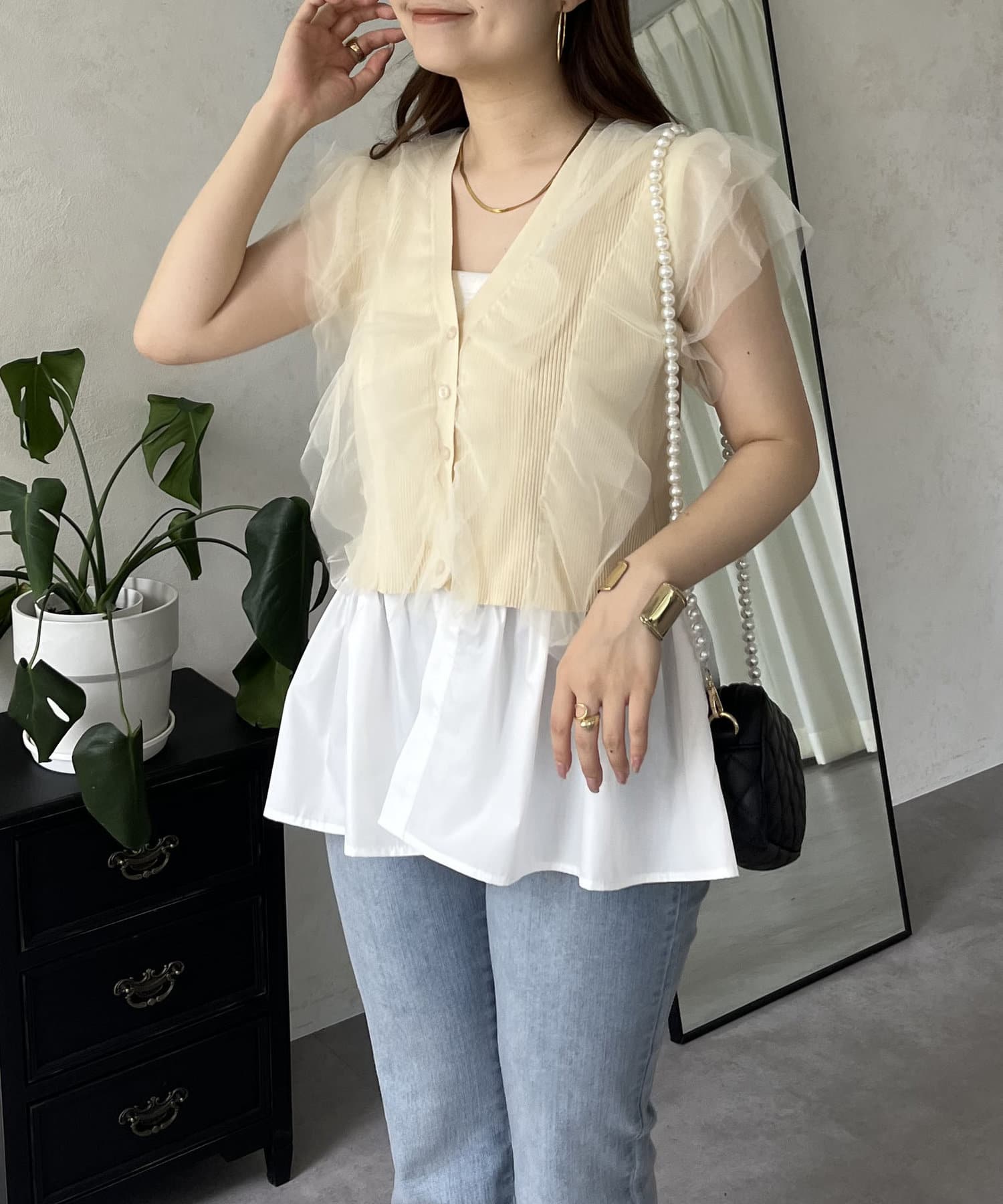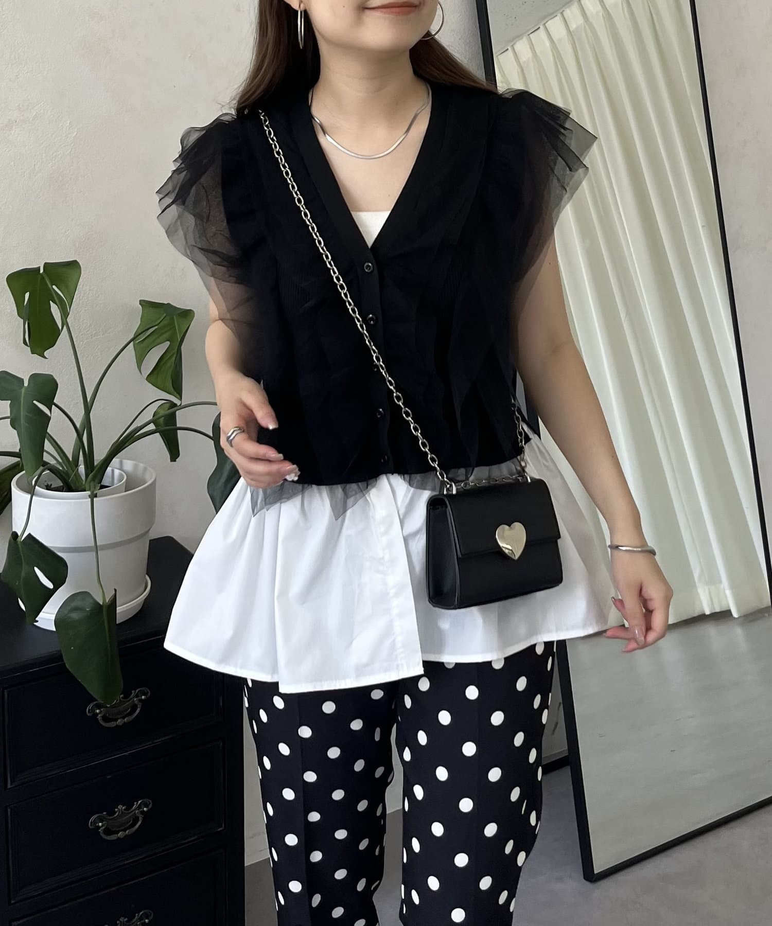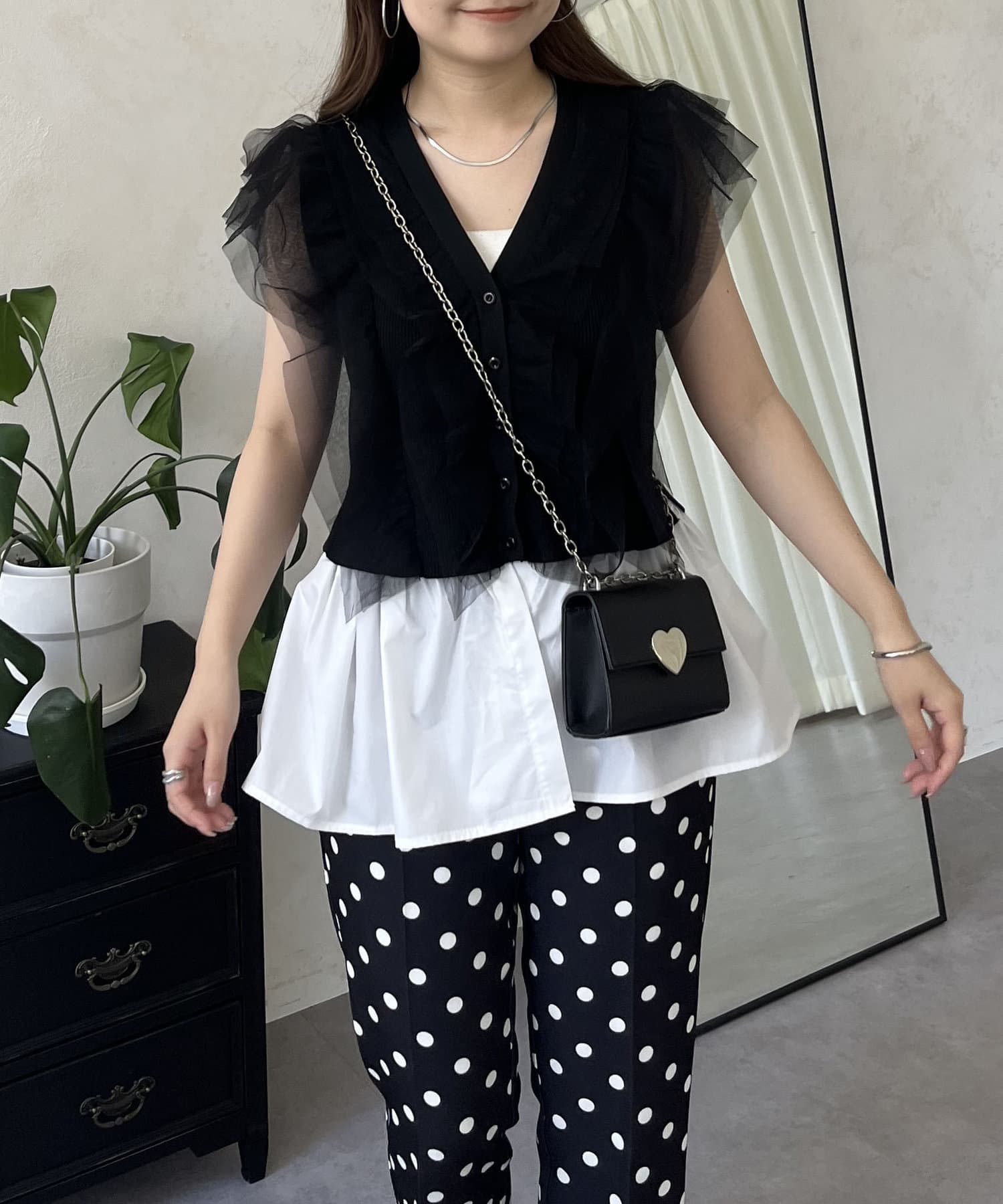 【裾取り外し可能】2wayチュールドッキングペプラムカーディガン