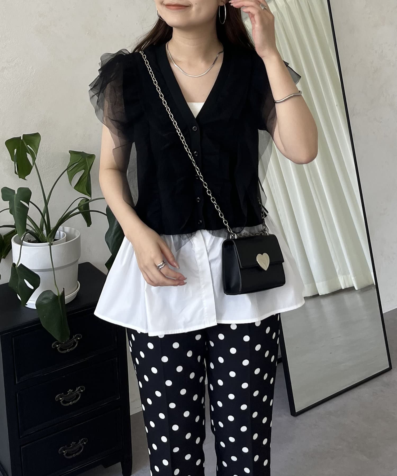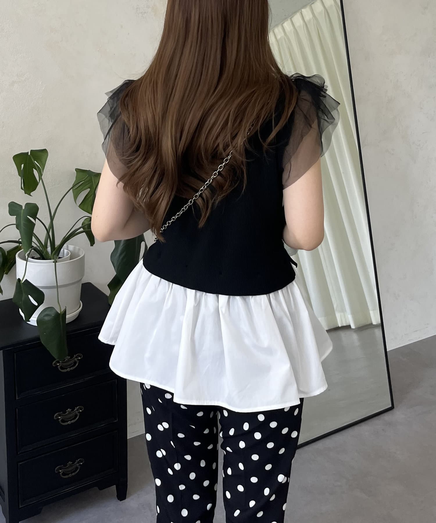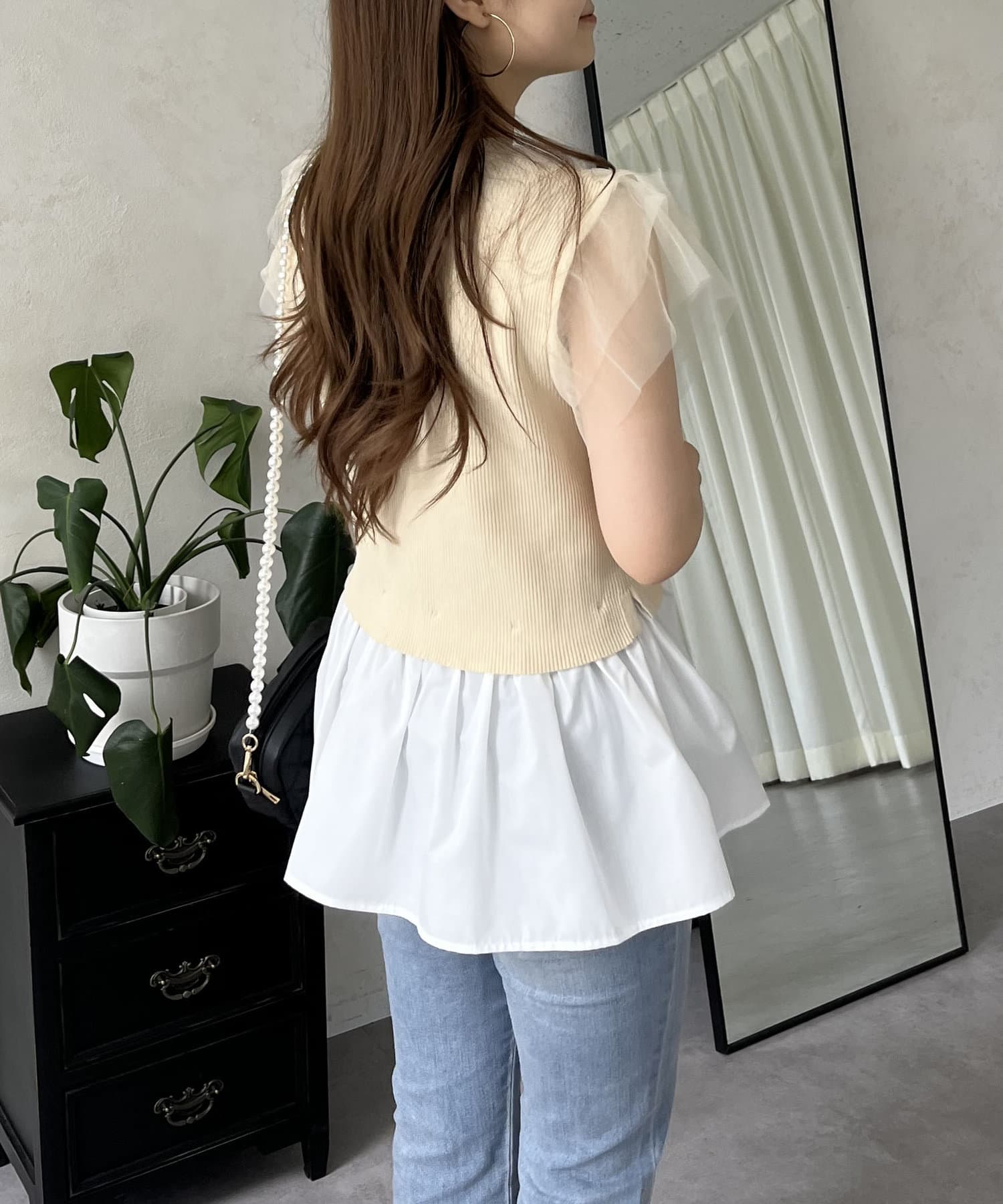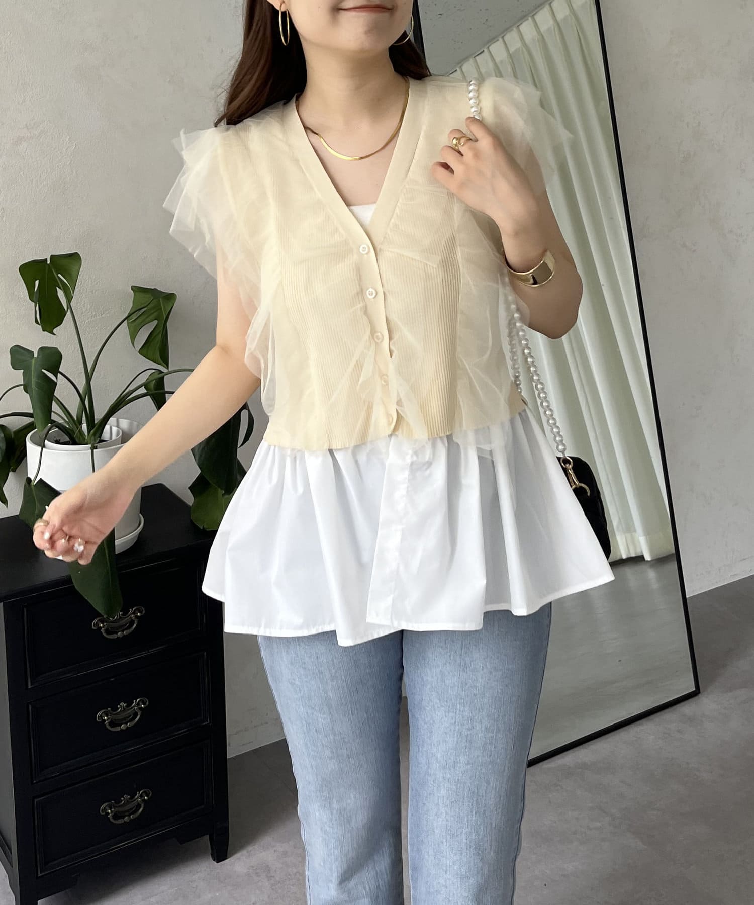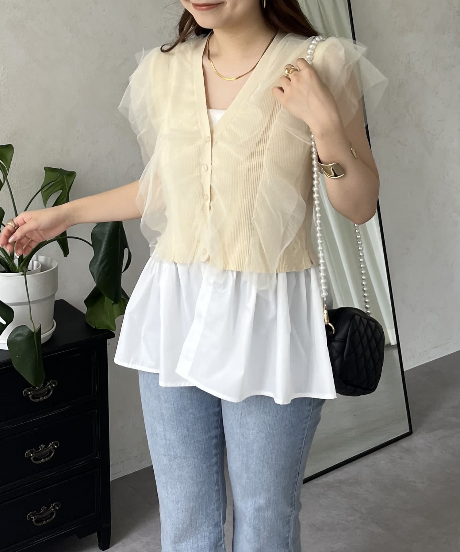 【裾取り外し可能】2wayチュールドッキングペプラムカーディガン