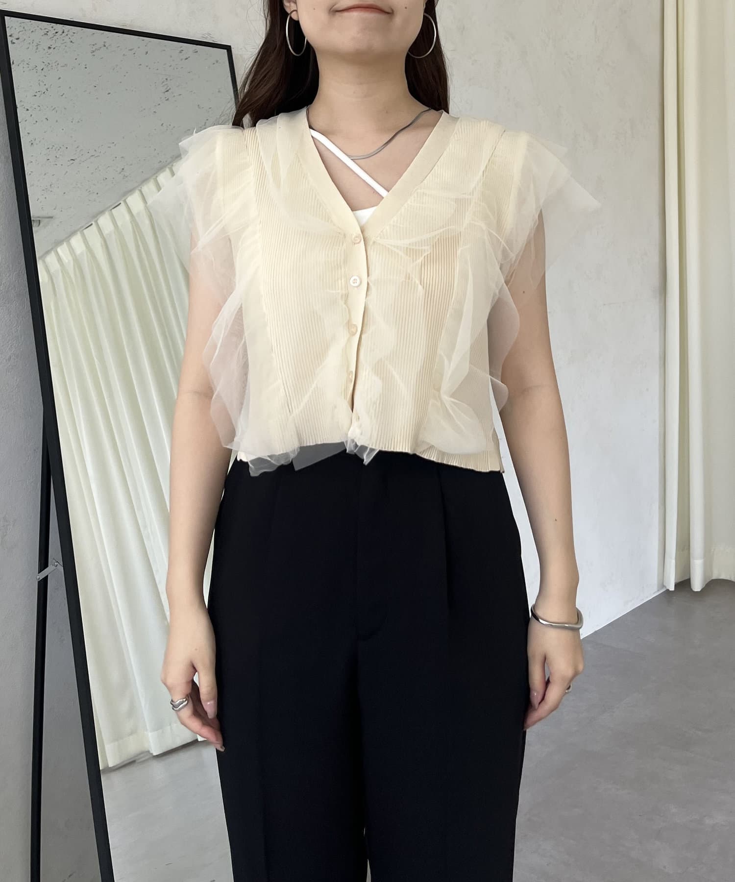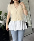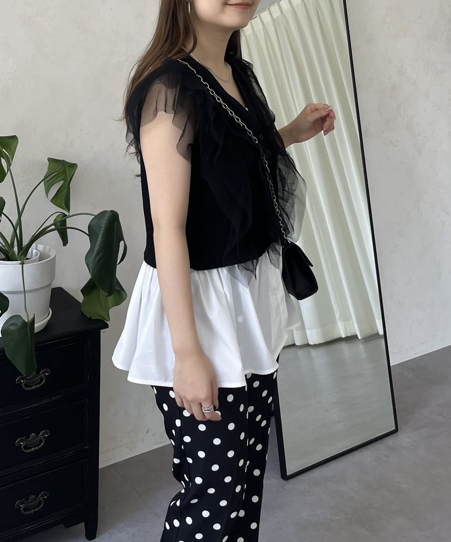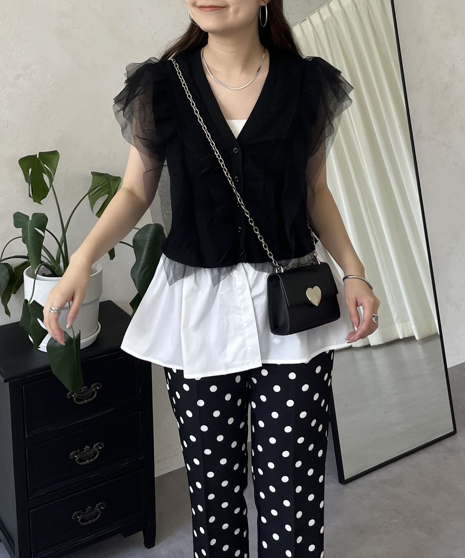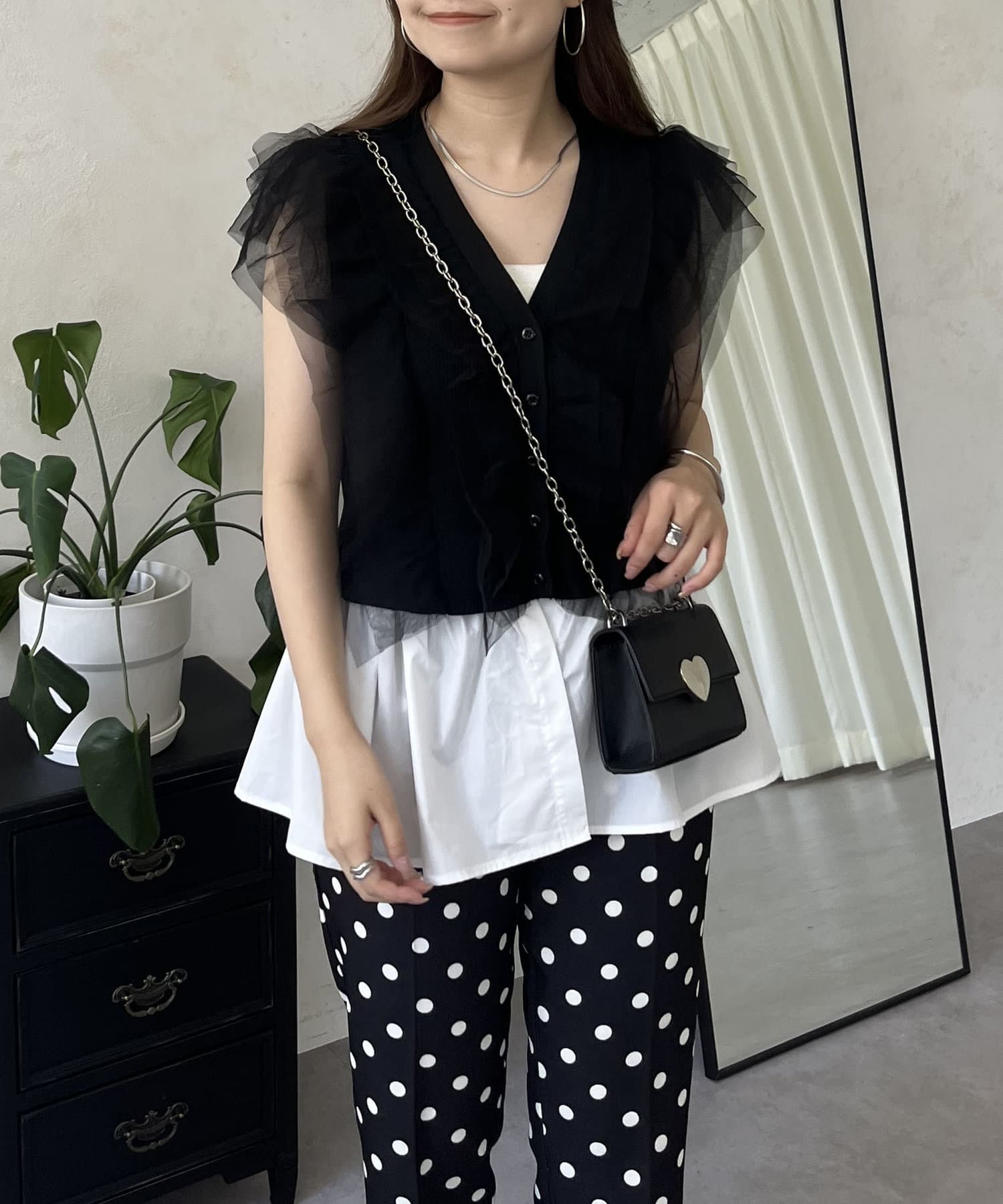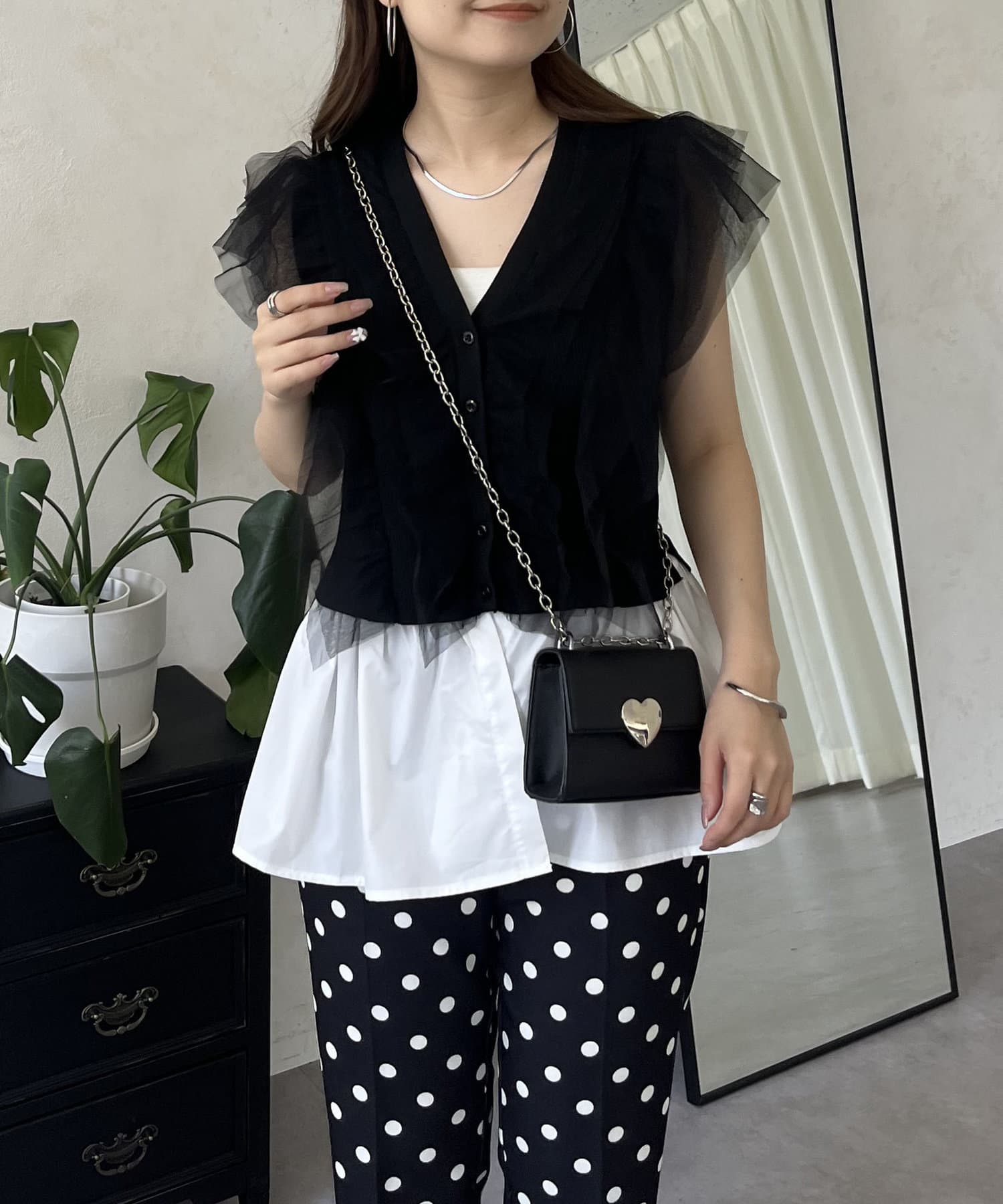 【裾取り外し可能】2wayチュールドッキングペプラムカーディガン