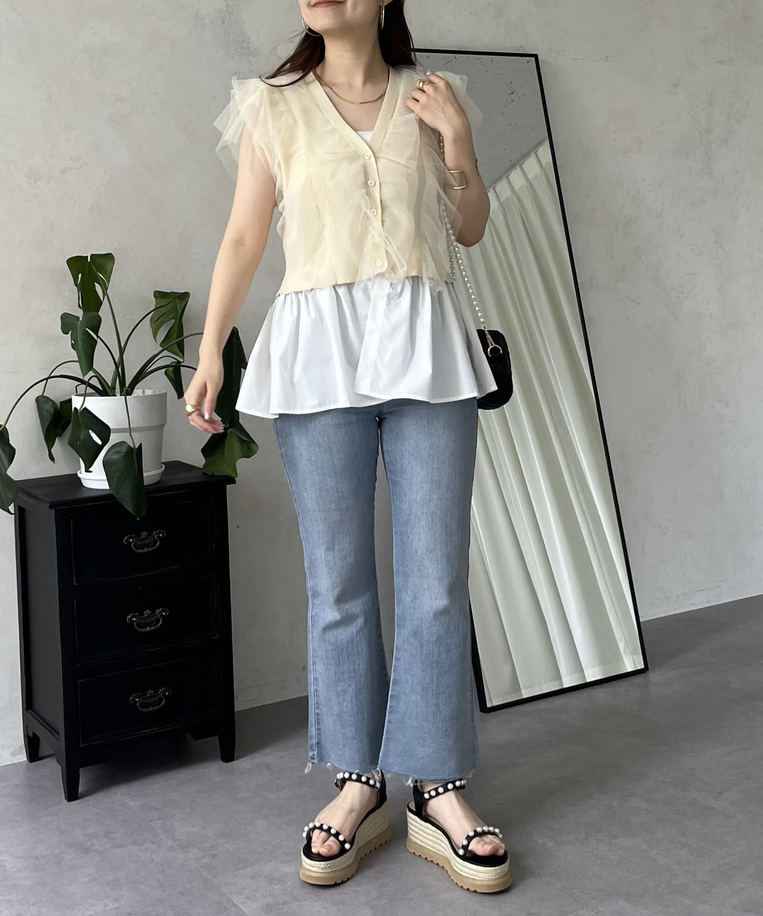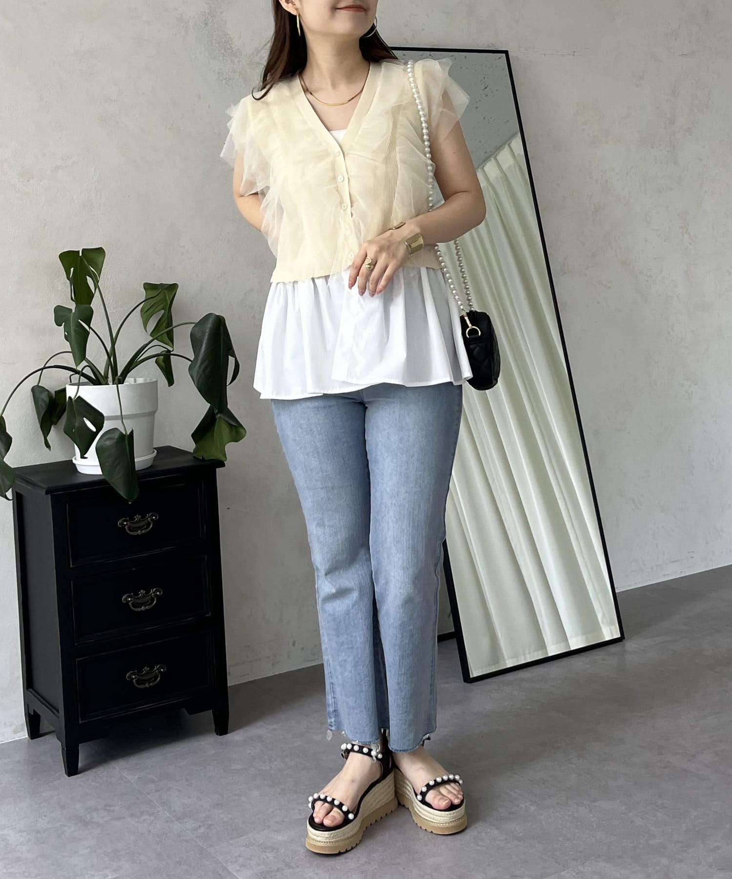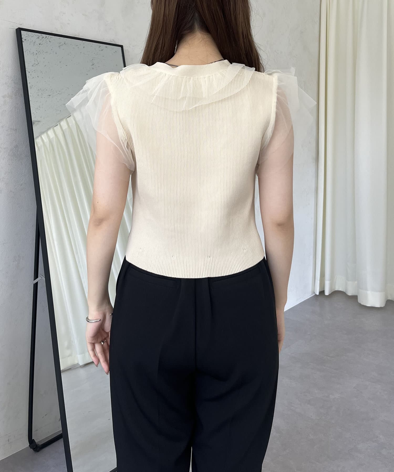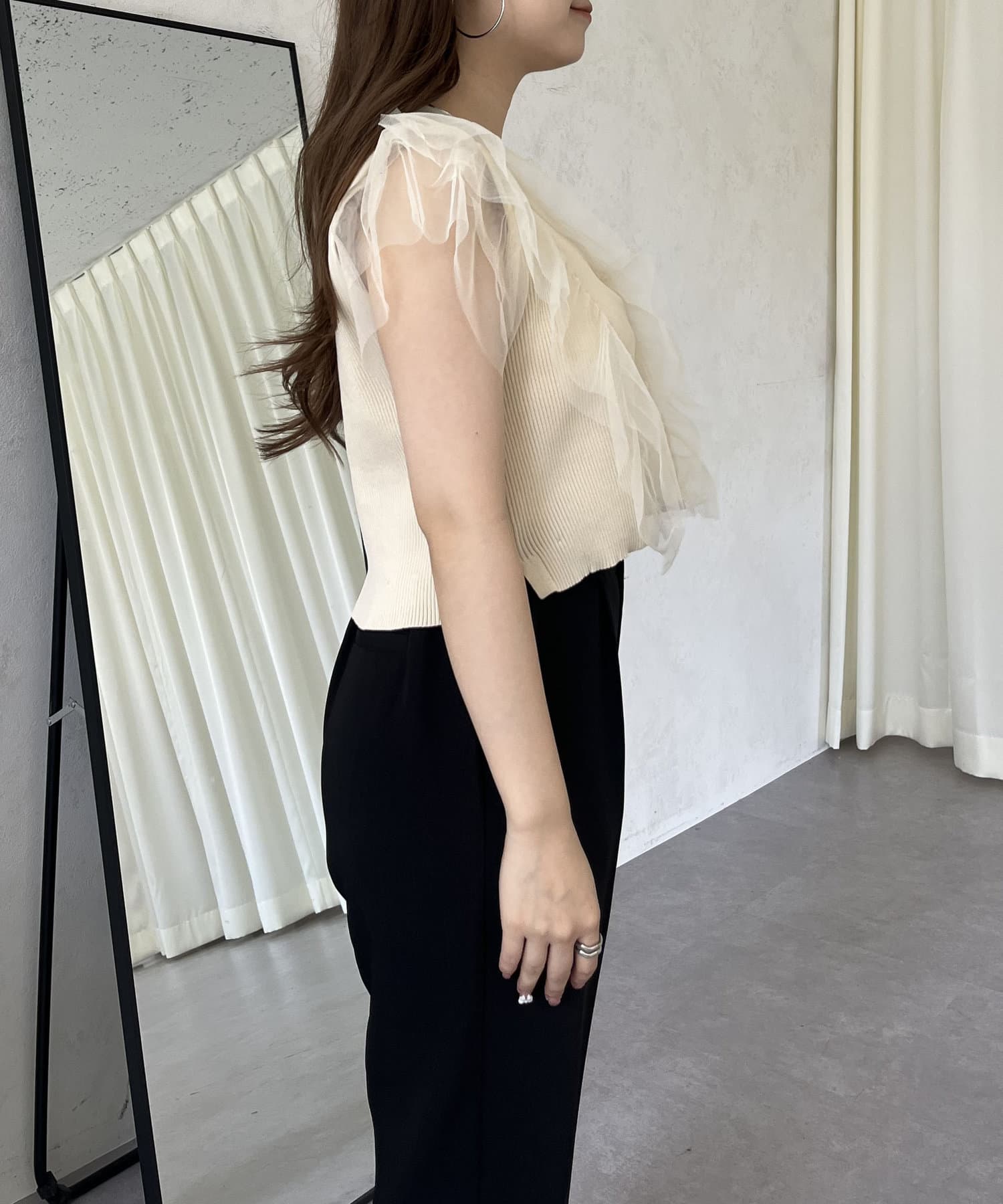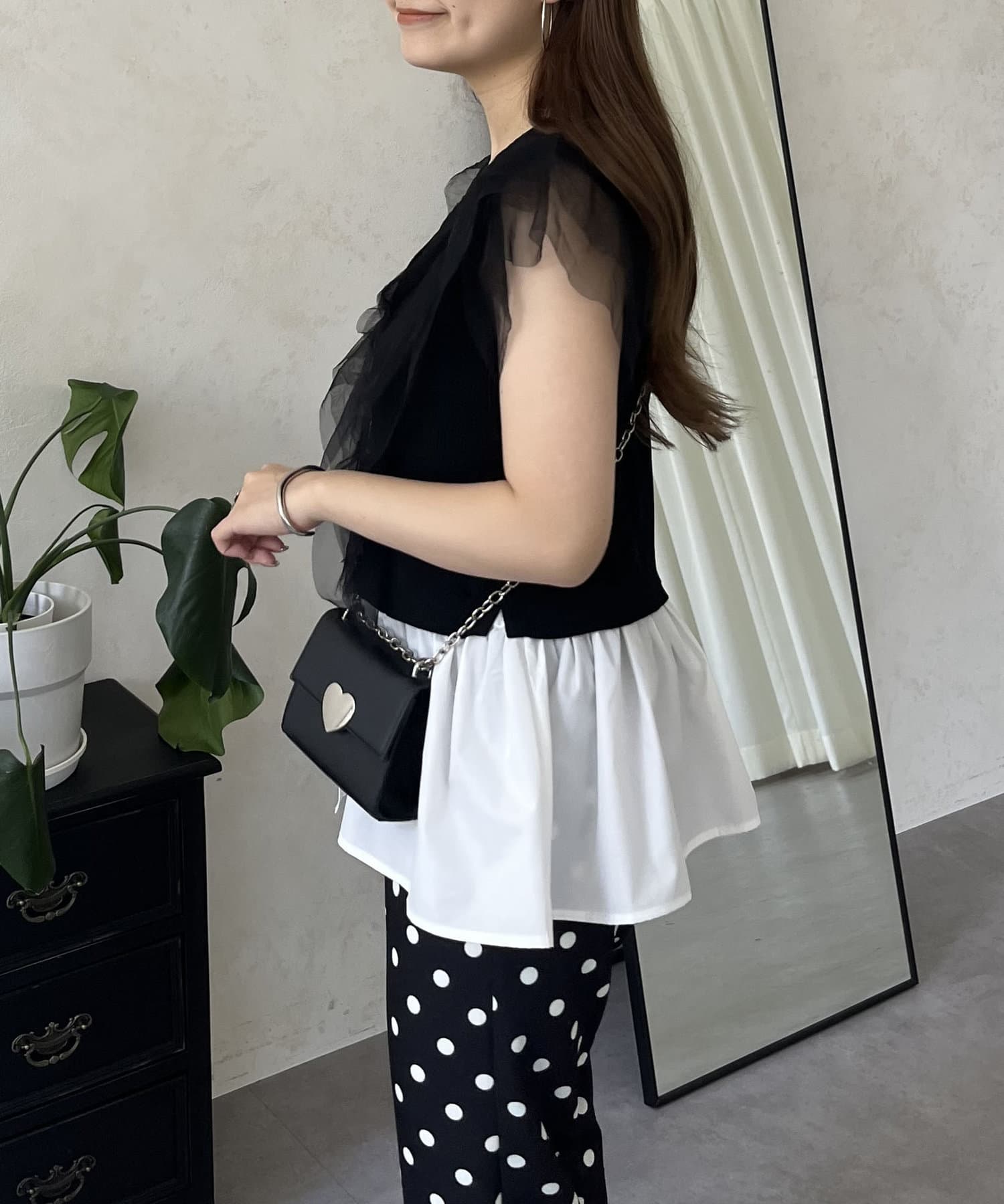 【裾取り外し可能】2wayチュールドッキングペプラムカーディガン